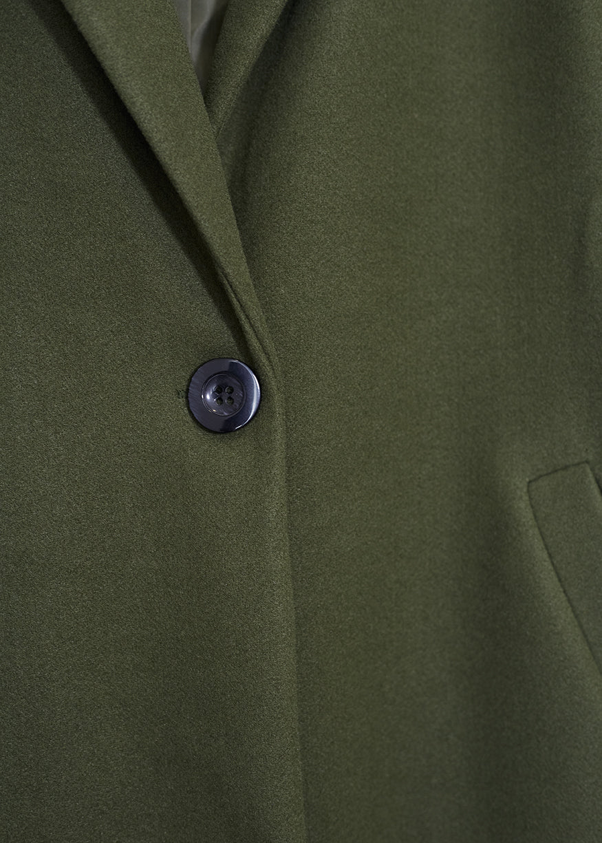 Abric de drap obert de coll solapa i màniga llarga. Tancament amb botó i butxaques laterals . Folre interior.