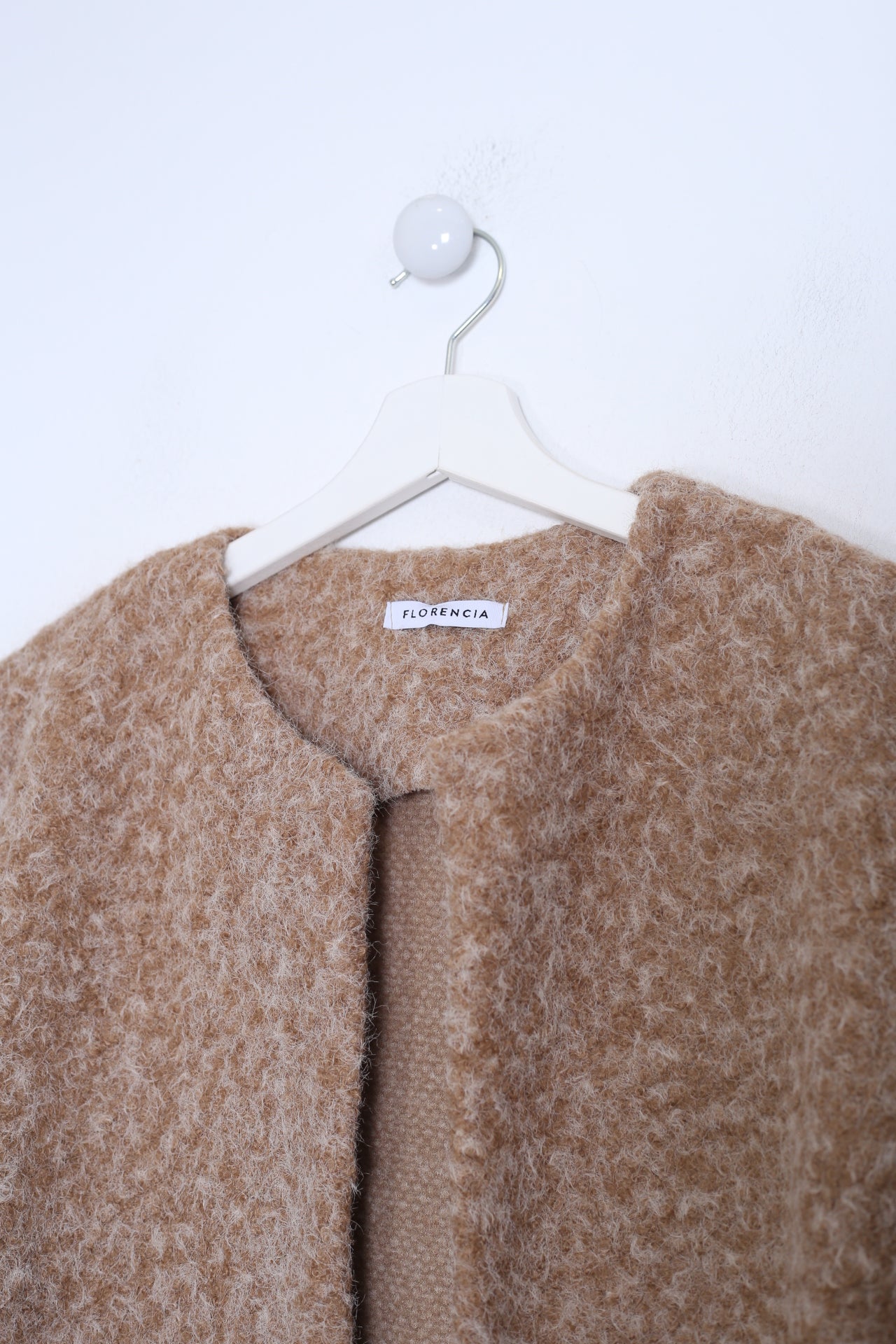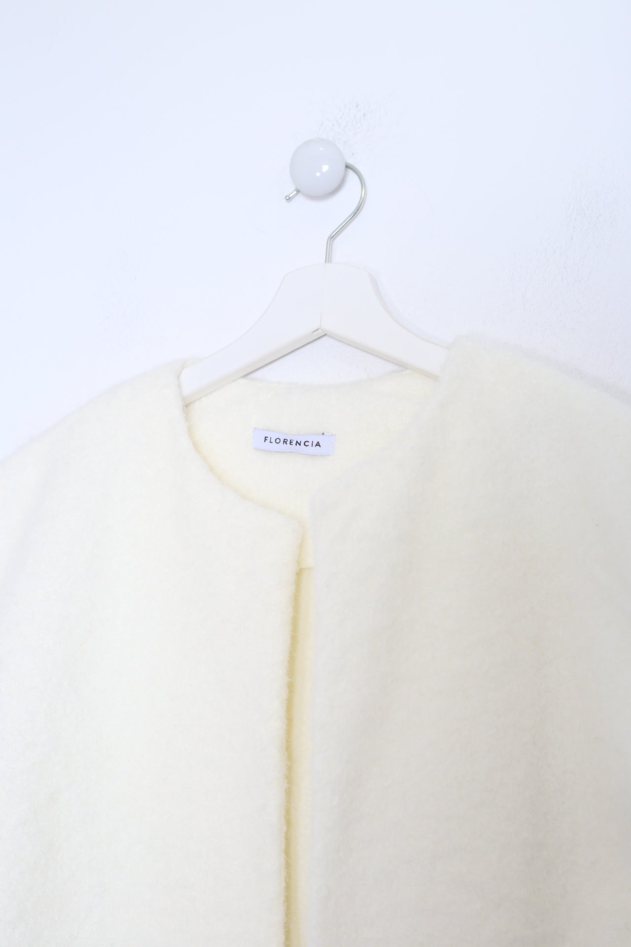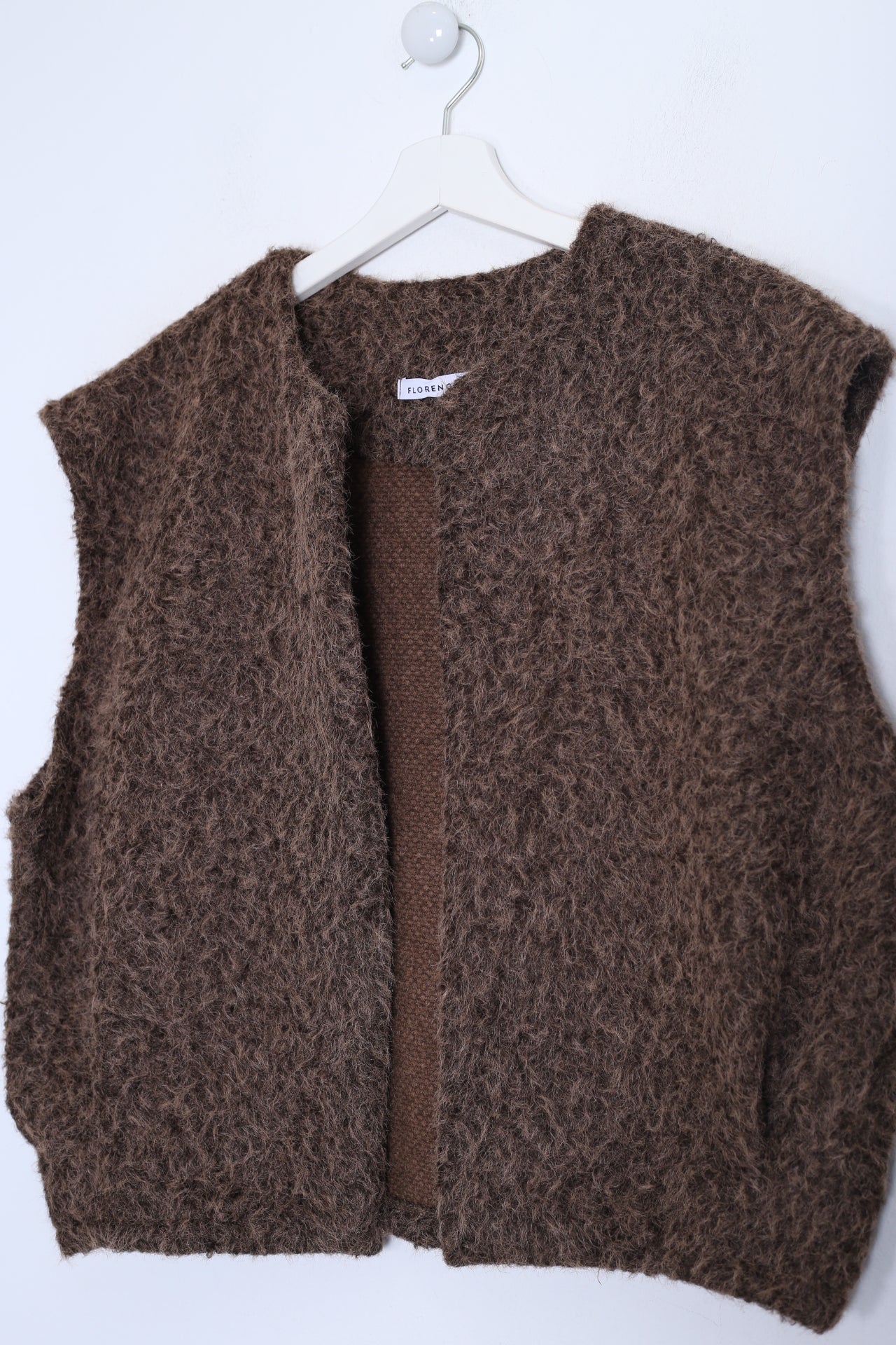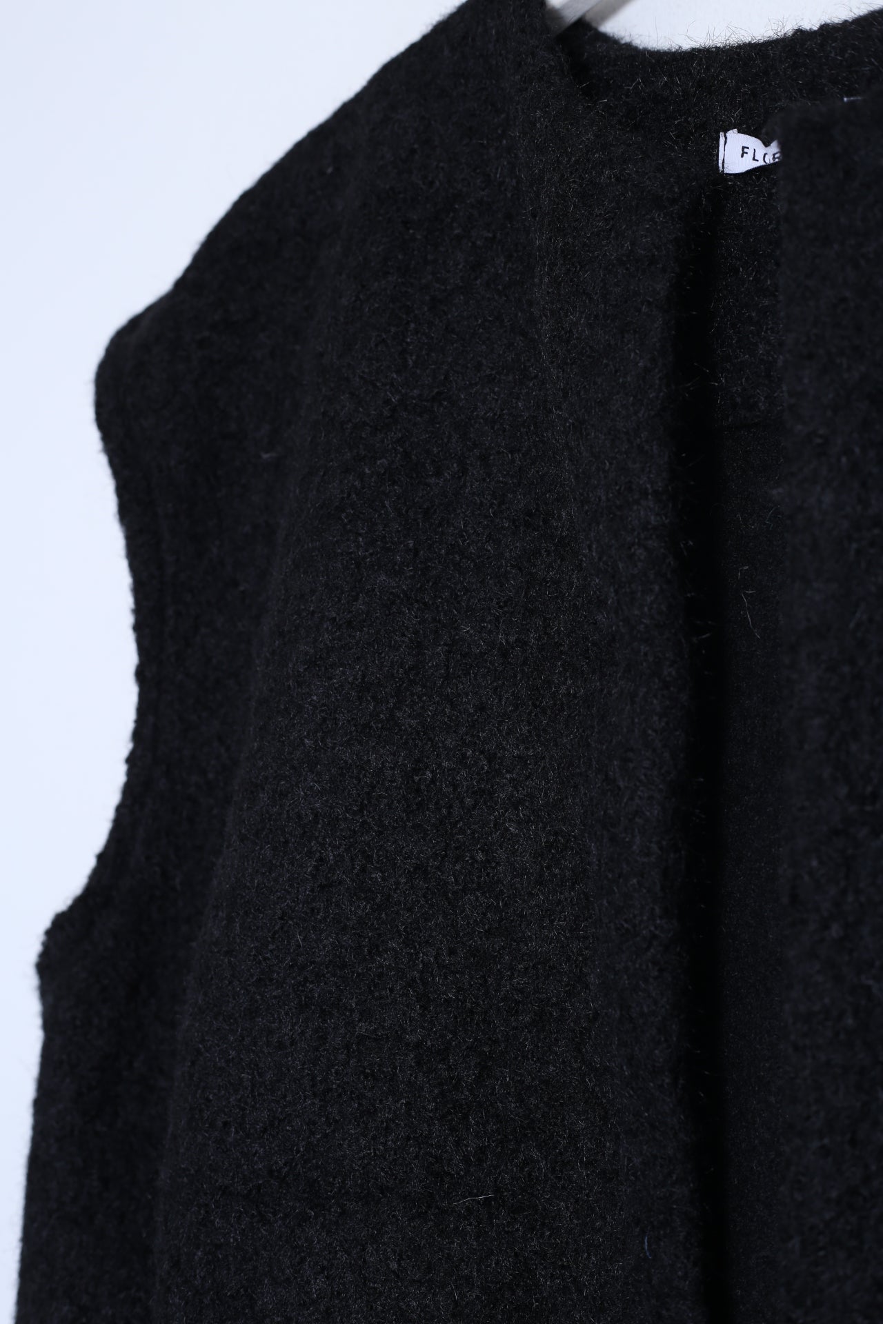 Chaleco de cuello redondo y corte amplio. Detalle de pliegues en laterales. Bolsillos laterales.
