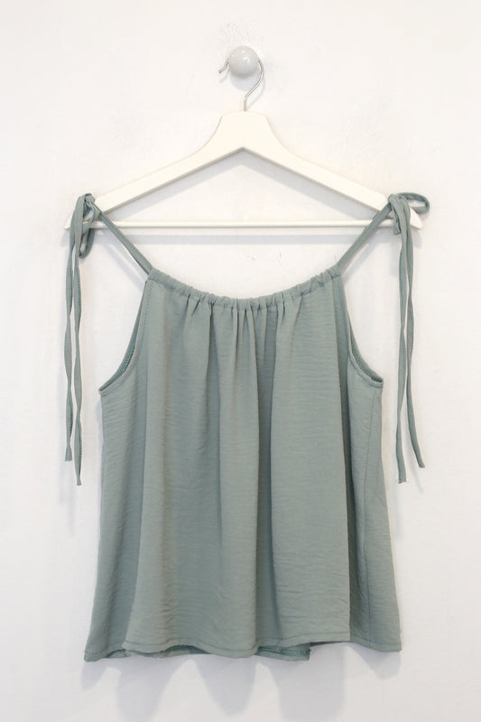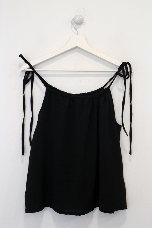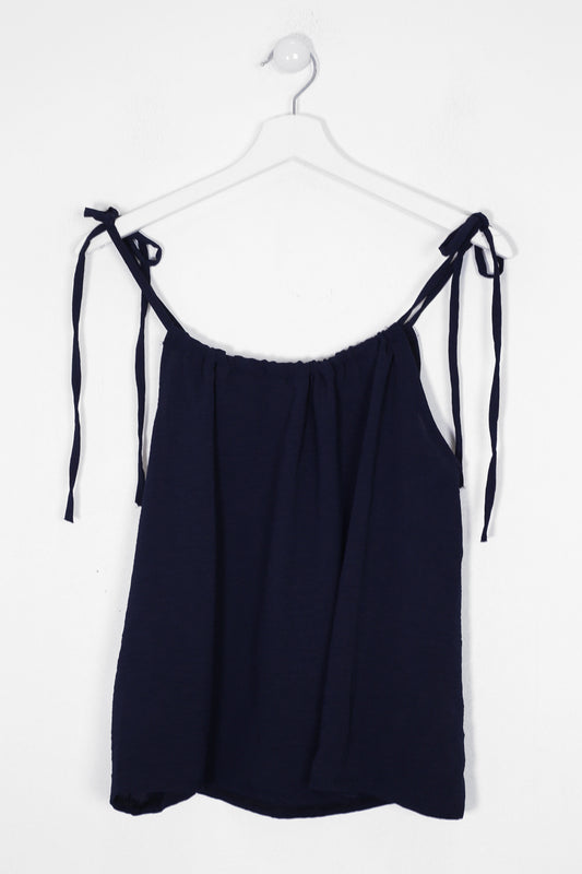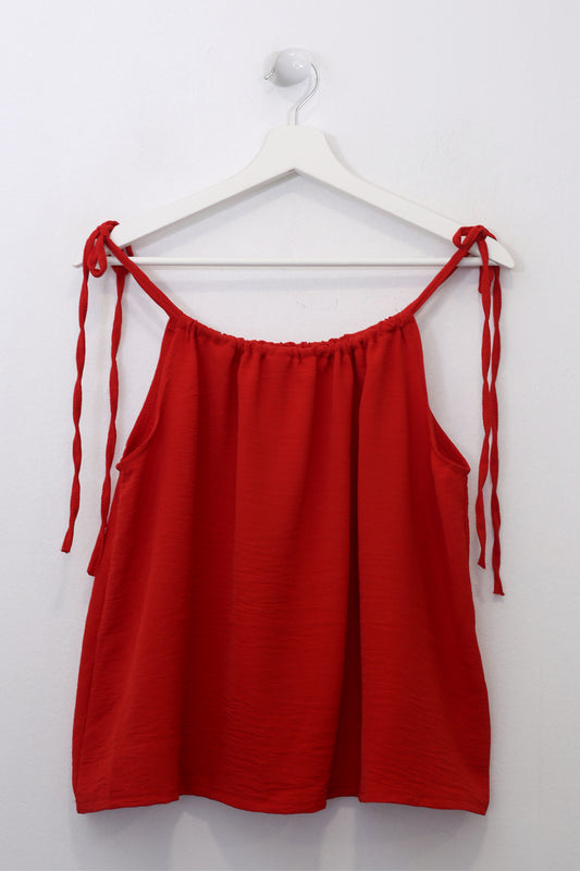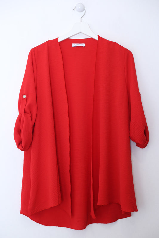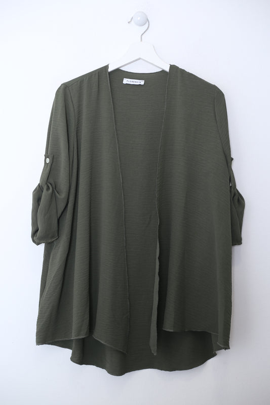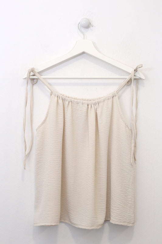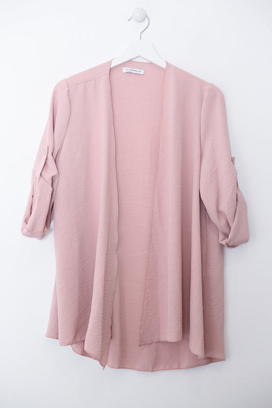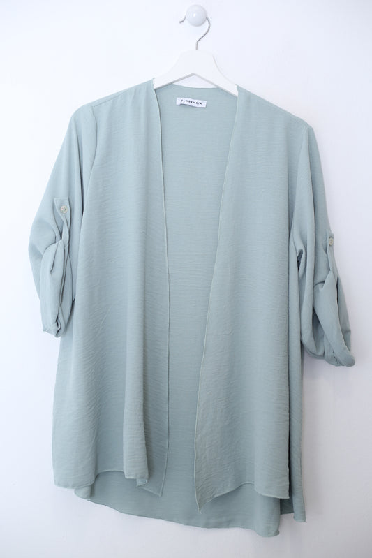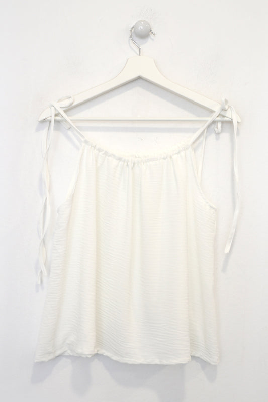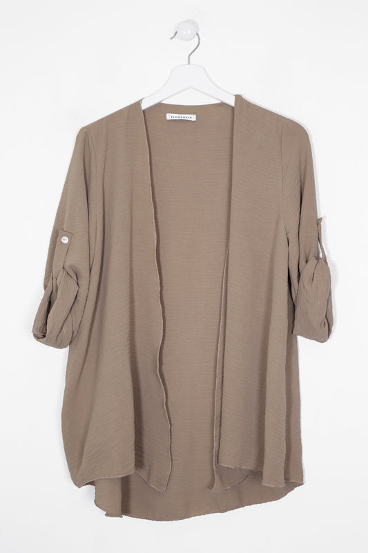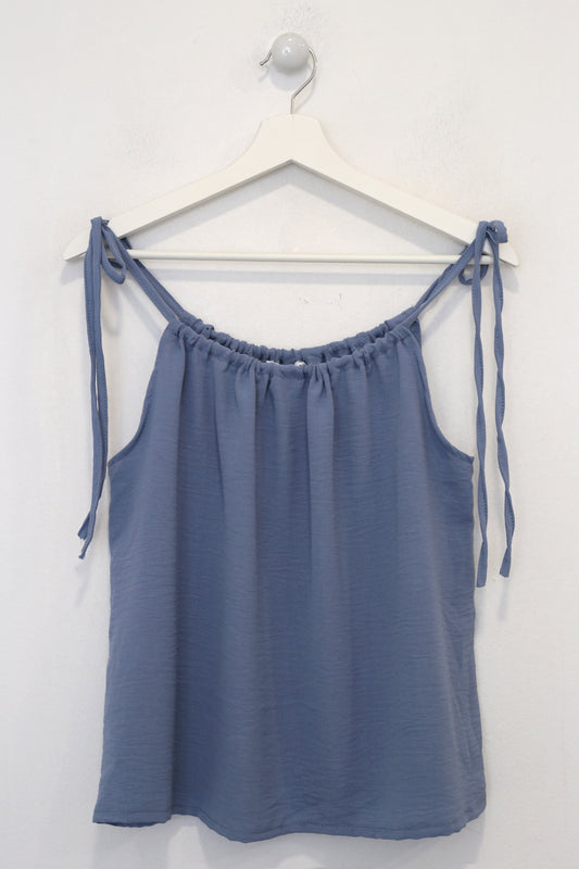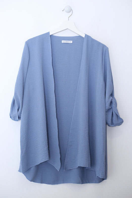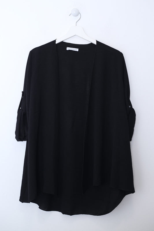 Blusa con escote redondo y manga corta. Detalle de botones decorativos en frontal y abertura en el bajo. Corte holgado y tejido elástico.