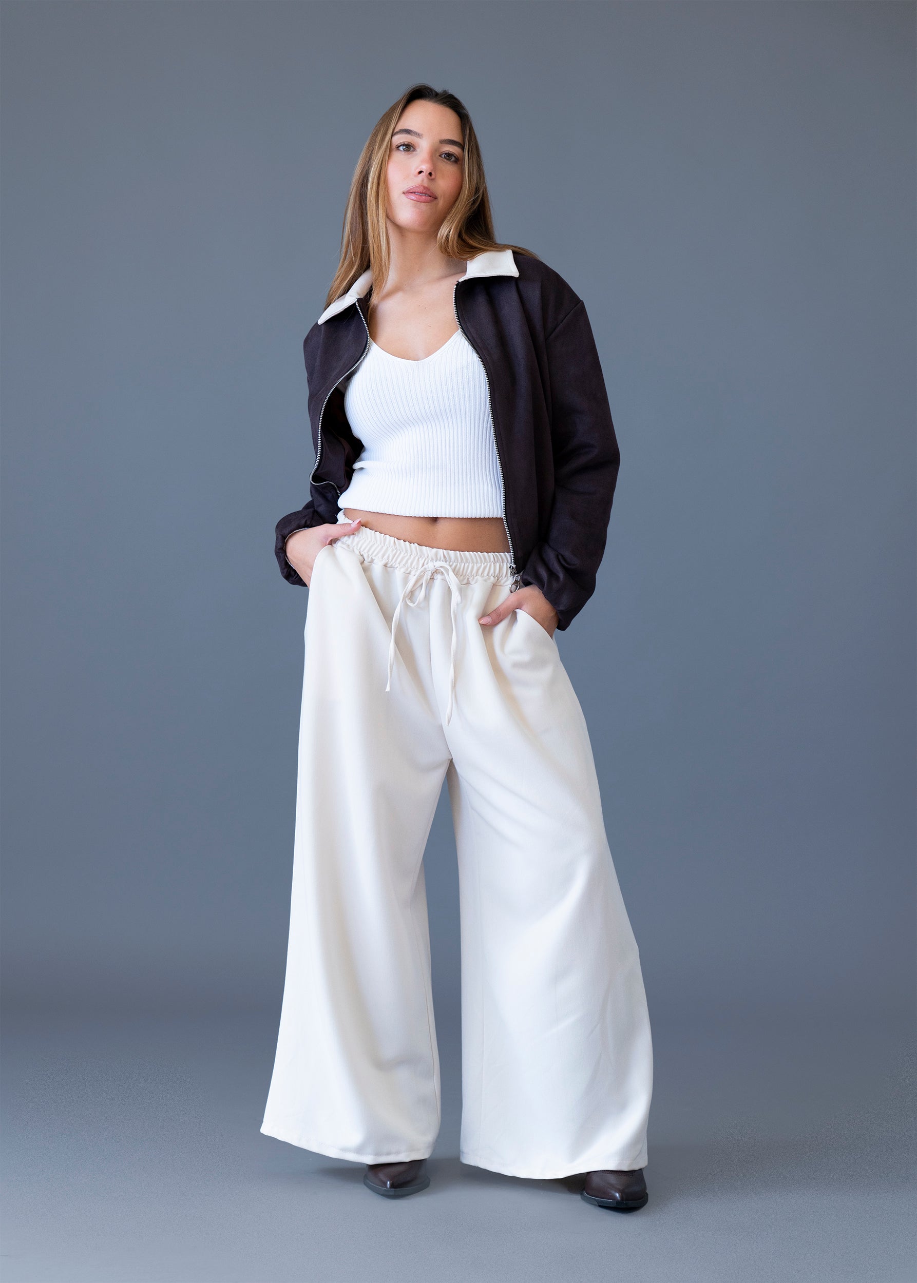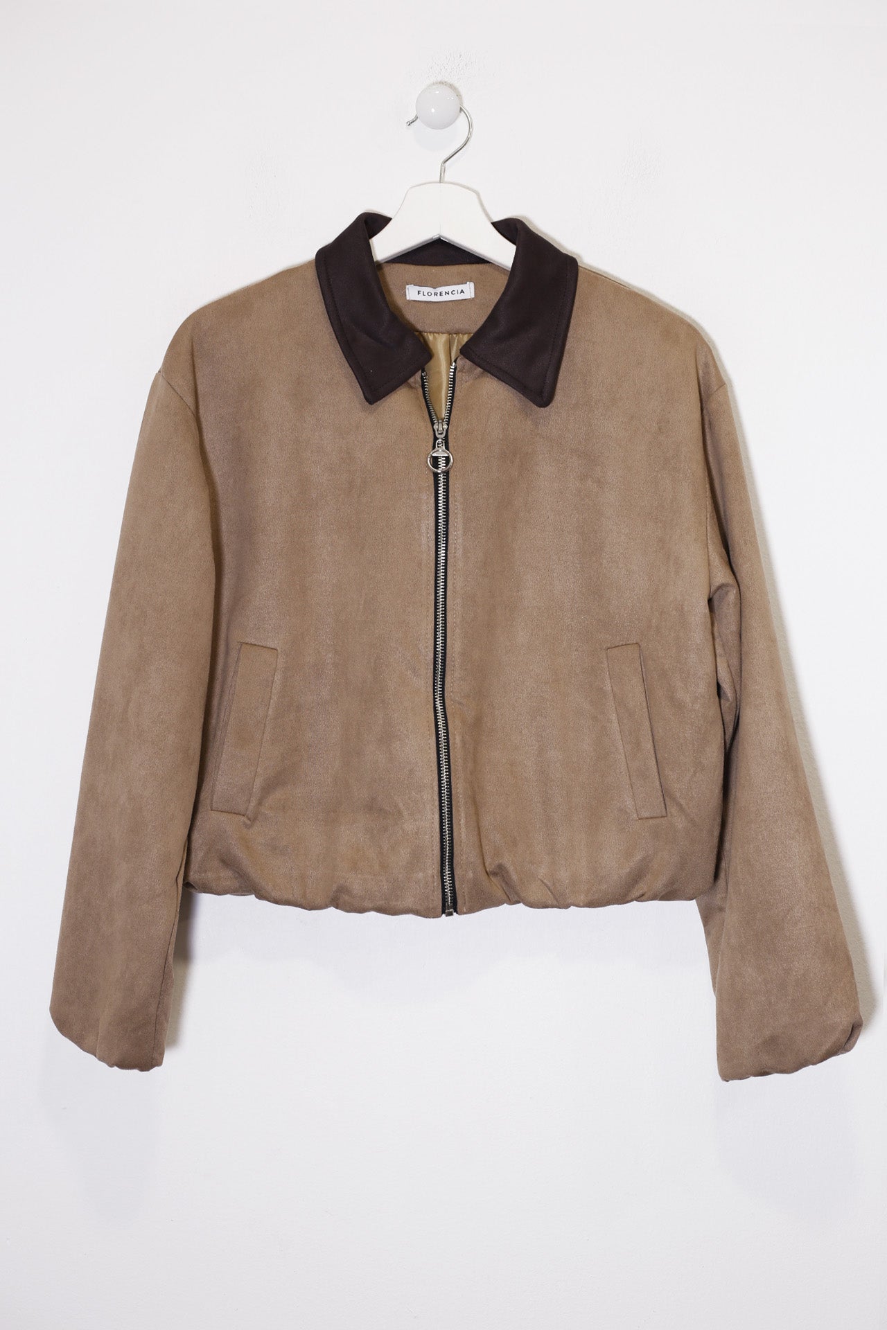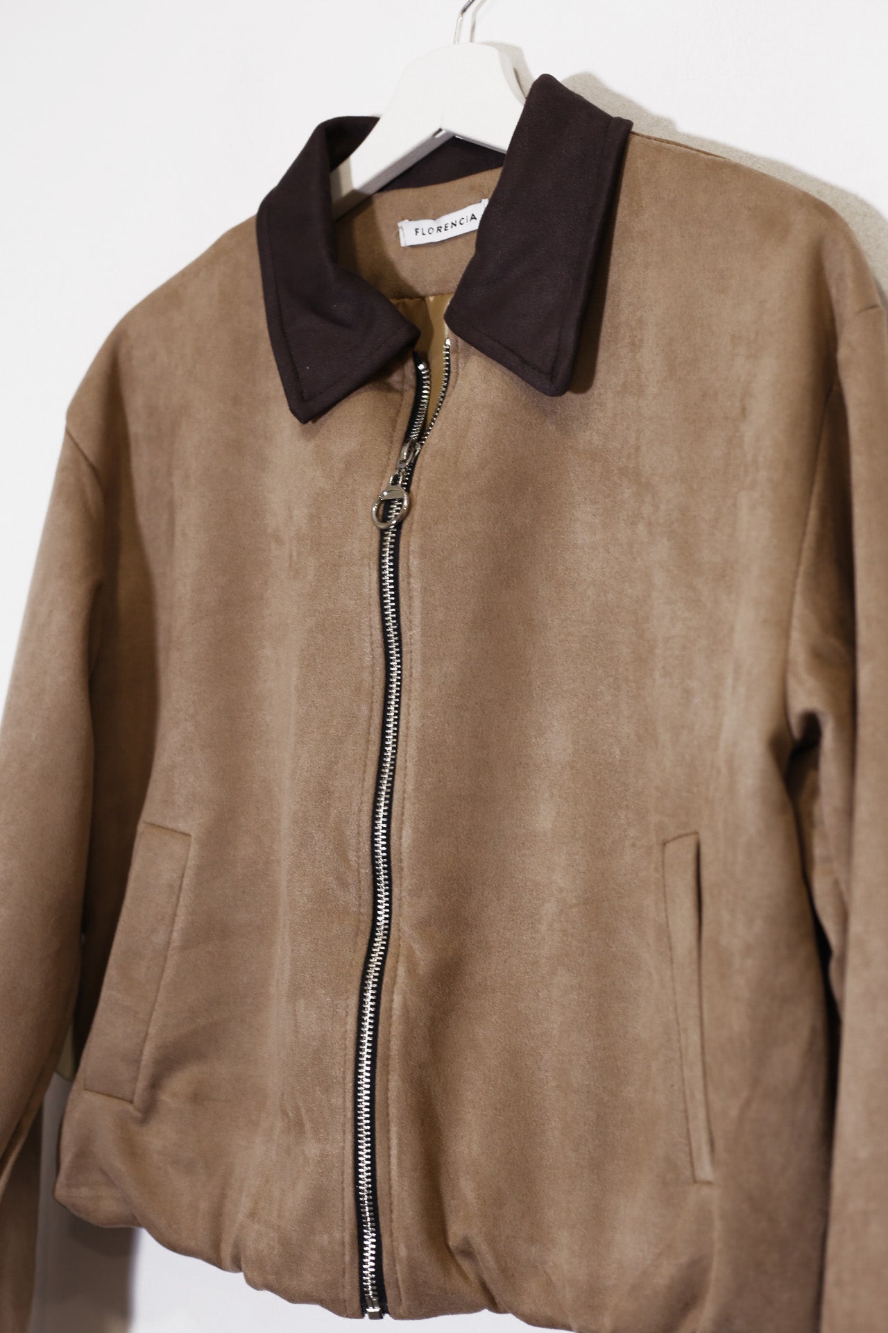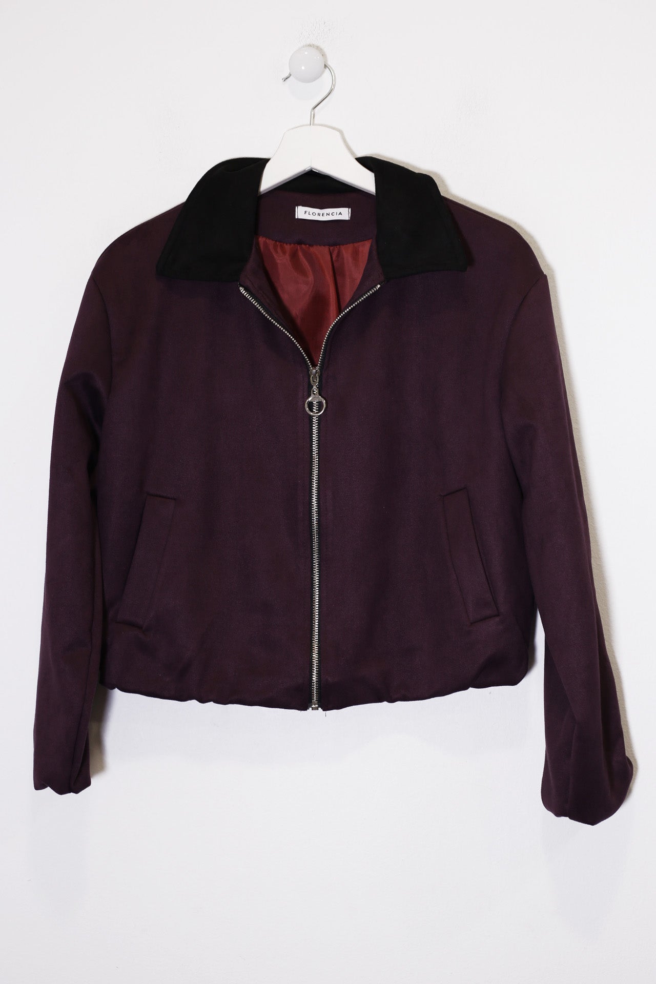 Cazadora con cuello solapa a contraste y manga larga. Cierre frontal con cremallera. Bolsillos frontales. Bajo con detalle elástico. Forro interior.