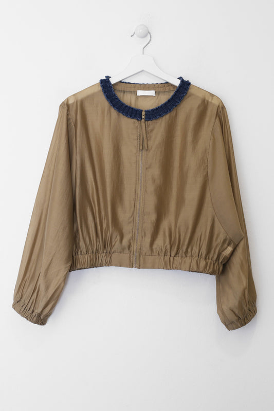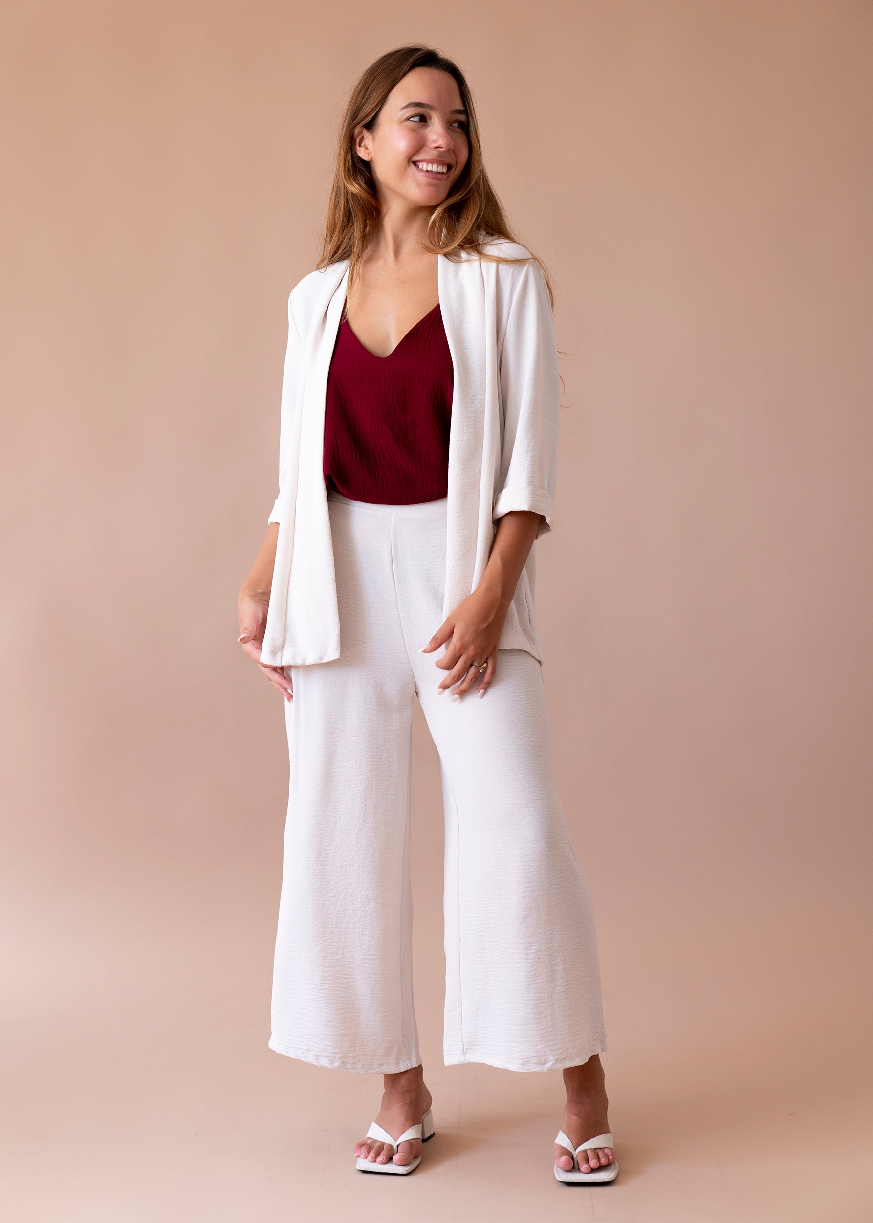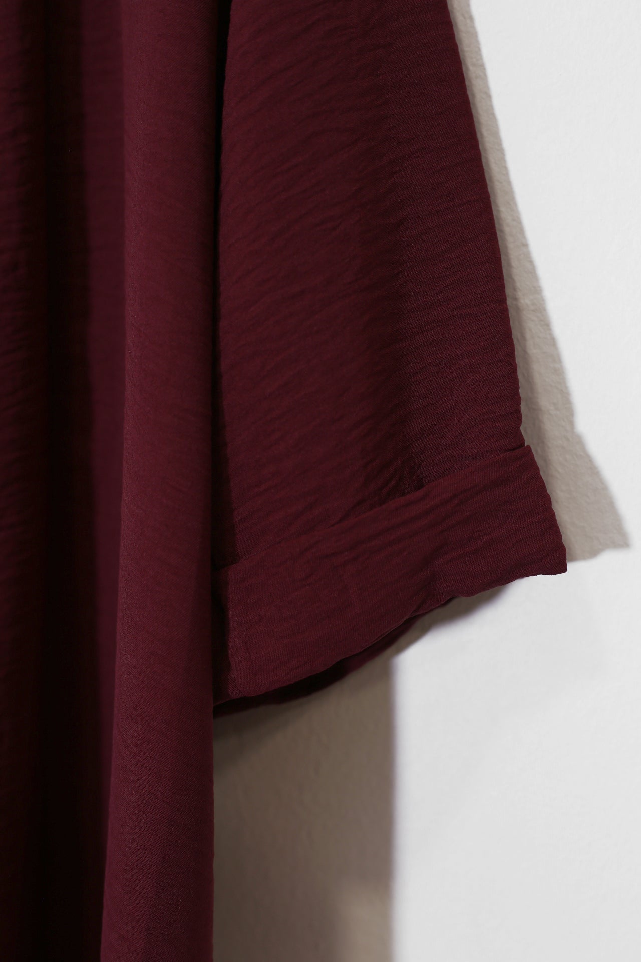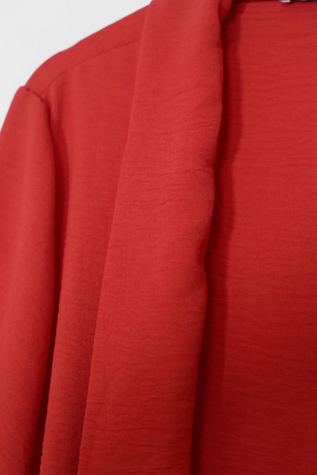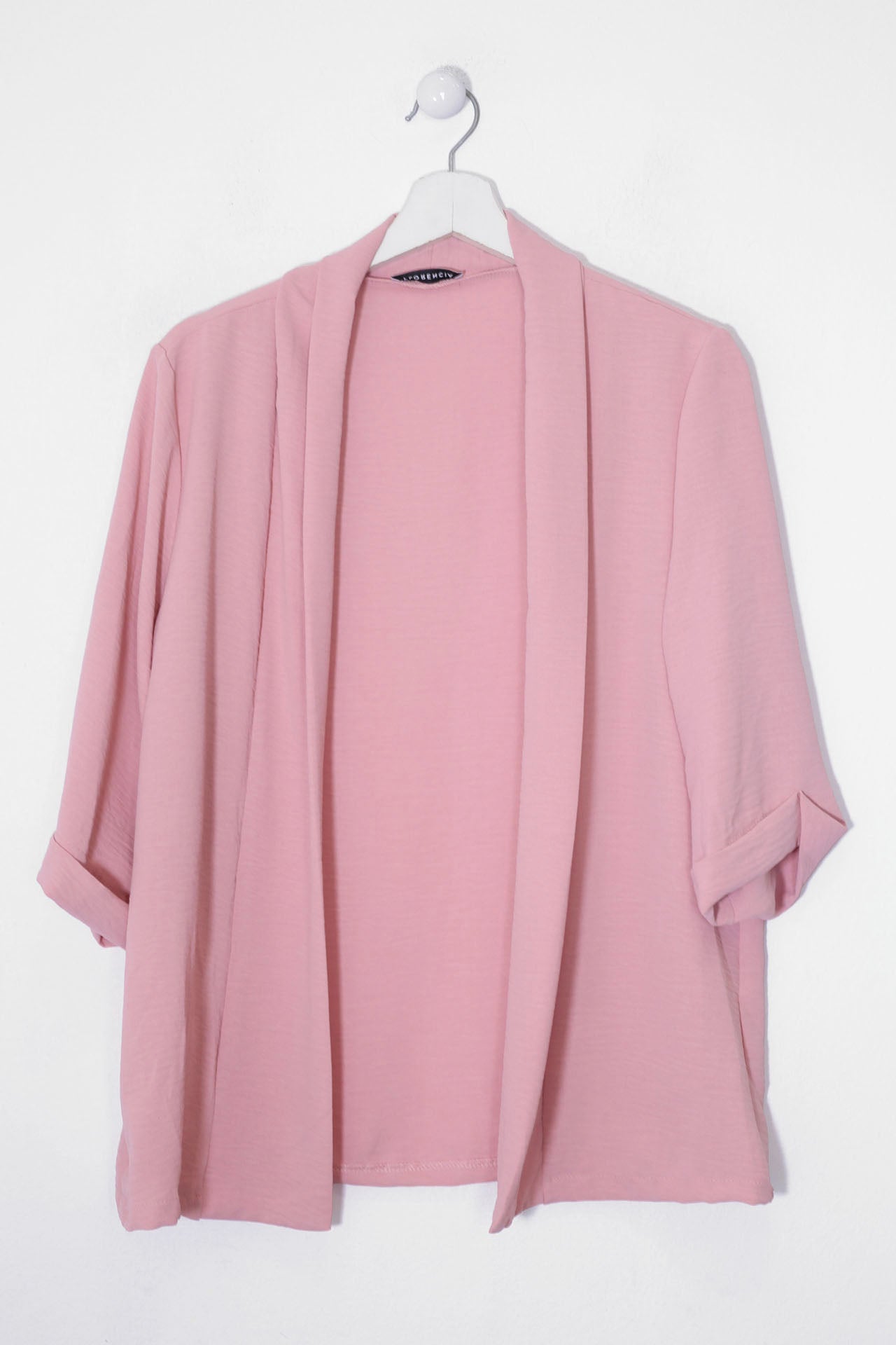 Kimono fluido de escote recto. Manga tres cuartos con puño acabado en vuelta. Tejido ligeramente elástico y texturado.