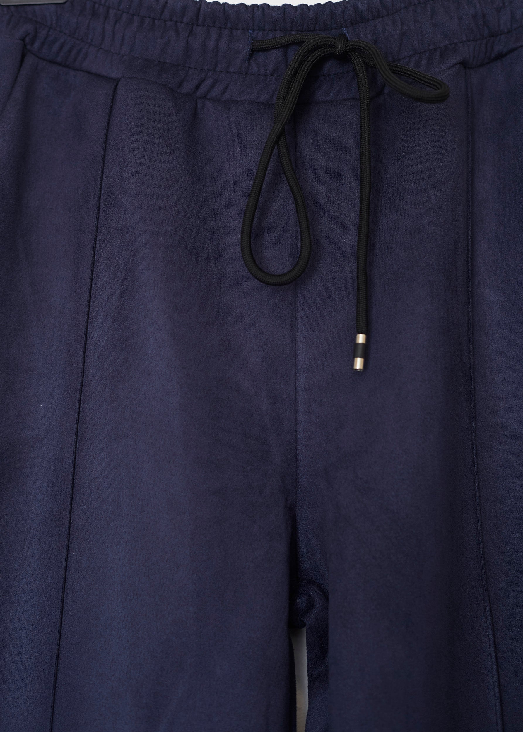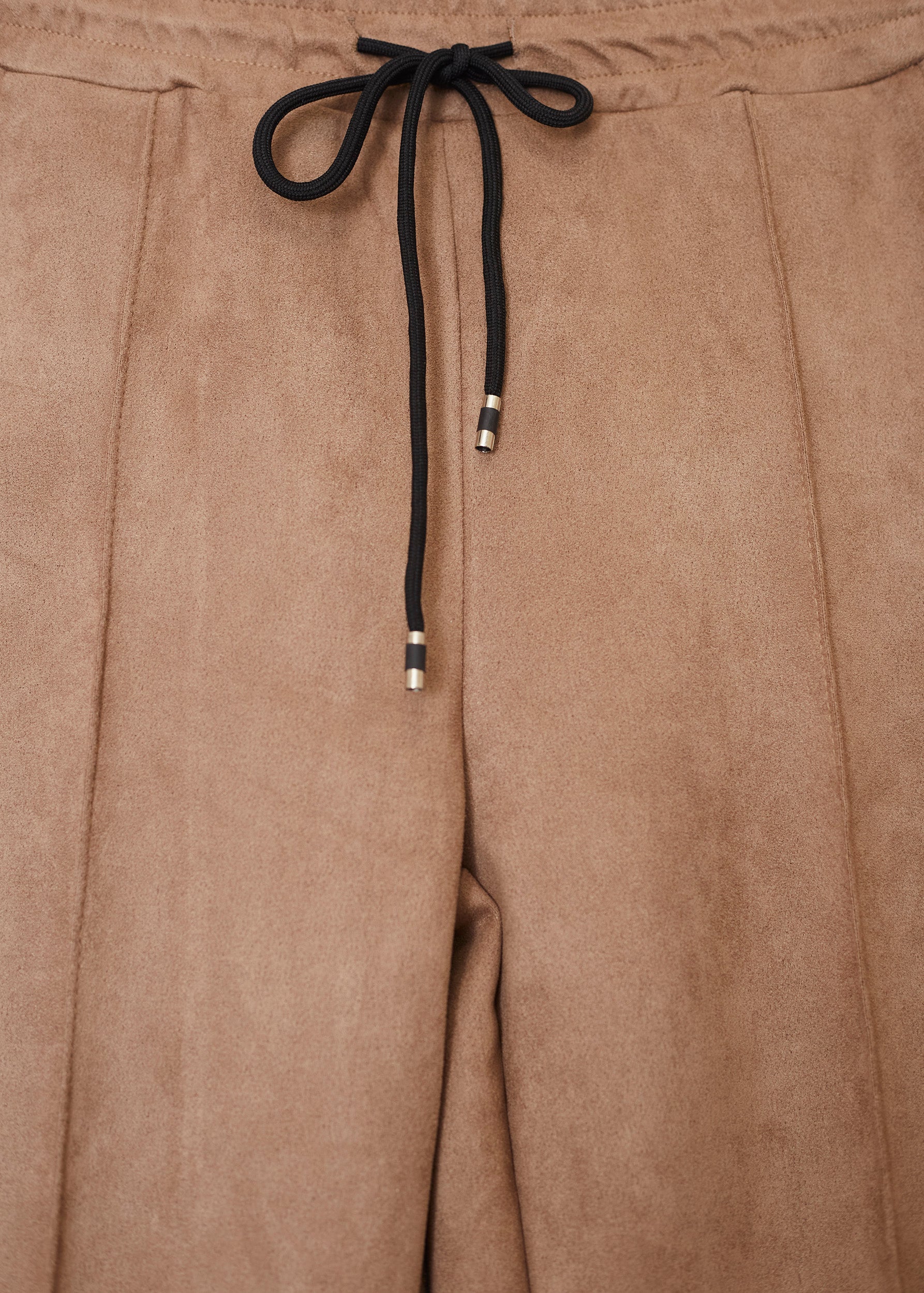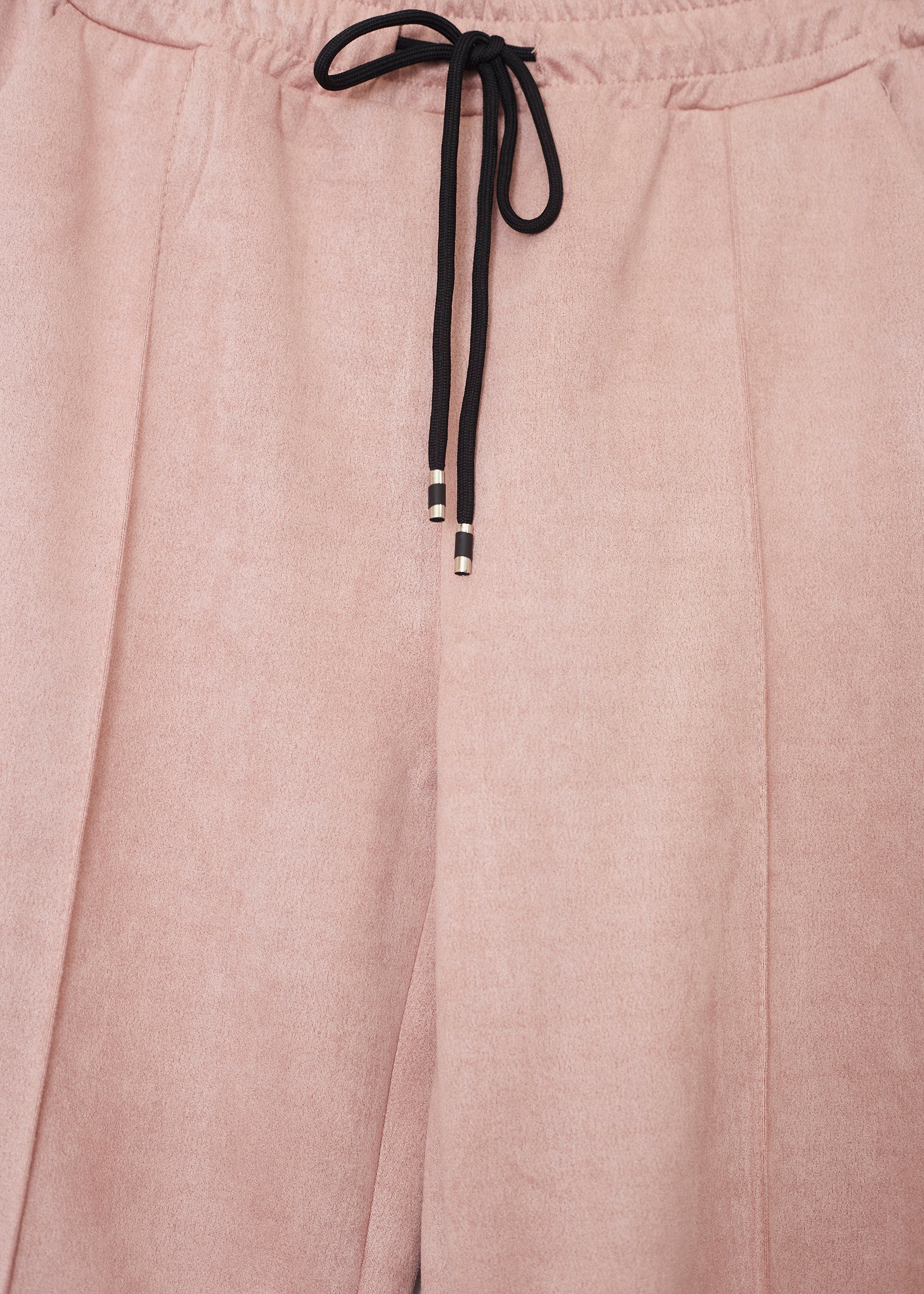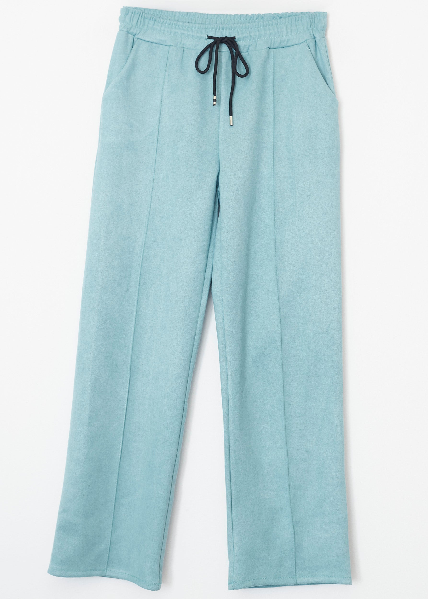 Pantalones rectos de tiro medio. Cintura elástica con cordón ajustable a contraste. Bolsillos laterales.