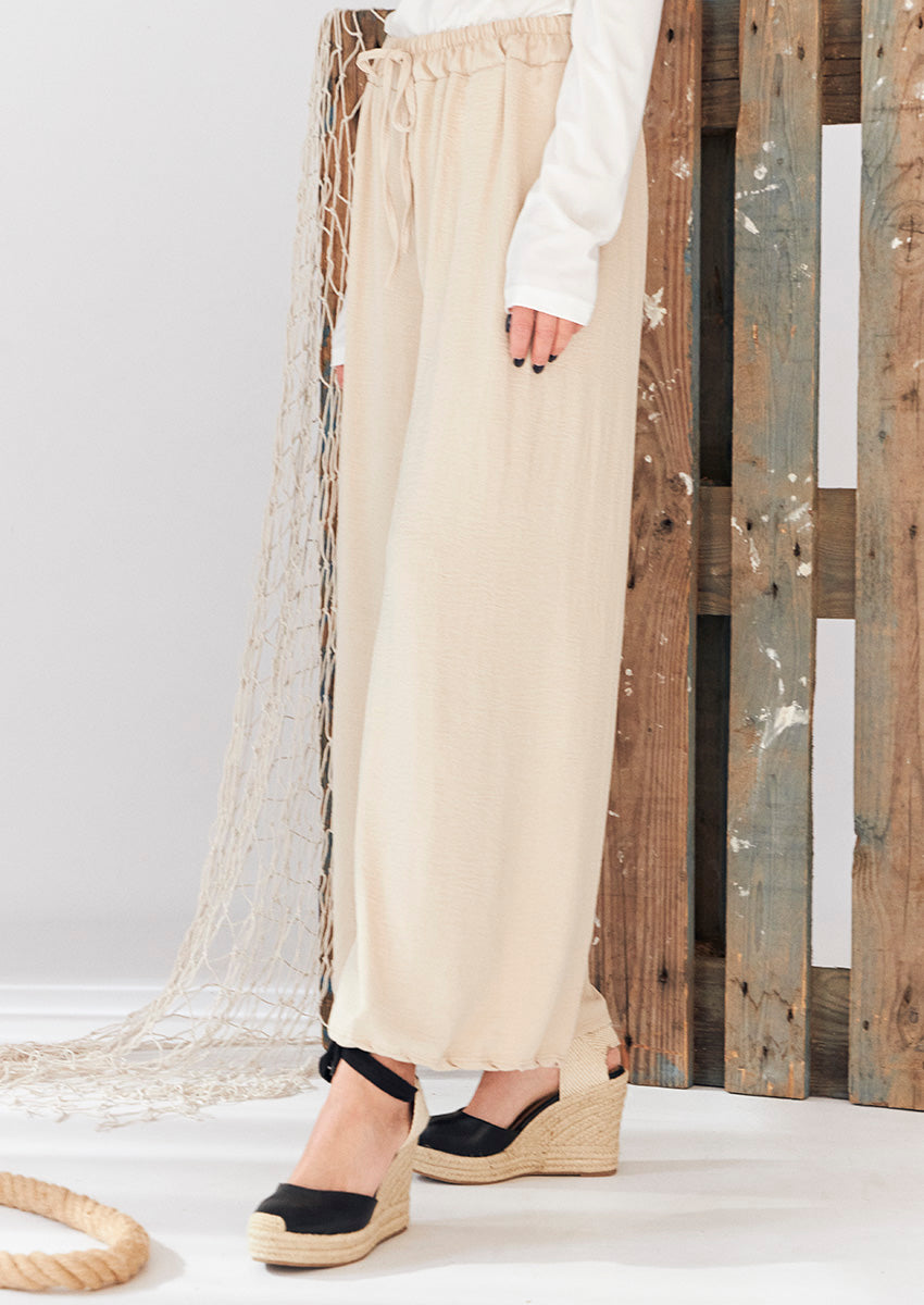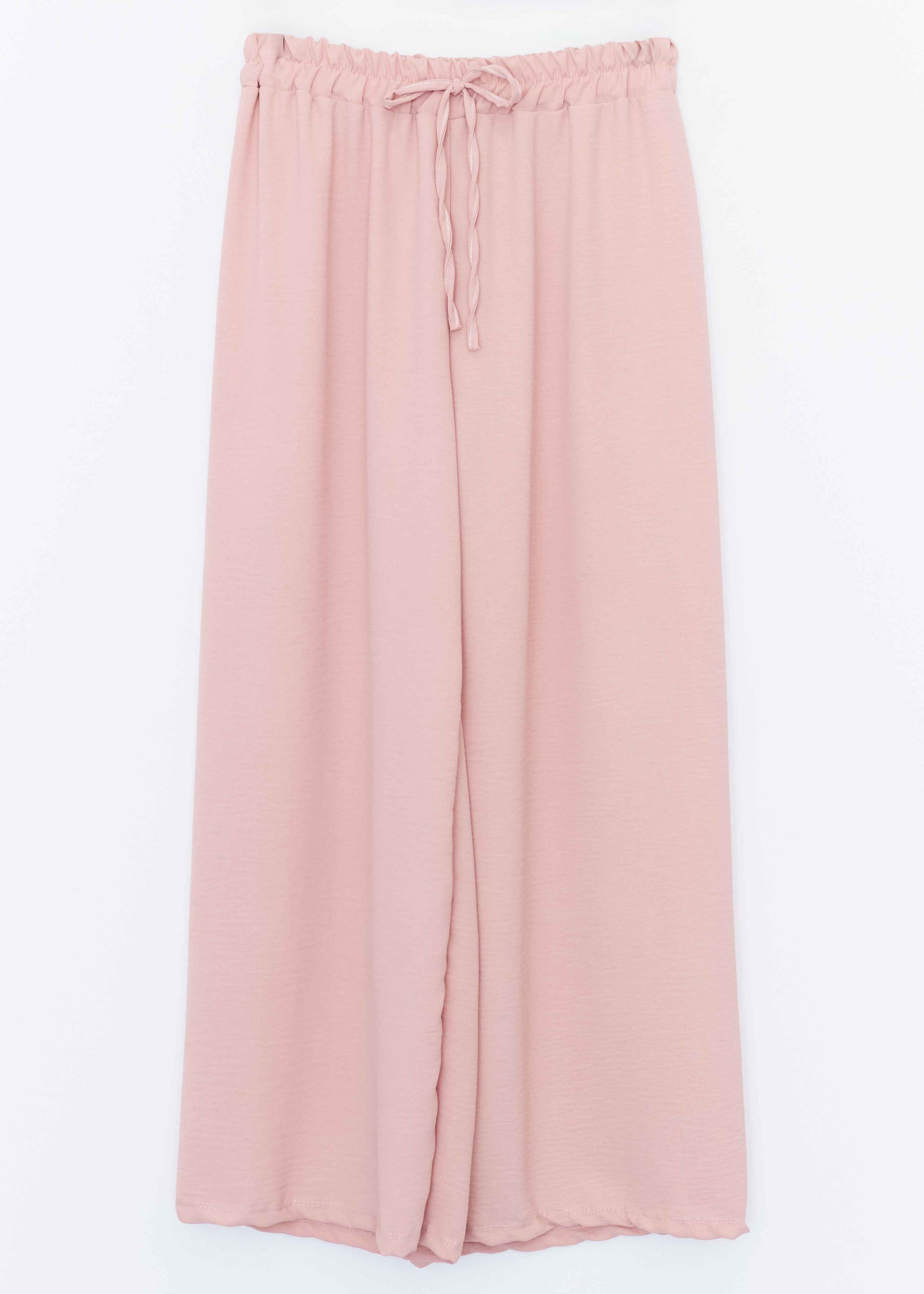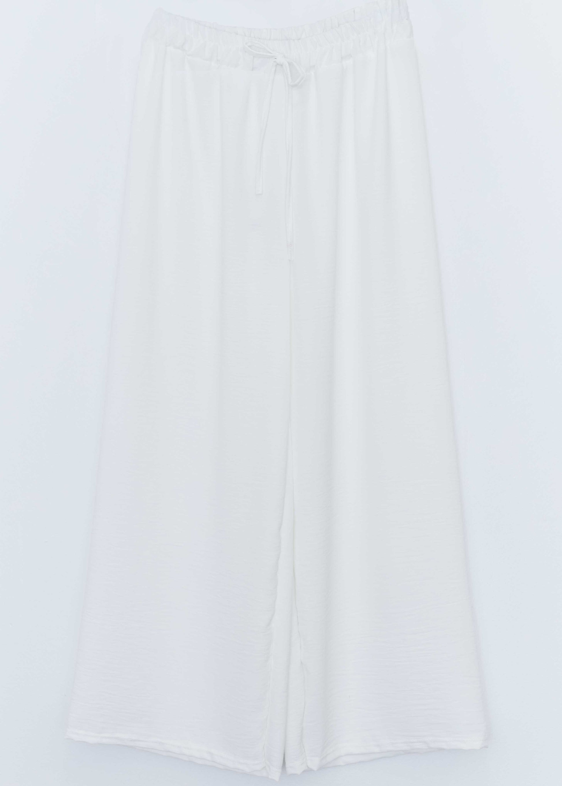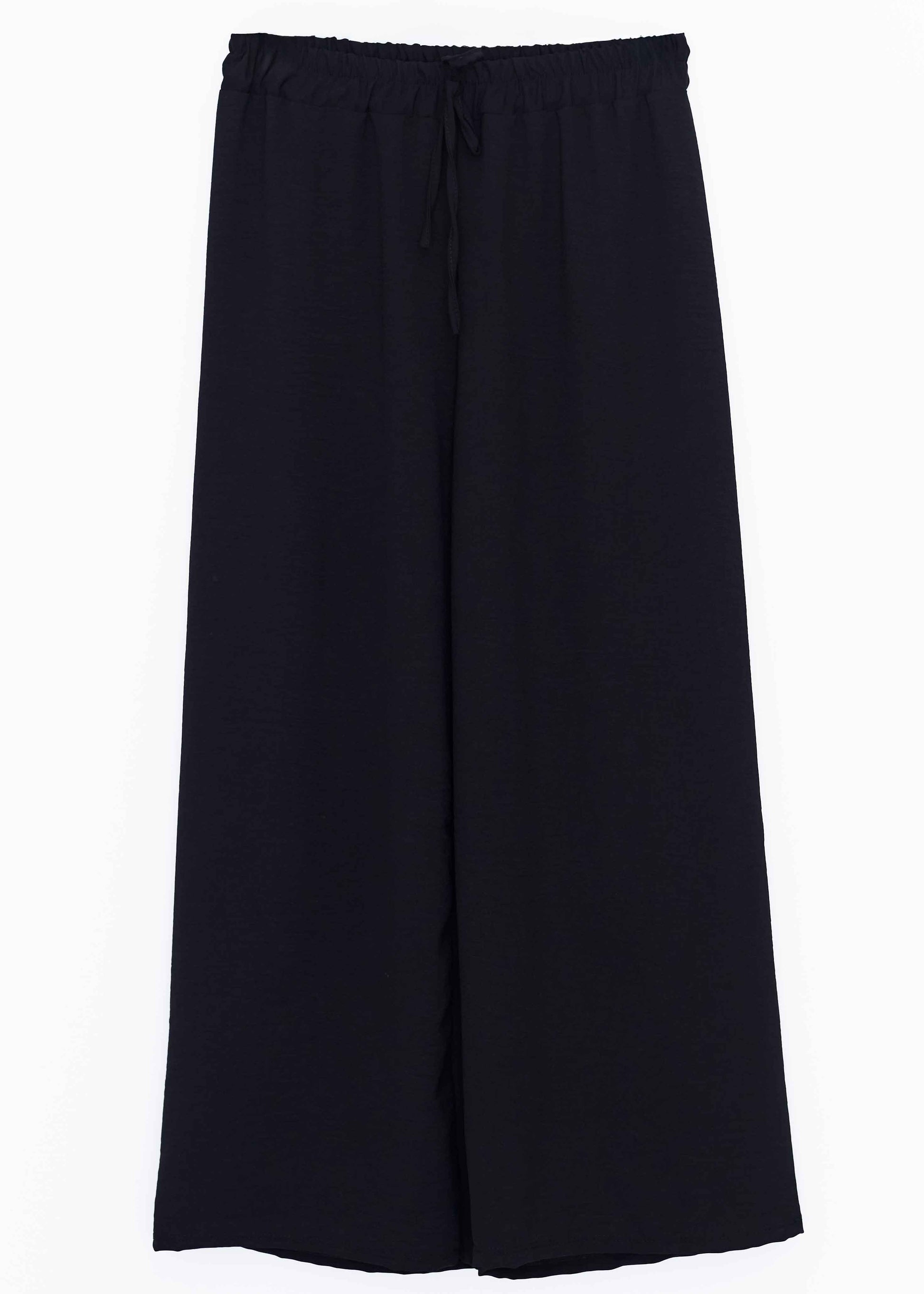 Pantalón palazzo de tiro alto. Cintura elástica con detalle de cordón.