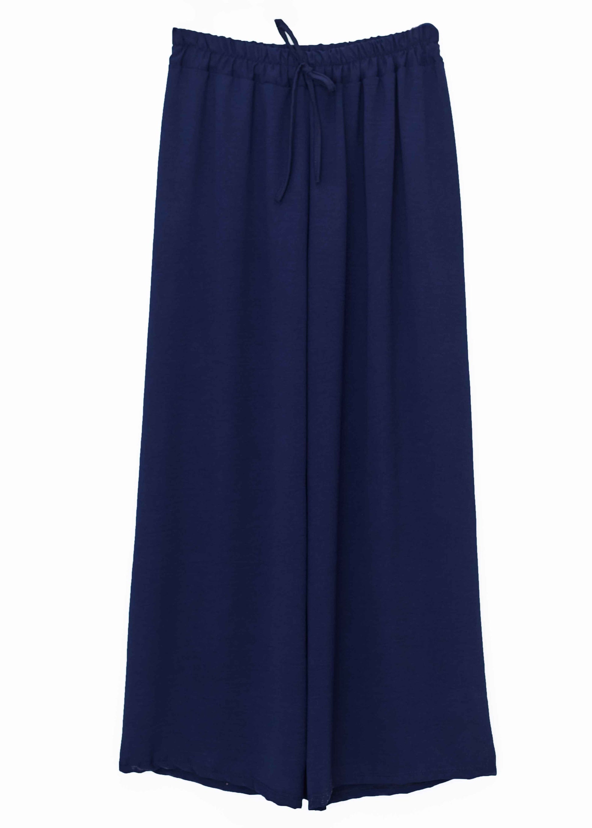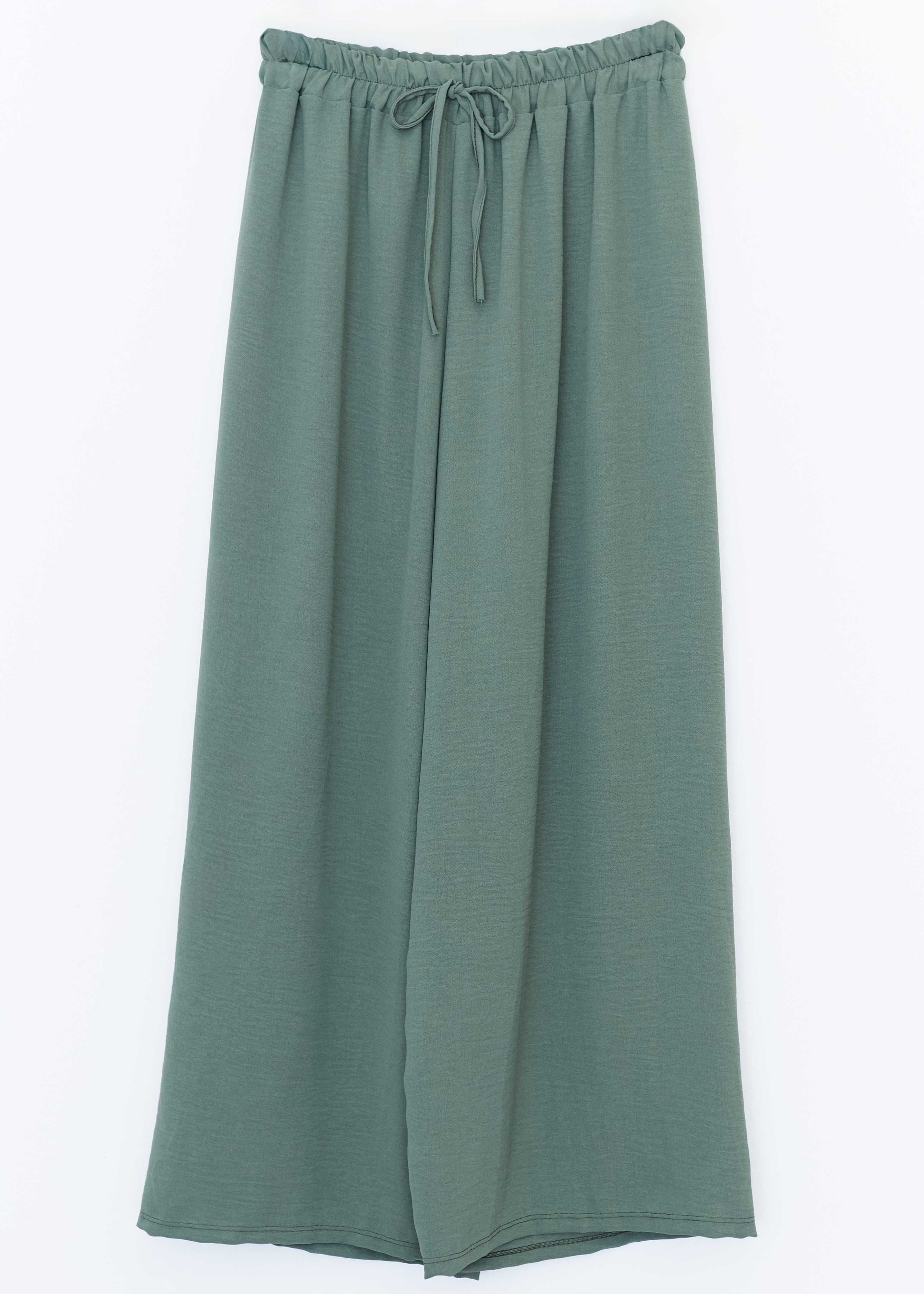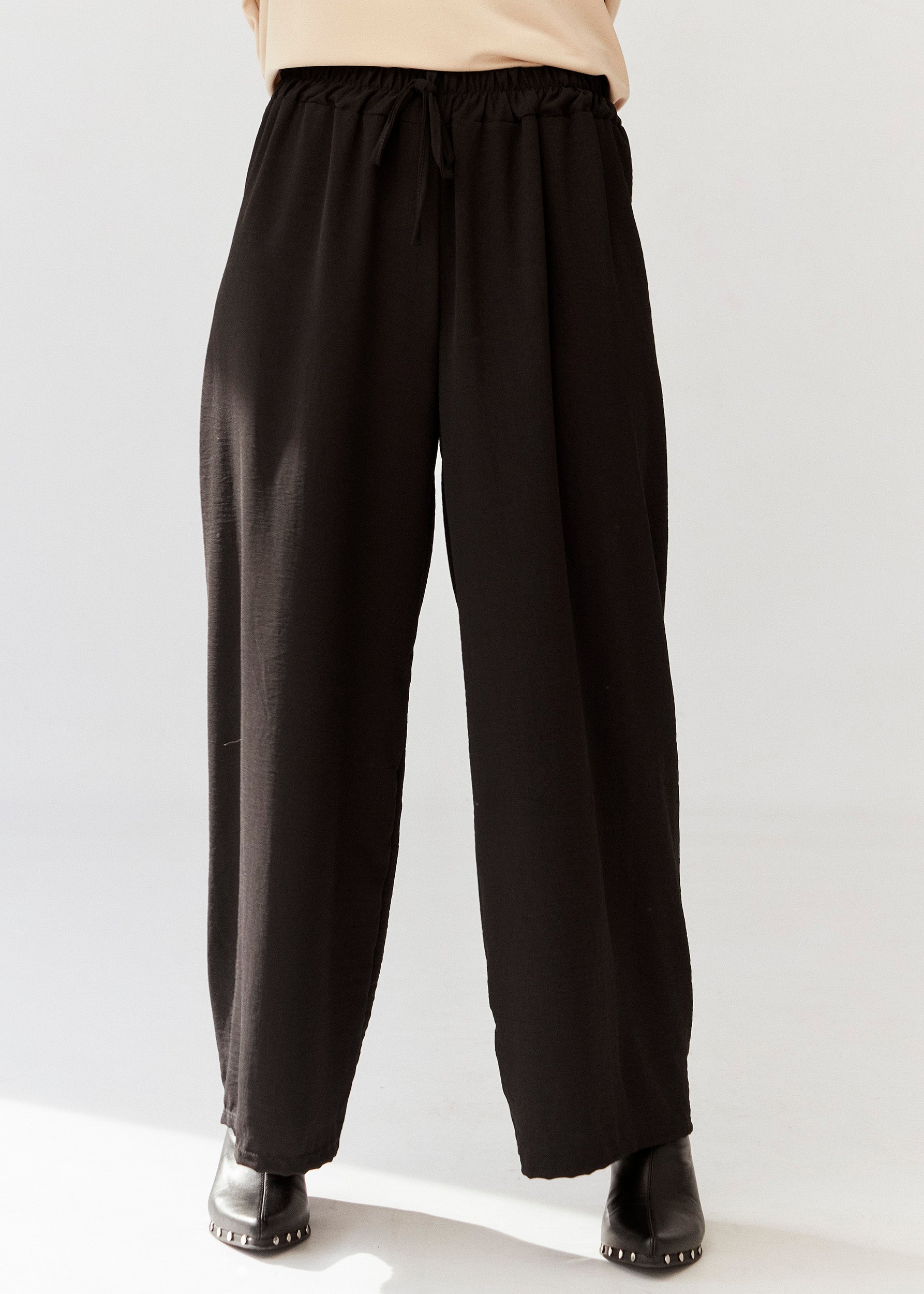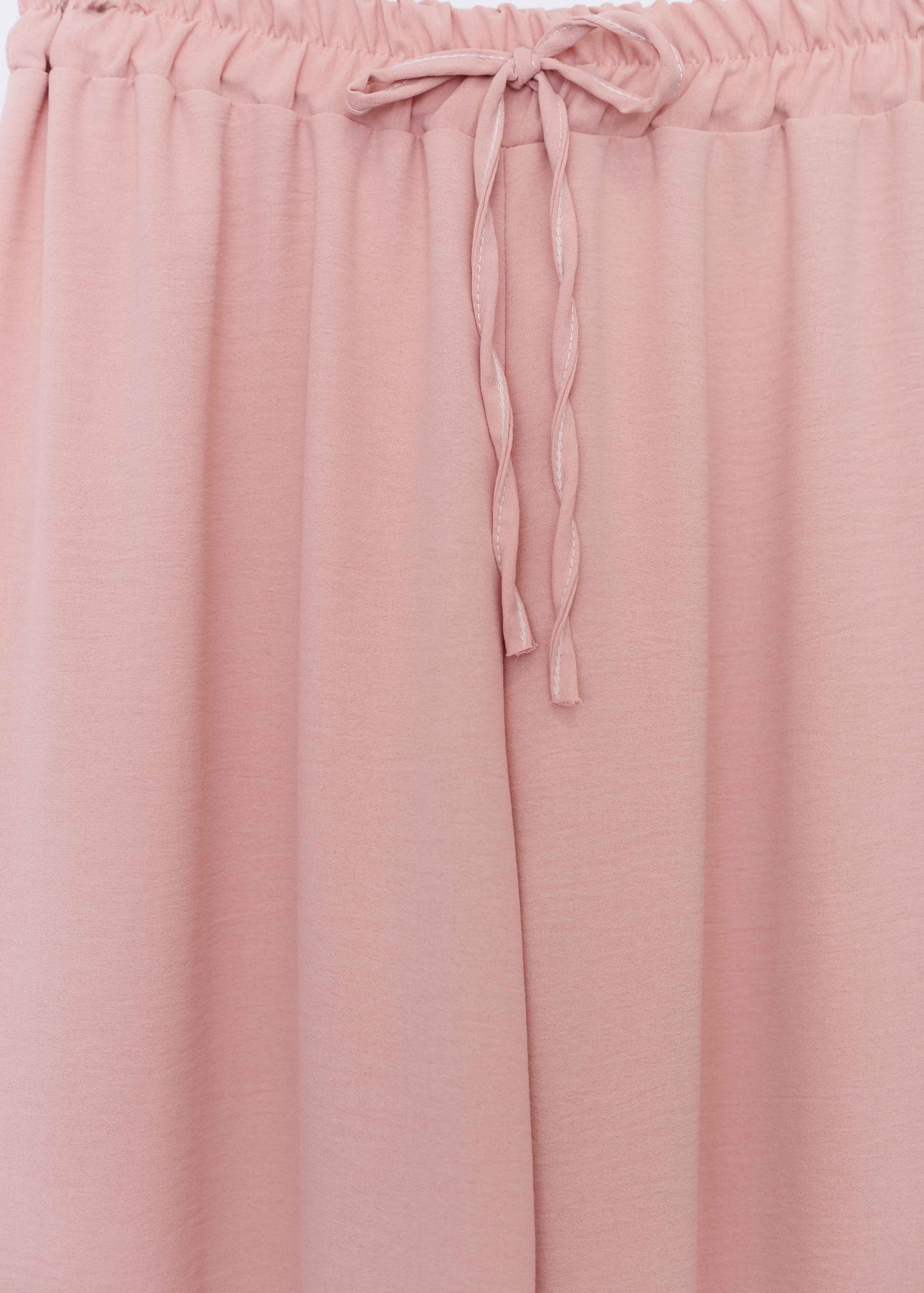 Pantalón palazzo de tiro alto. Cintura elástica con detalle de cordón.