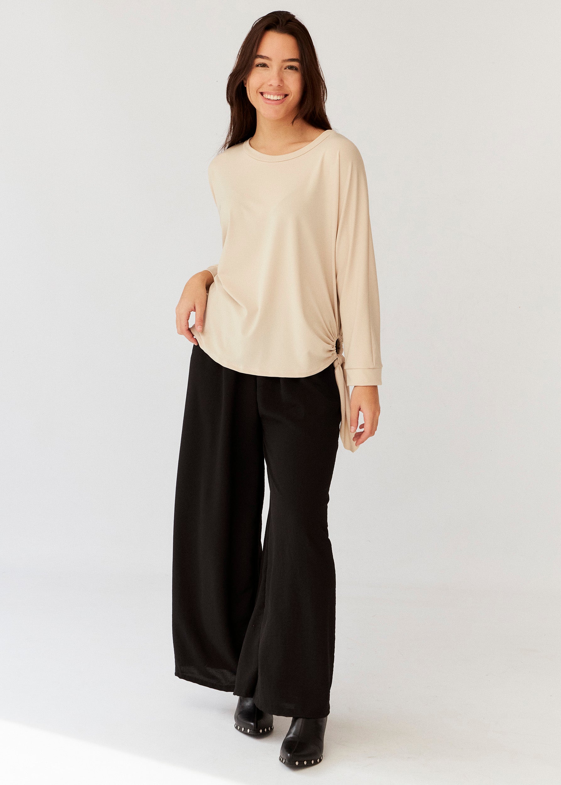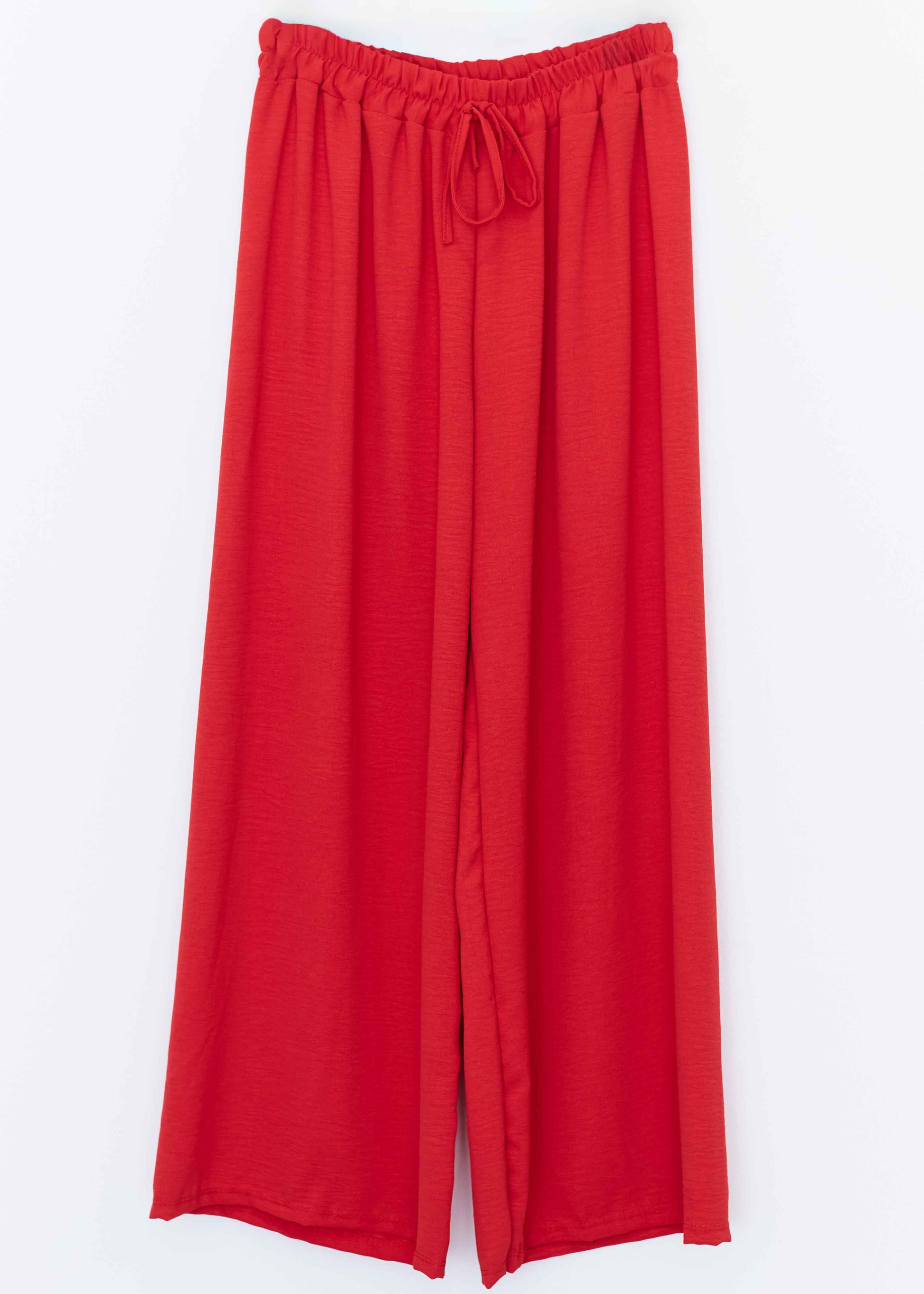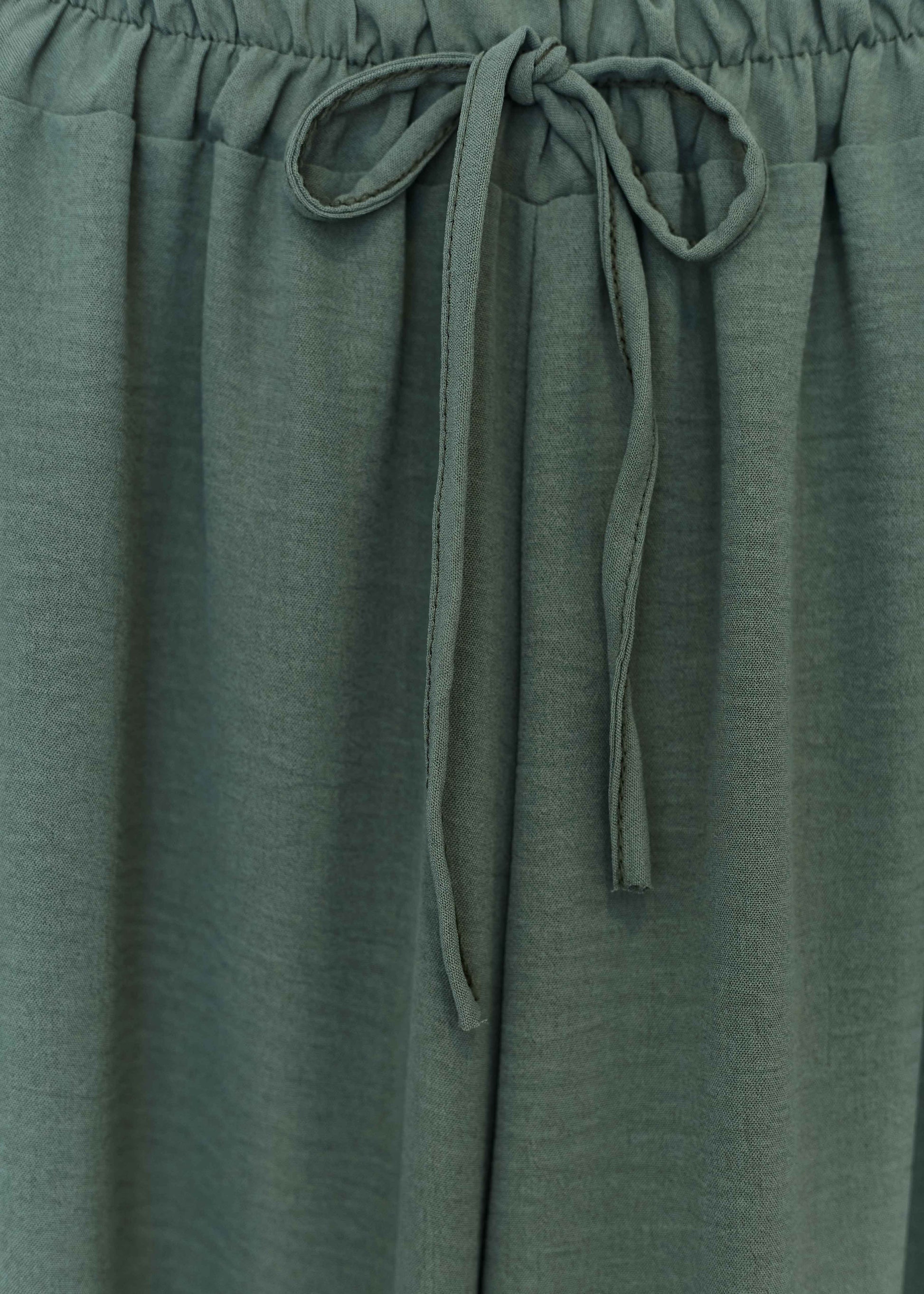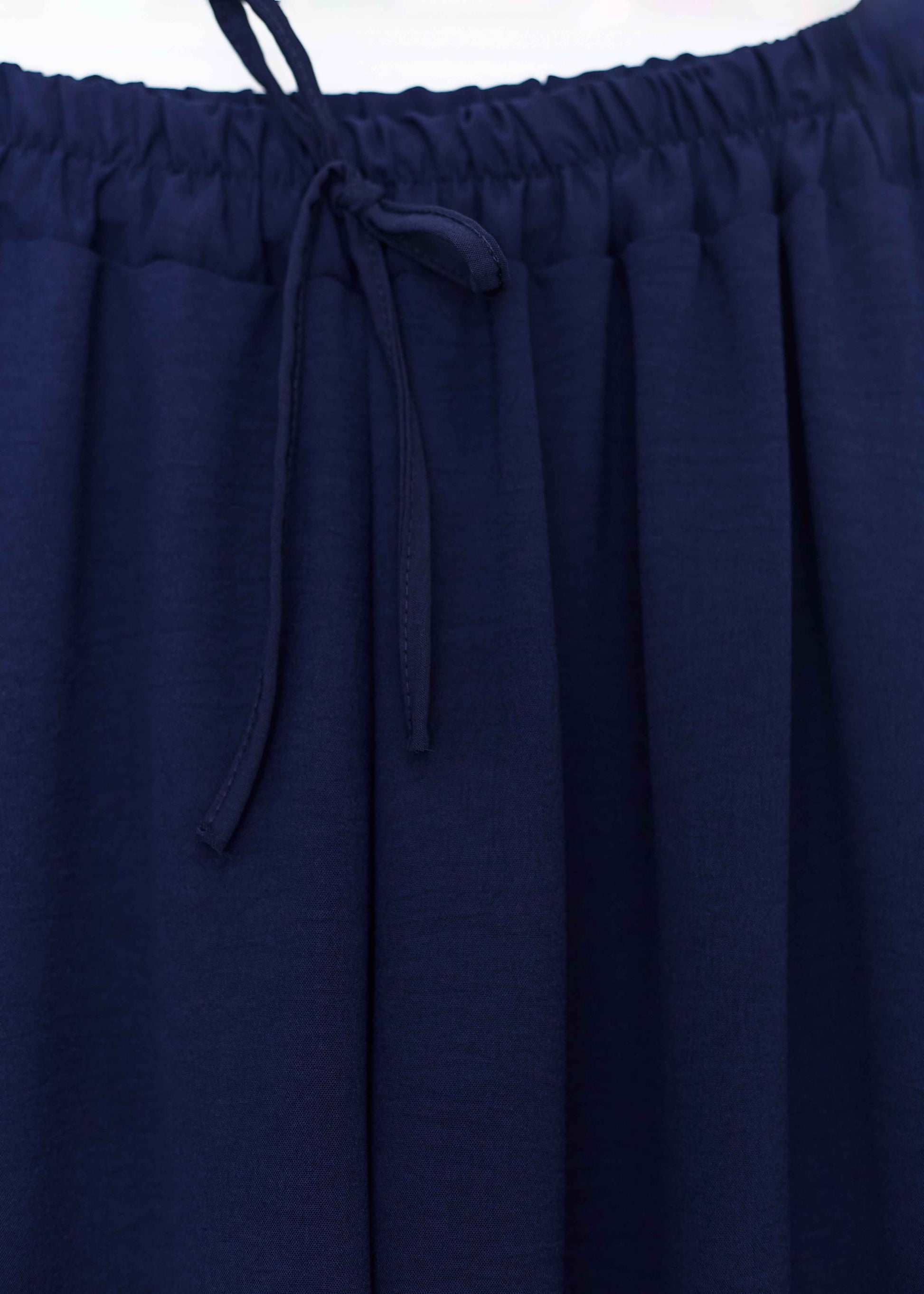 Pantalón palazzo de tiro alto. Cintura elástica con detalle de cordón.