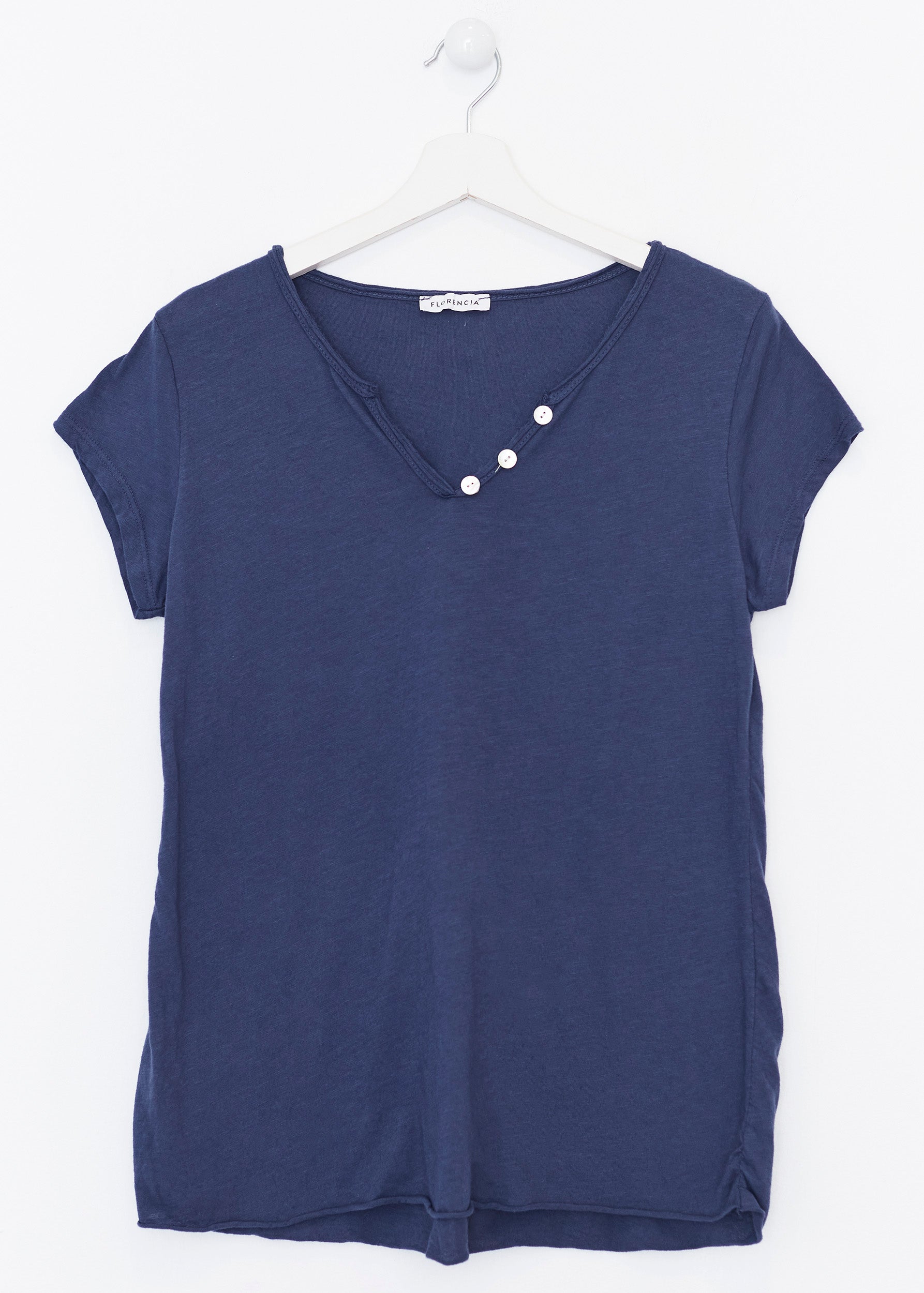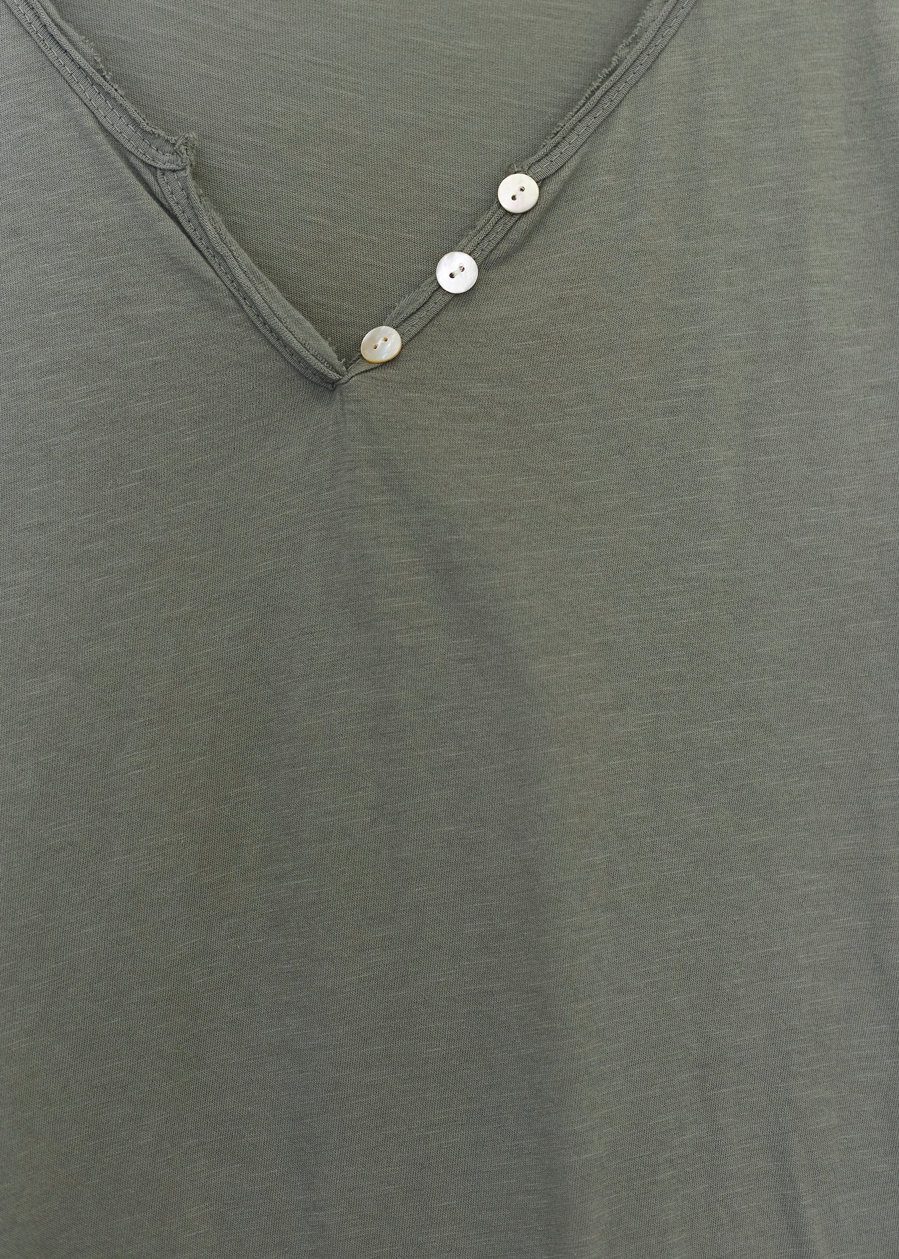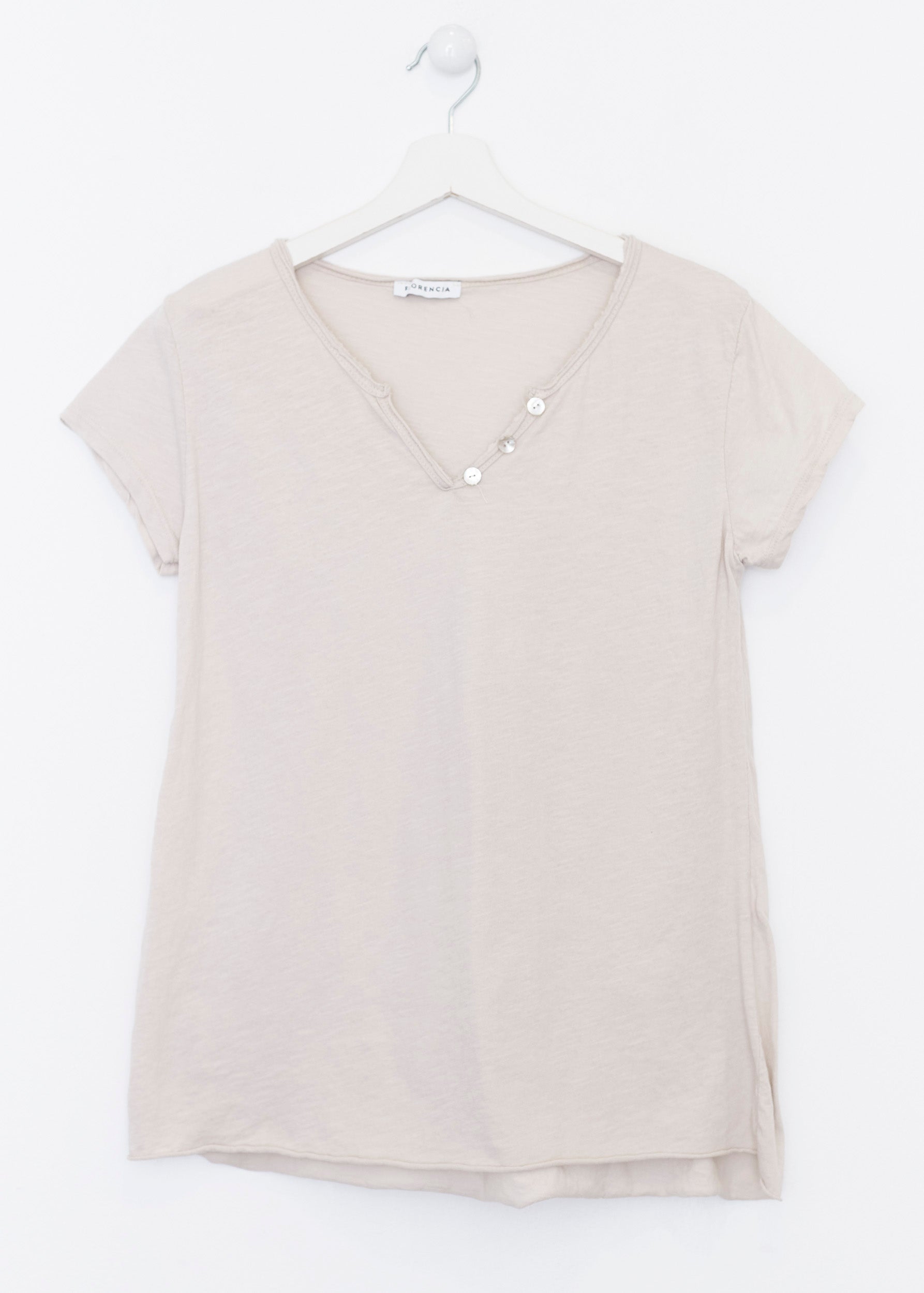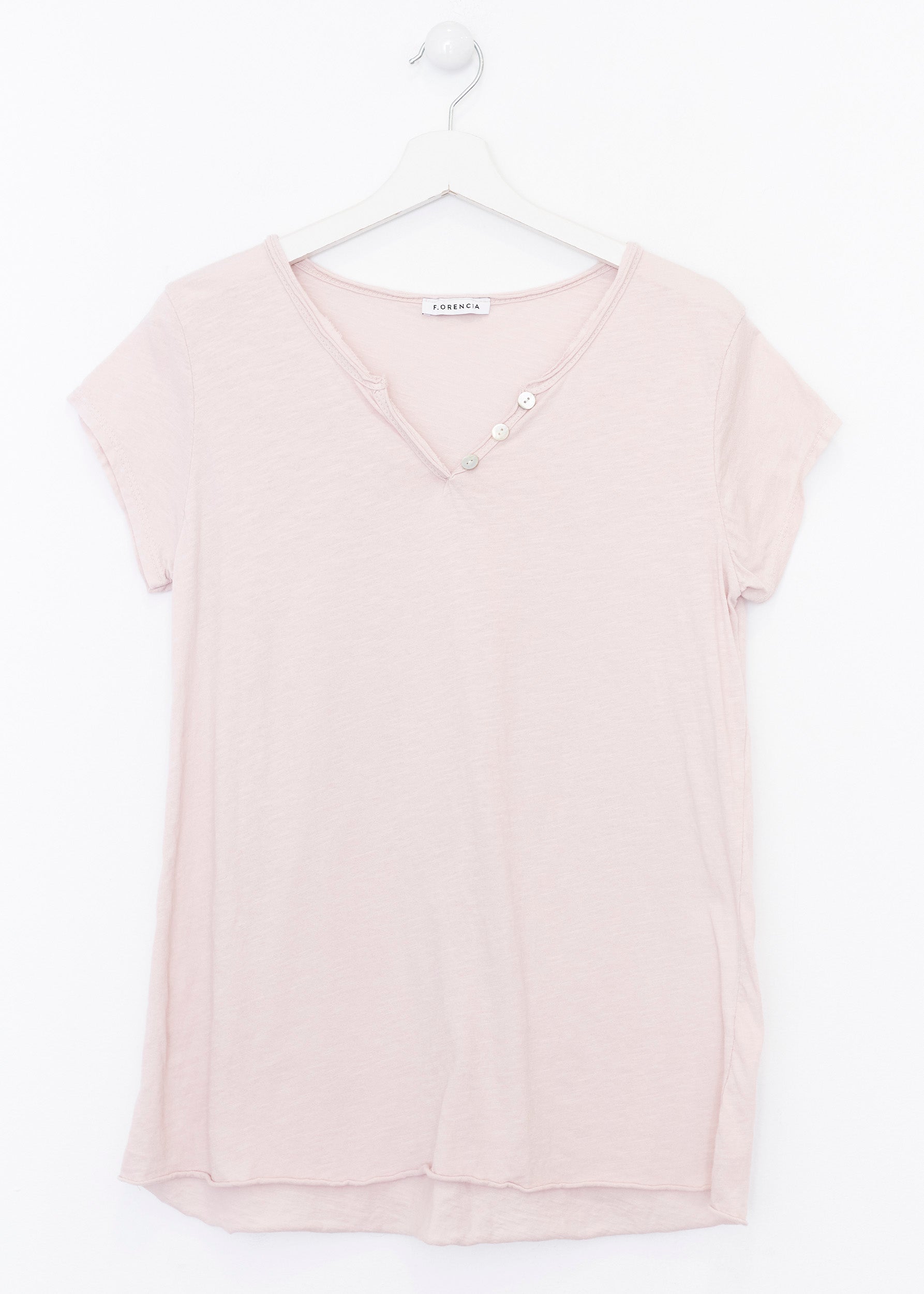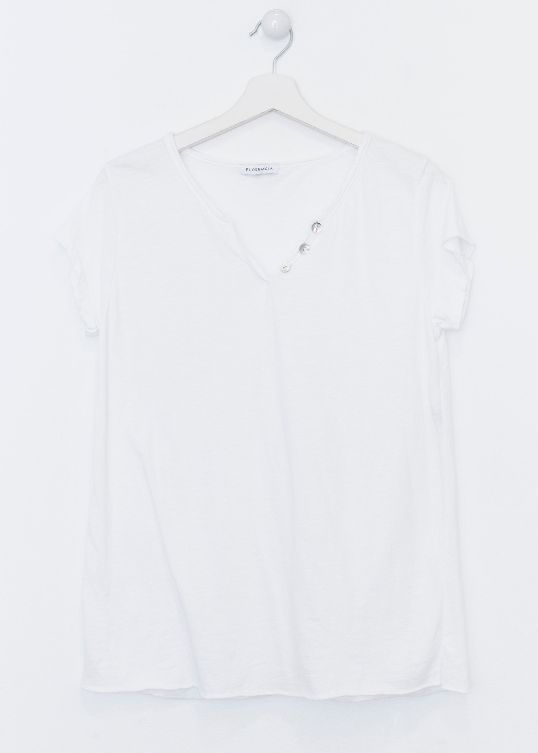 Camiseta de escote en punta con detalle de botones y manga corta.