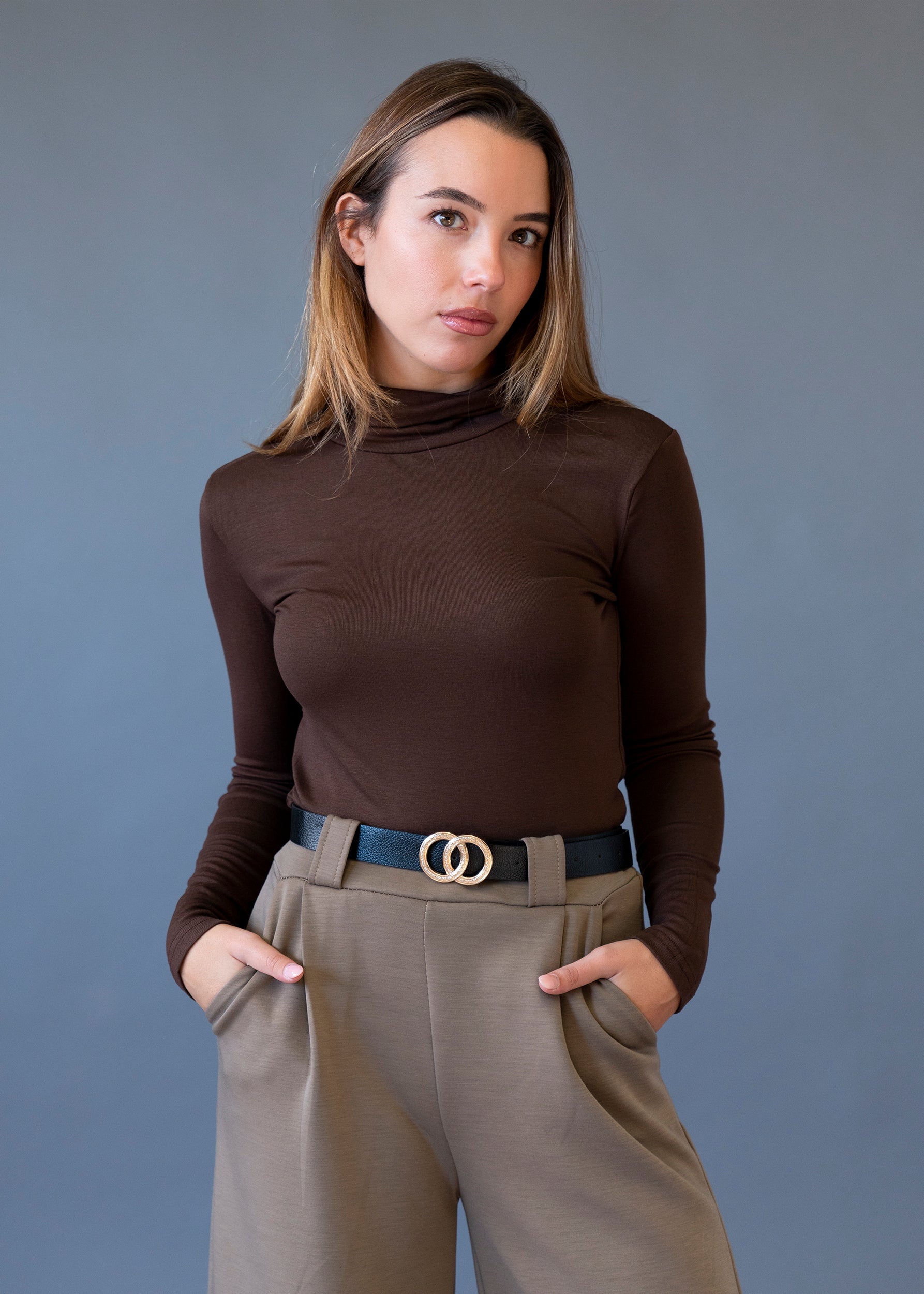 Camiseta con cuello alto y manga larga. Tejido elástico.