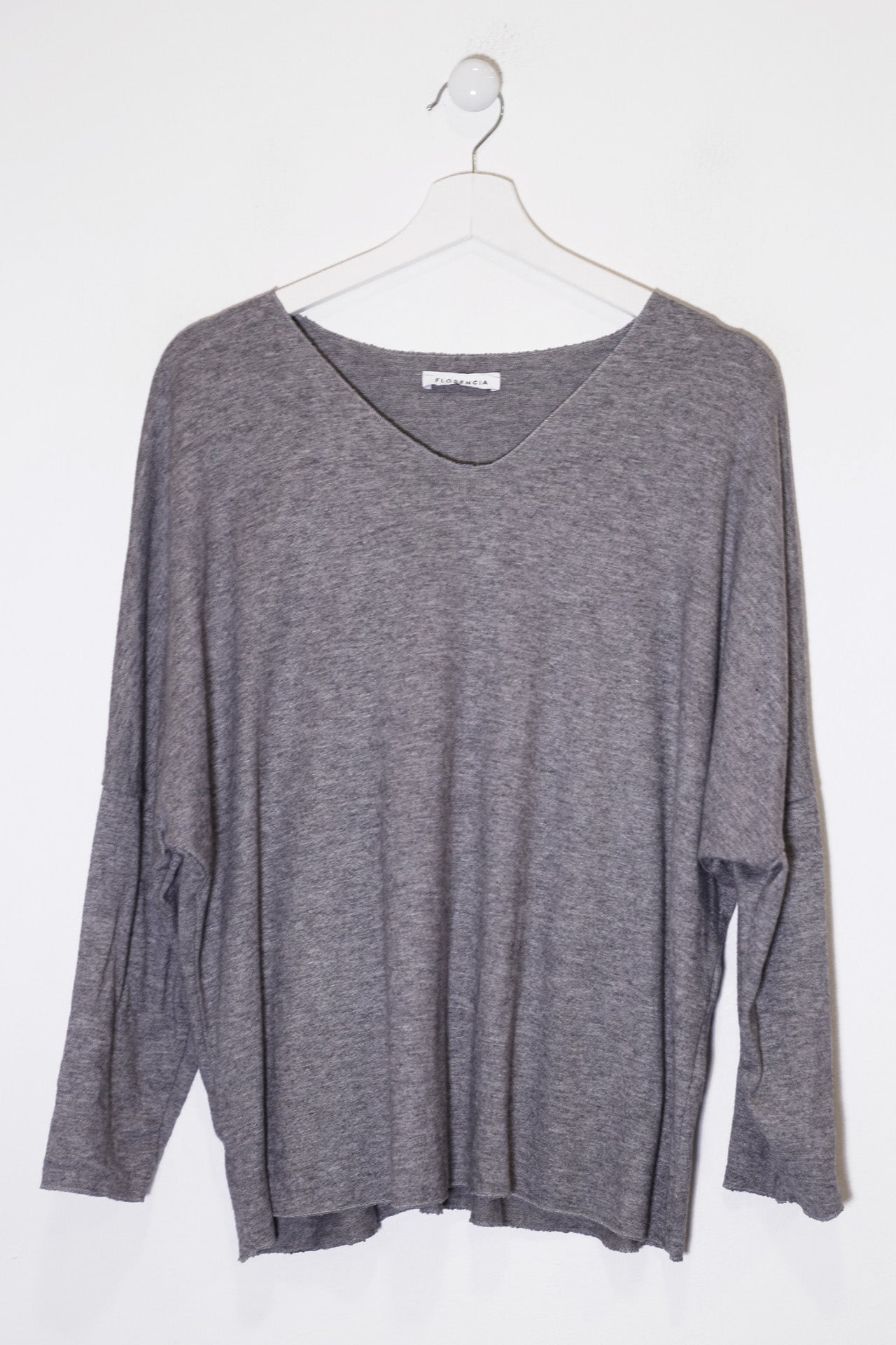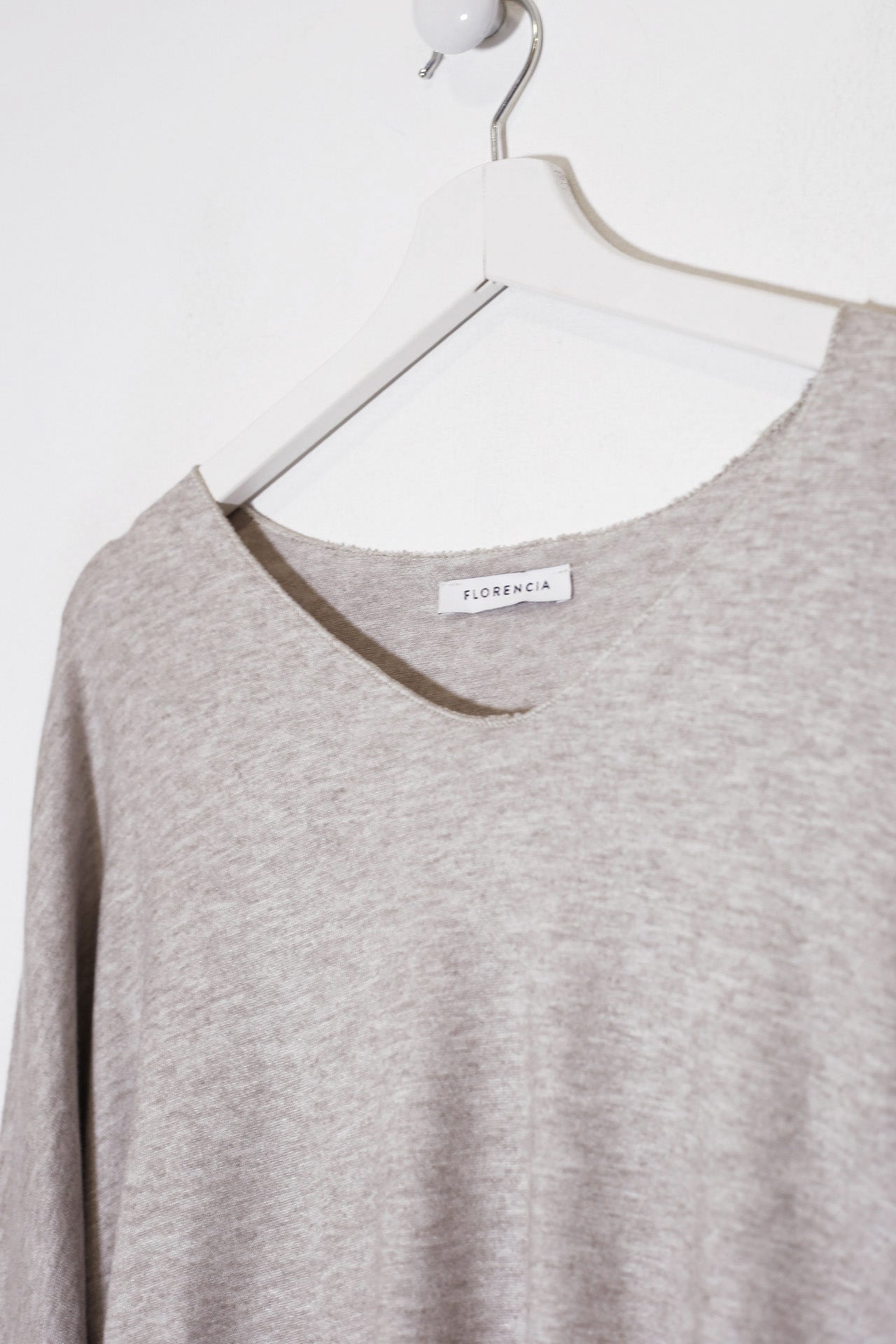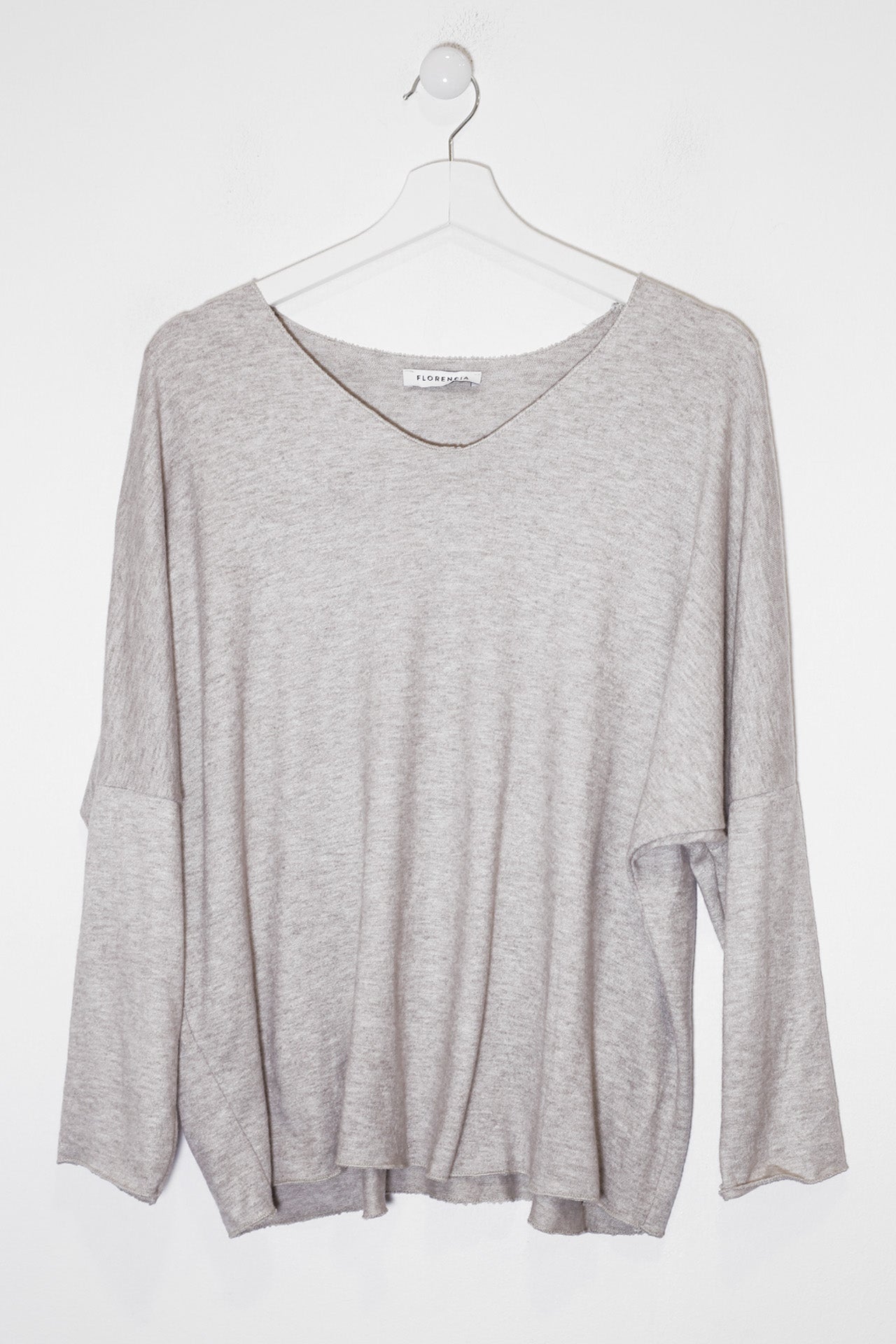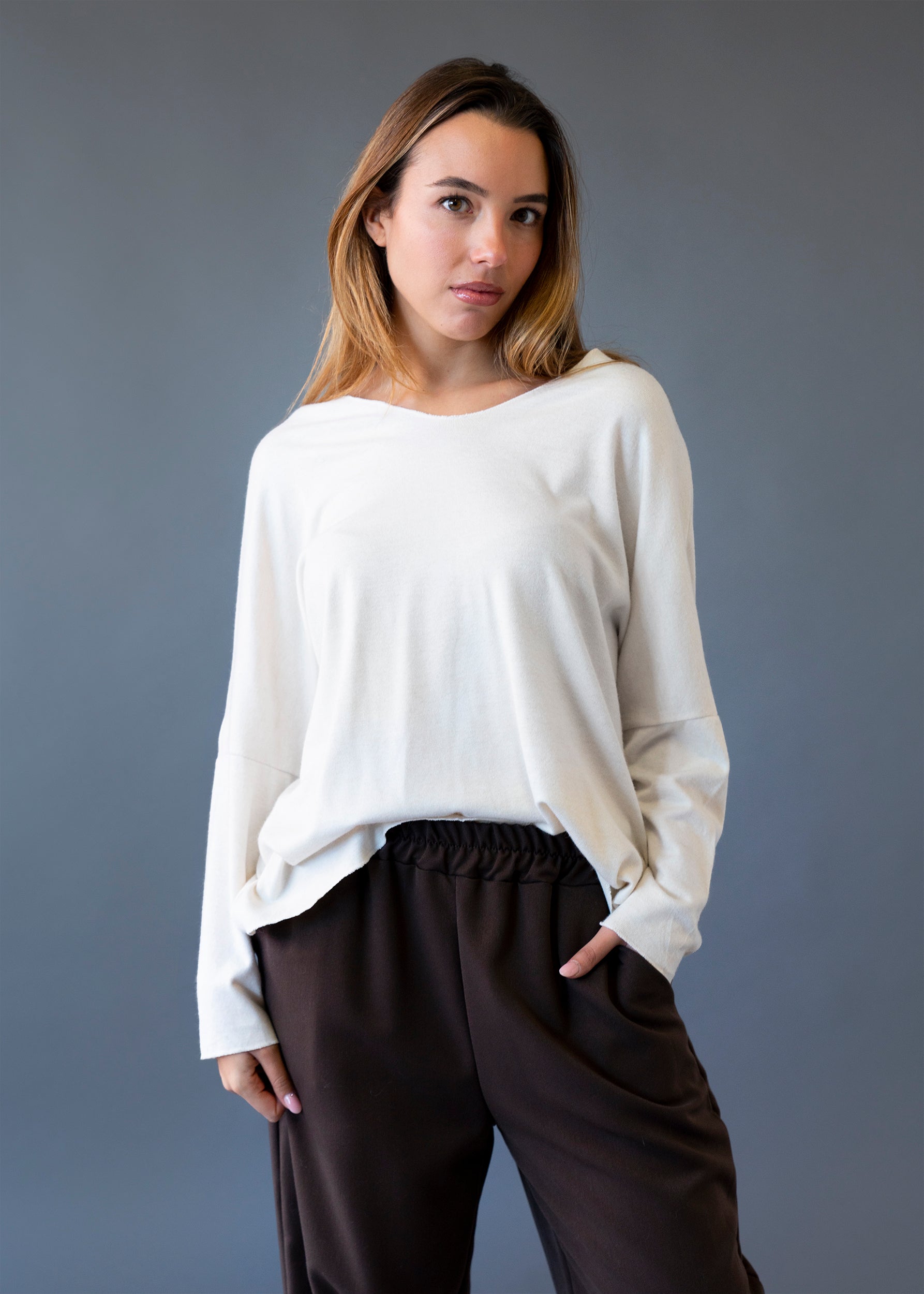 Camiseta con cuello en punta y manga larga. Corte amplio. Tejido confeccionado en punto.