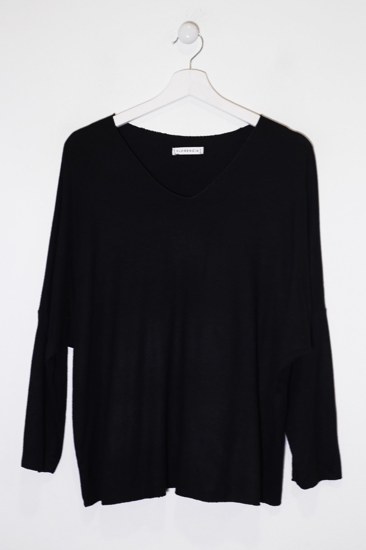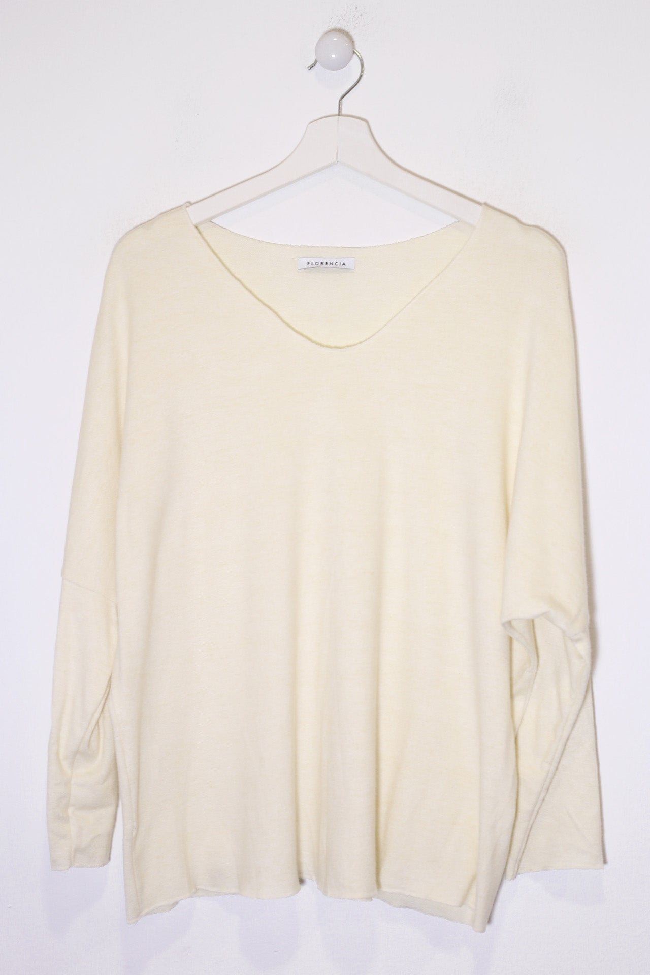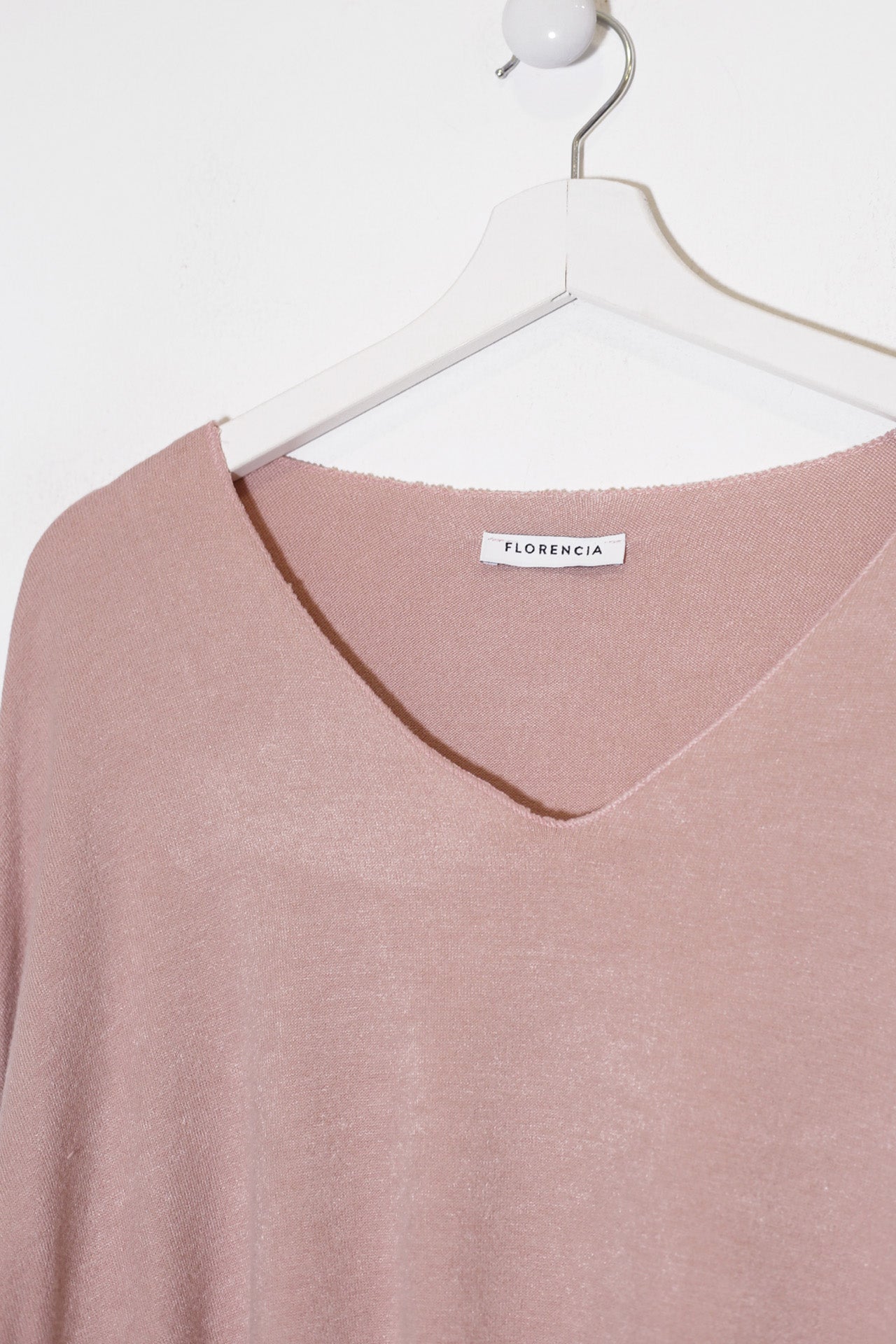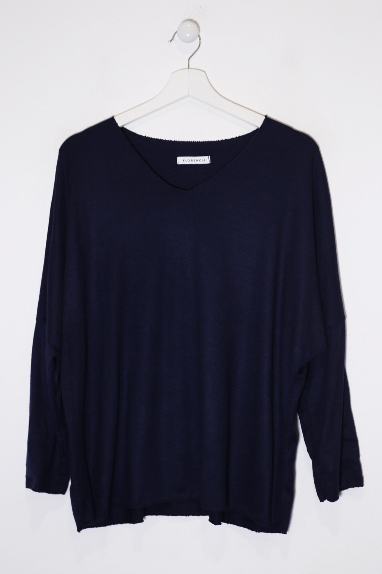 Camiseta con cuello en punta y manga larga. Corte amplio. Tejido confeccionado en punto.