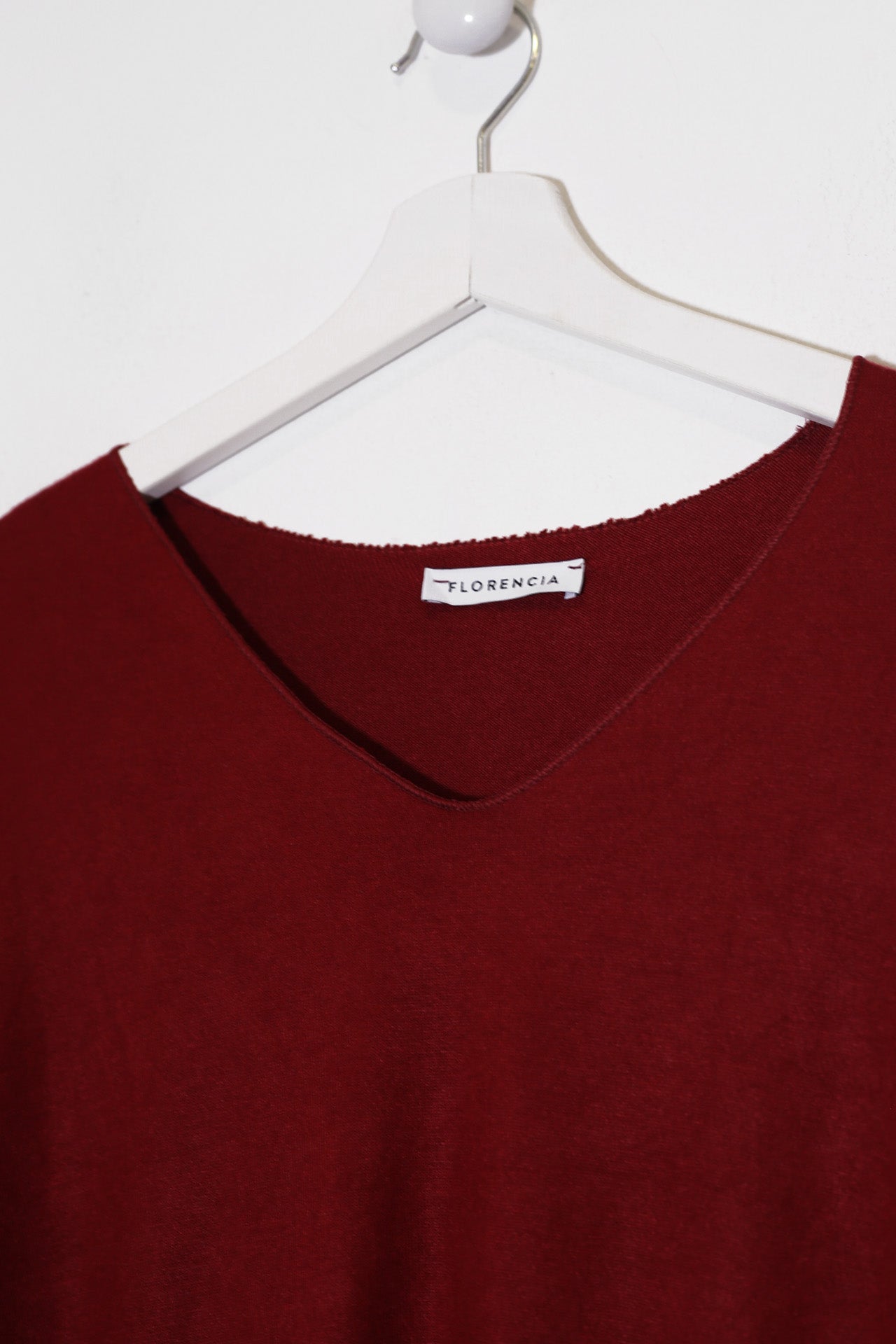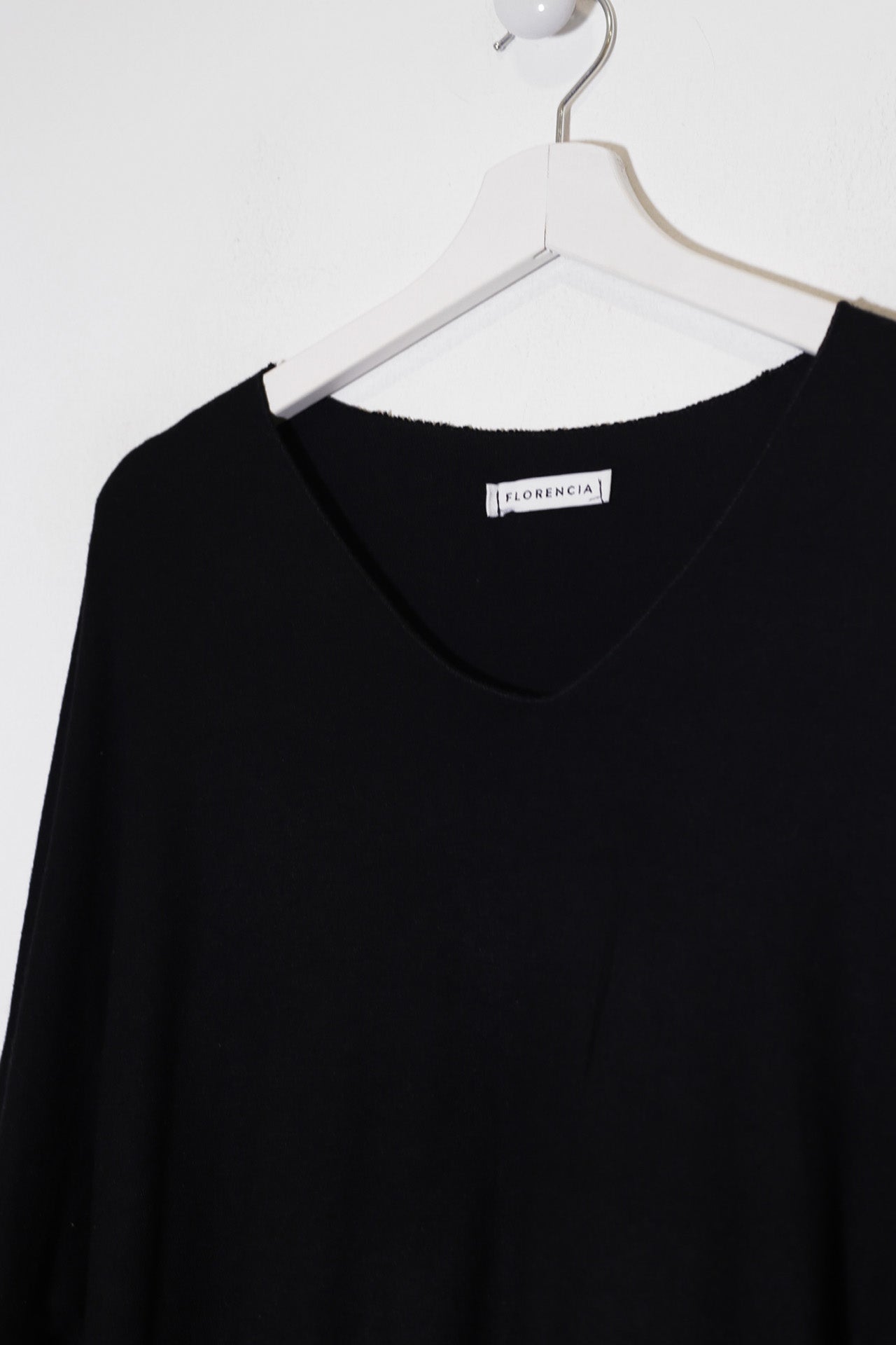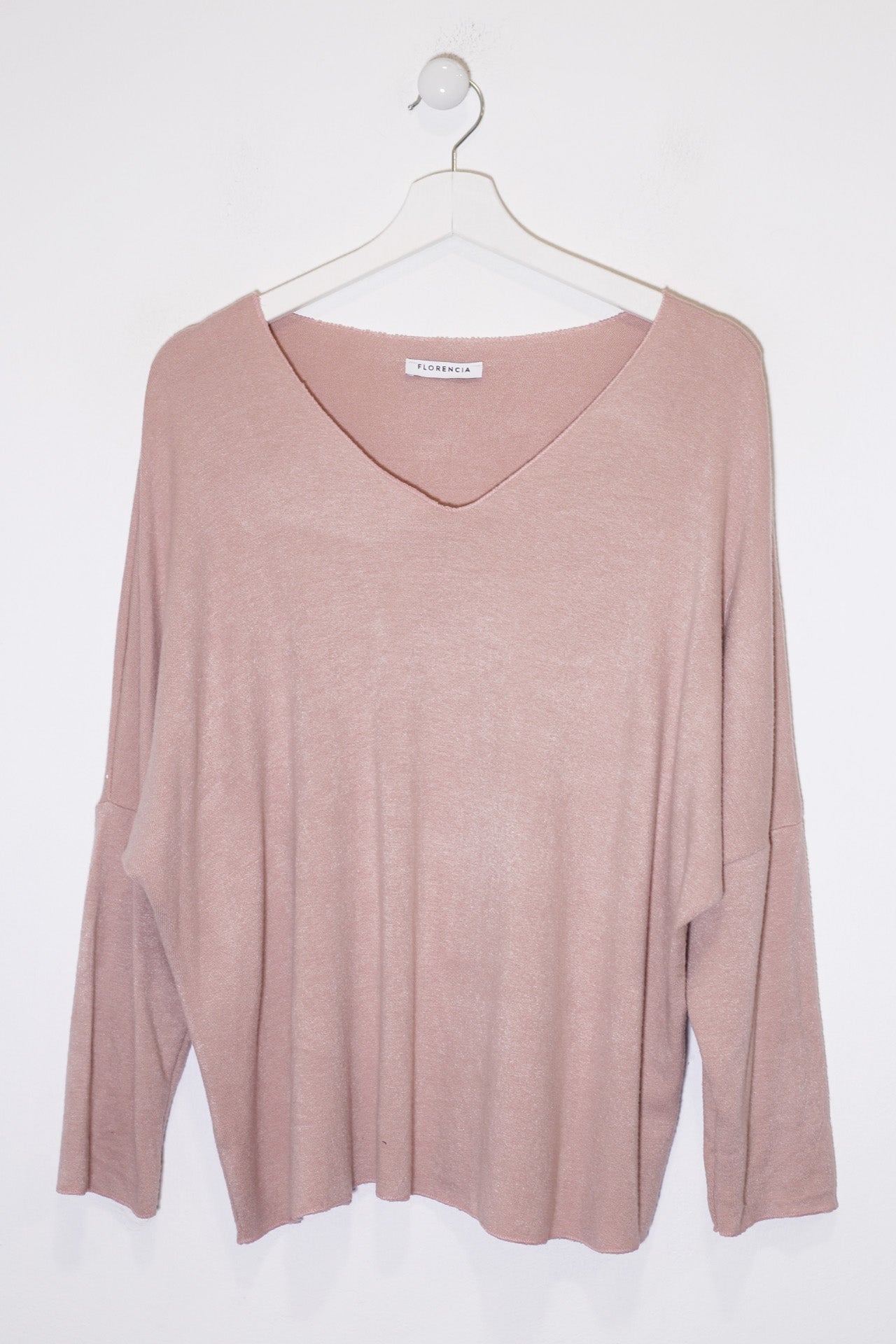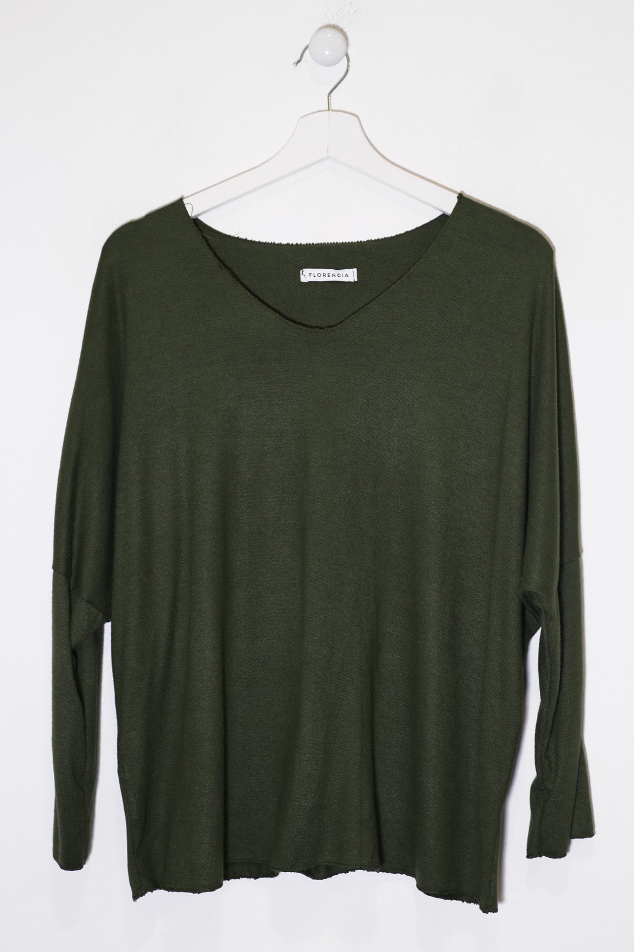 Camiseta con cuello en punta y manga larga. Corte amplio. Tejido confeccionado en punto.