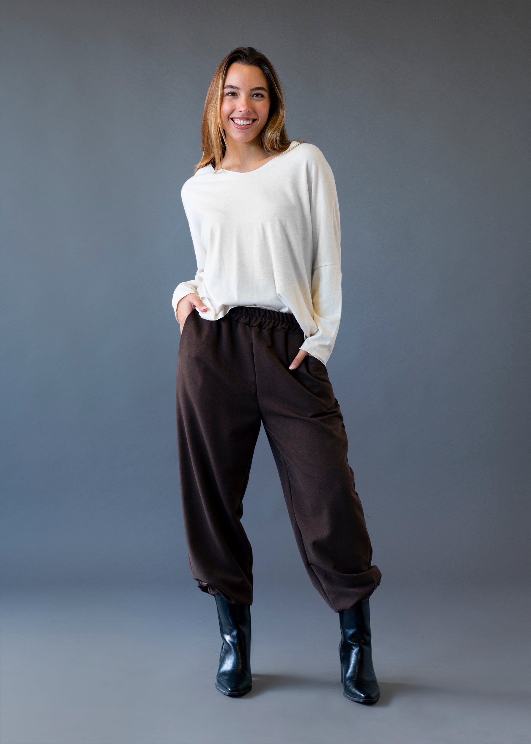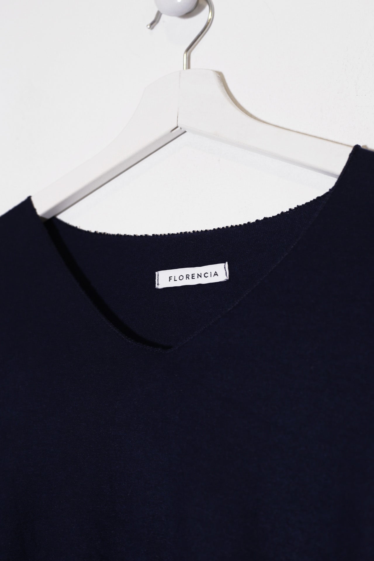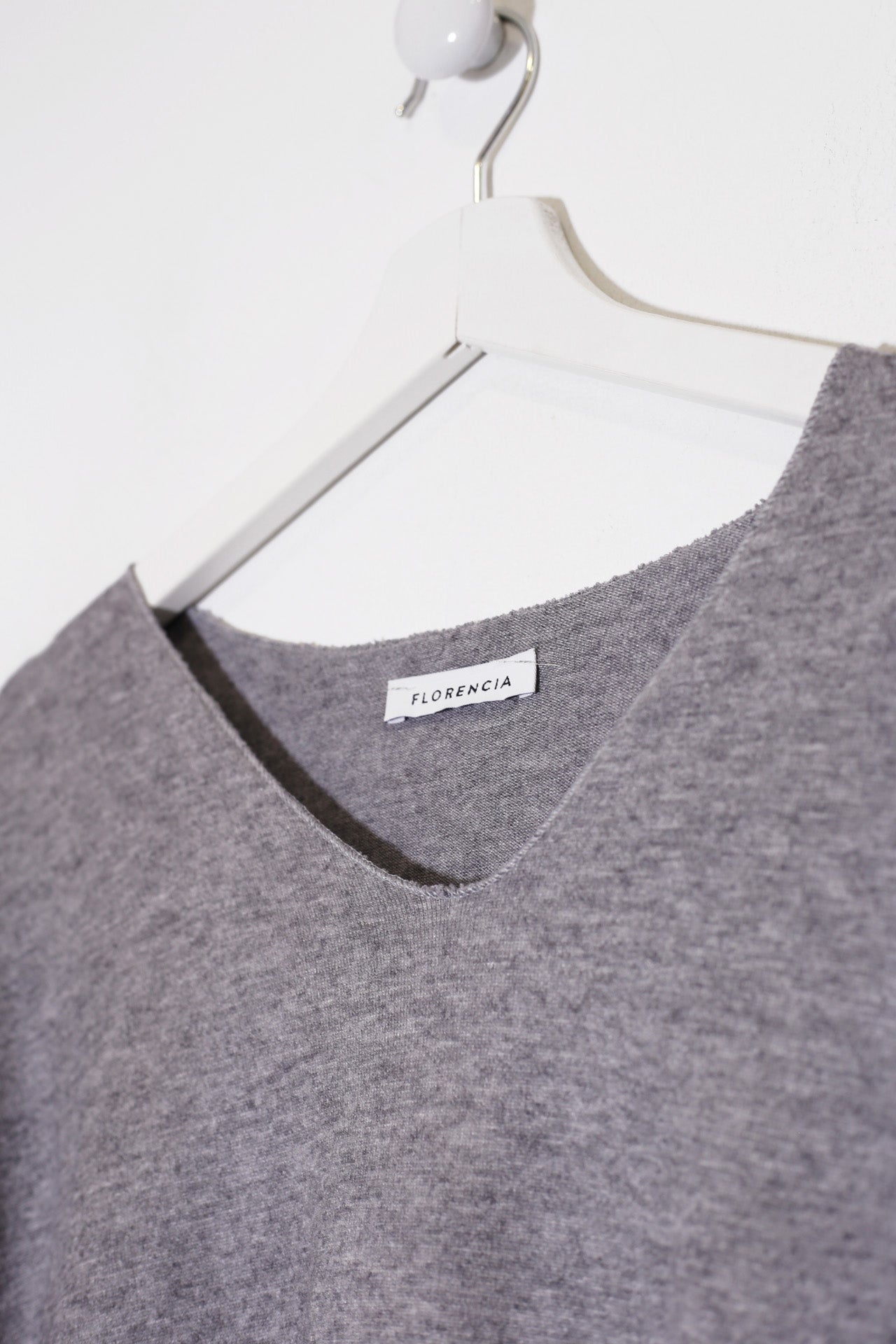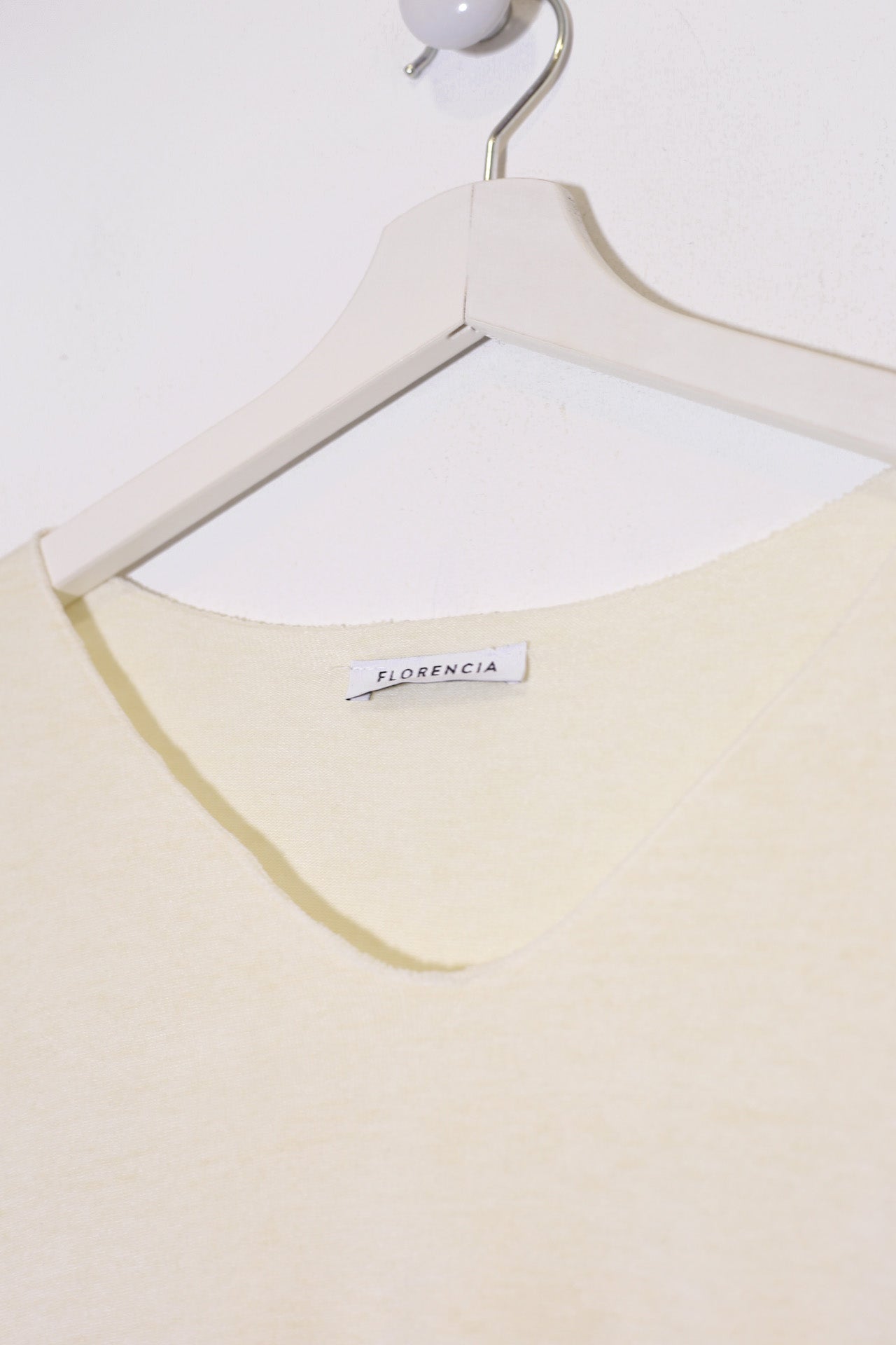 Camiseta con cuello en punta y manga larga. Corte amplio. Tejido confeccionado en punto.