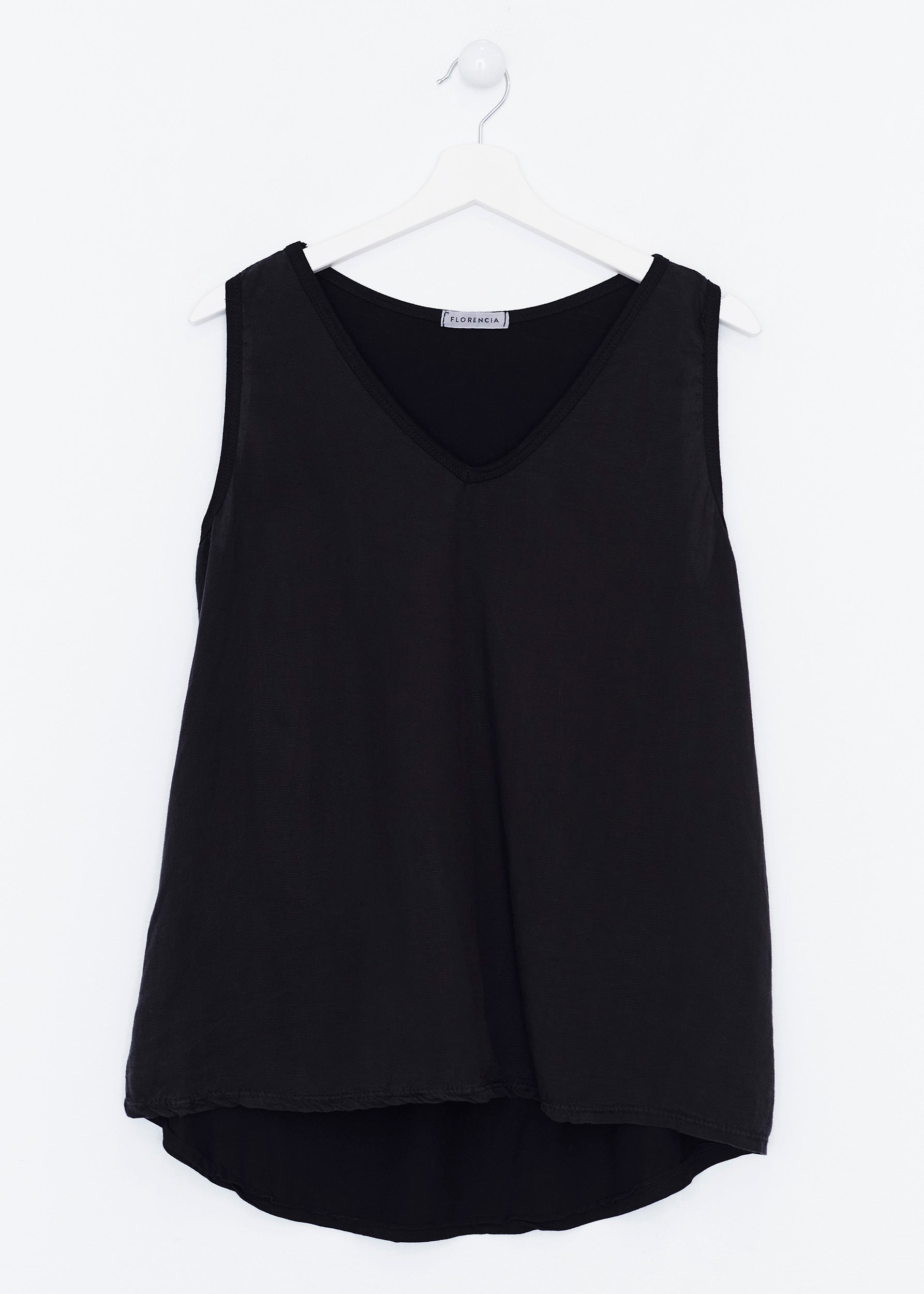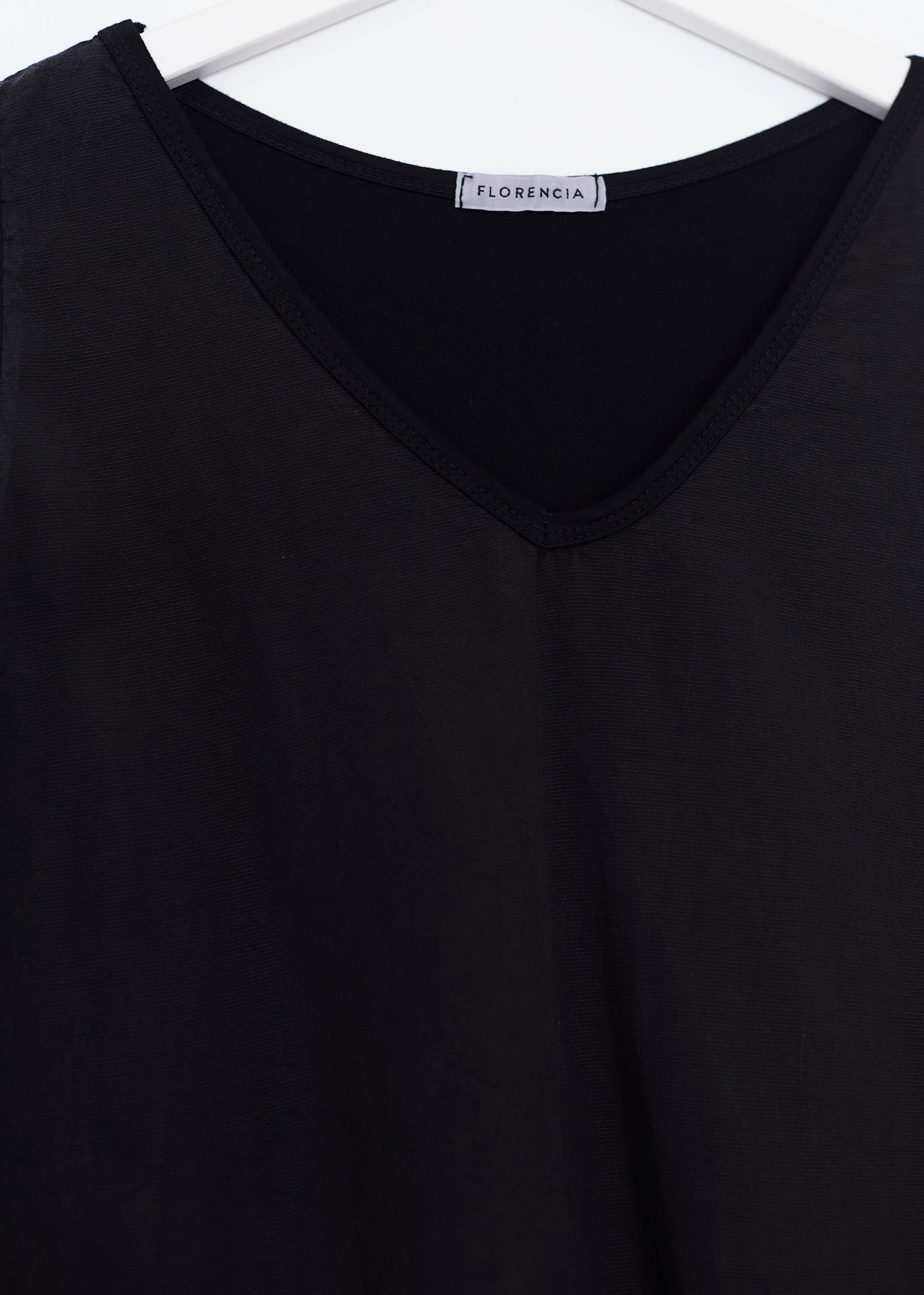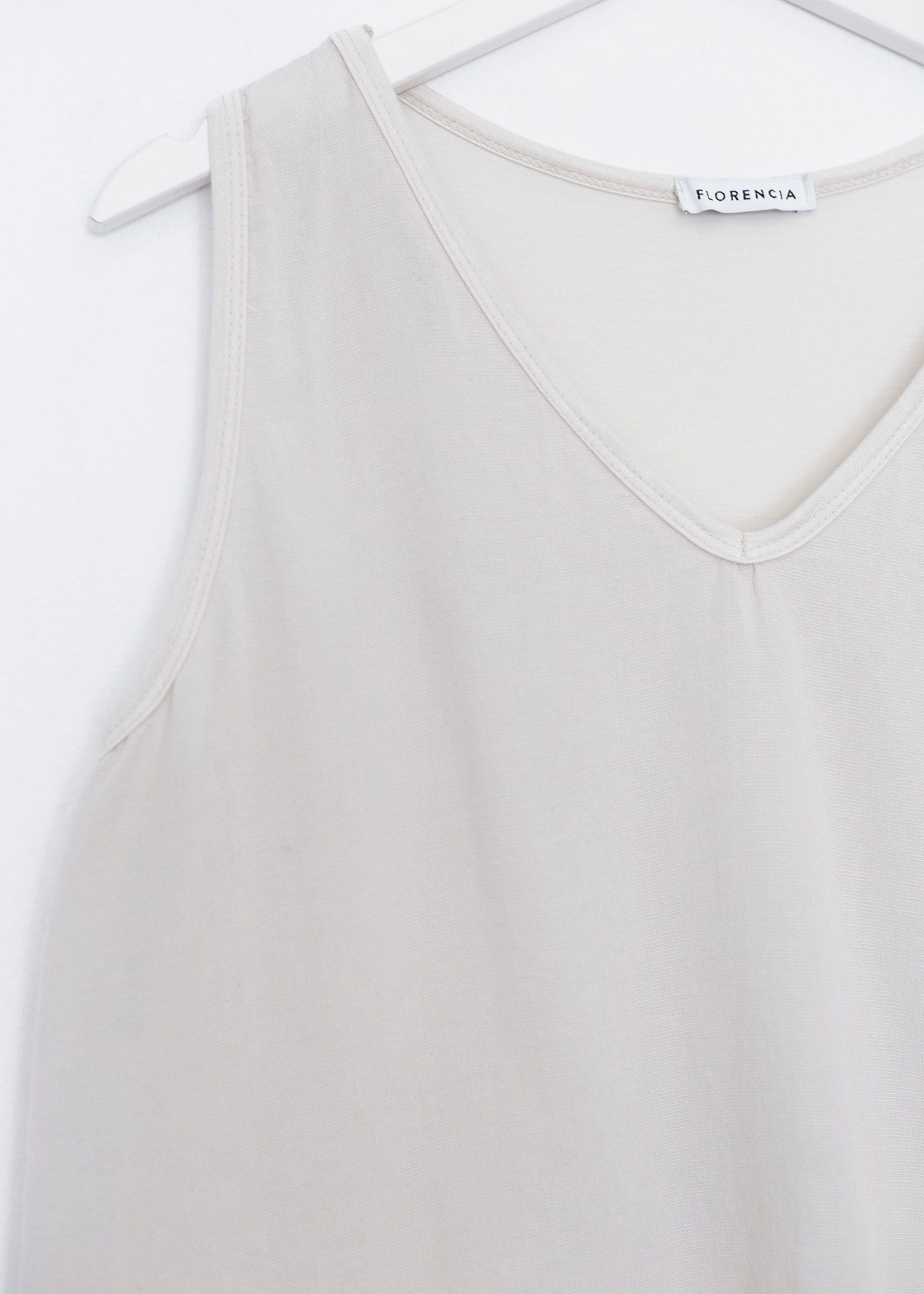 Top con escote en punta y tirantes anchos. Textura contrastada en la parte frontal.