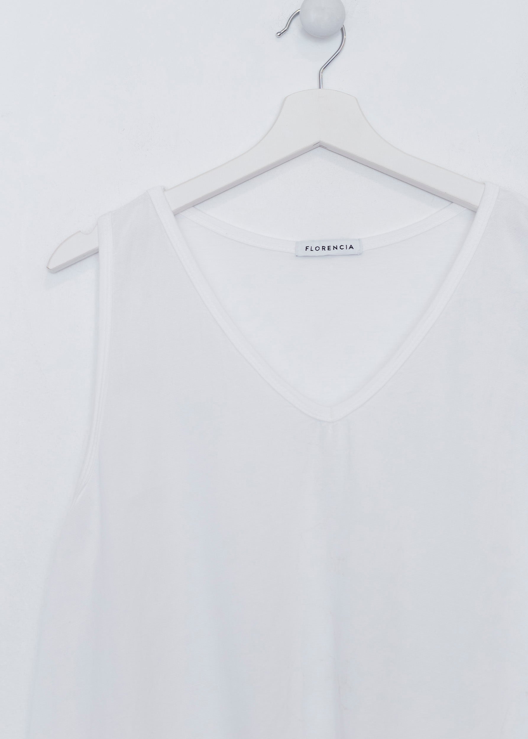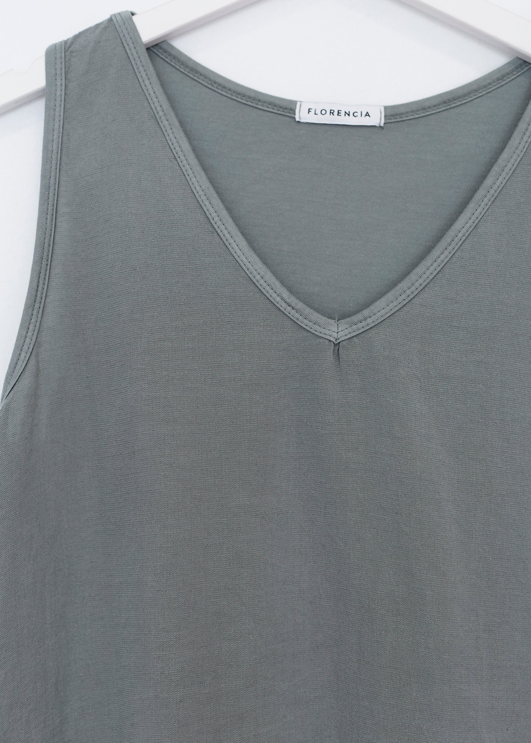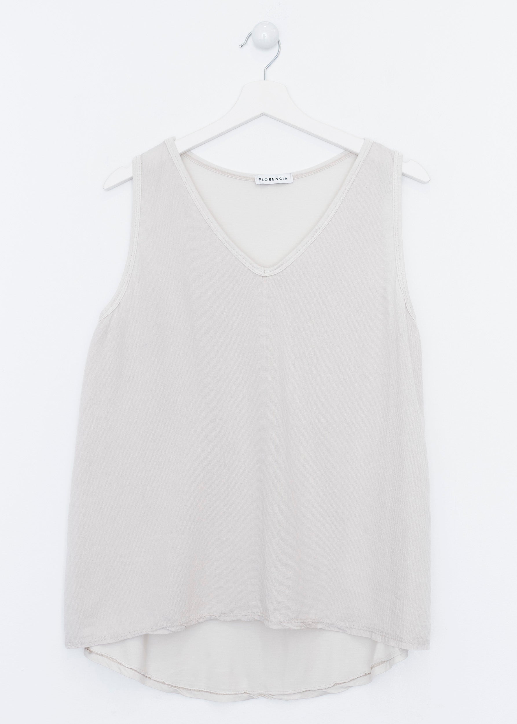 Top con escote en punta y tirantes anchos. Textura contrastada en la parte frontal.