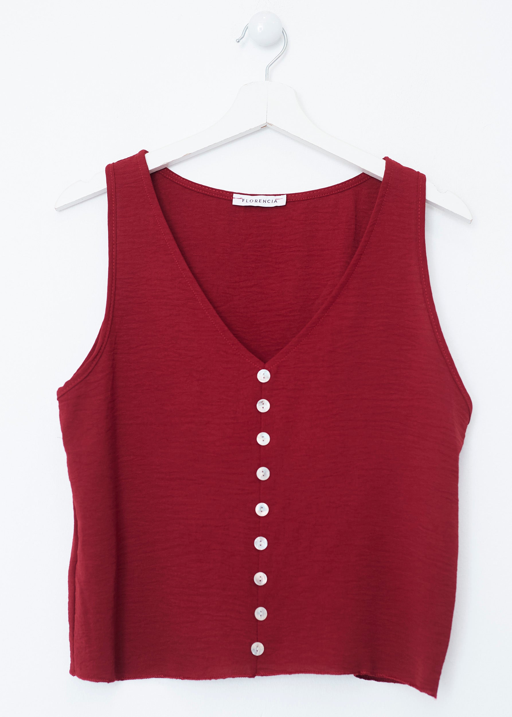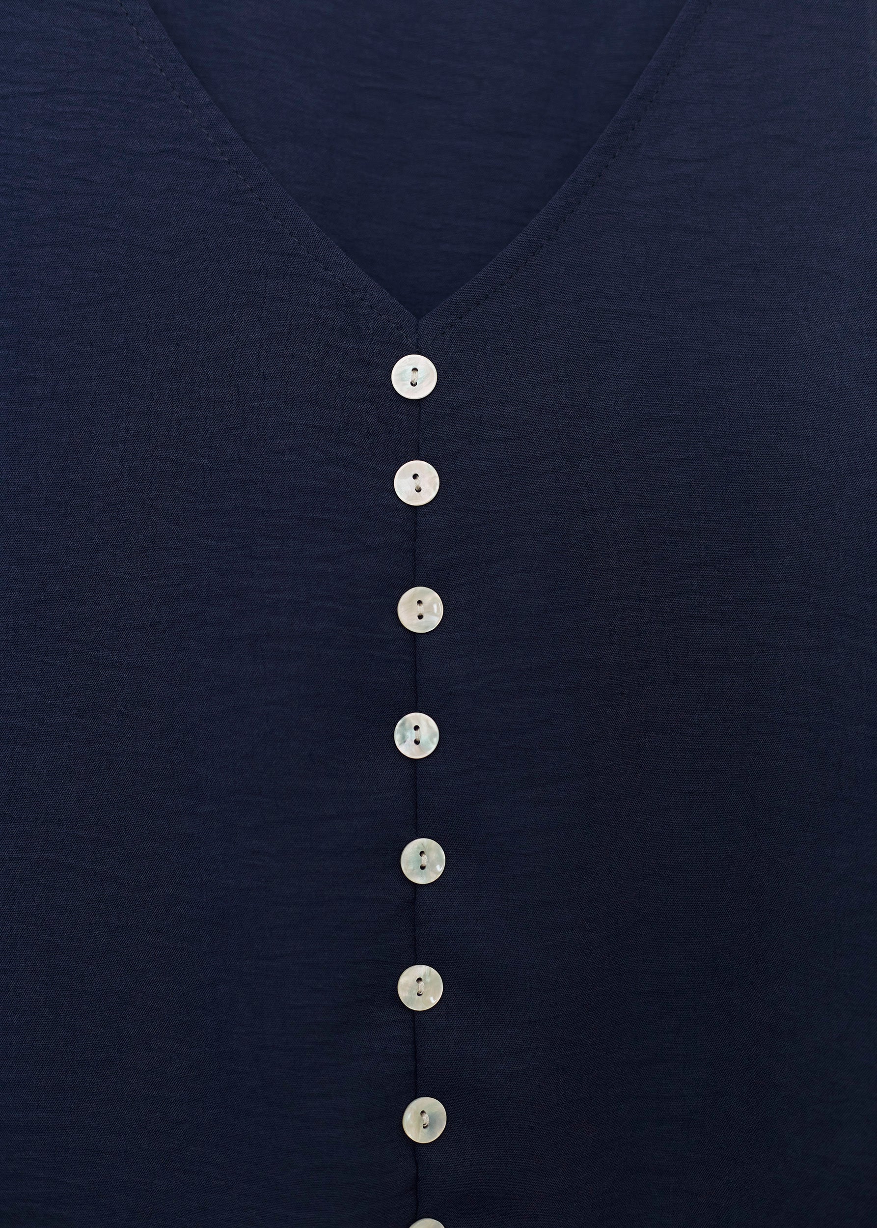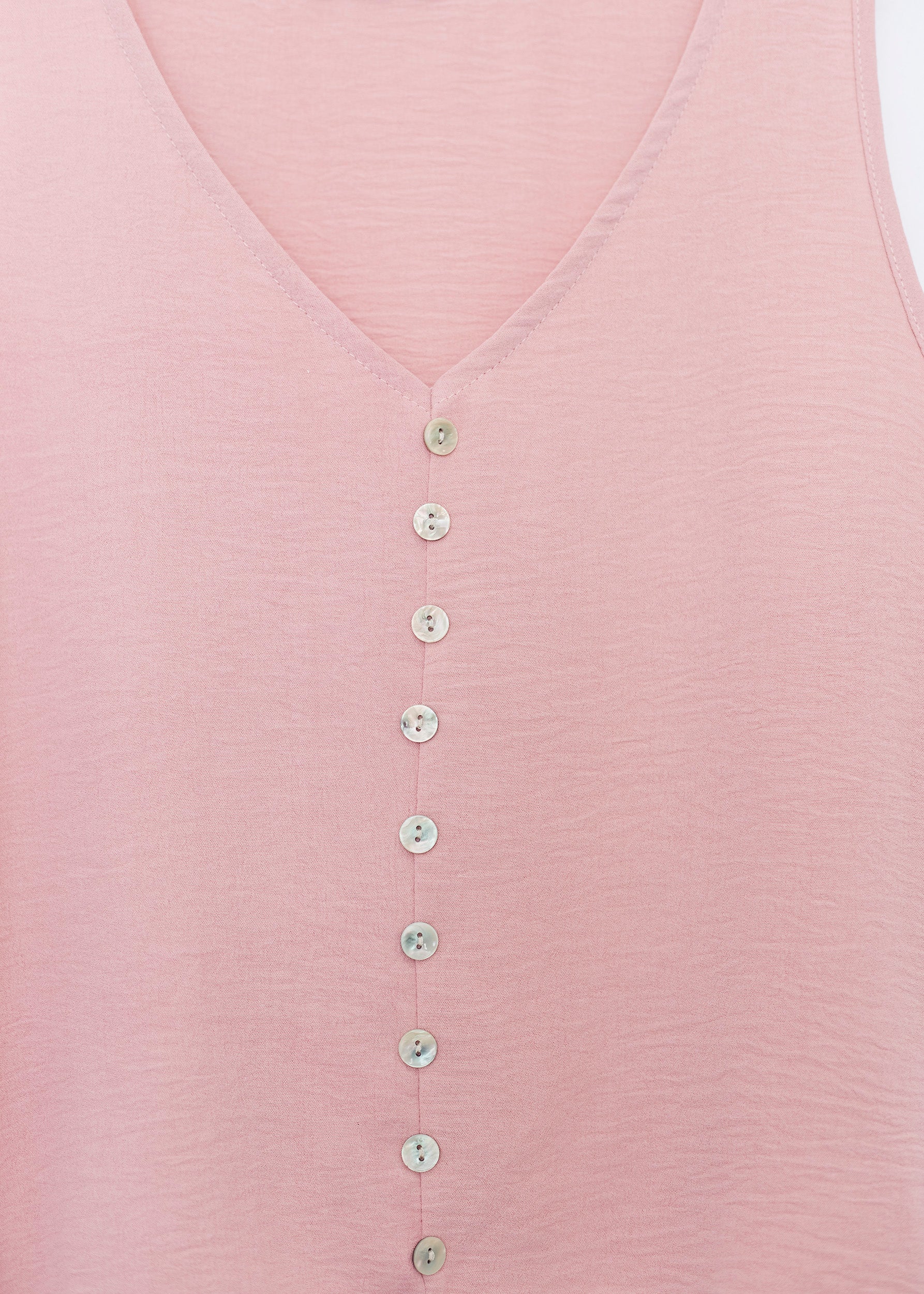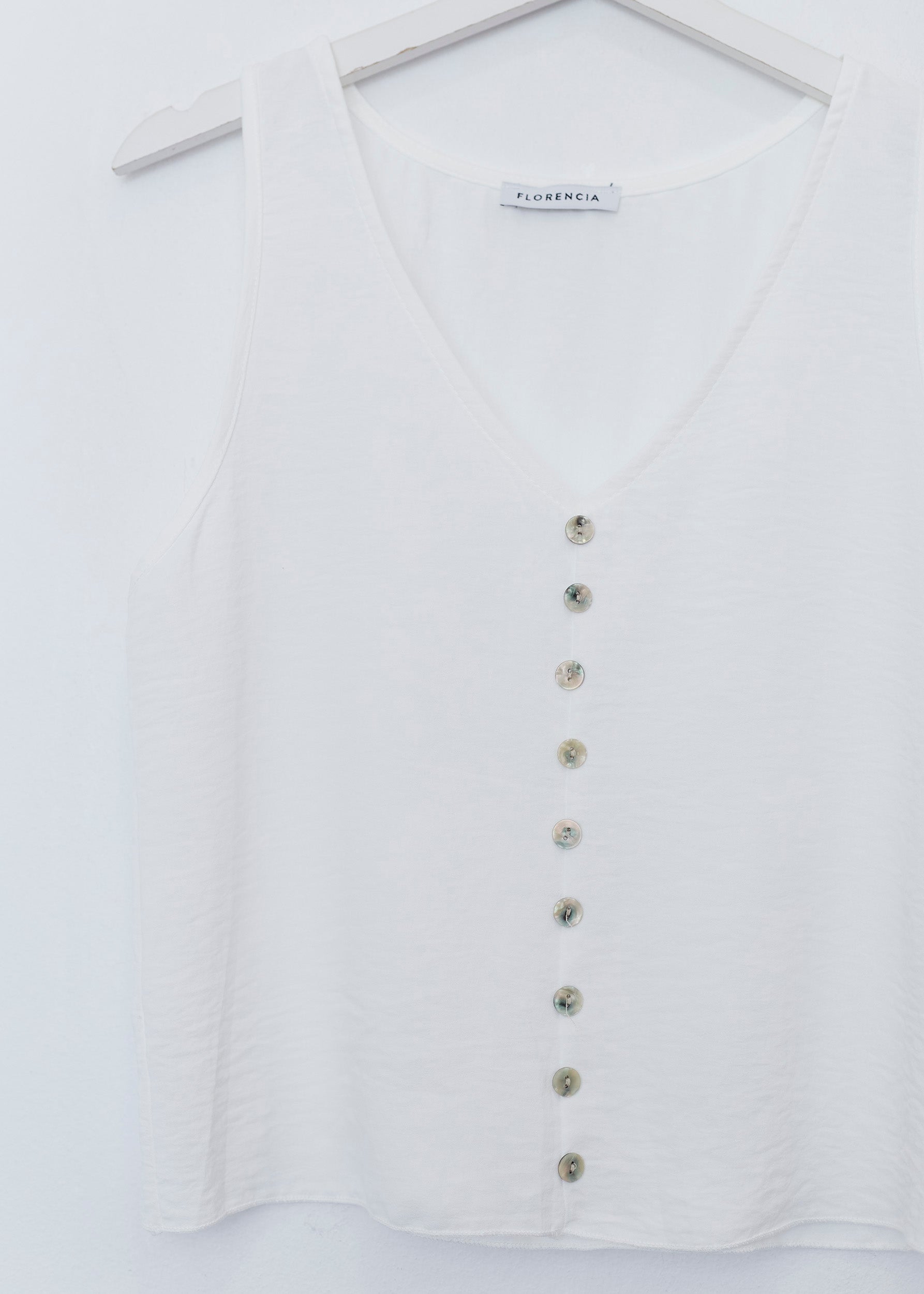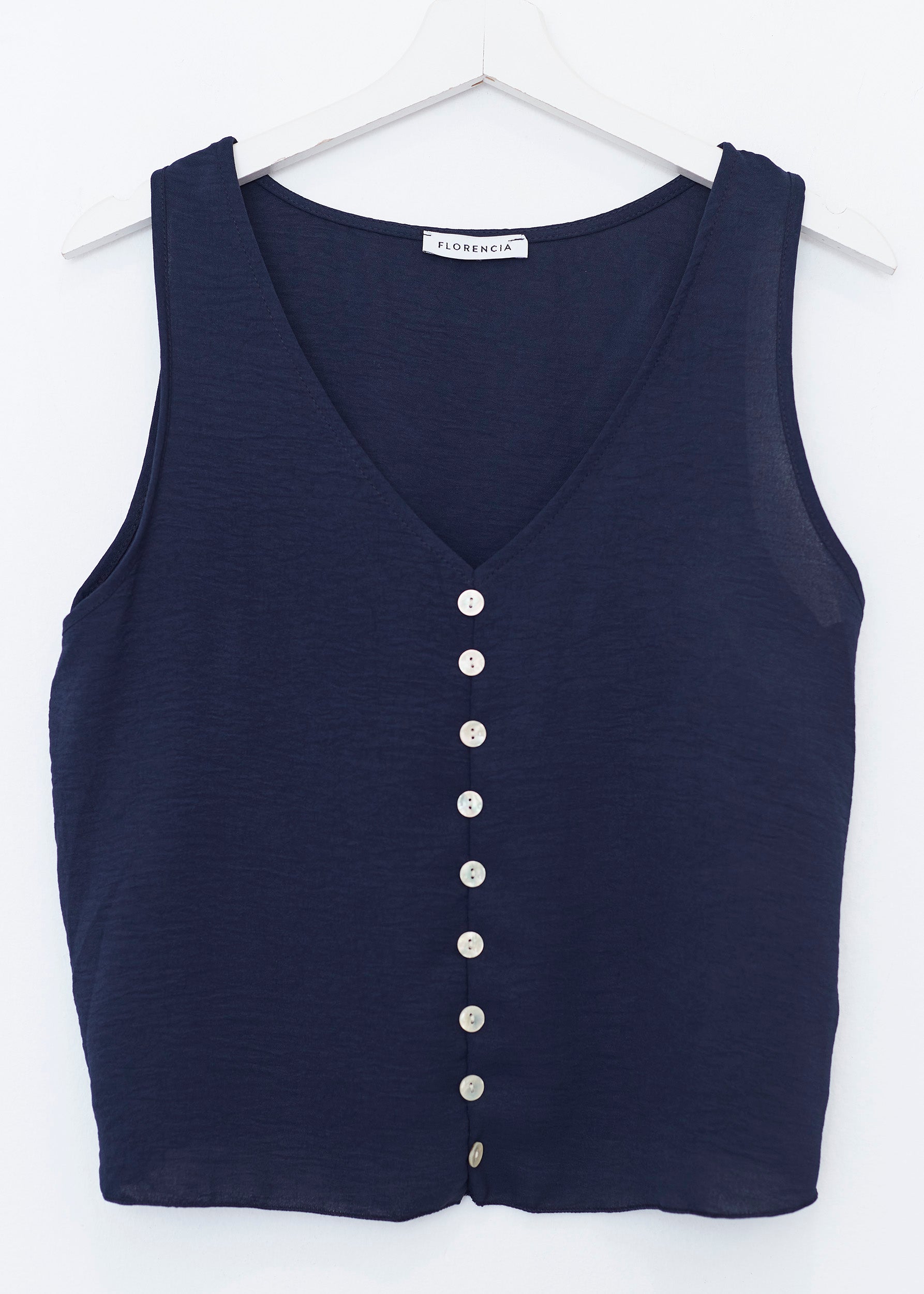 Top con escote en punta y tirantes anchos. Detalle de falsos botones en la parte delantera.