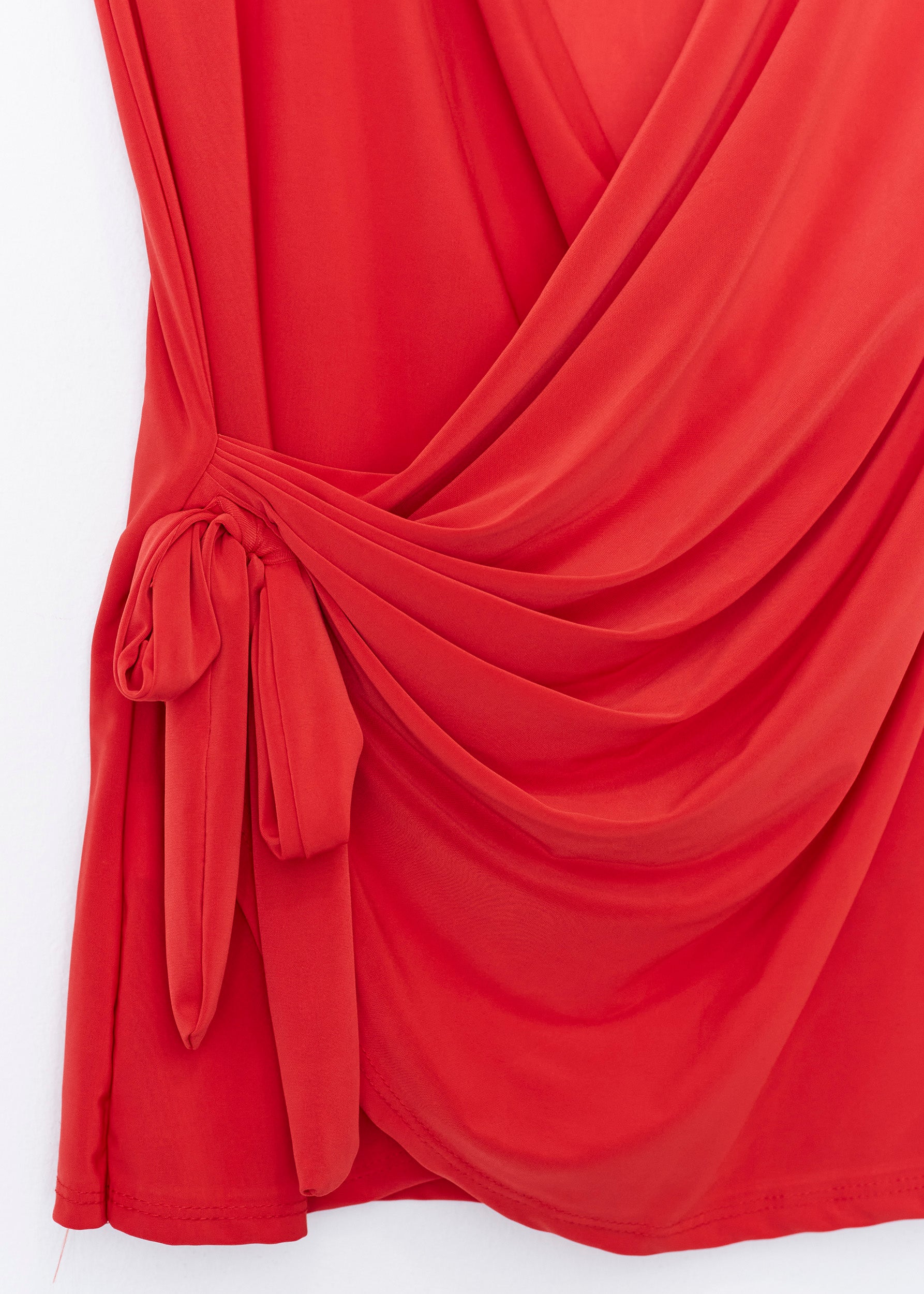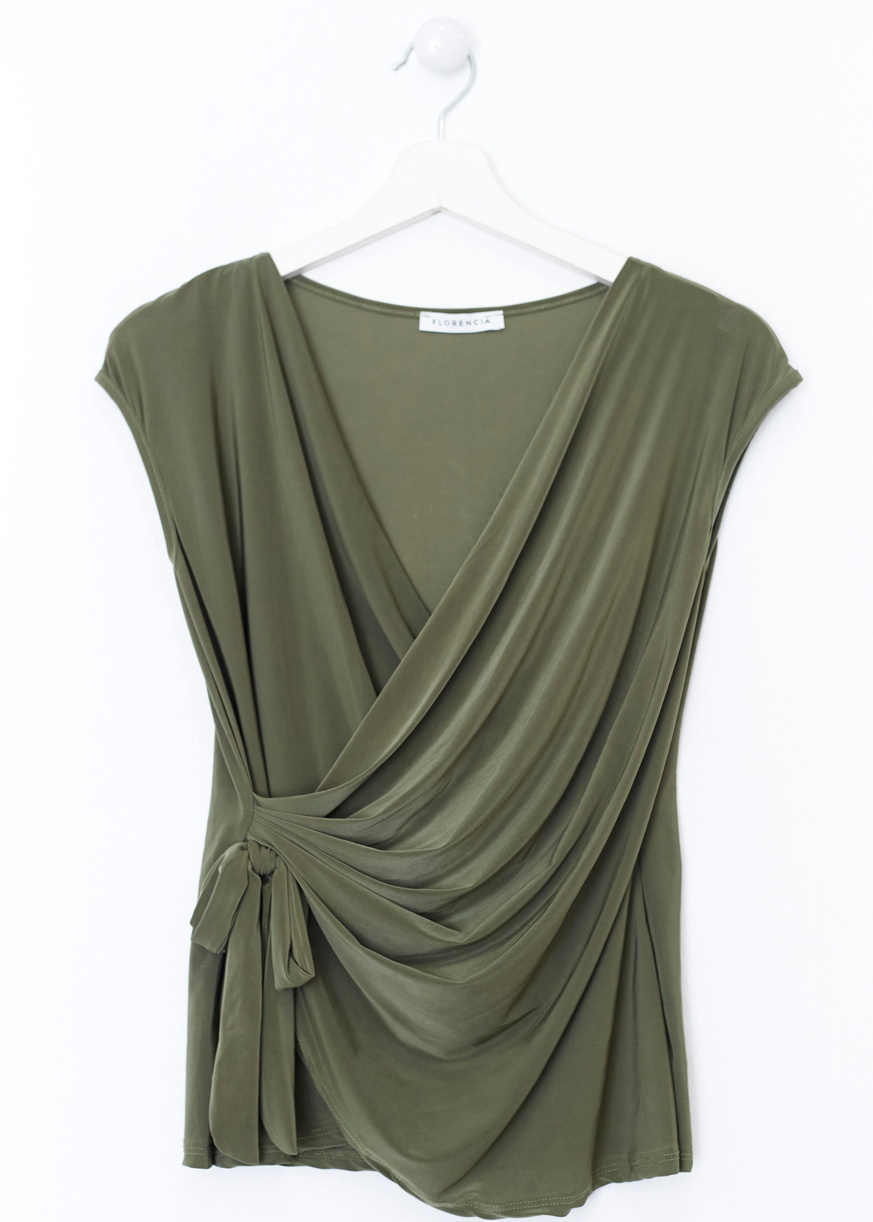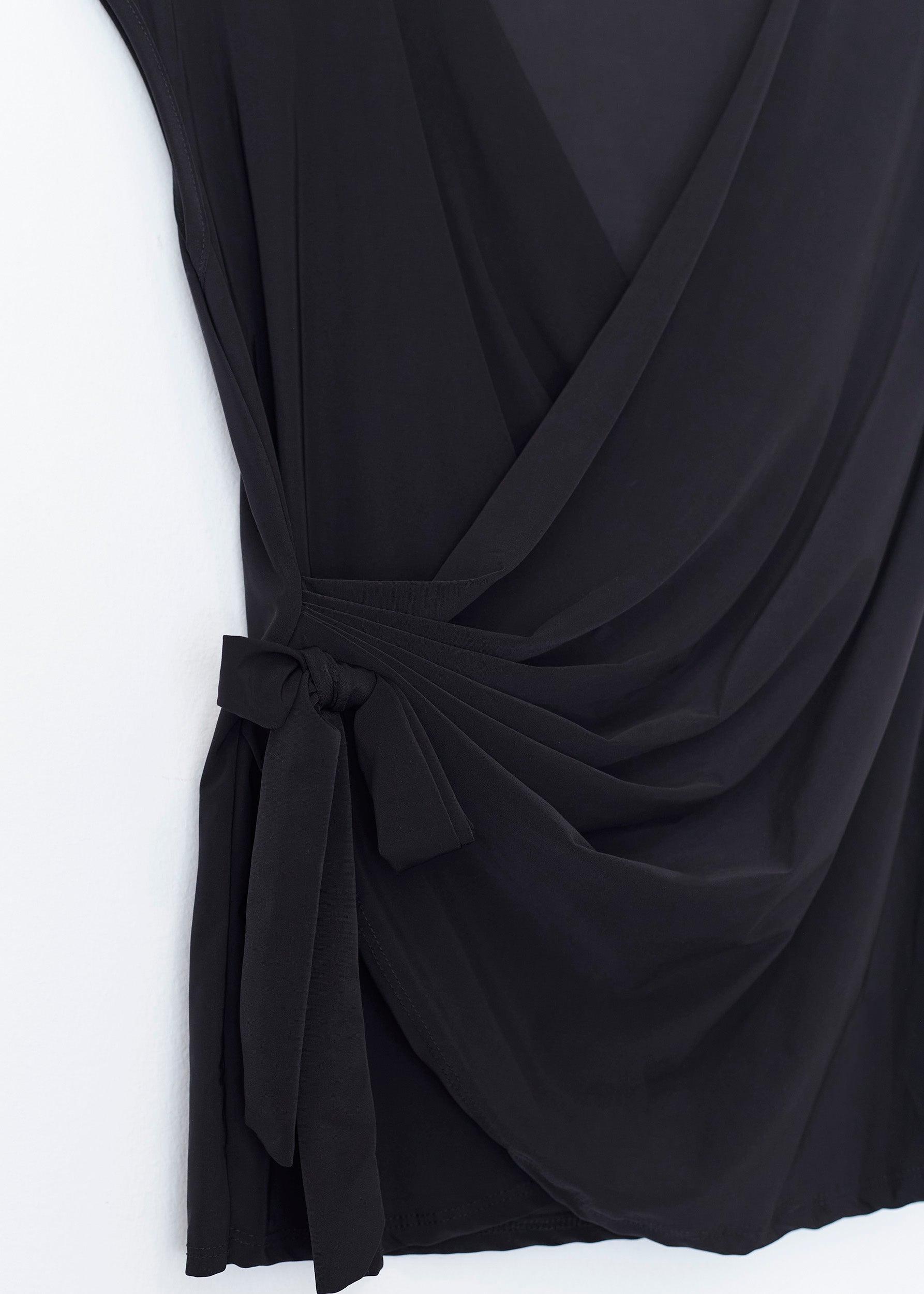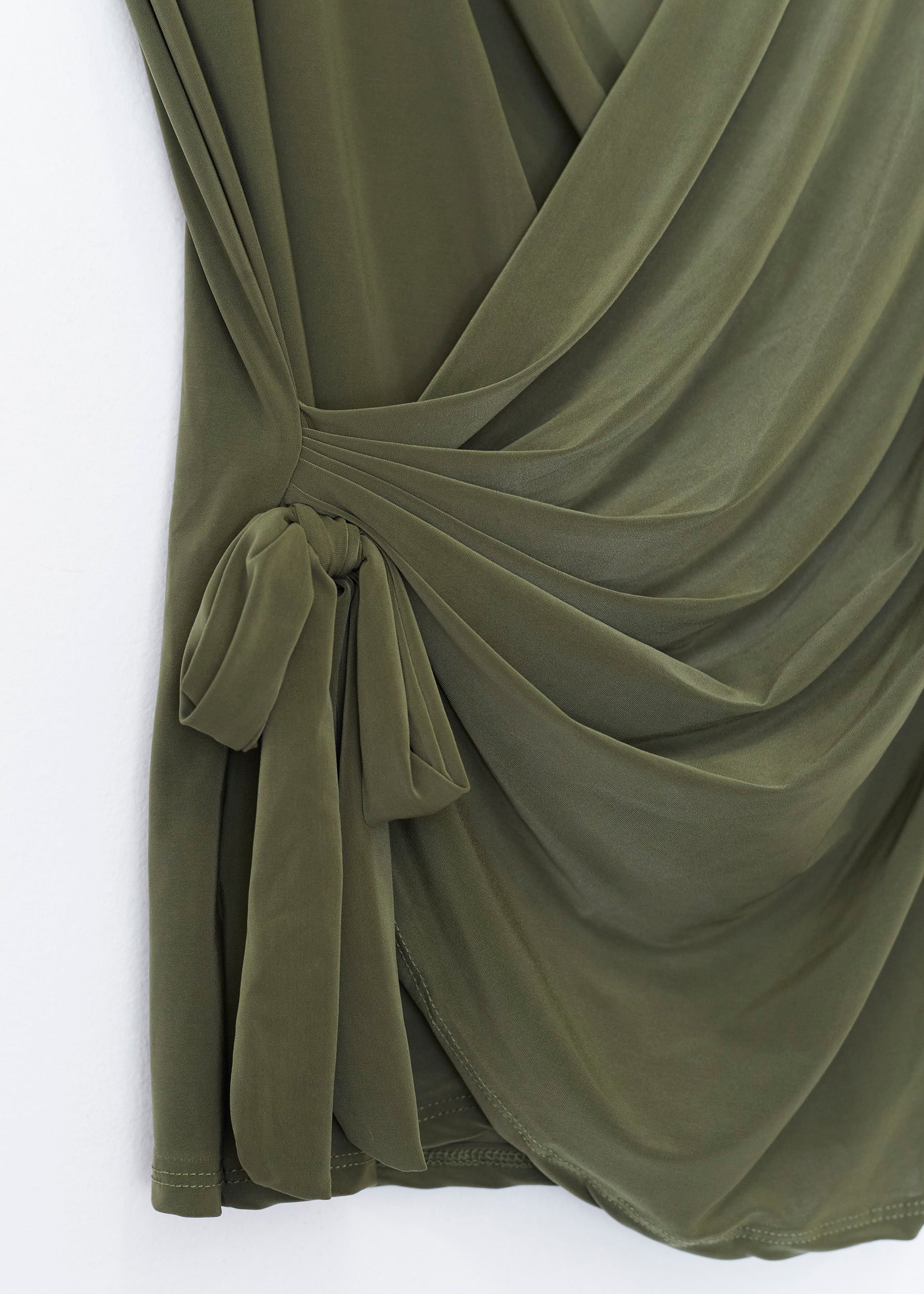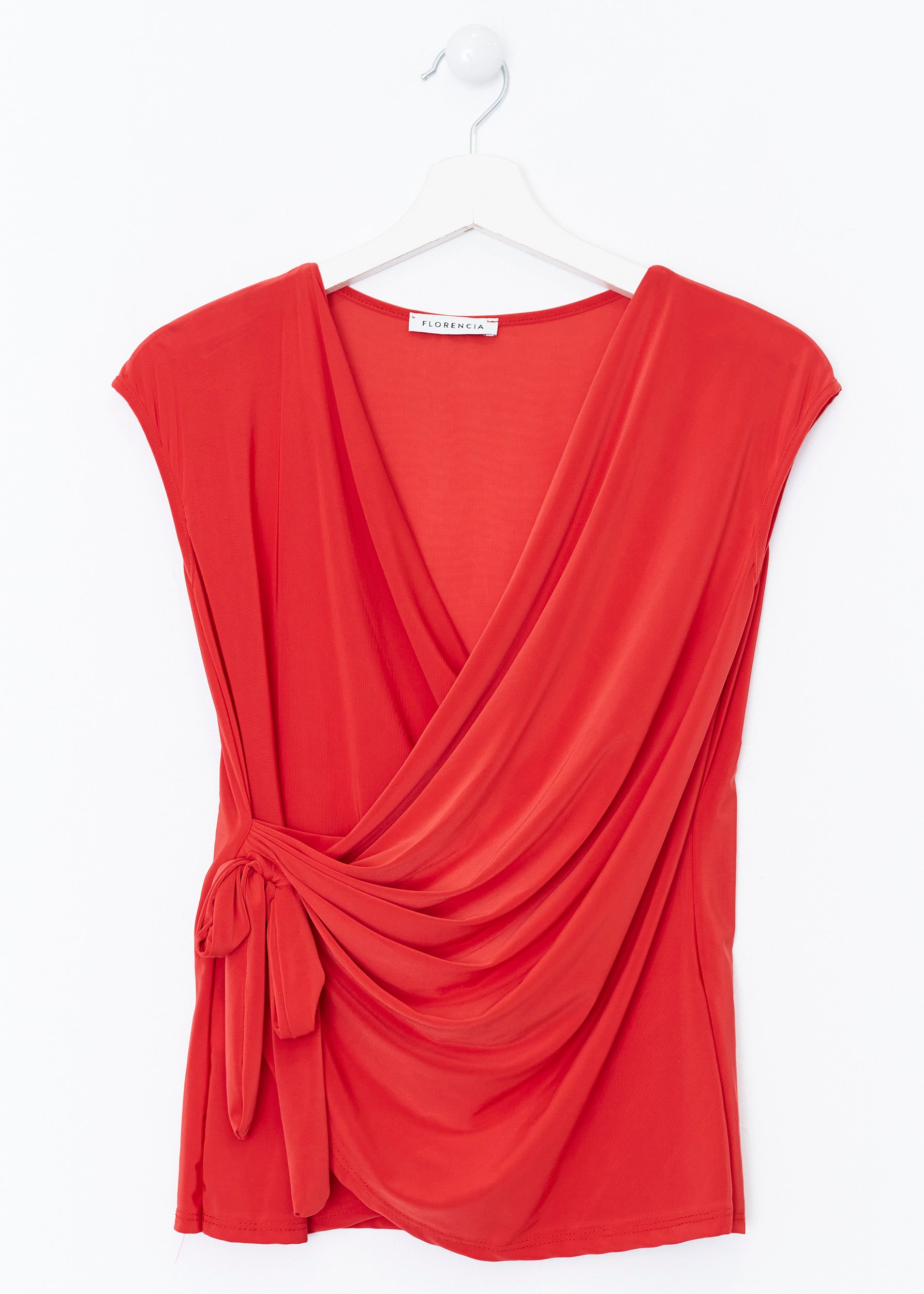 Top de manga sisa y escote en punta cruzado con detalle de lazo en lateral. Textura fluida.