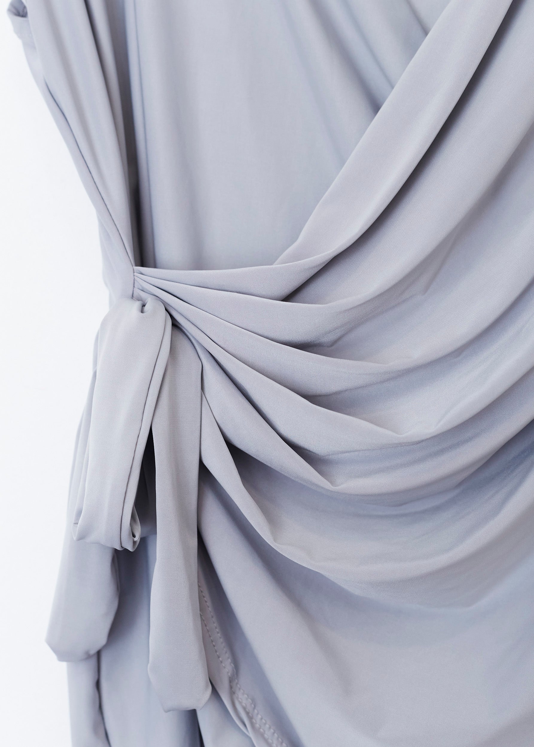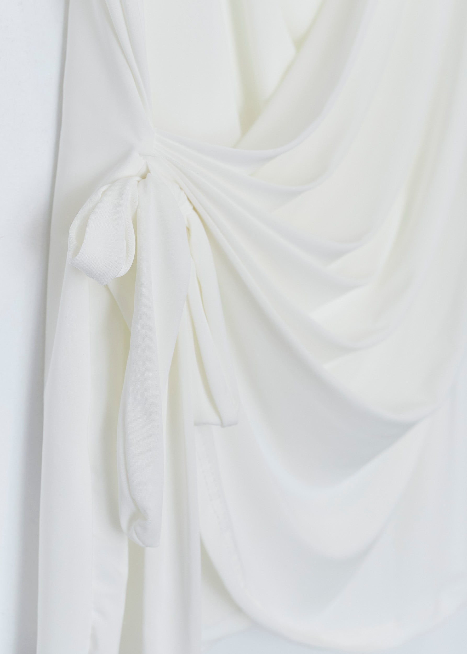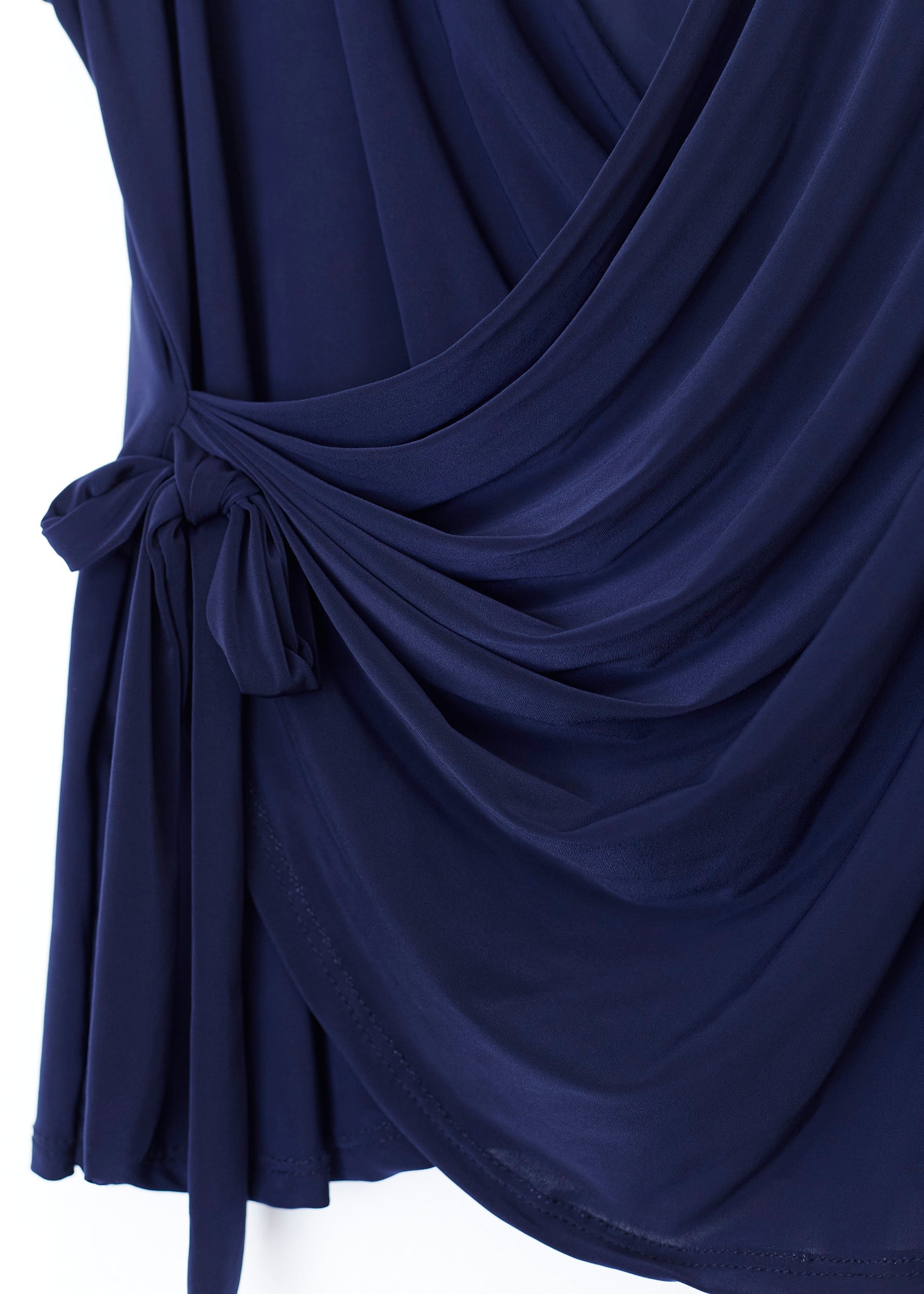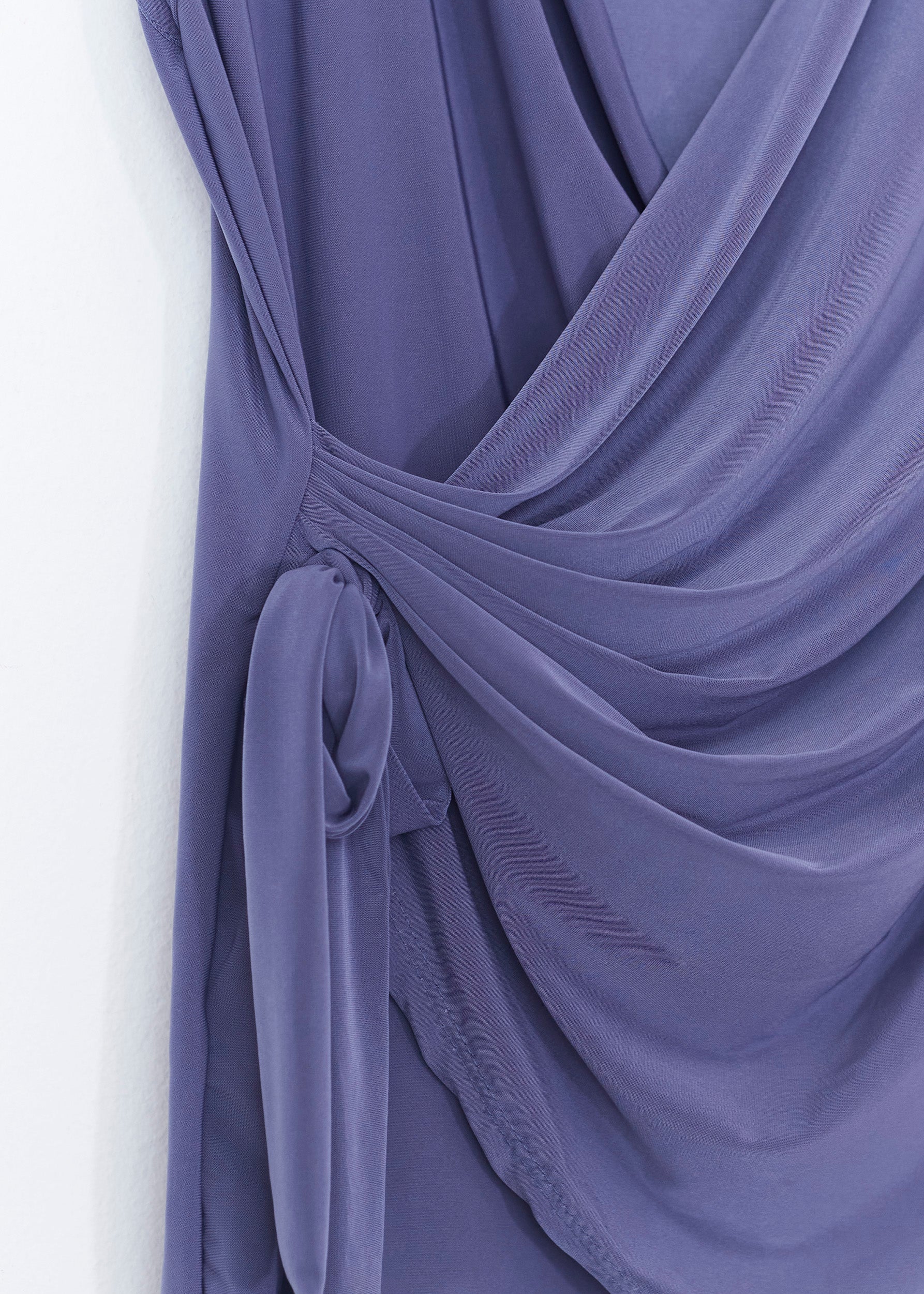 Top de manga sisa y escote en punta cruzado con detalle de lazo en lateral. Textura fluida.