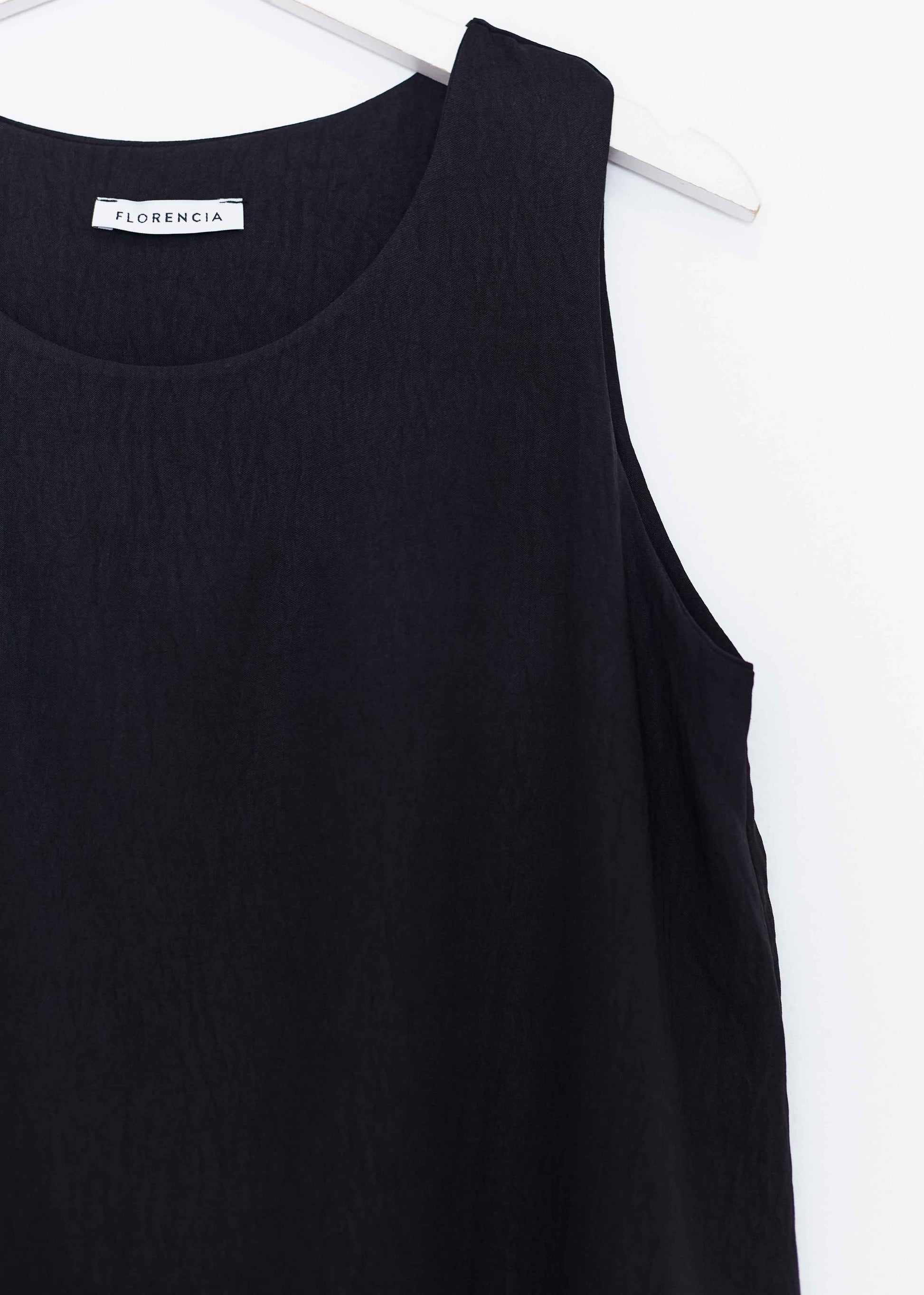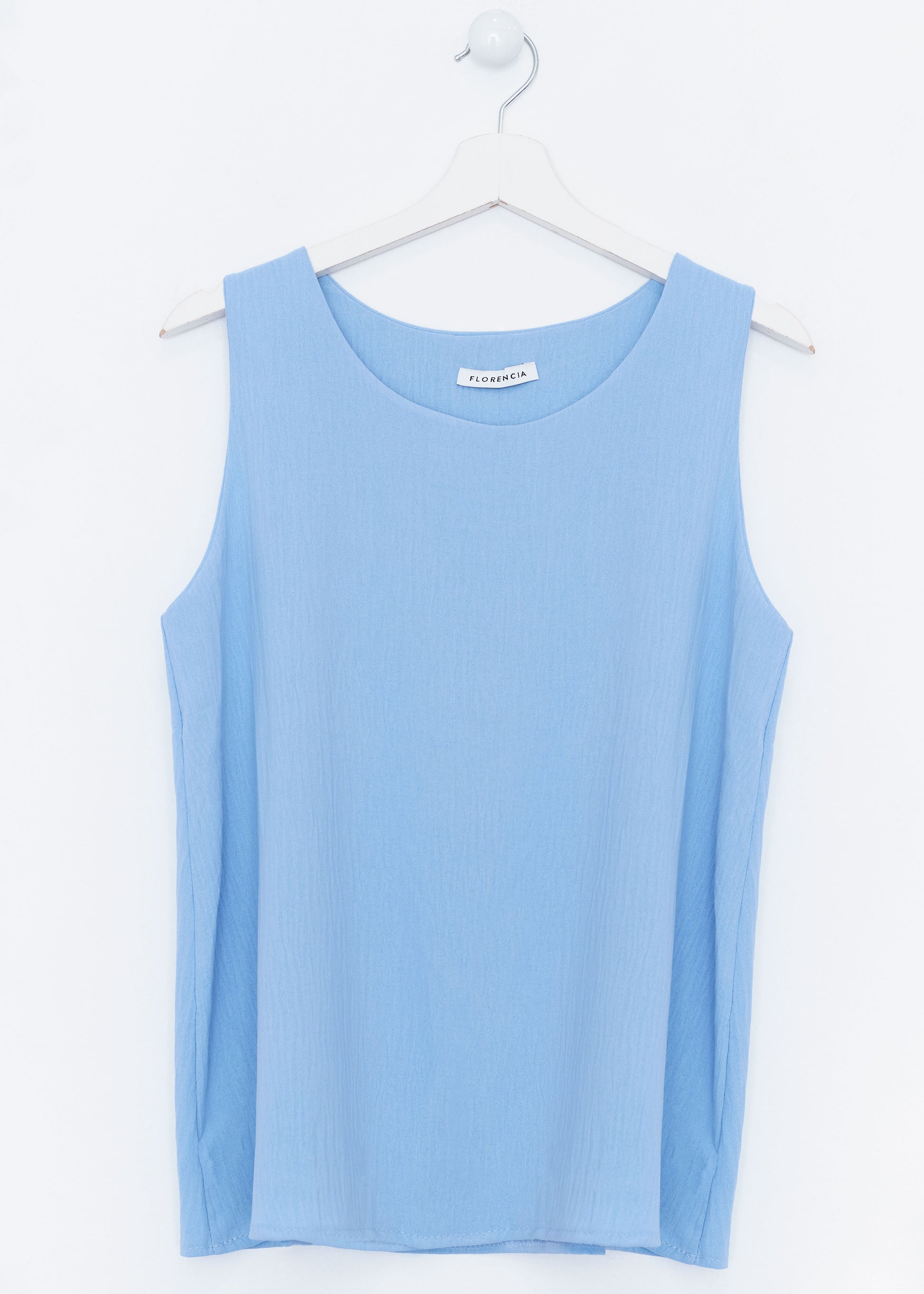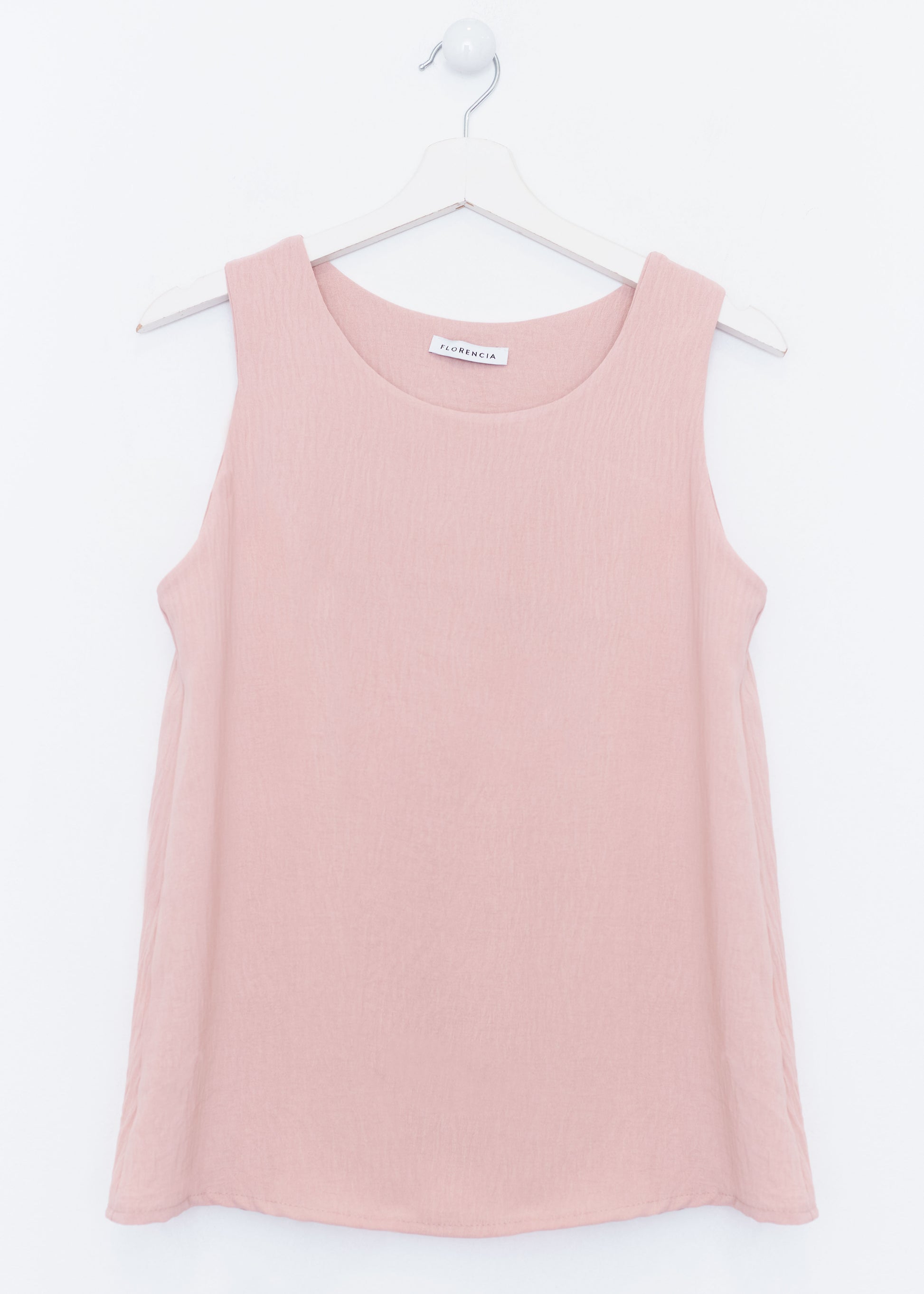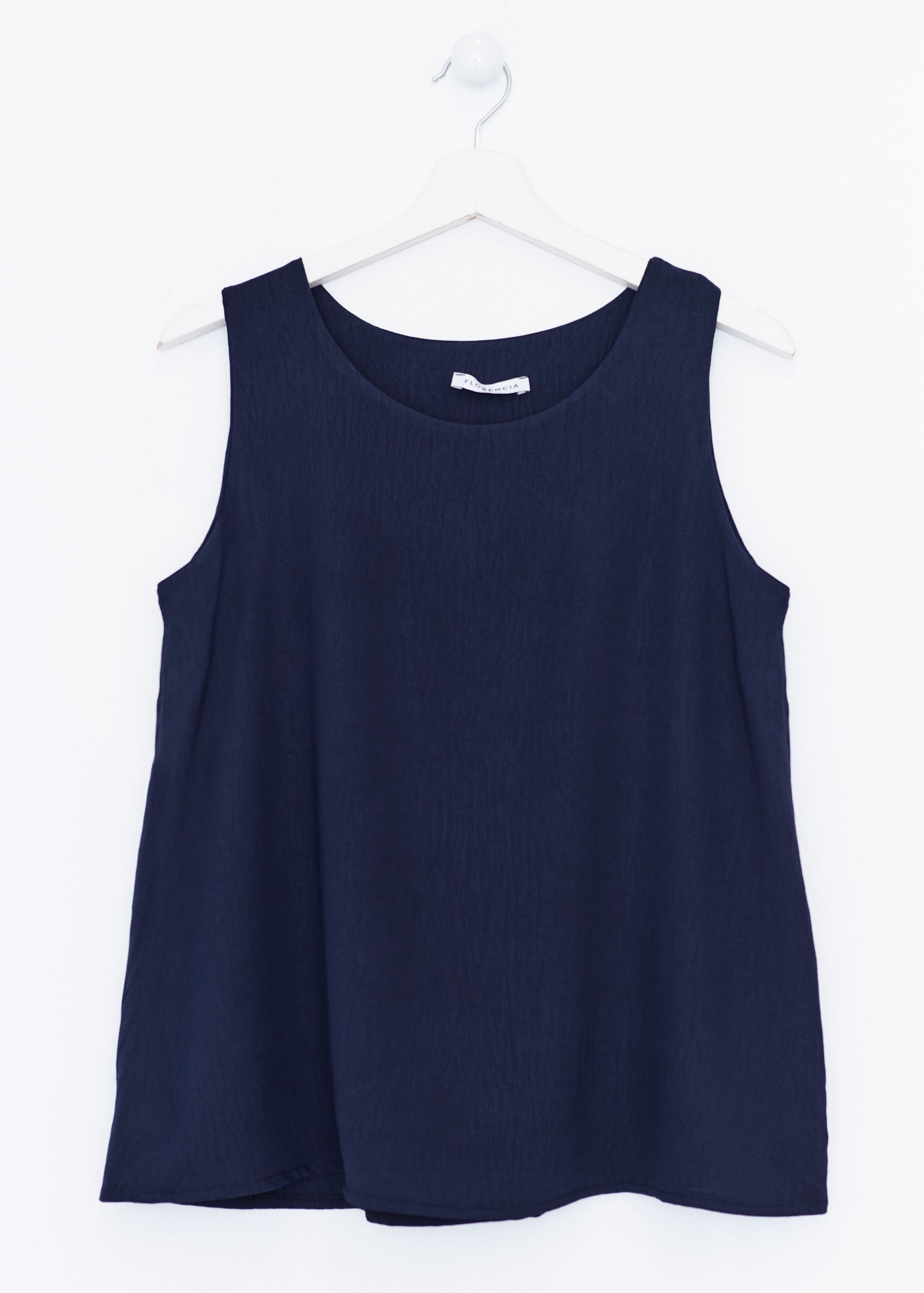 Top con cuello redondo y tirantes anchos. Corte amplio y fluido.