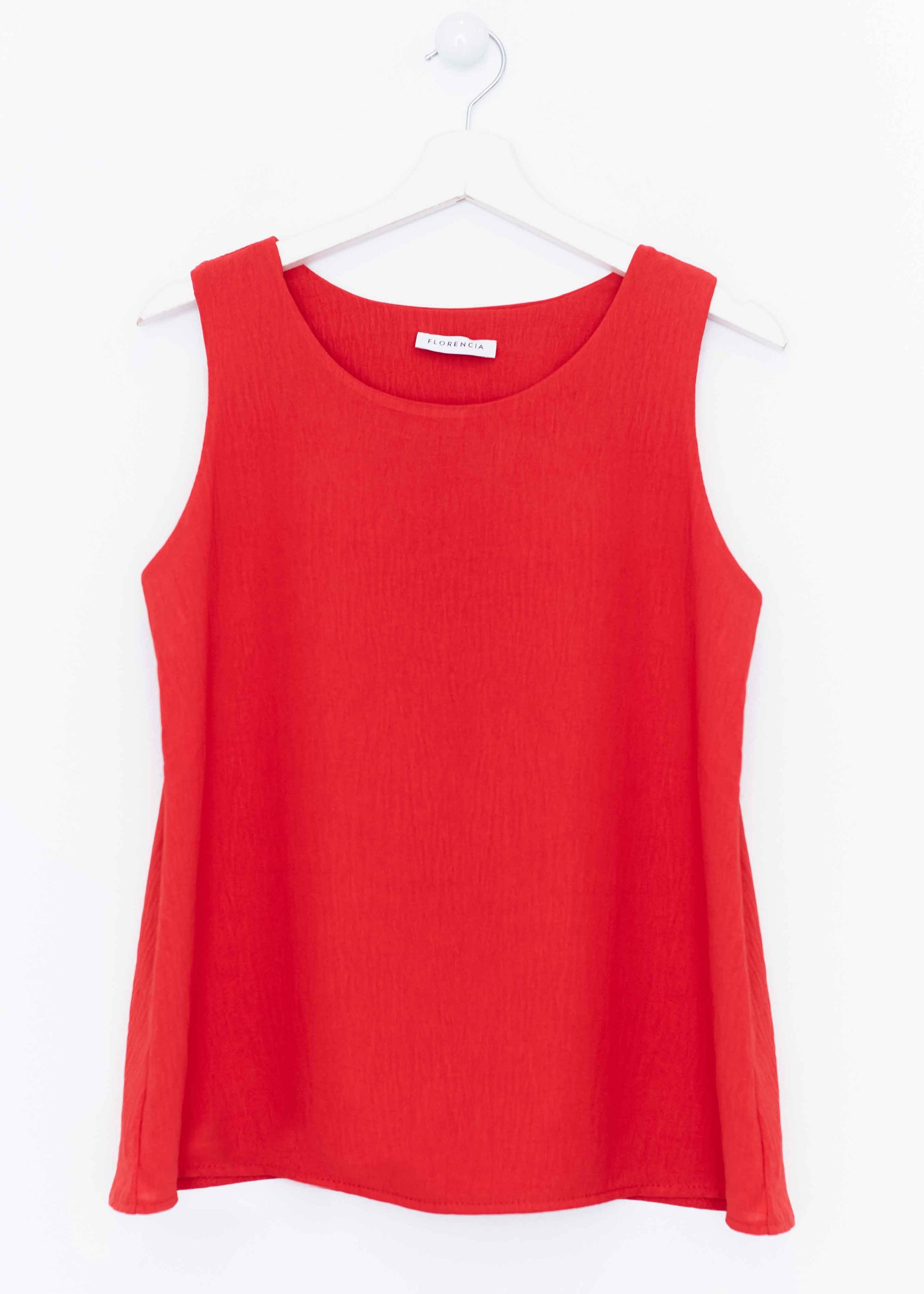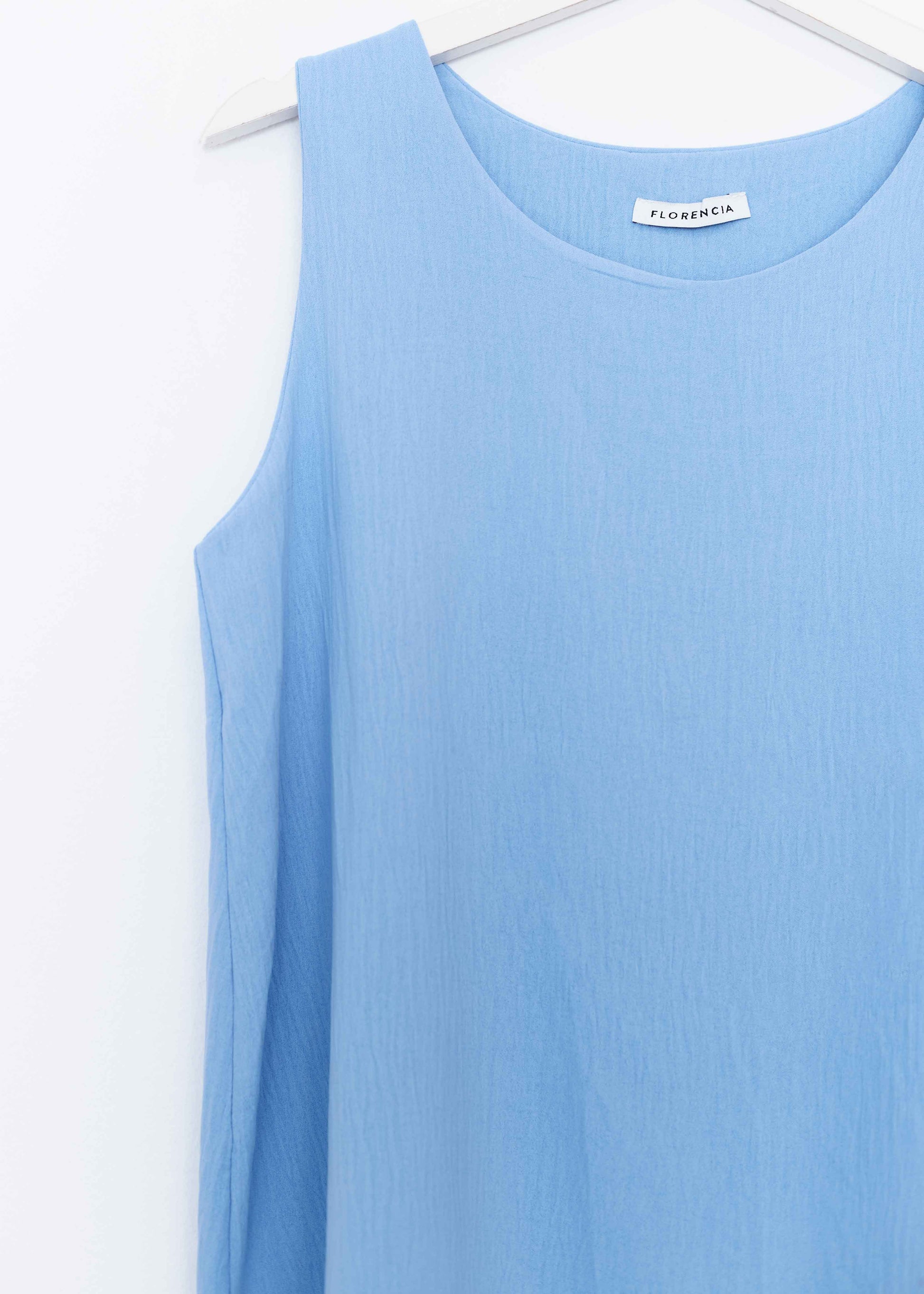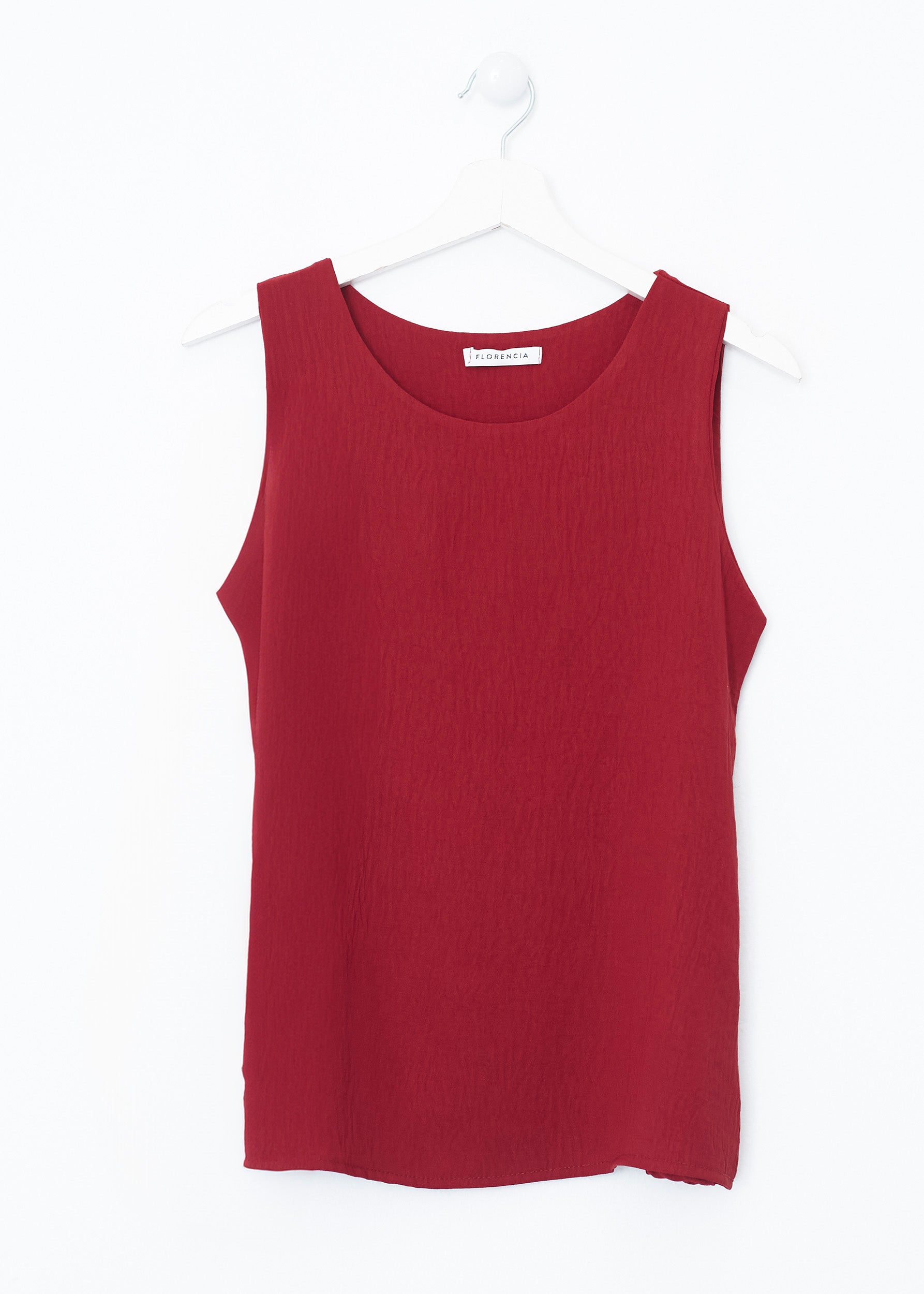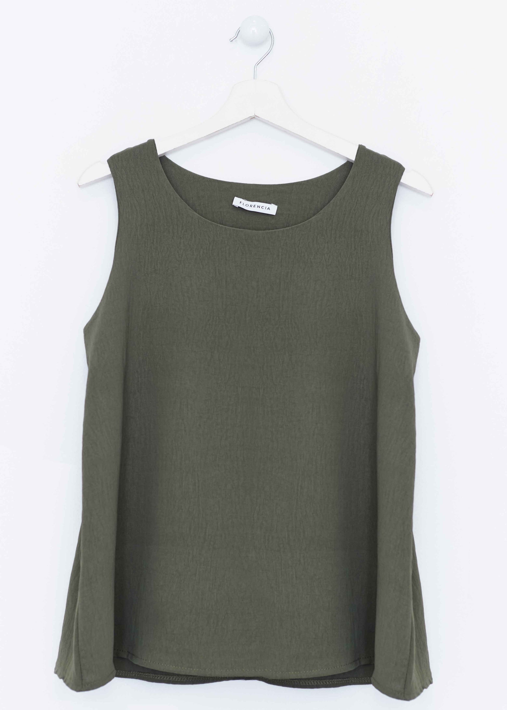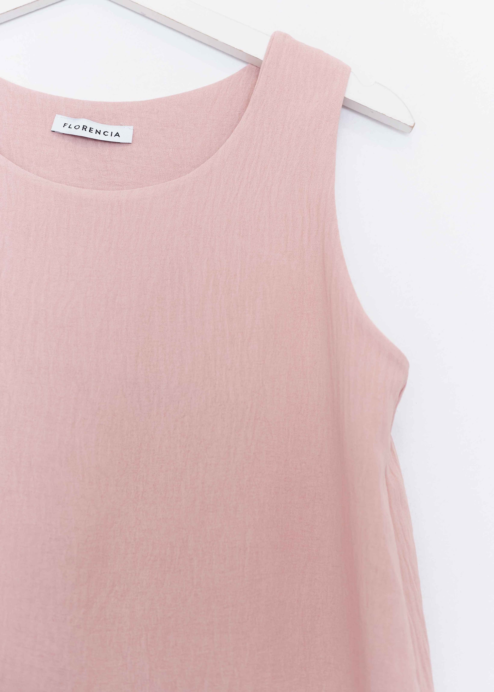 Top con cuello redondo y tirantes anchos. Corte amplio y fluido.
