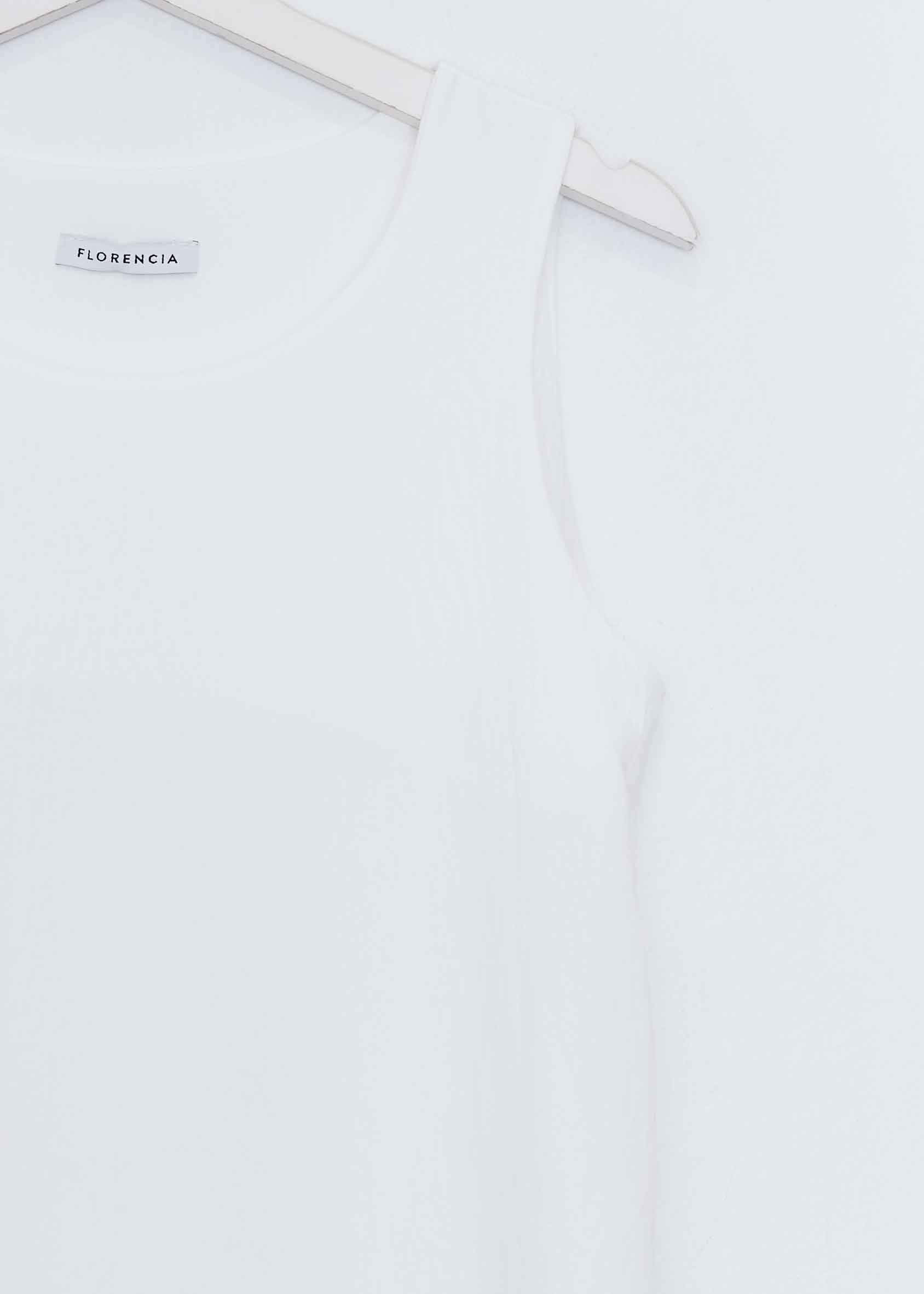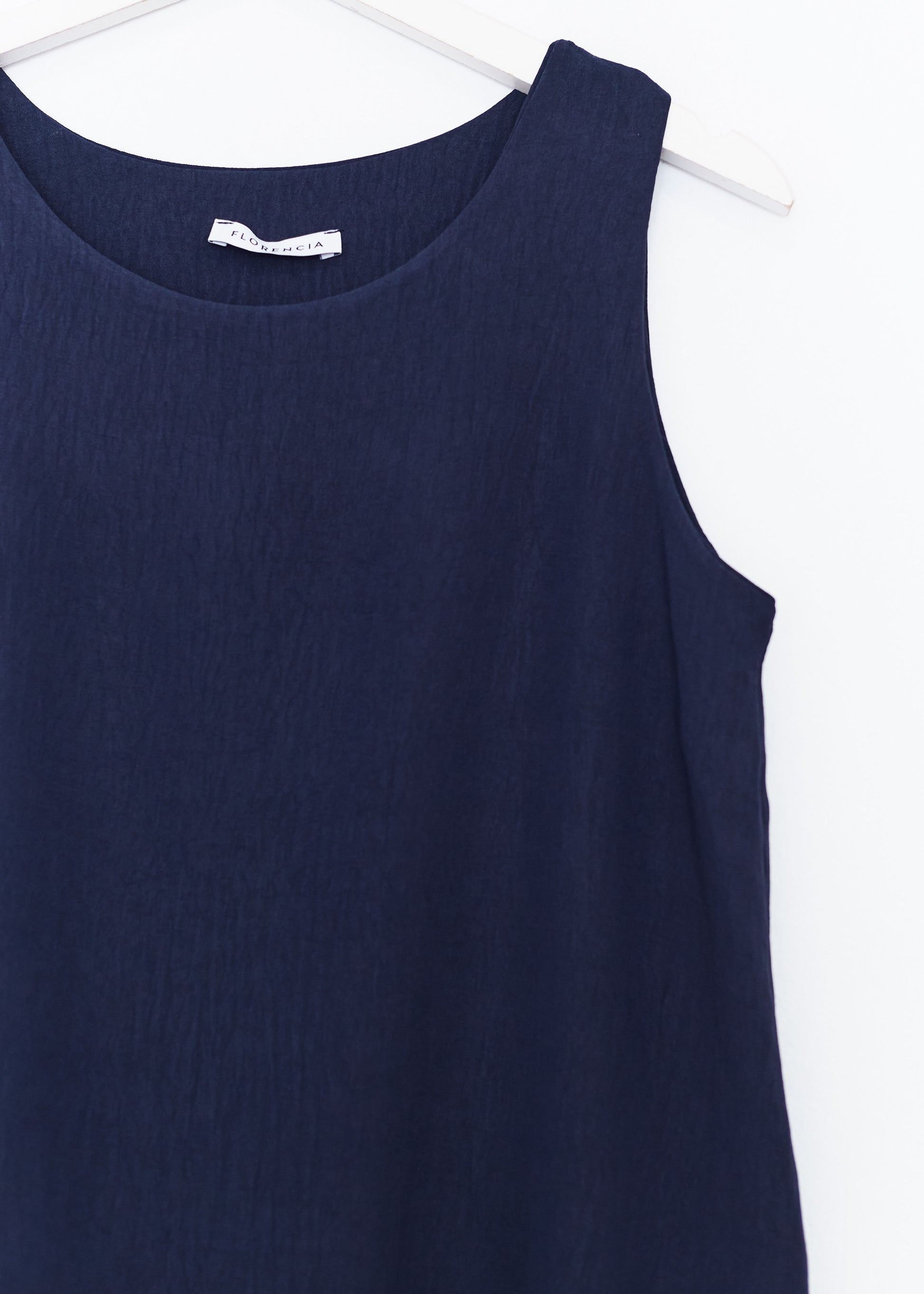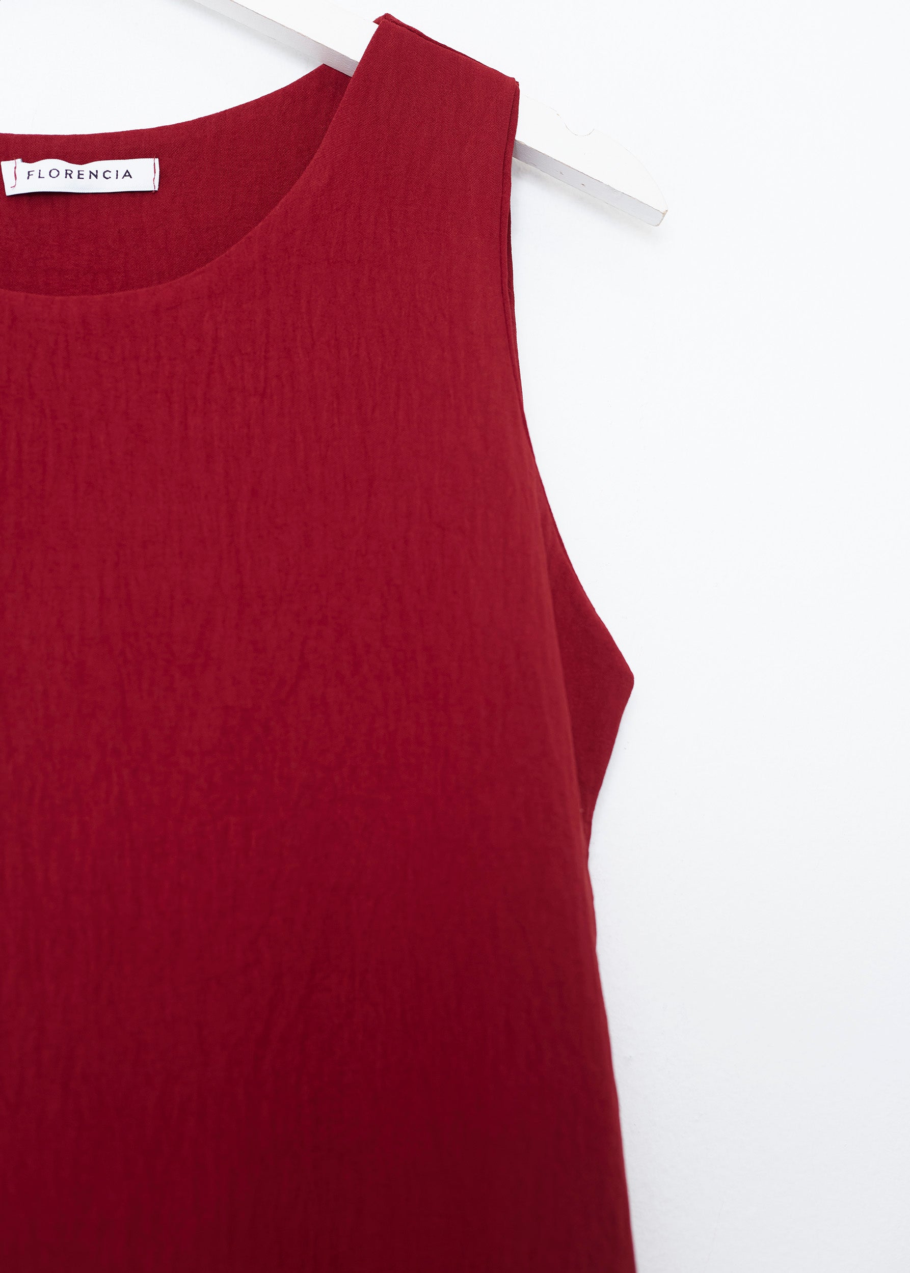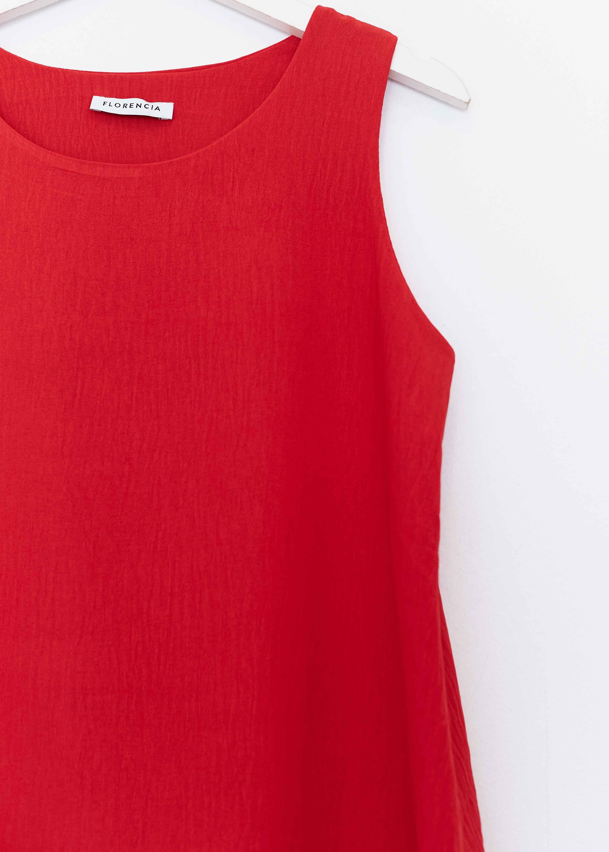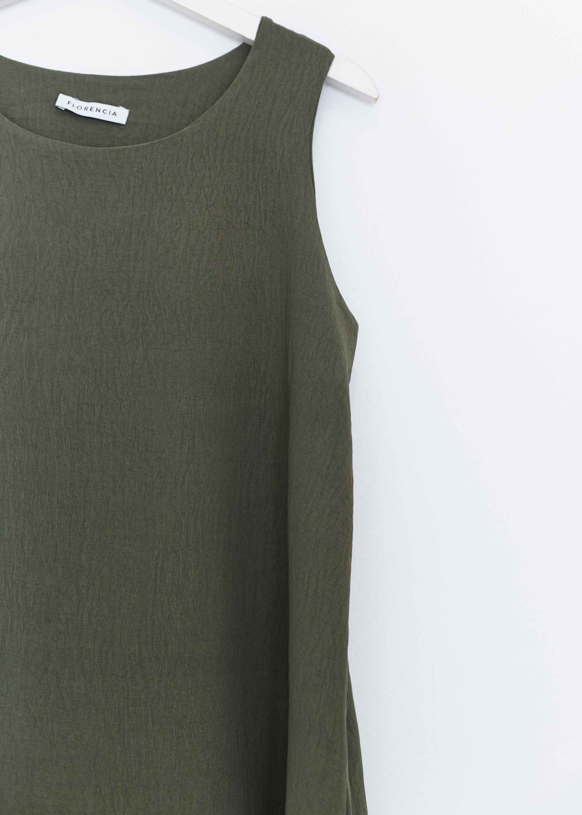 Top con cuello redondo y tirantes anchos. Corte amplio y fluido.