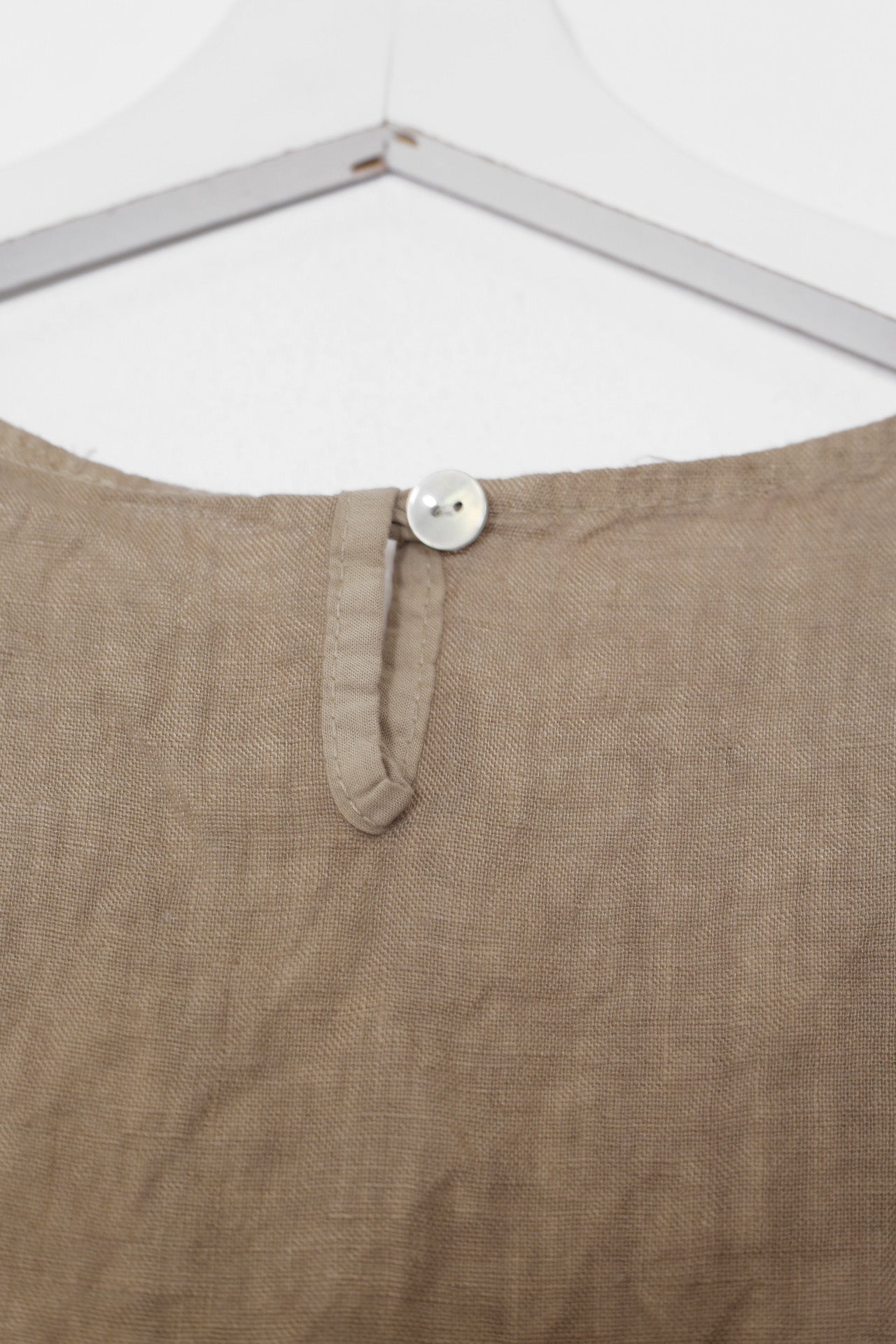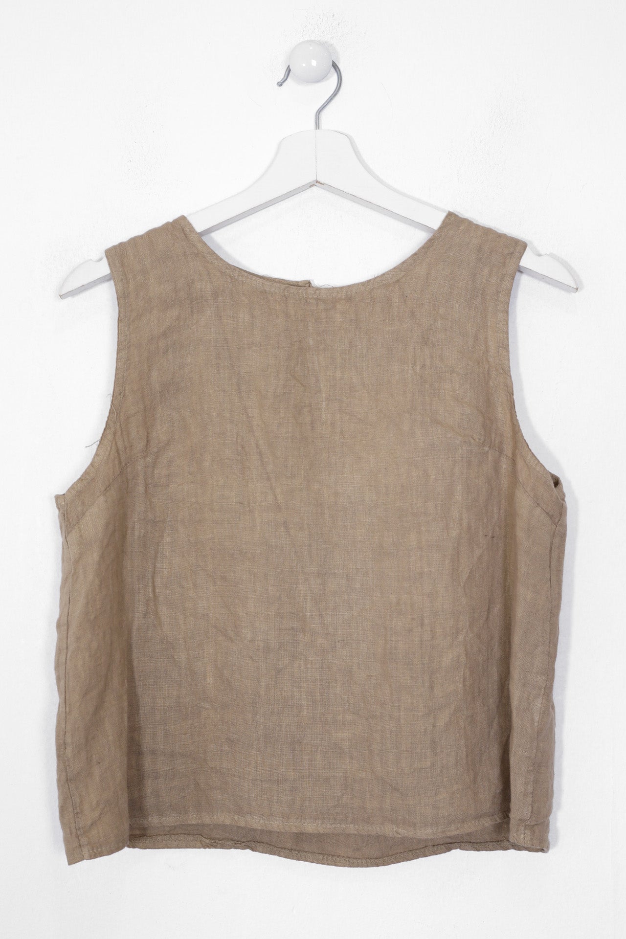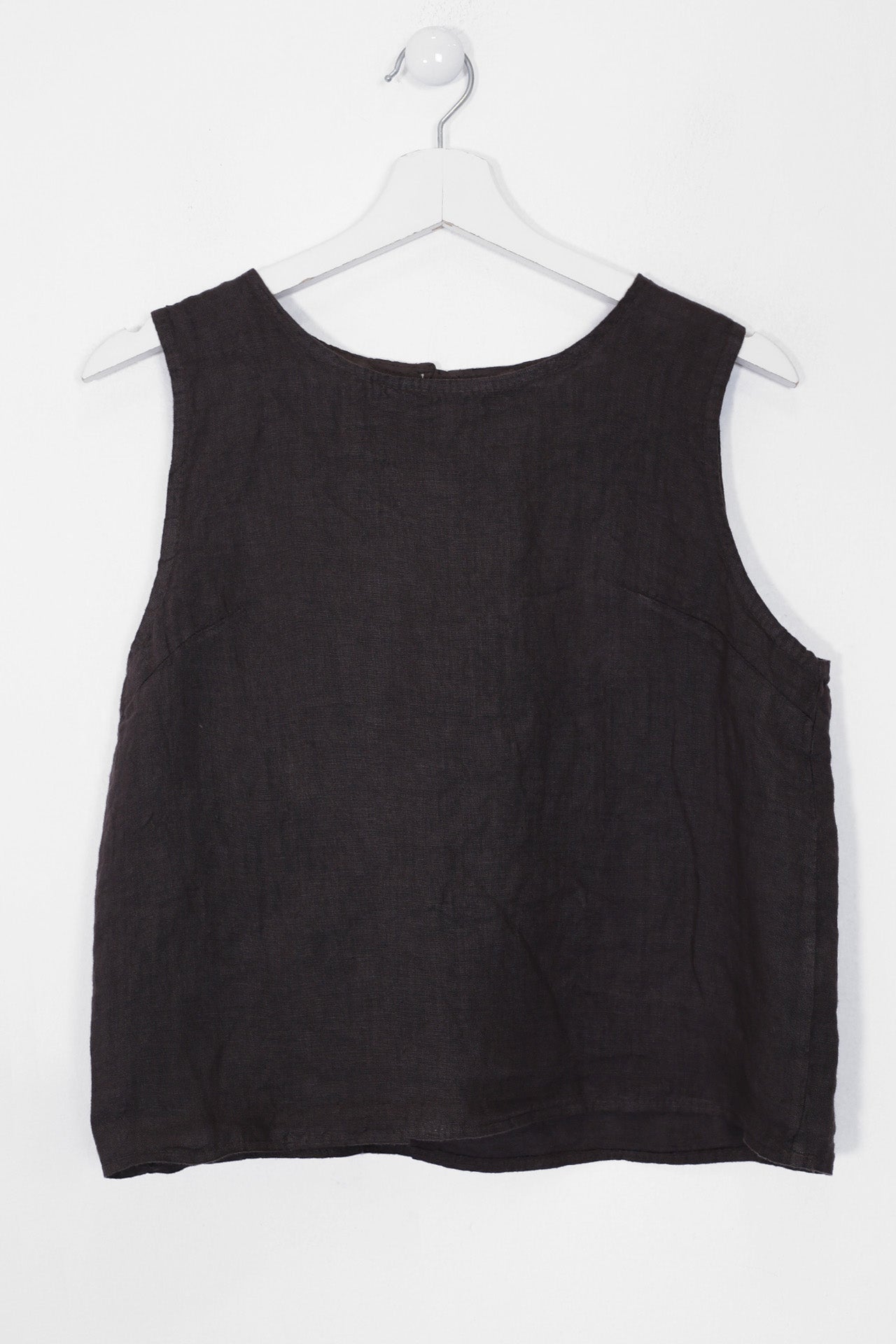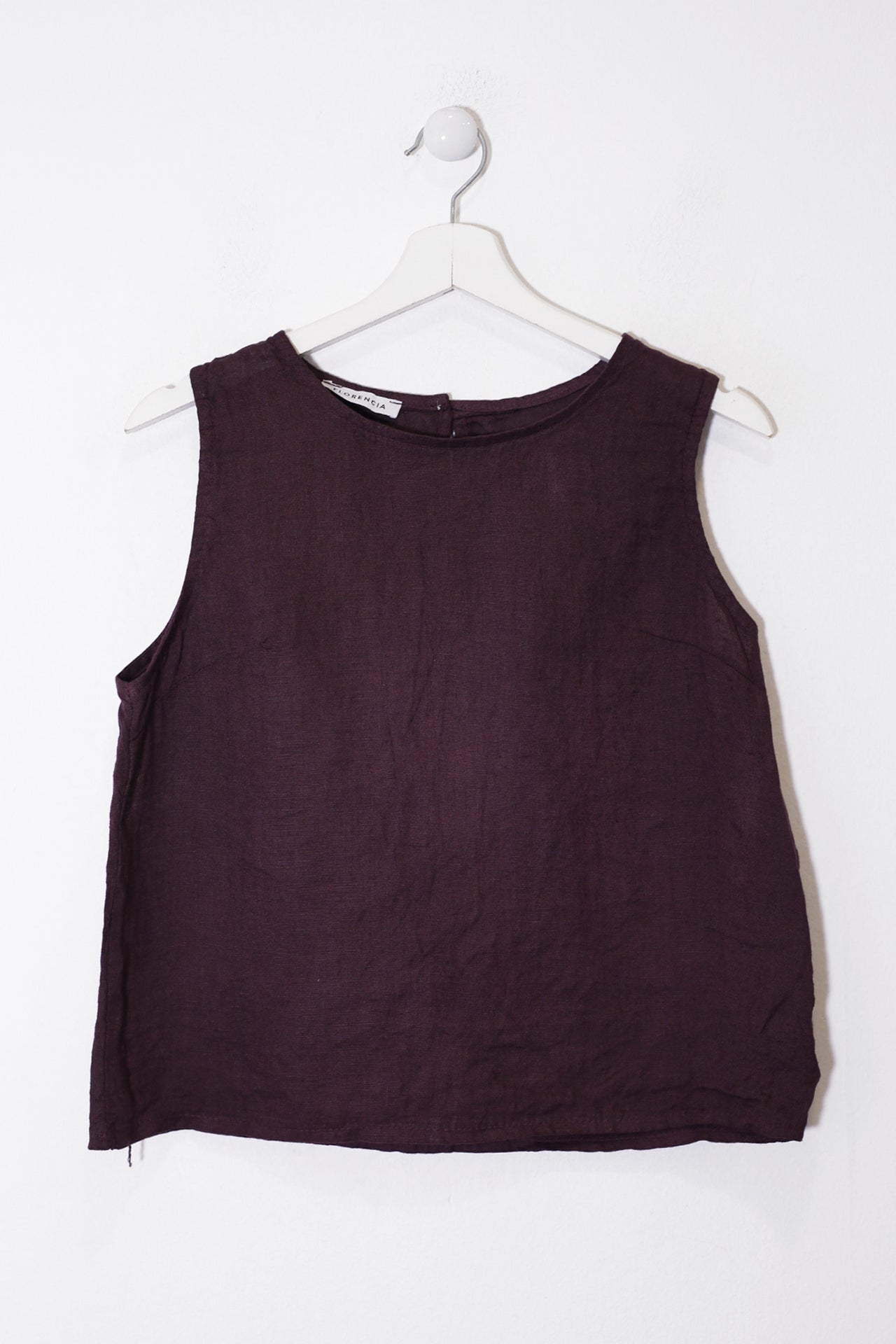 Top sin mangas con escote redondo. Detalle de abertura con botón en espalda.