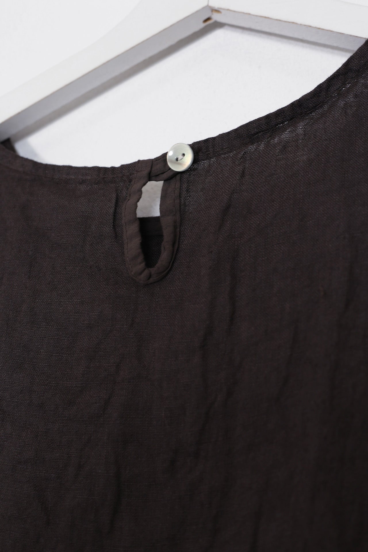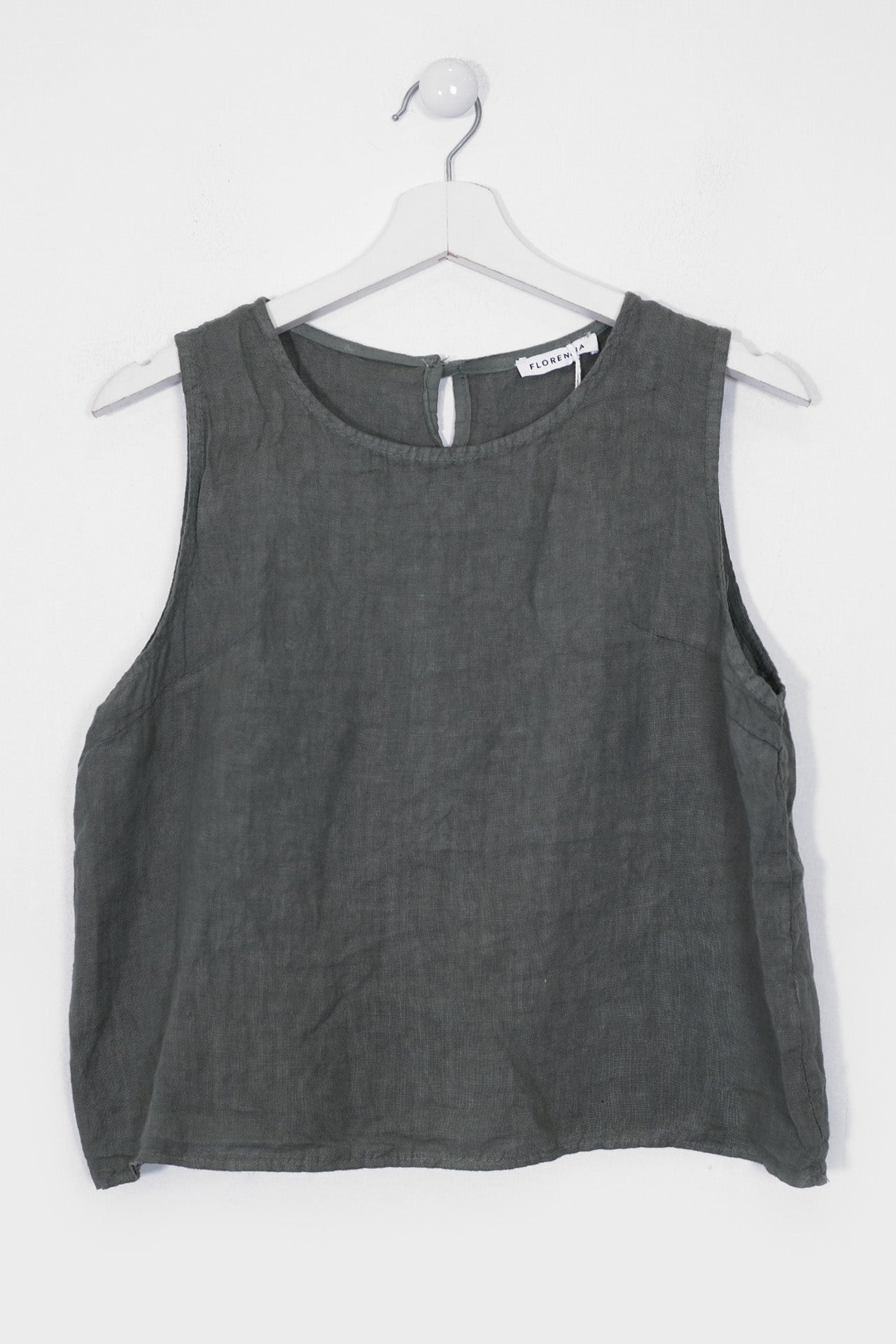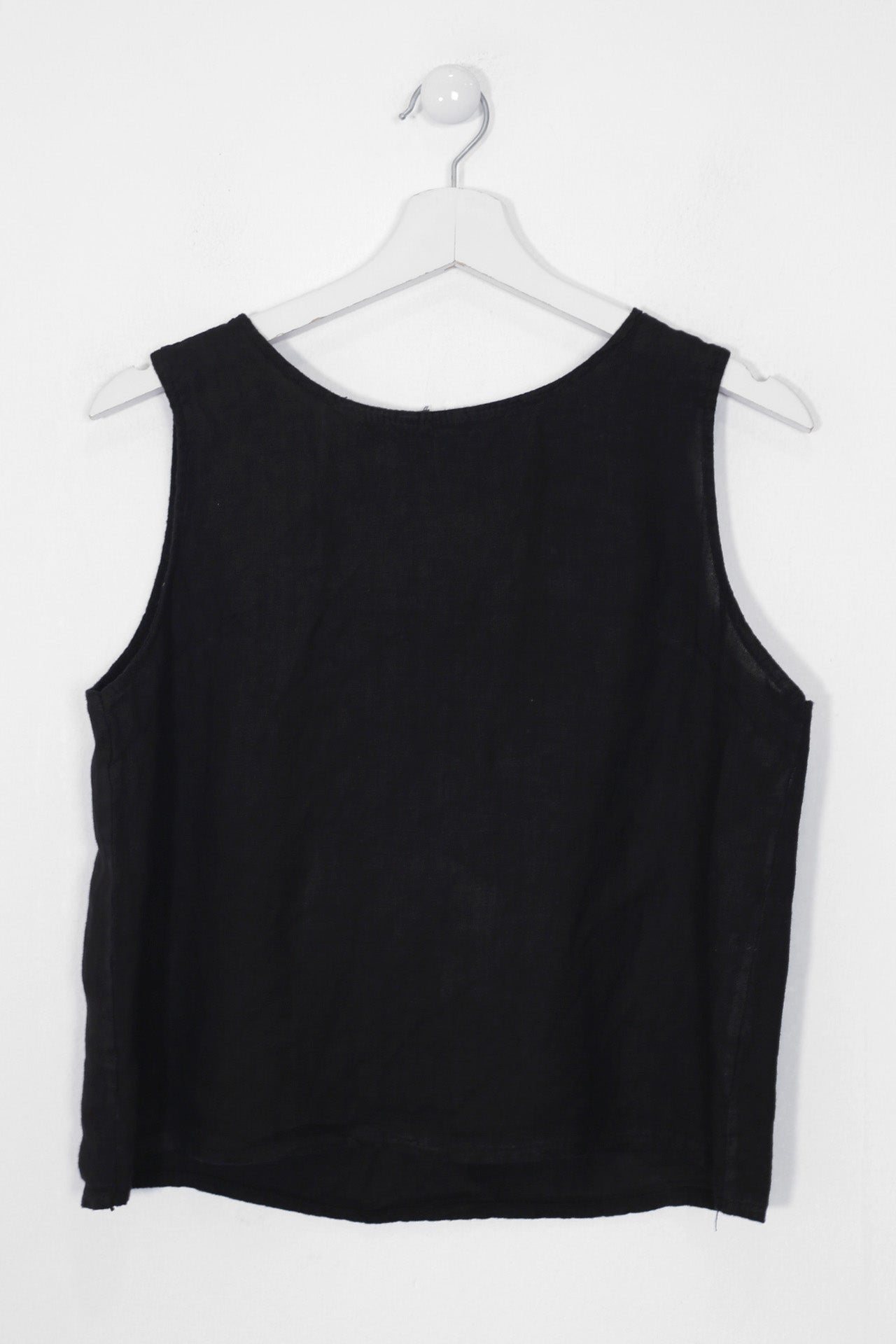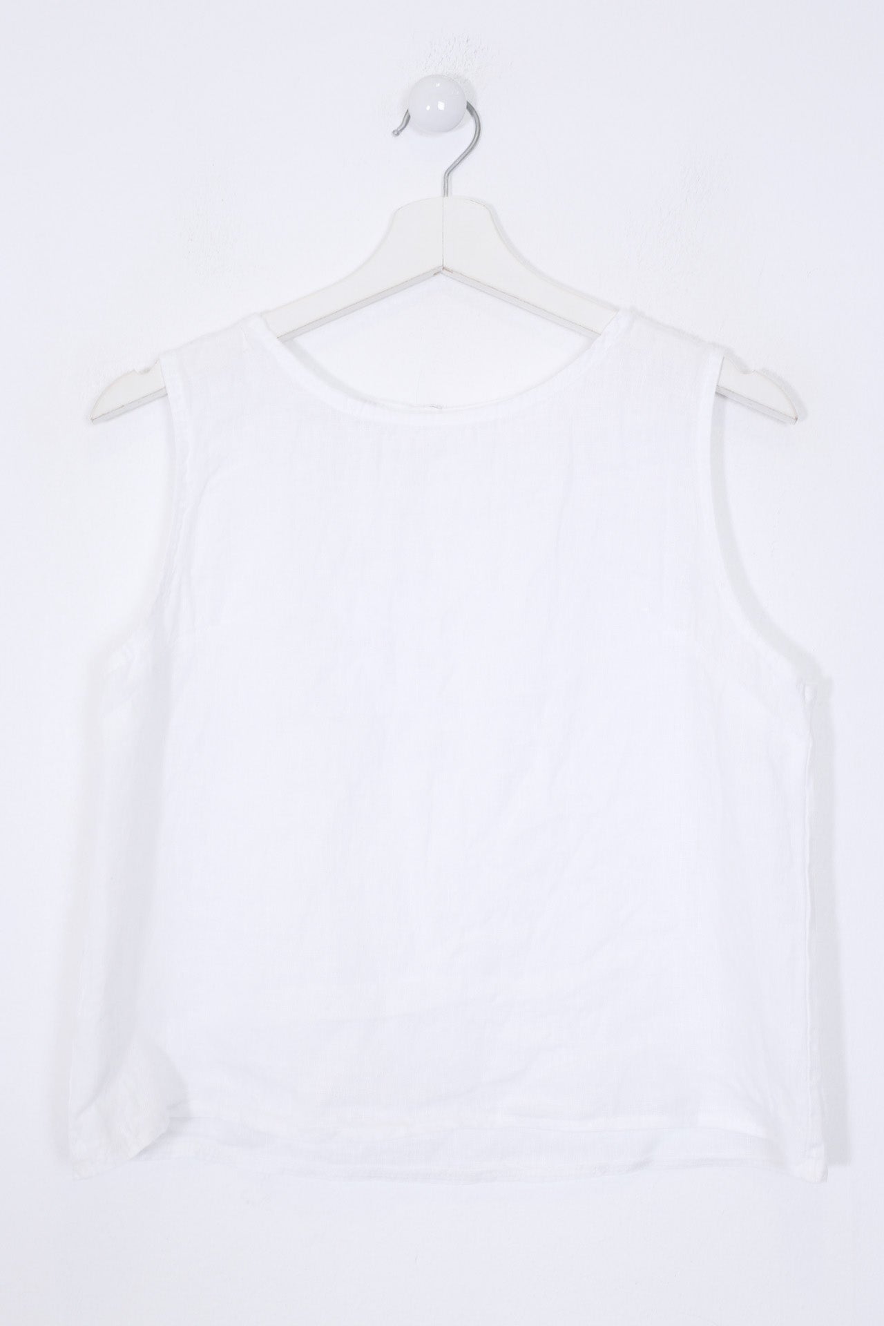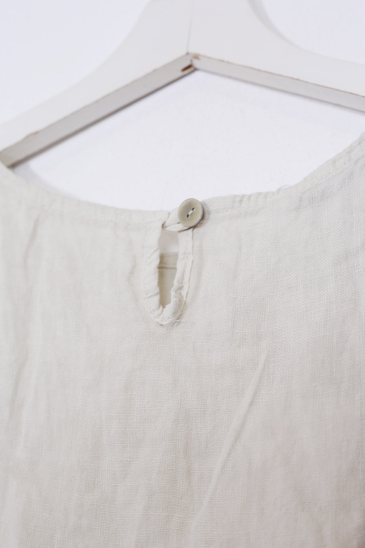 Top sin mangas con escote redondo. Detalle de abertura con botón en espalda.
