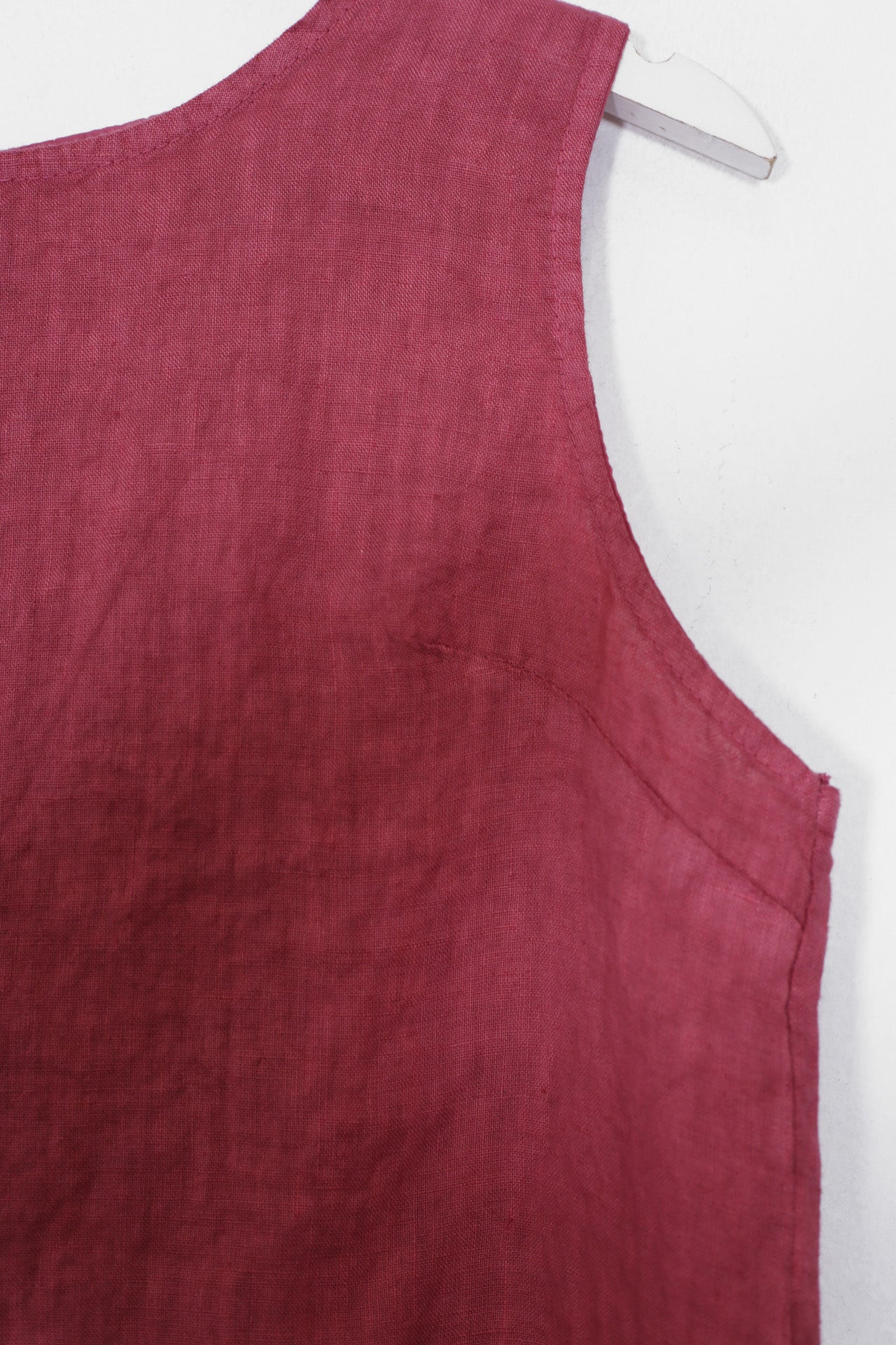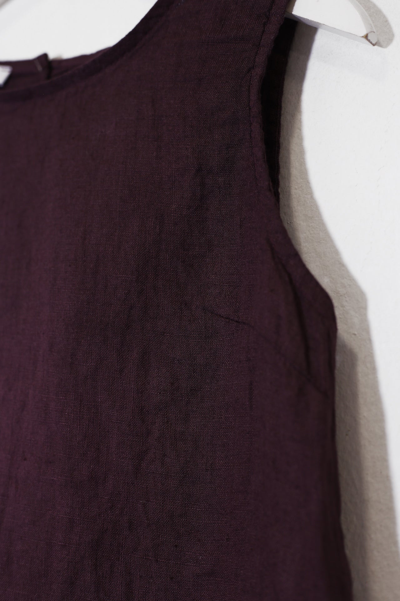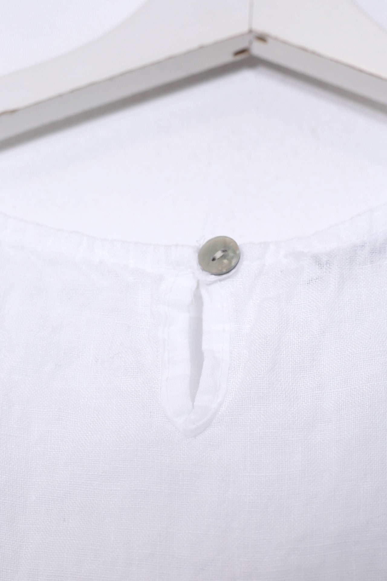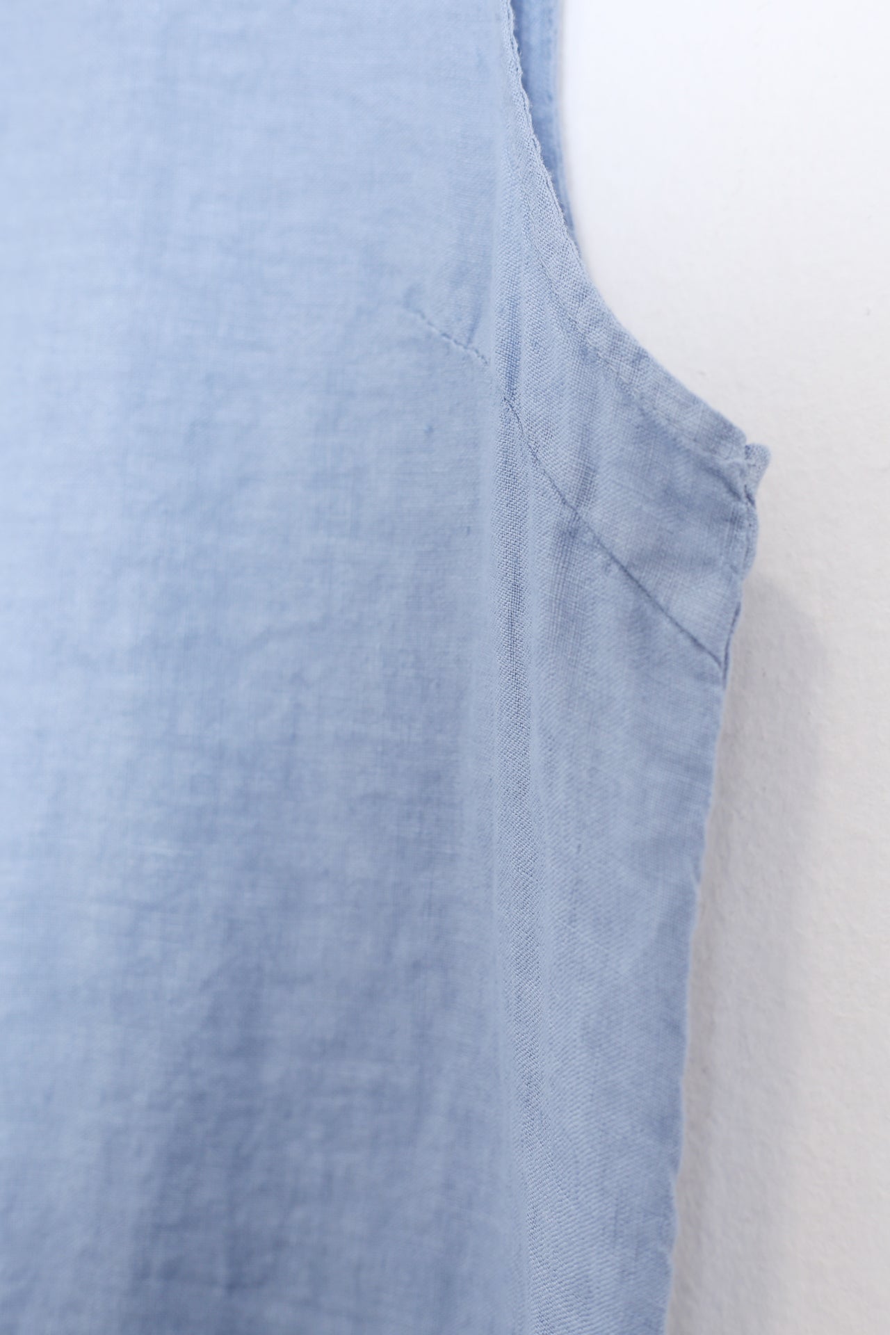 Top sin mangas con escote redondo. Detalle de abertura con botón en espalda.