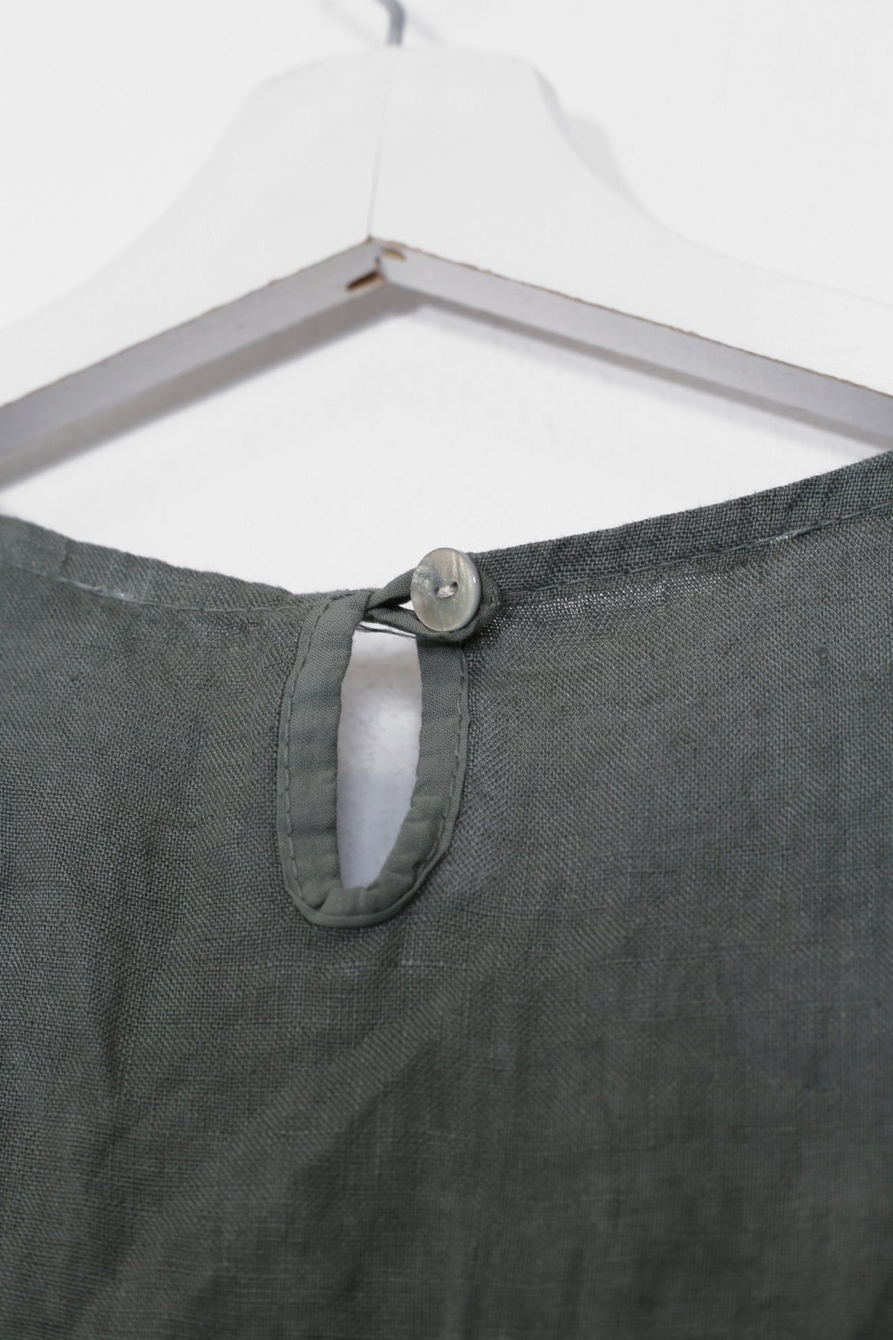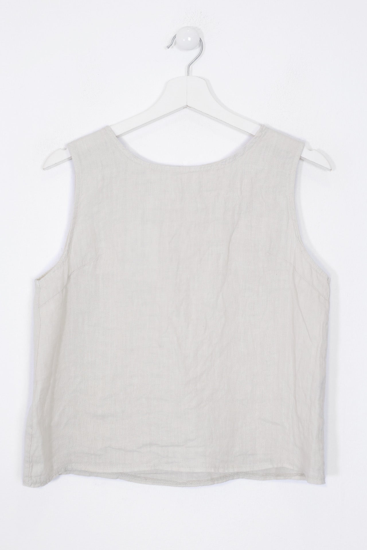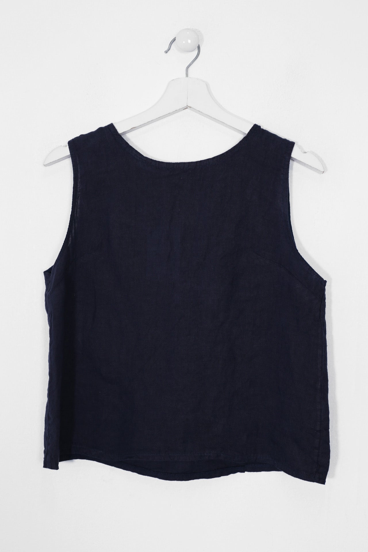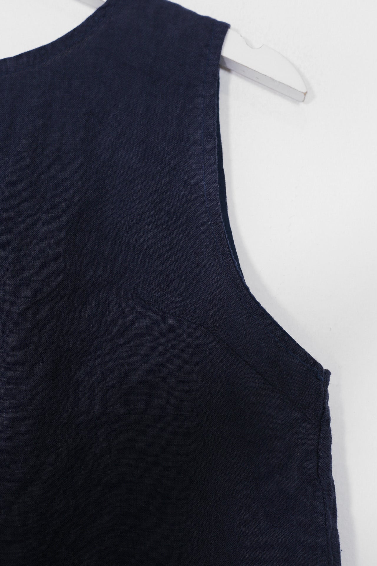 Top sin mangas con escote redondo. Detalle de abertura con botón en espalda.