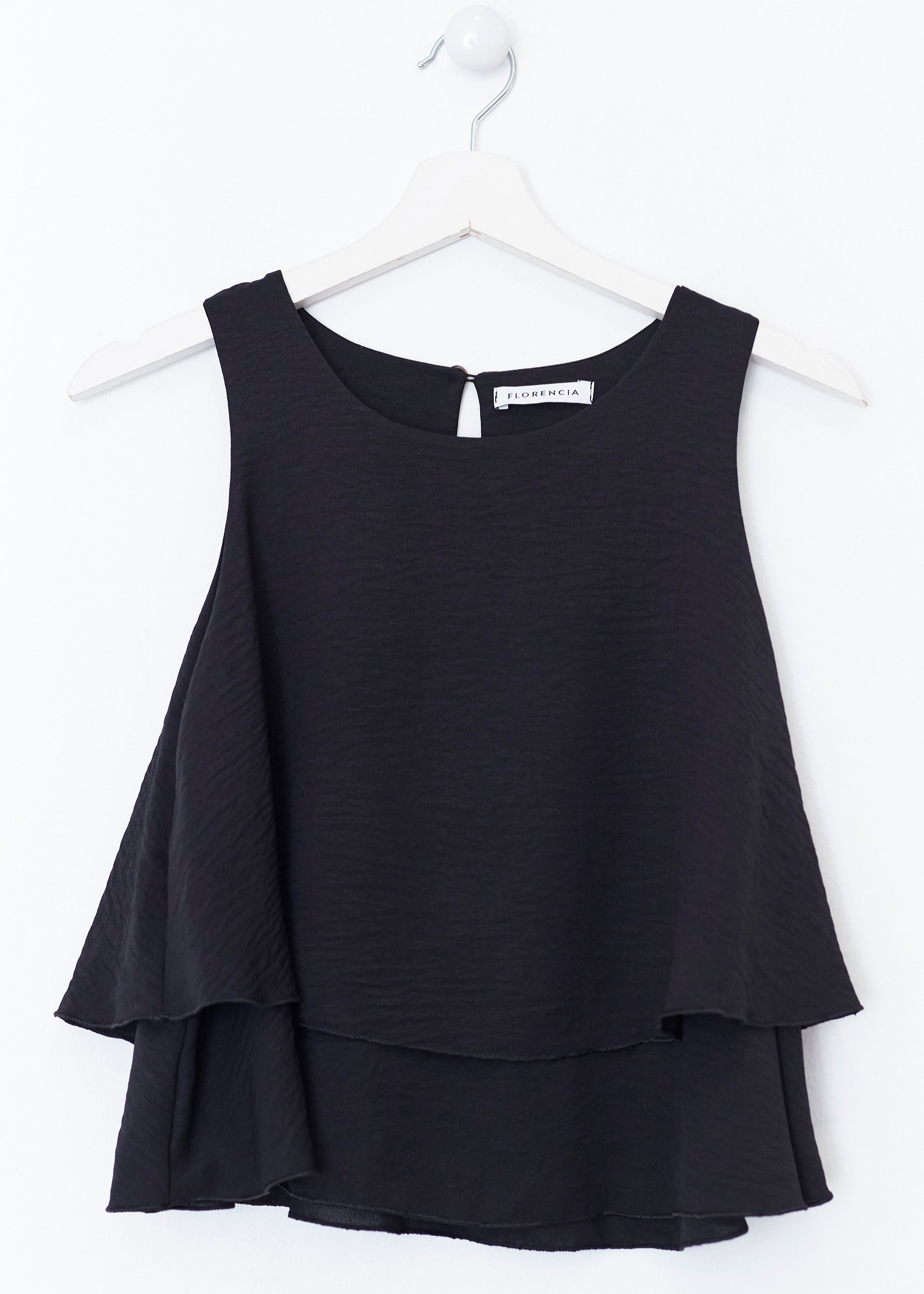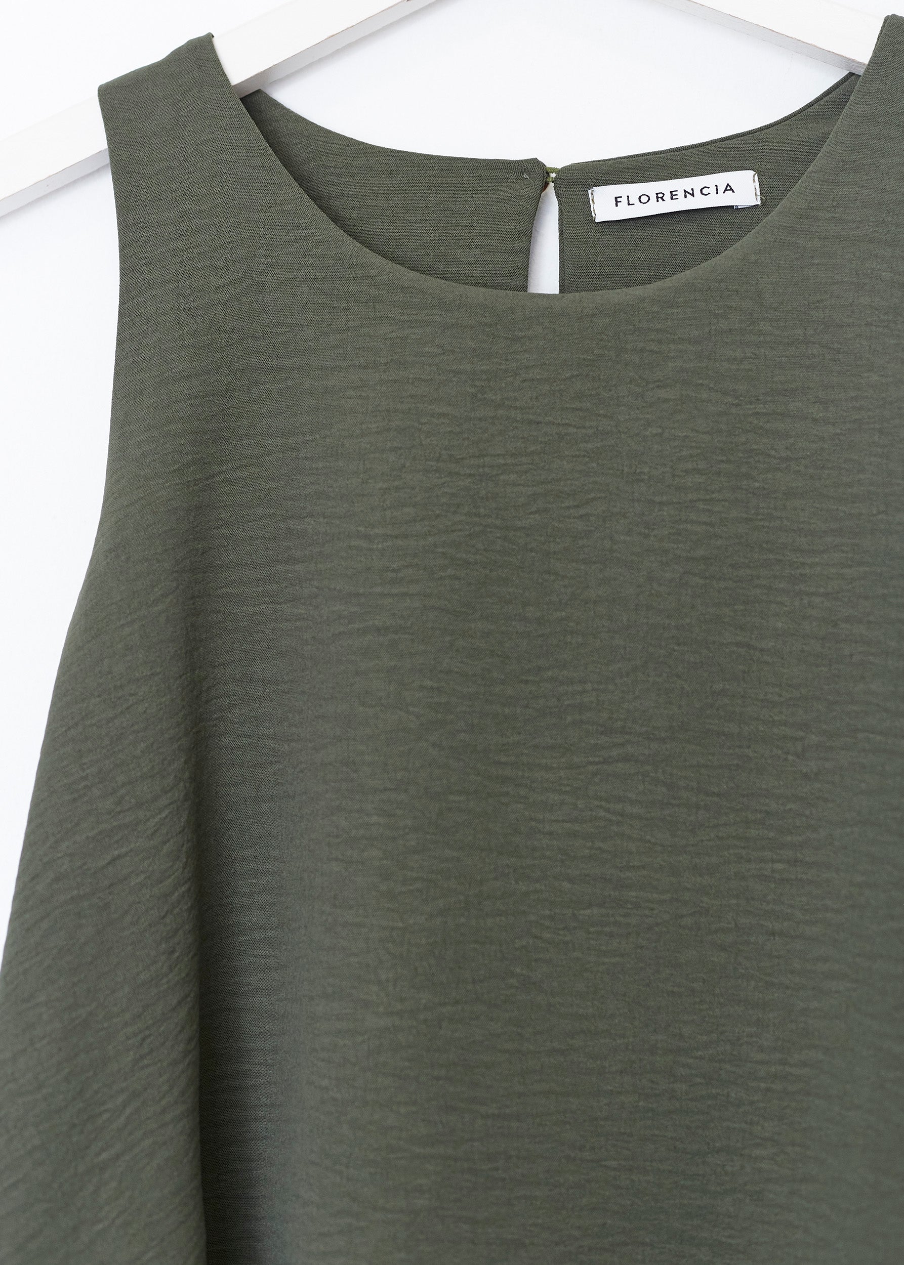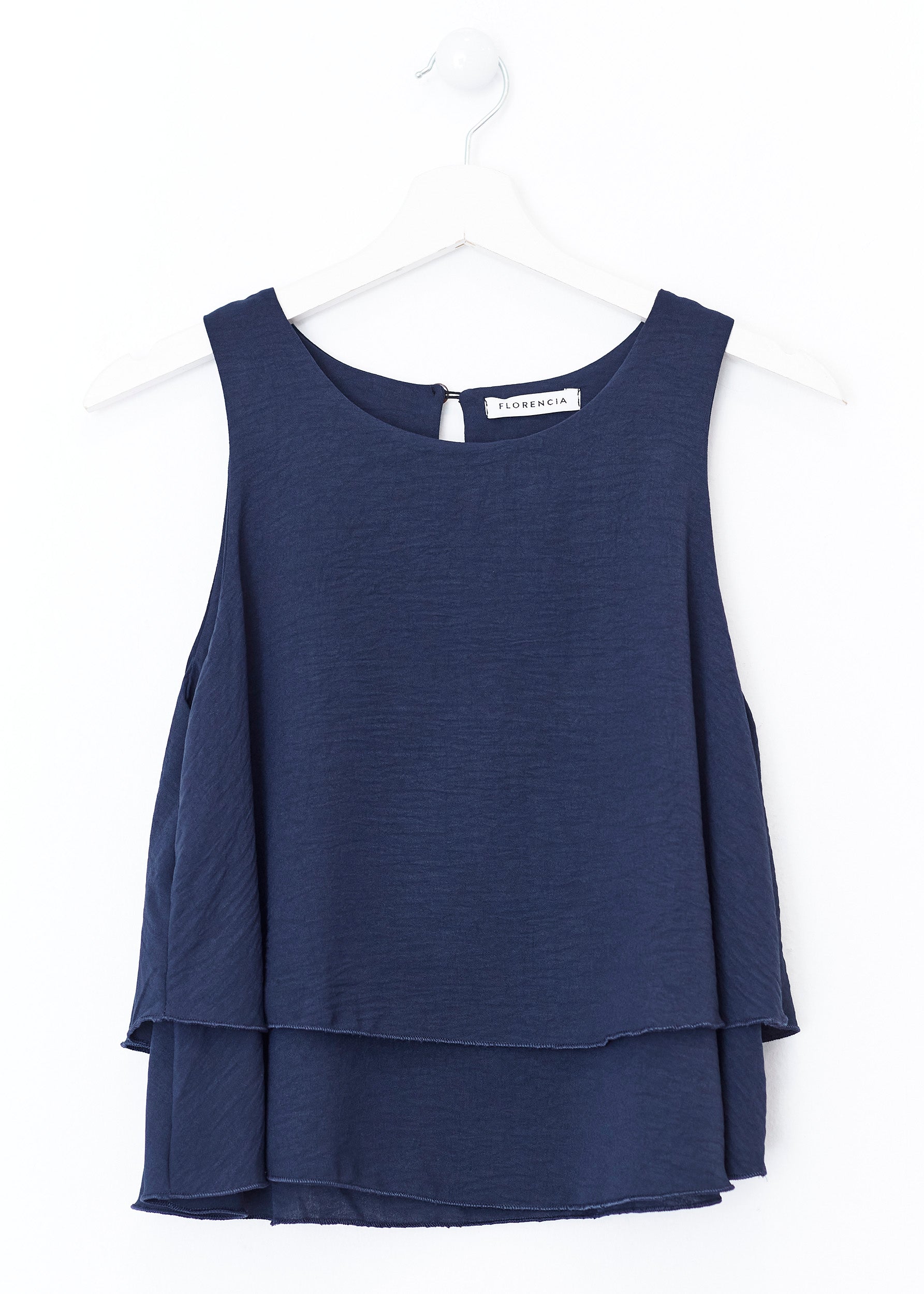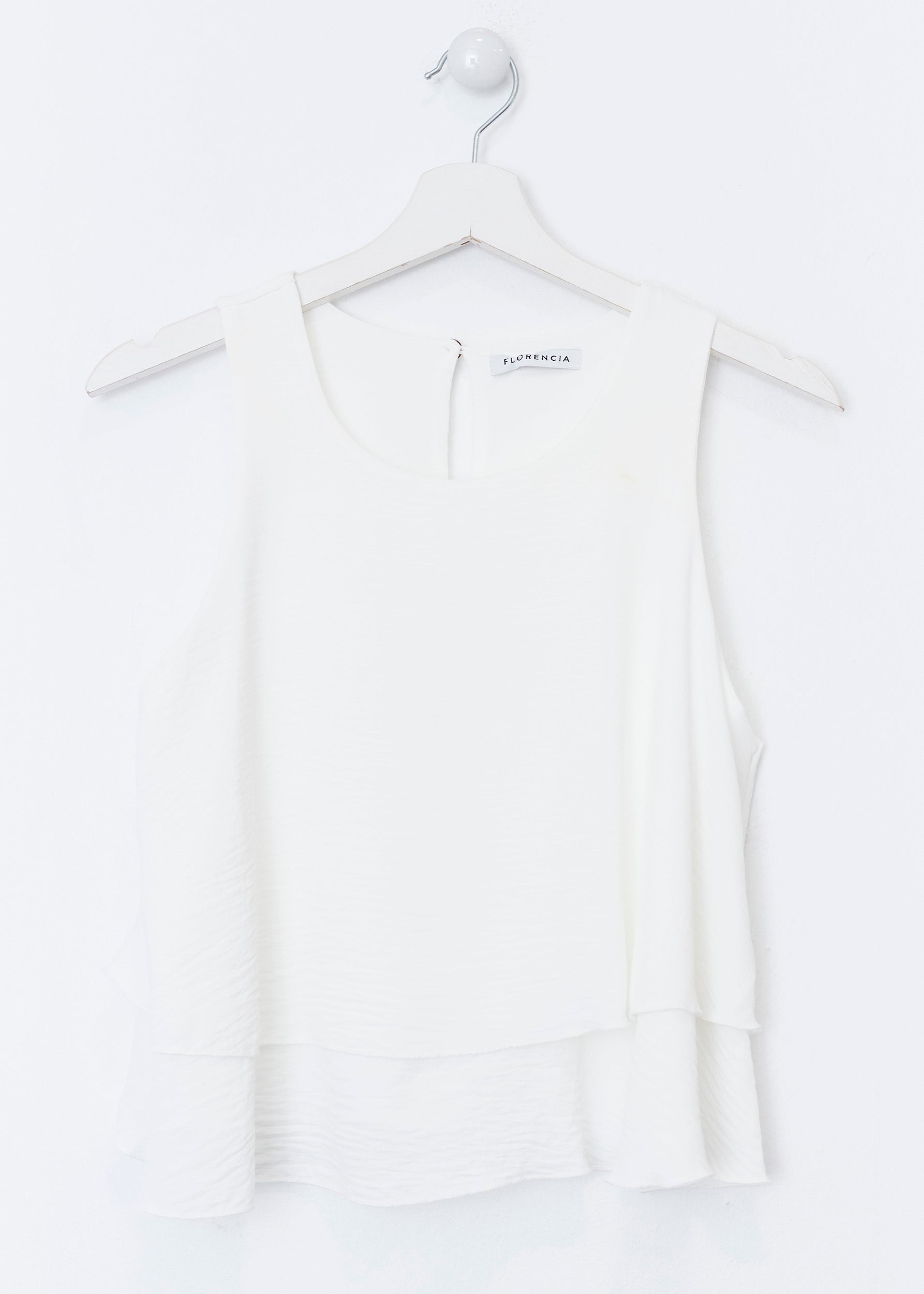Top con escote redondo y tirantes amplios. Detalle de cierre con botón en espalda.