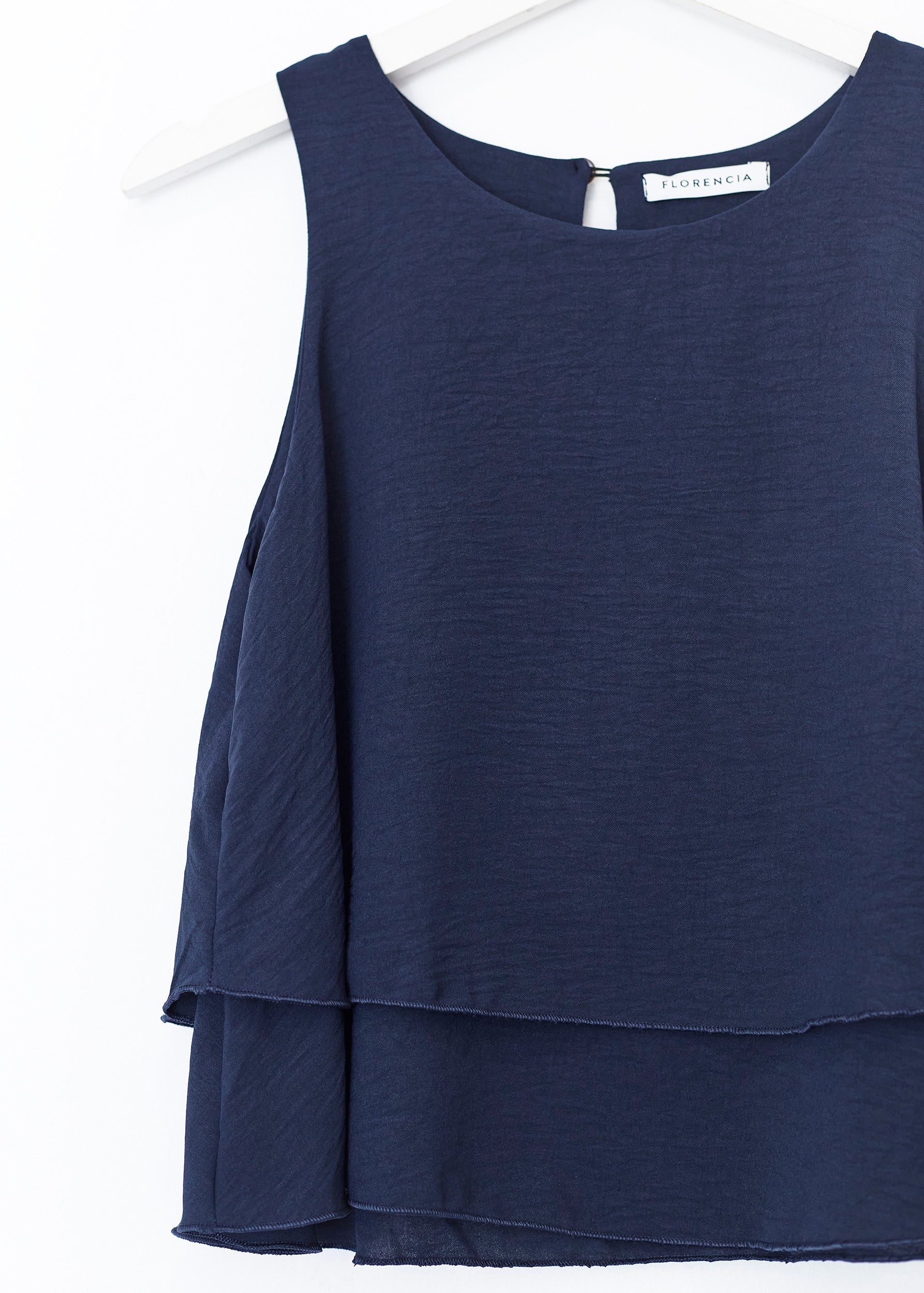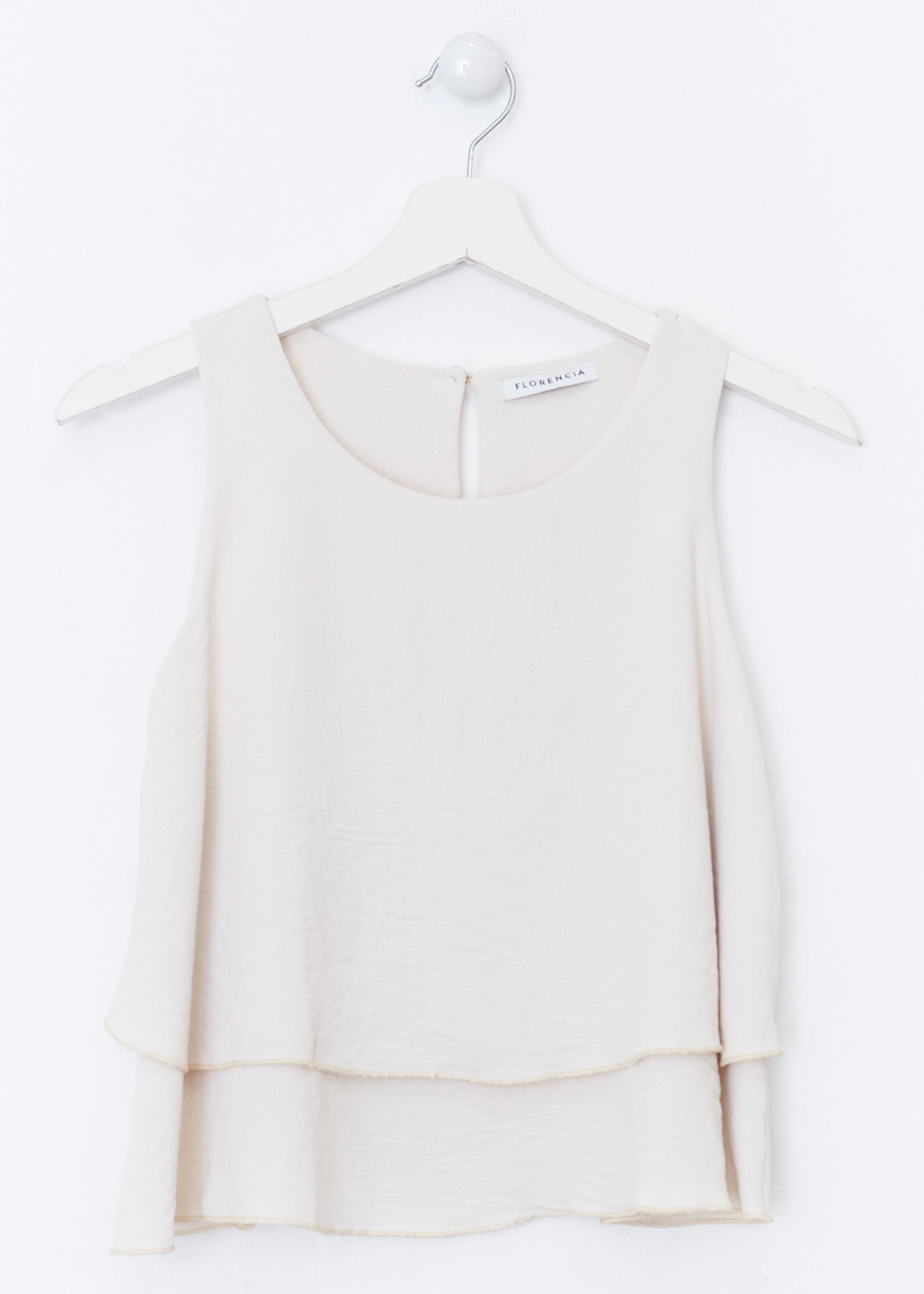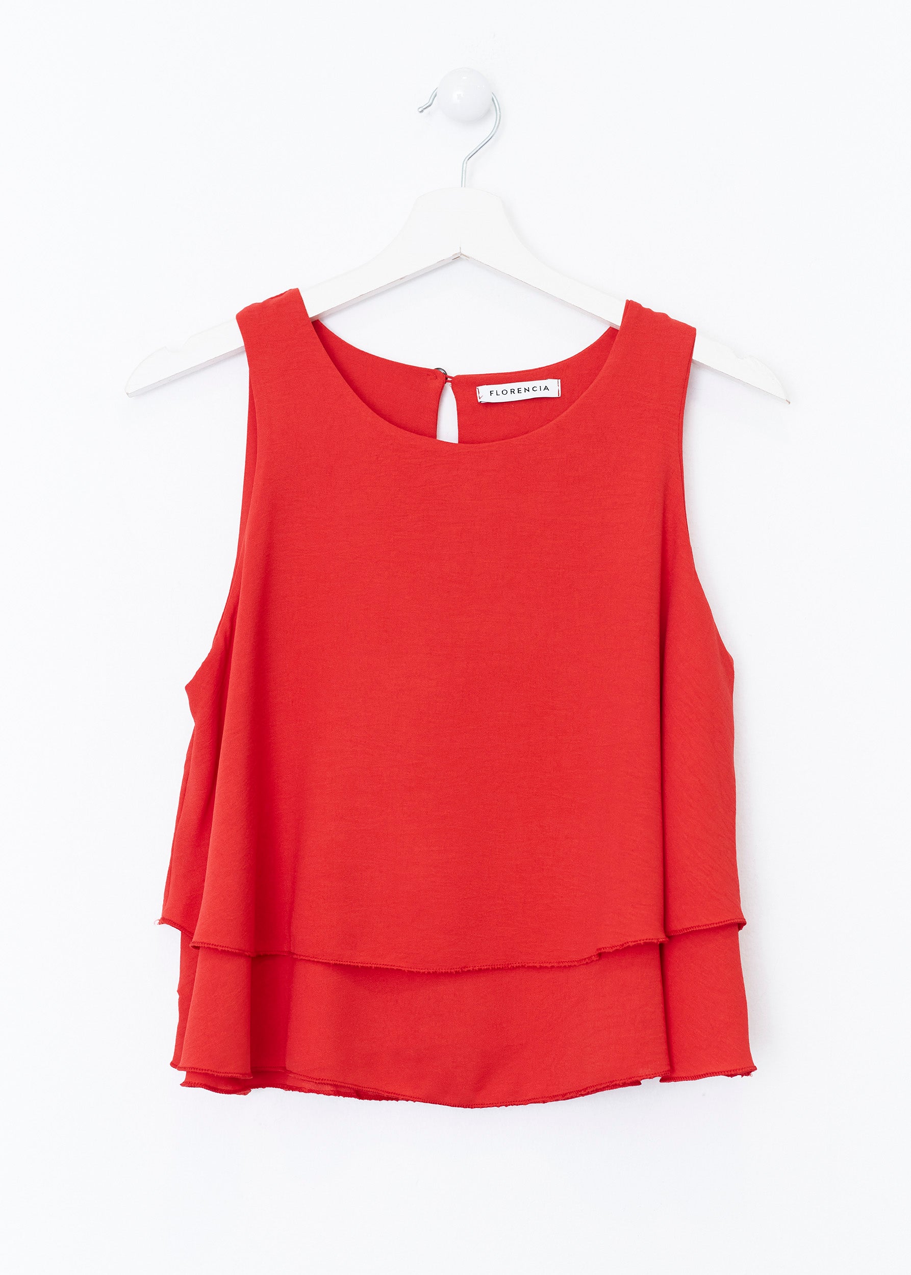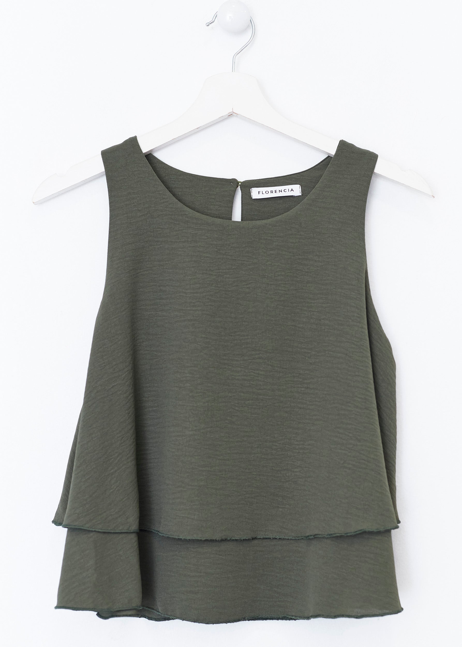 Top con escote redondo y tirantes amplios. Detalle de cierre con botón en espalda.