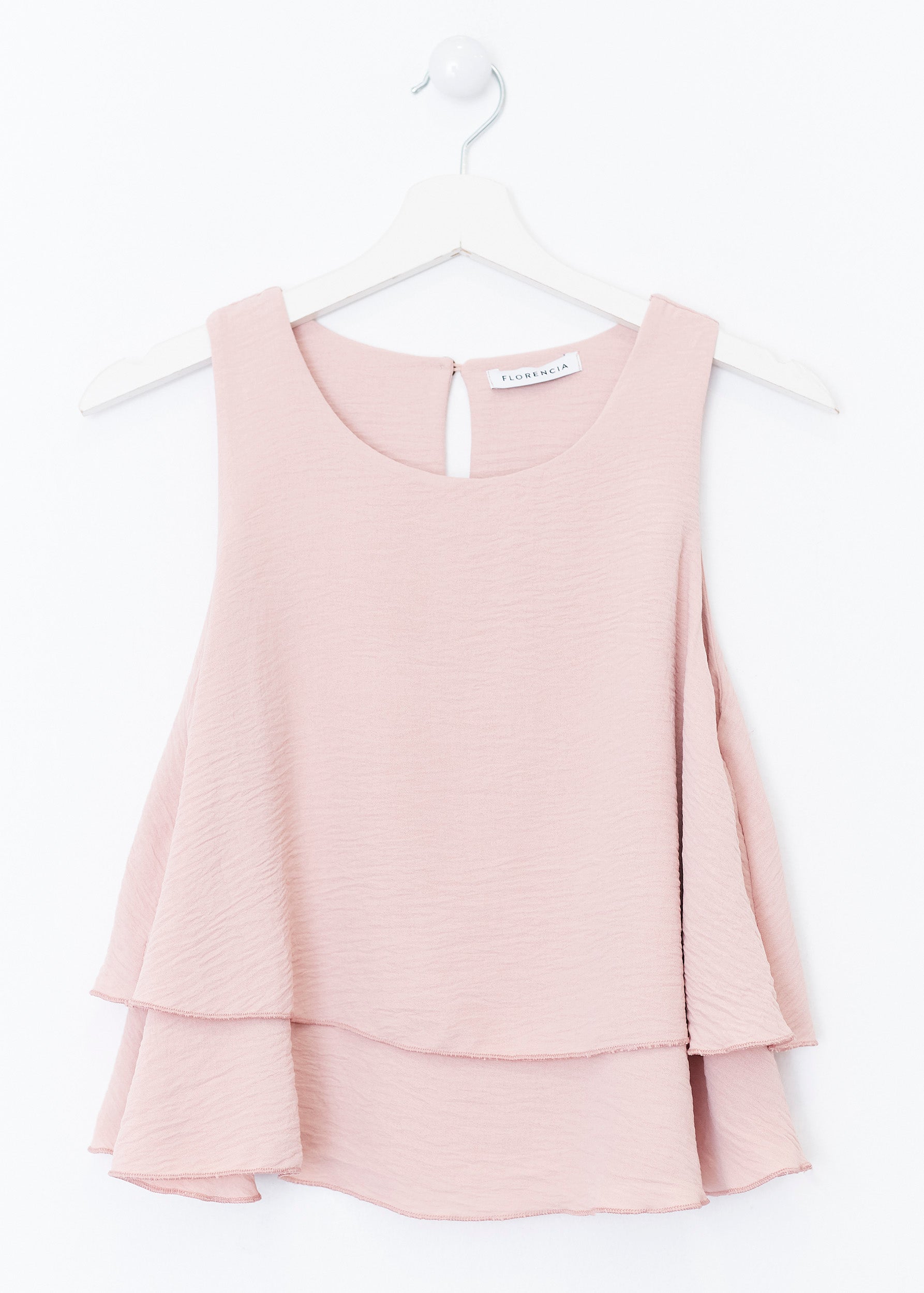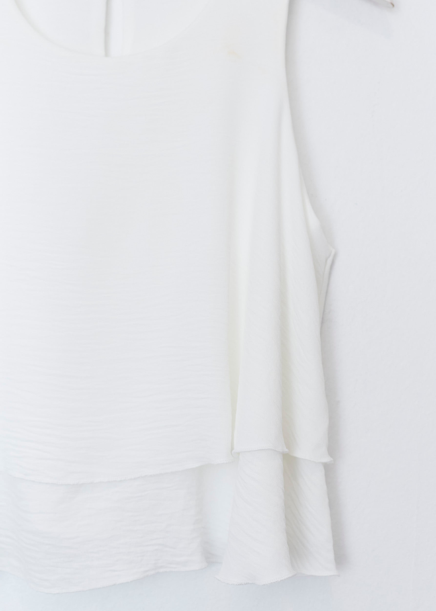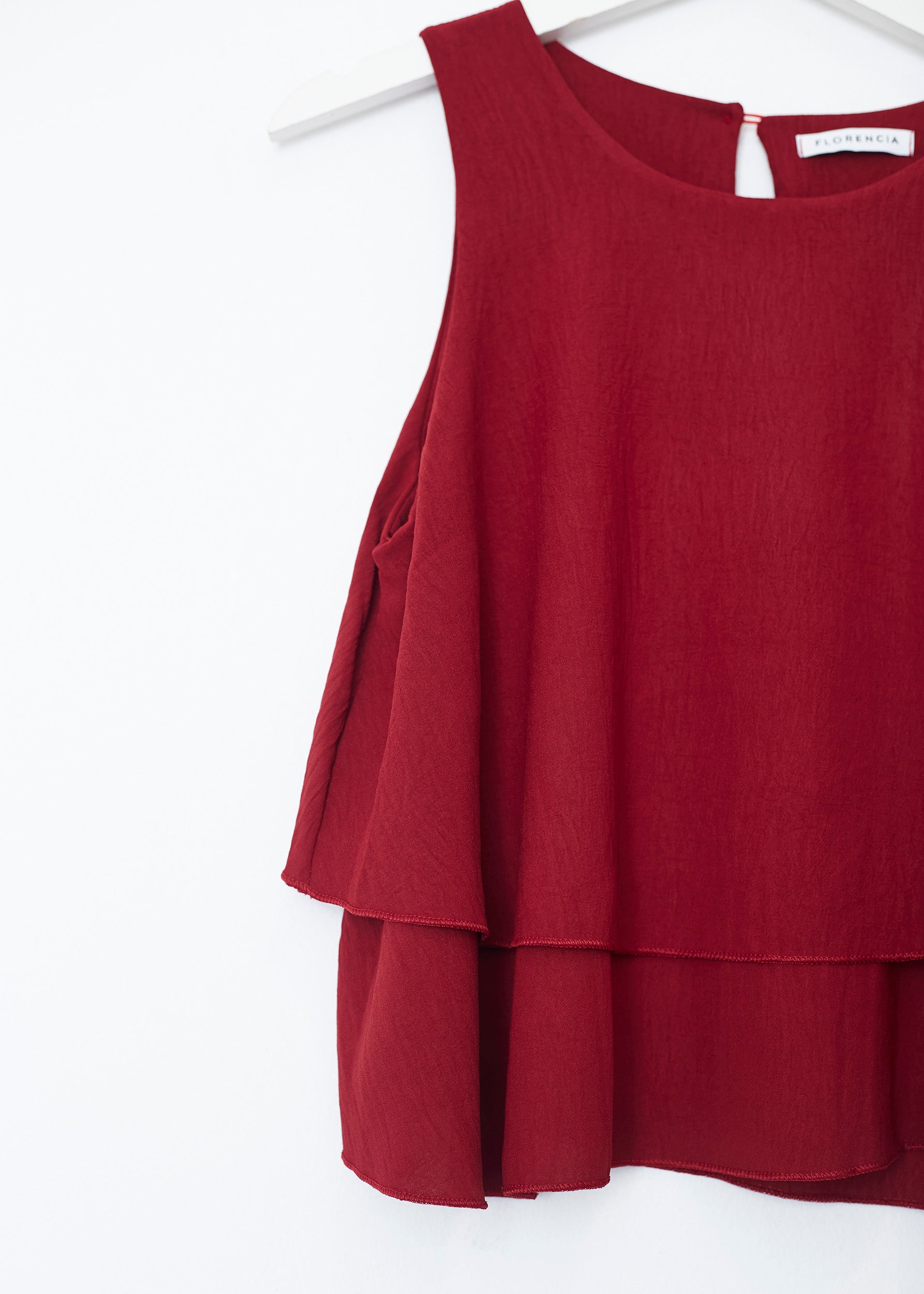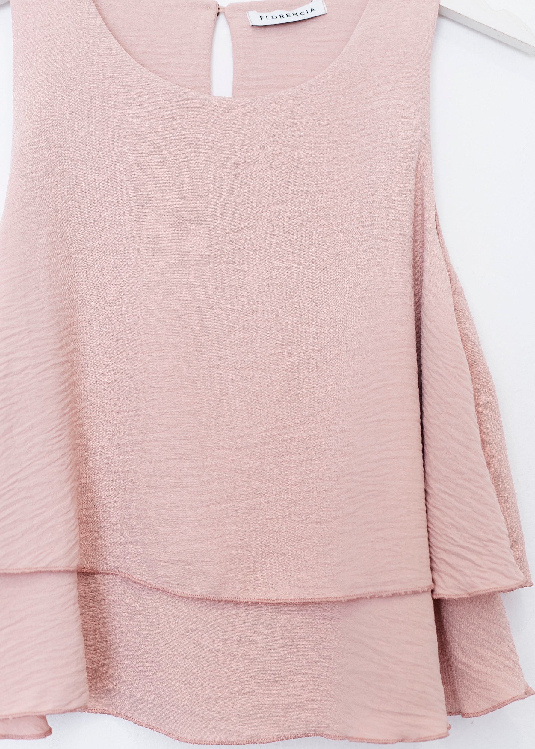 Top con escote redondo y tirantes amplios. Detalle de cierre con botón en espalda.