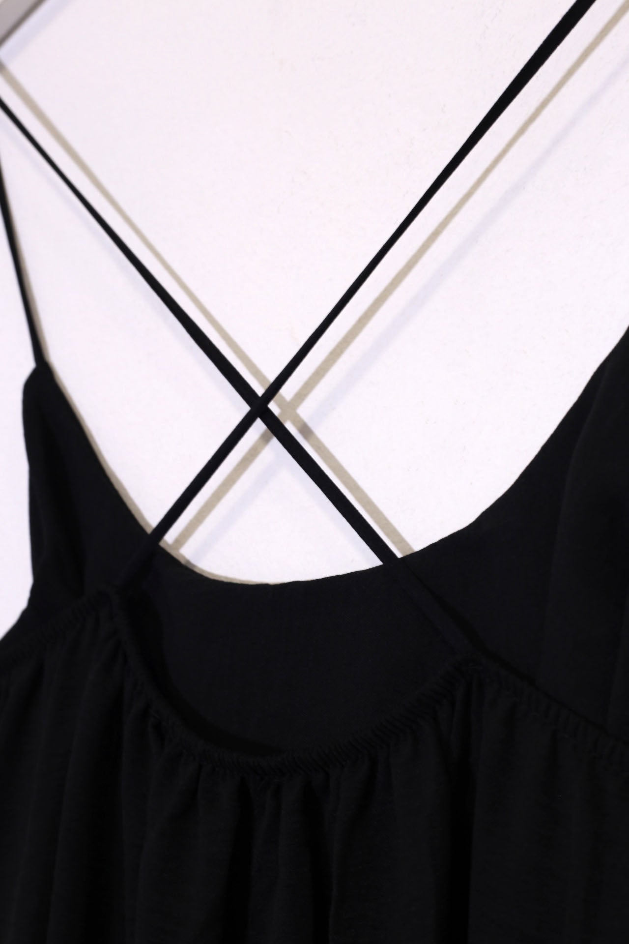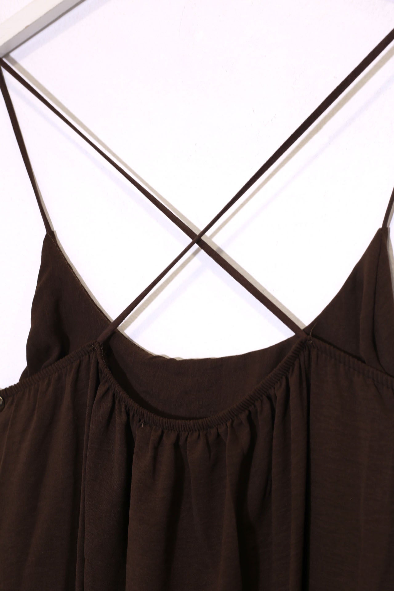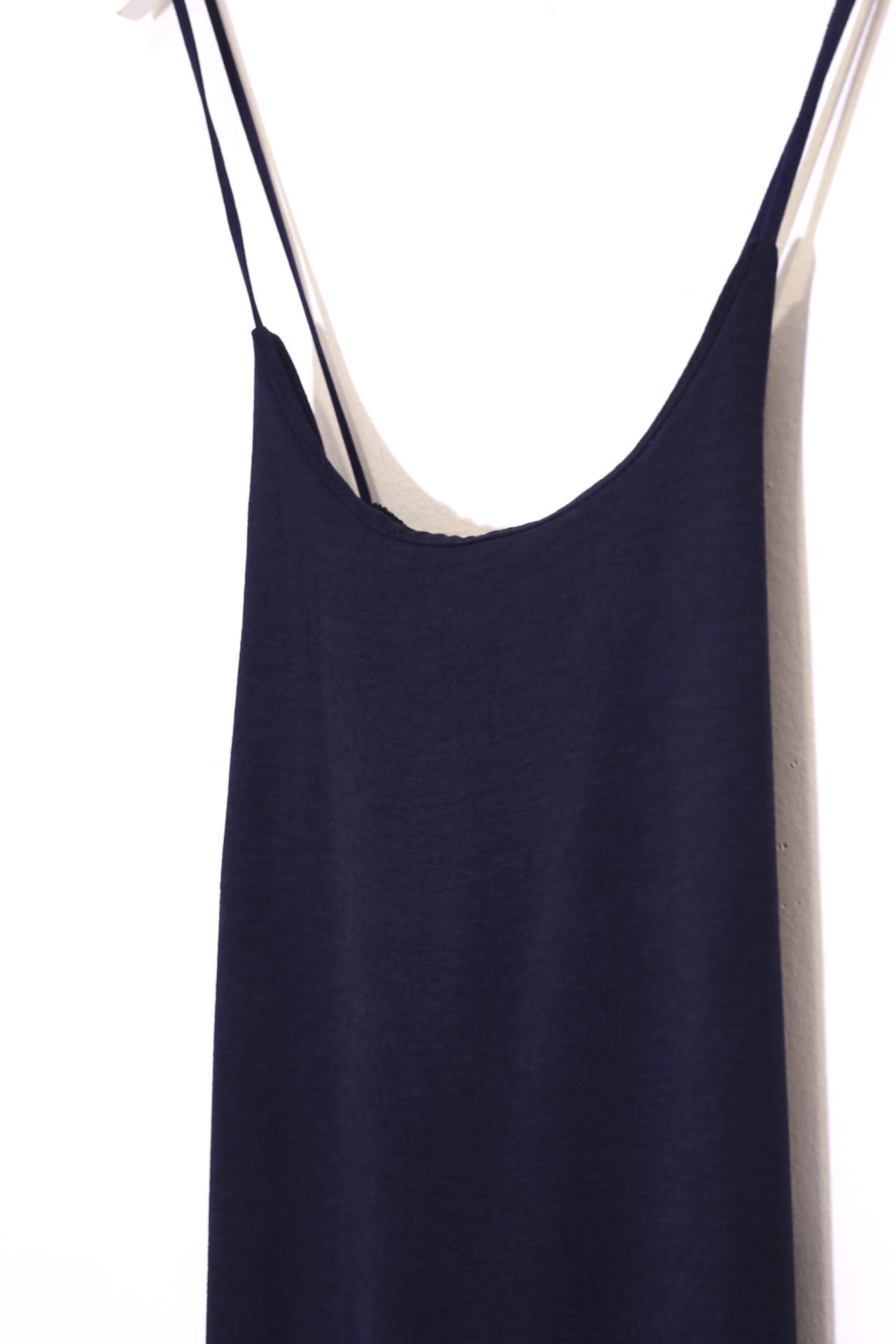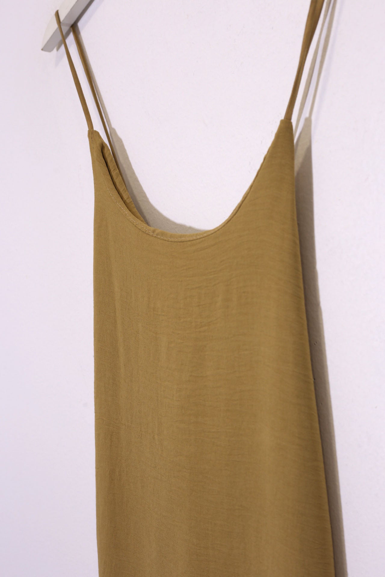 Vestido largo de tirantes finos cruzados en la espalda, escote redondo, tejido fluido con textura y aberturas laterales en el bajo.