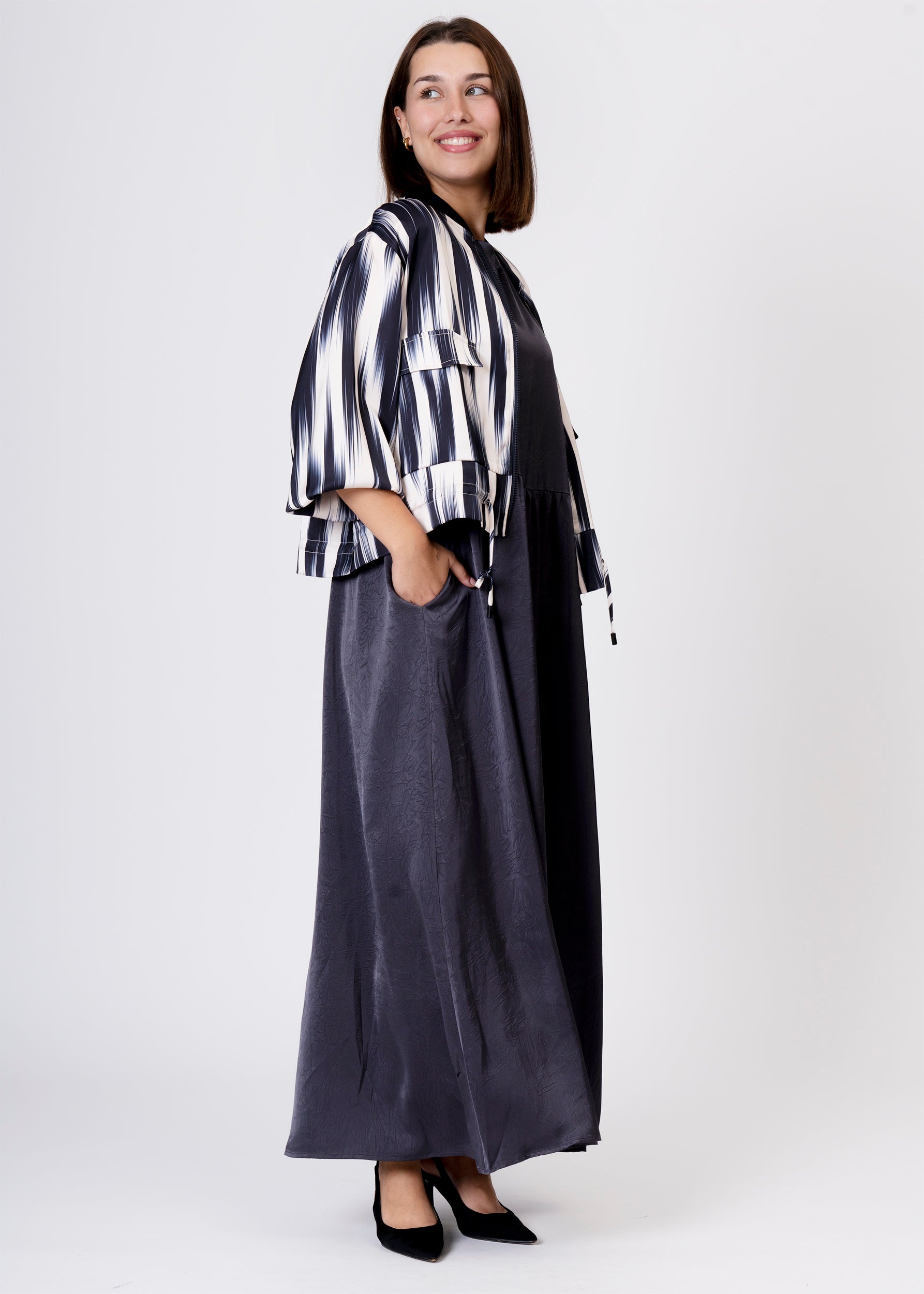 Vestido largo de tirantes anchos y cuello redondo. Bolsillos laterales. Cierre trasero con botón. Estilo ancho.