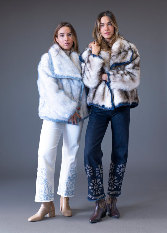 Chaqueta efecto pelo bicolor