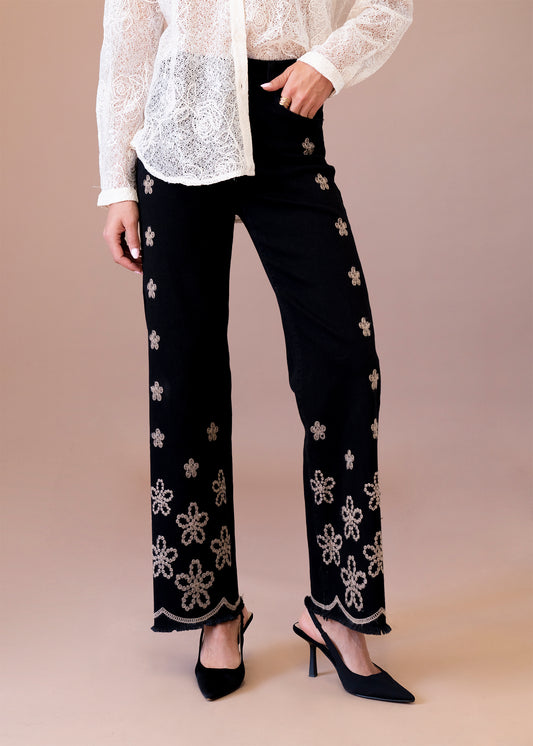 Jeans rectos bordados