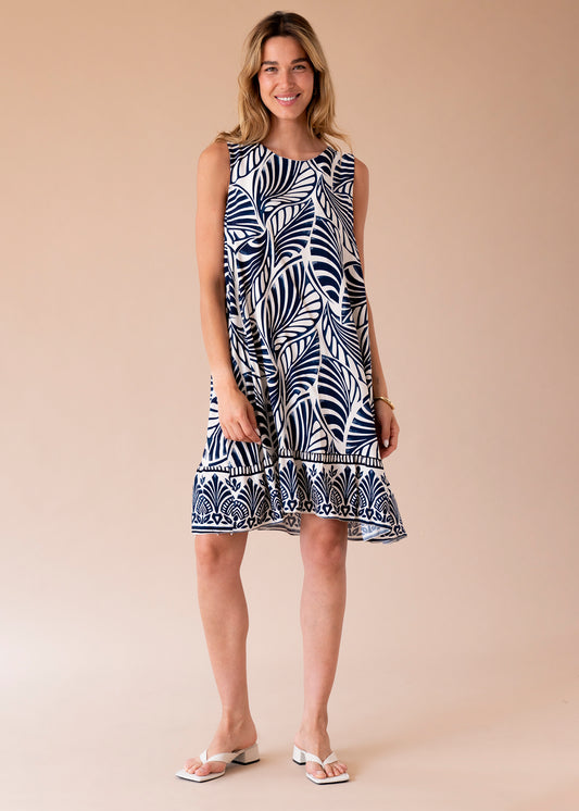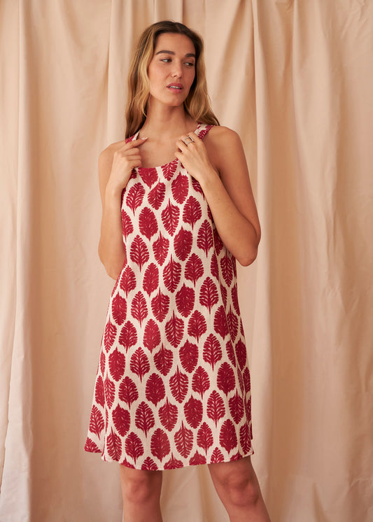 Vestido corto lino estampado