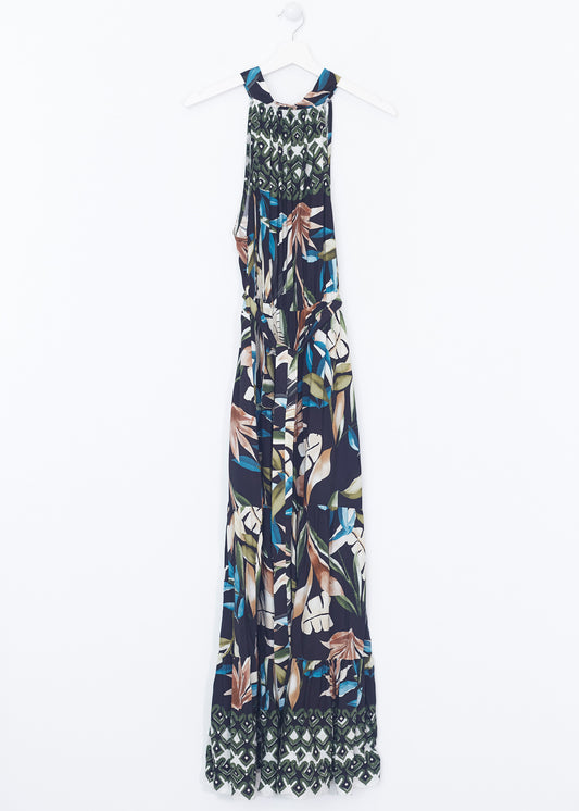 Vestido halter hojas