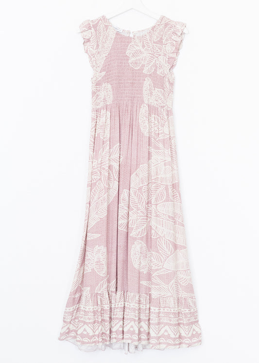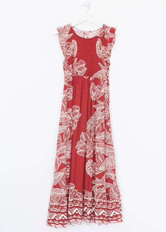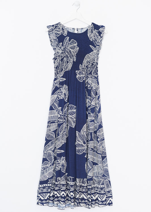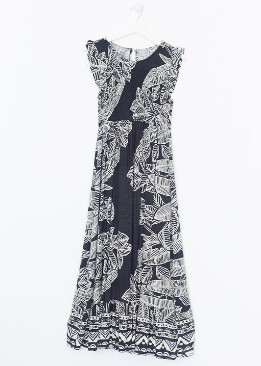 Vestido fruncido palmeras