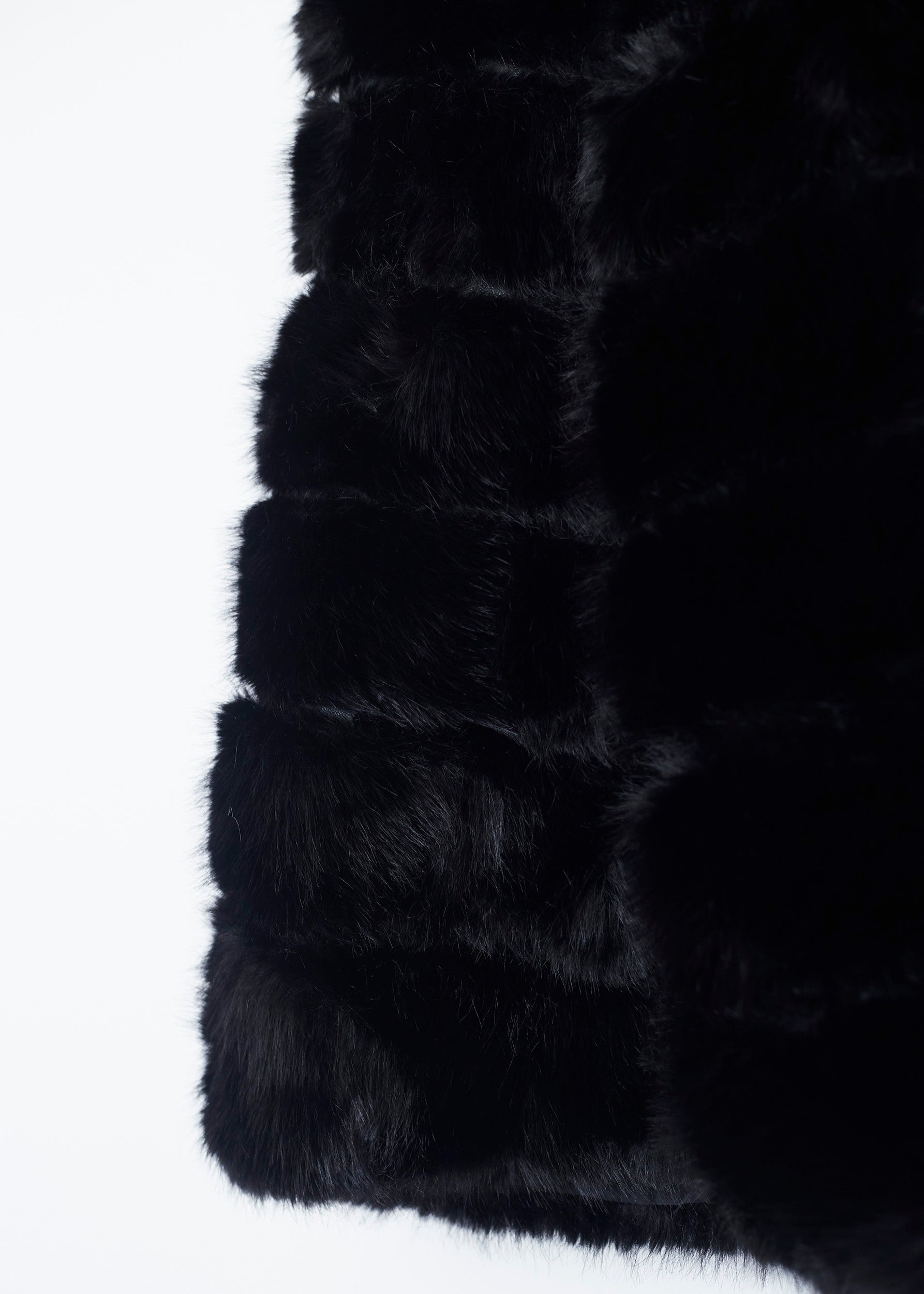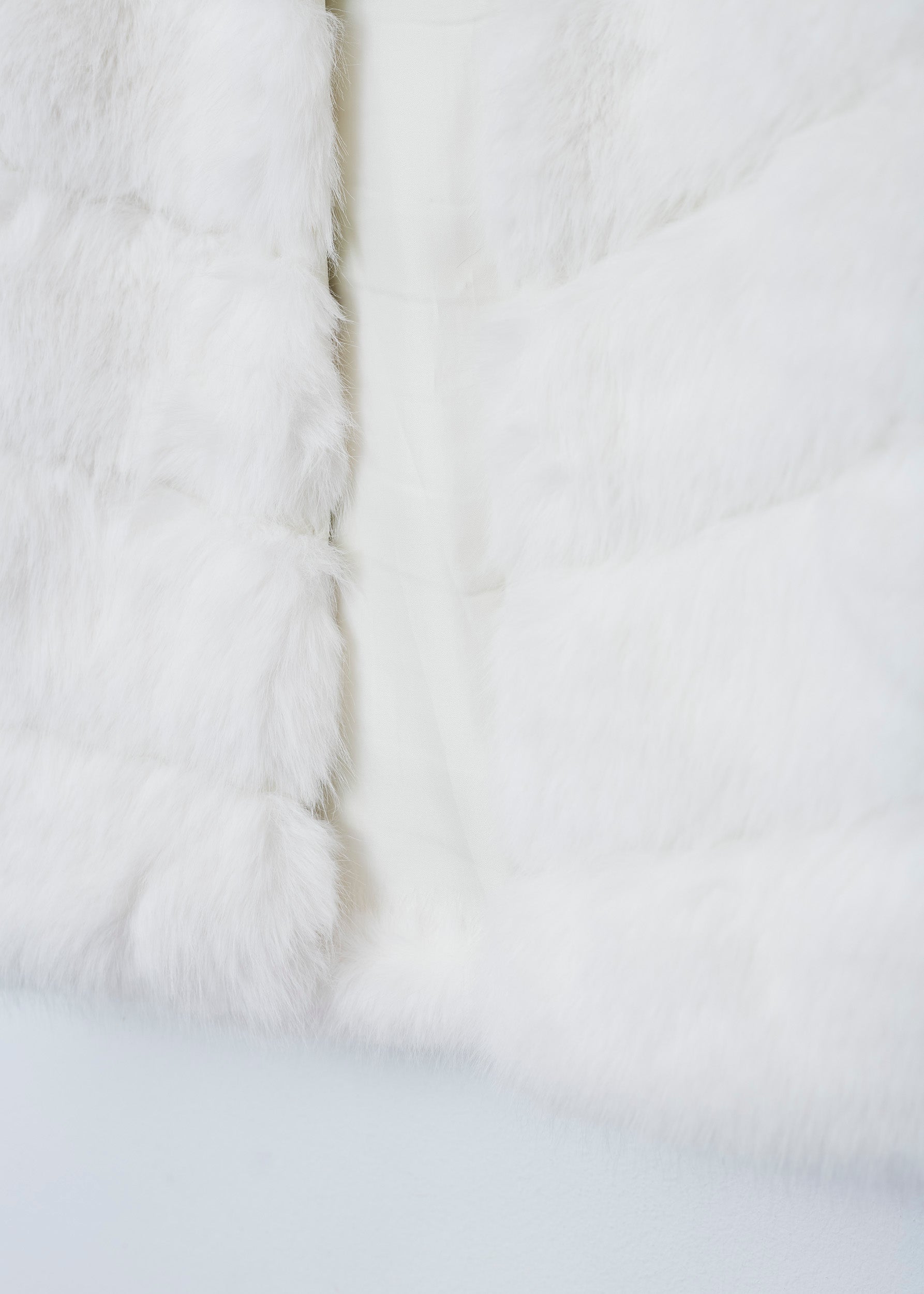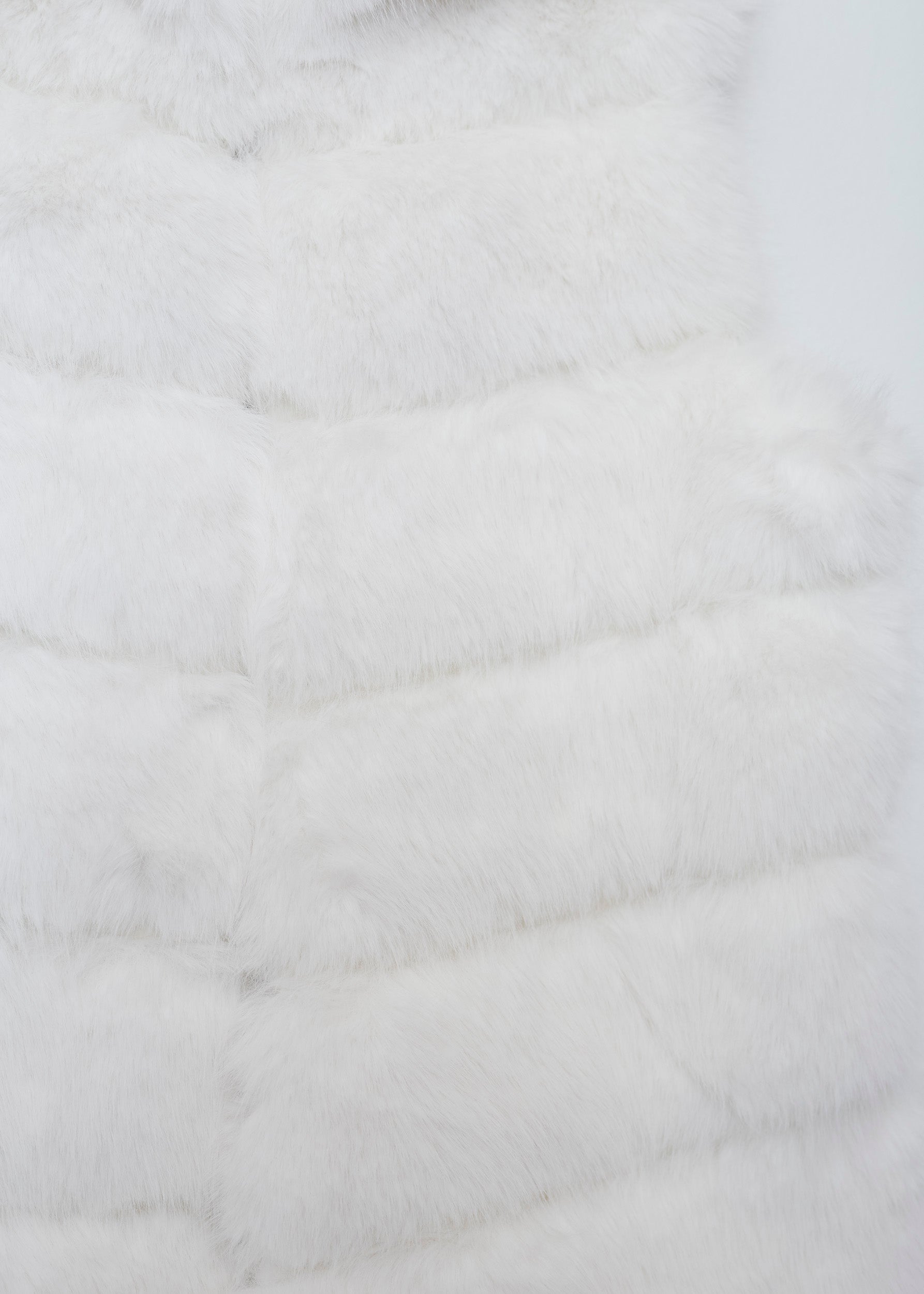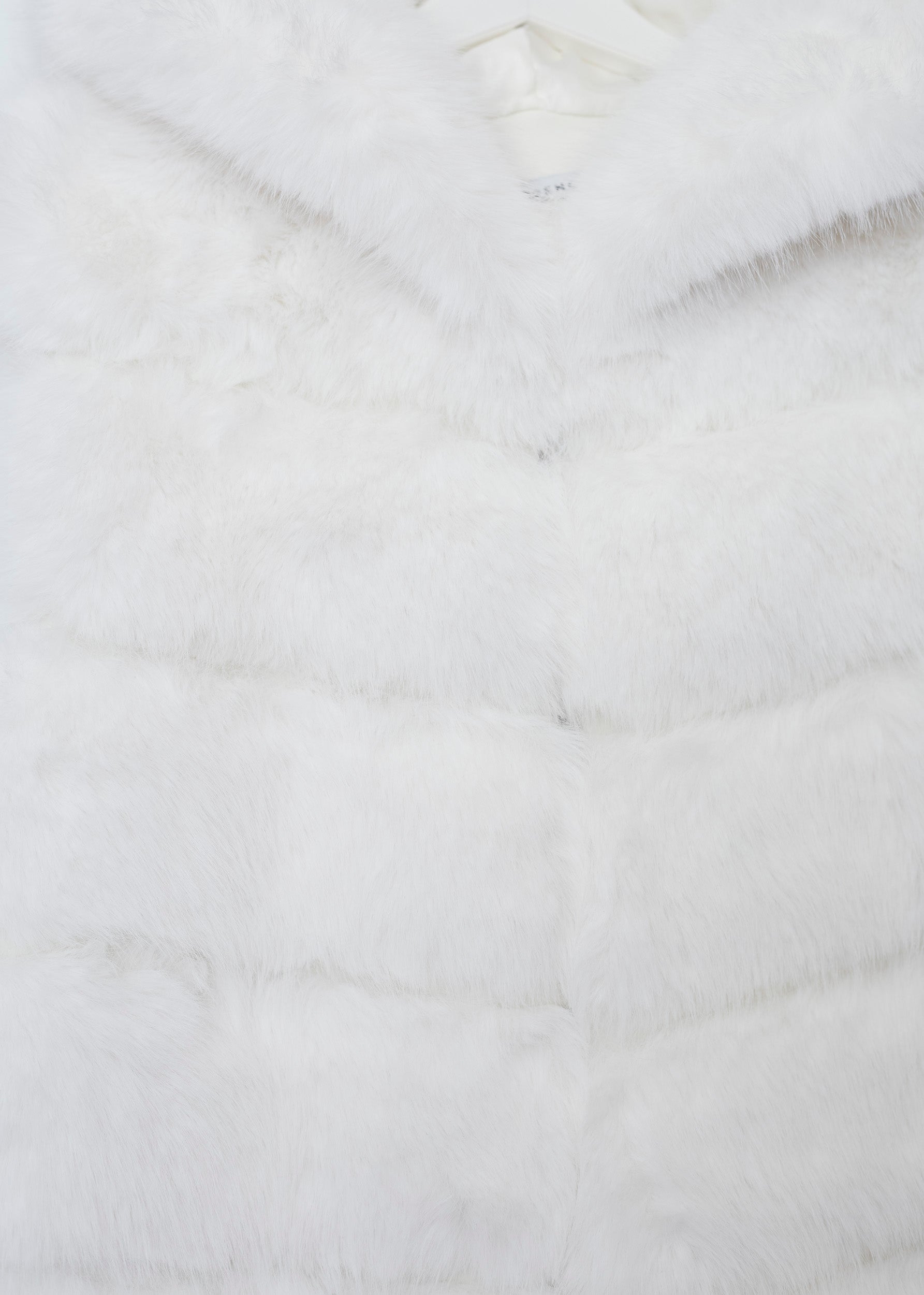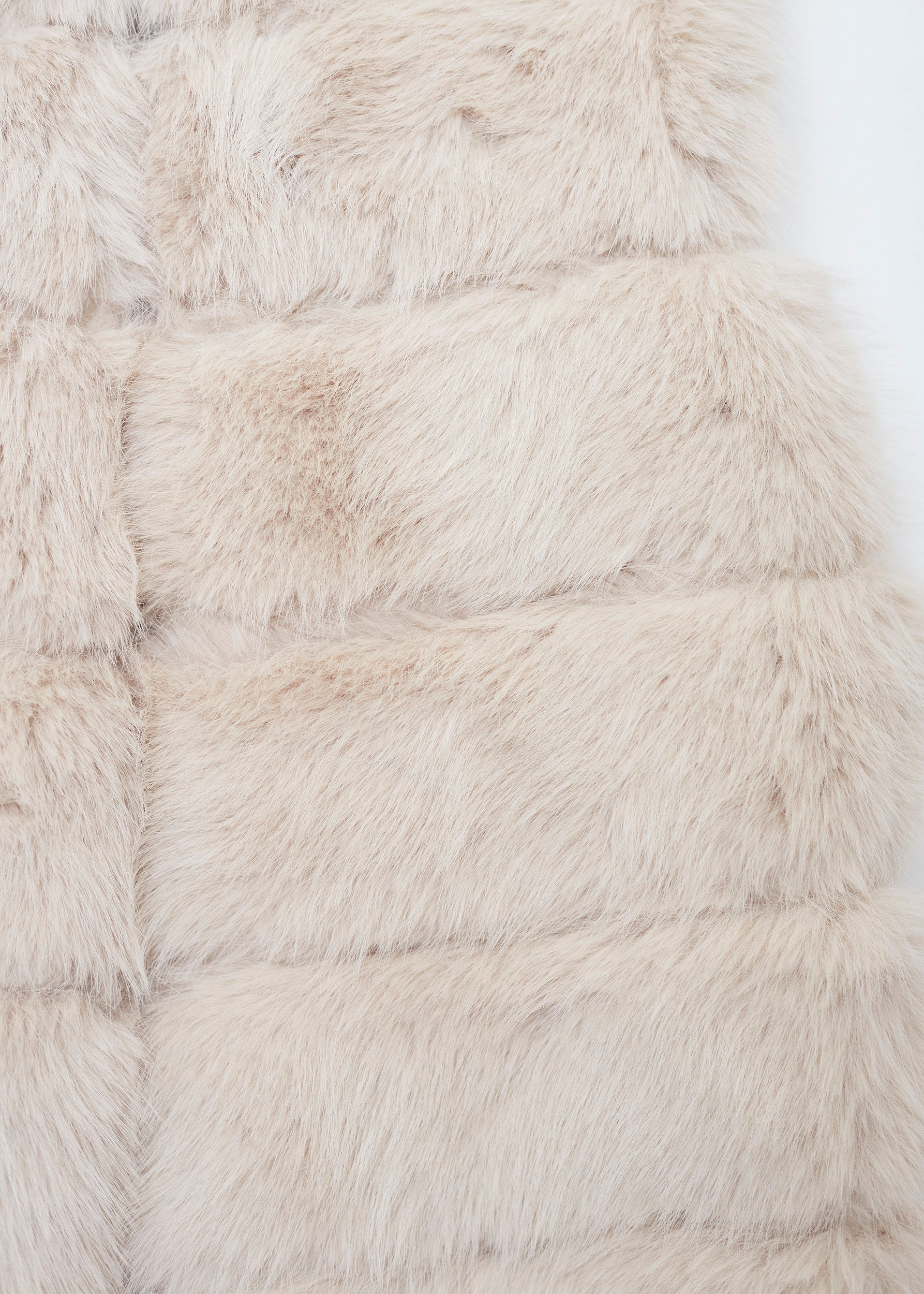 Chaleco efecto pelo con manga sisa y capucha. Cierre frontal con trabillas. Forro interior.