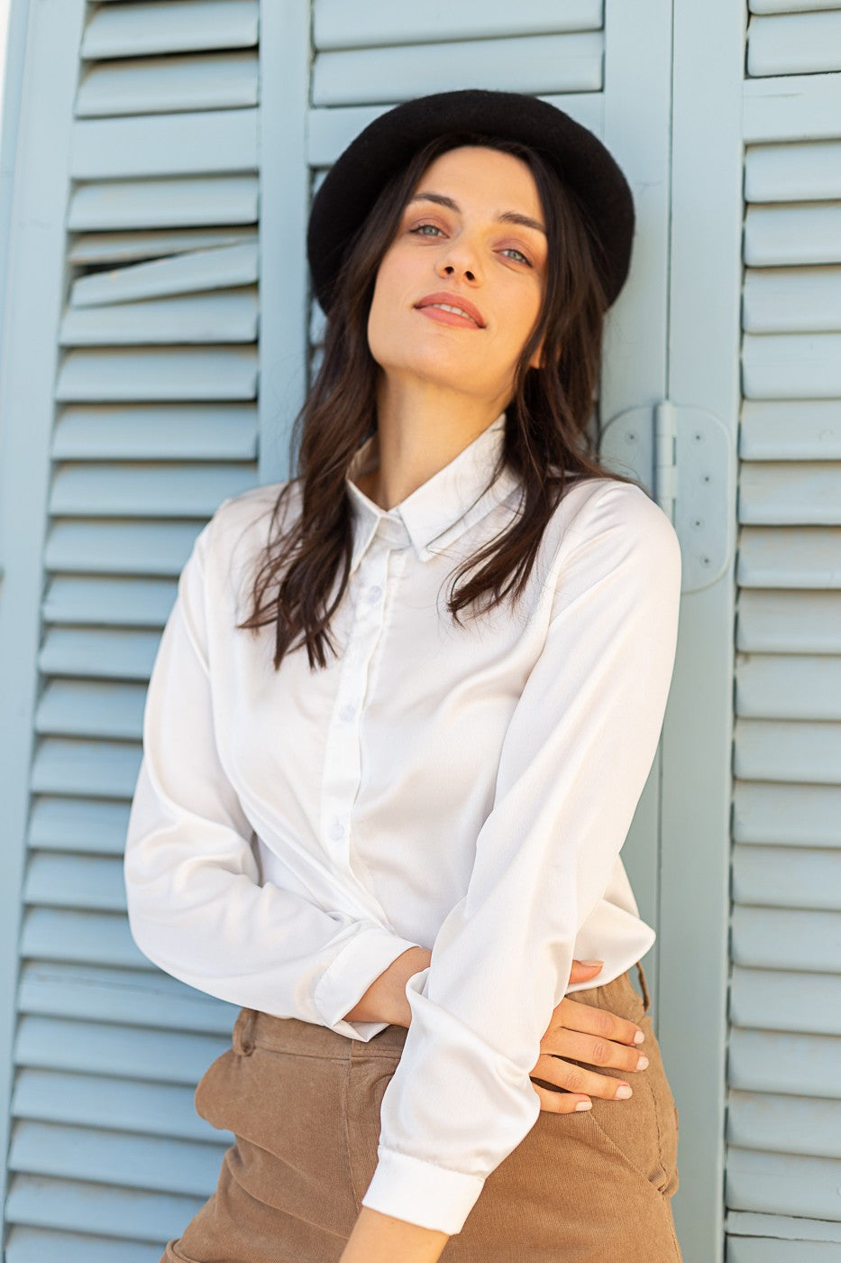 Long-sleeved satin blouse