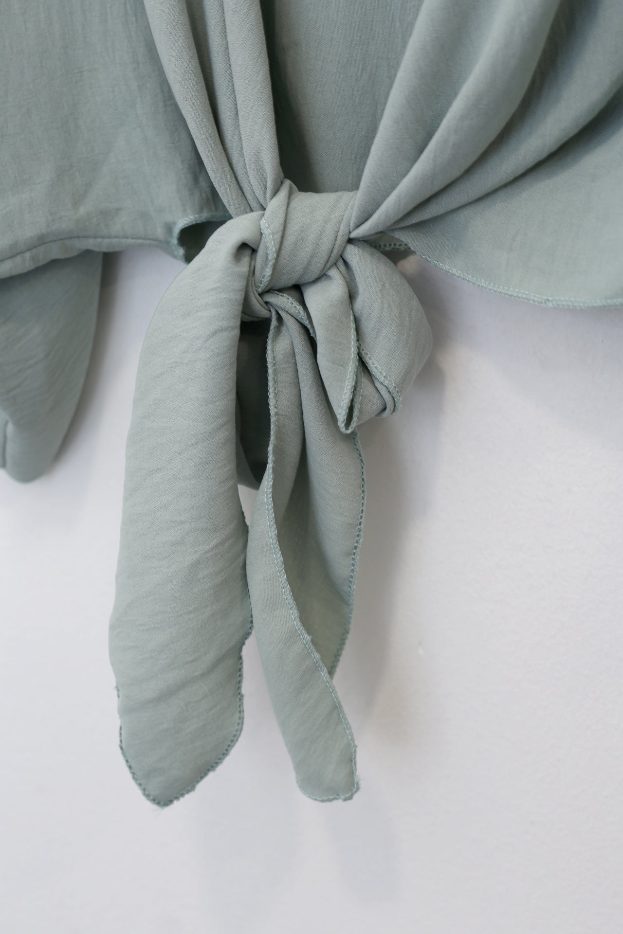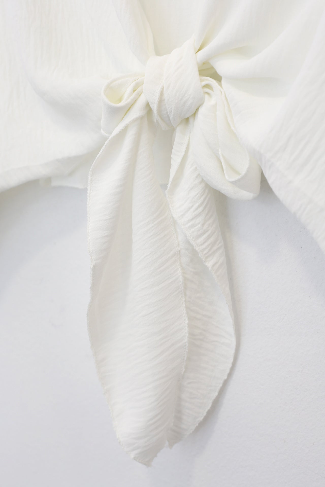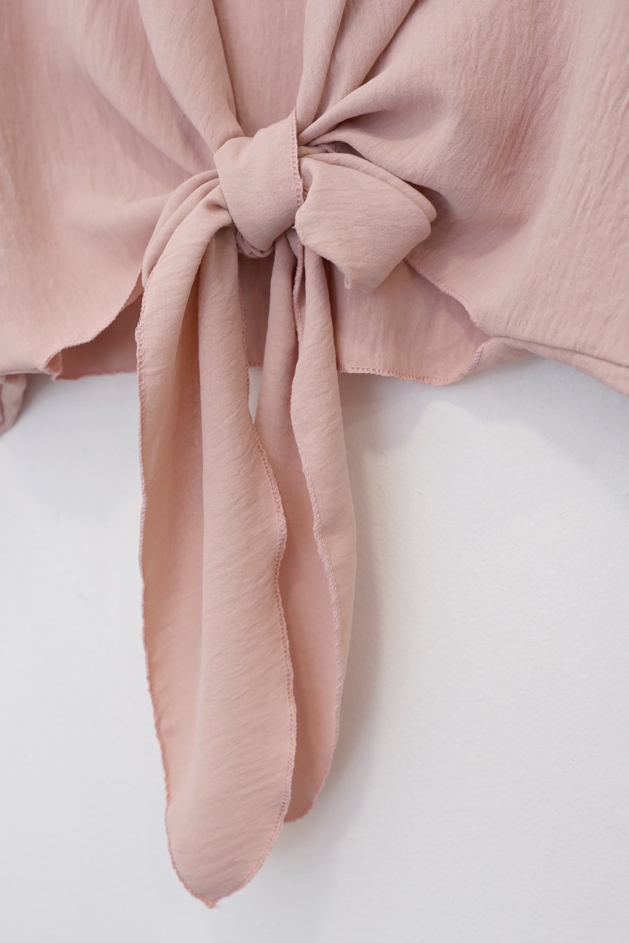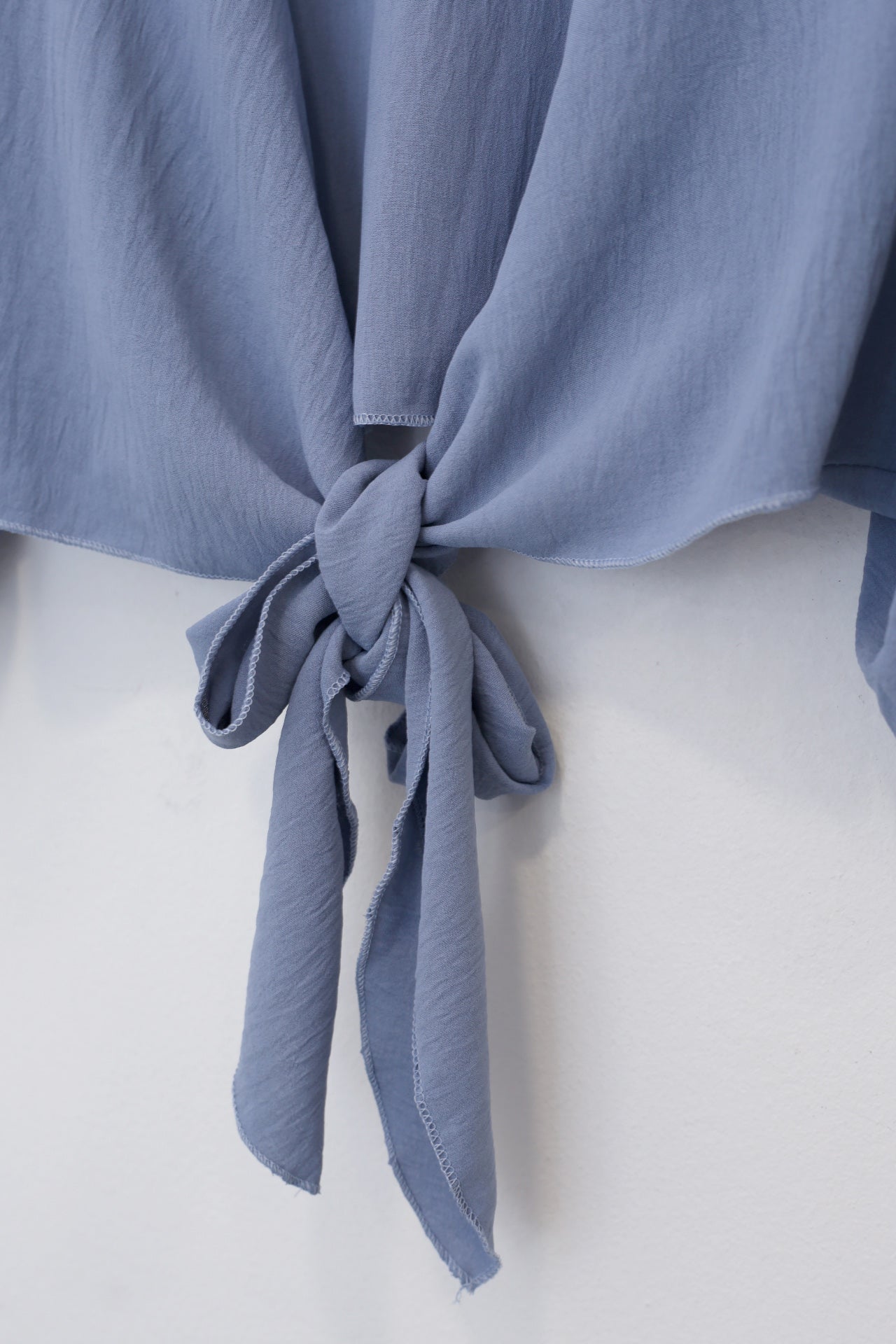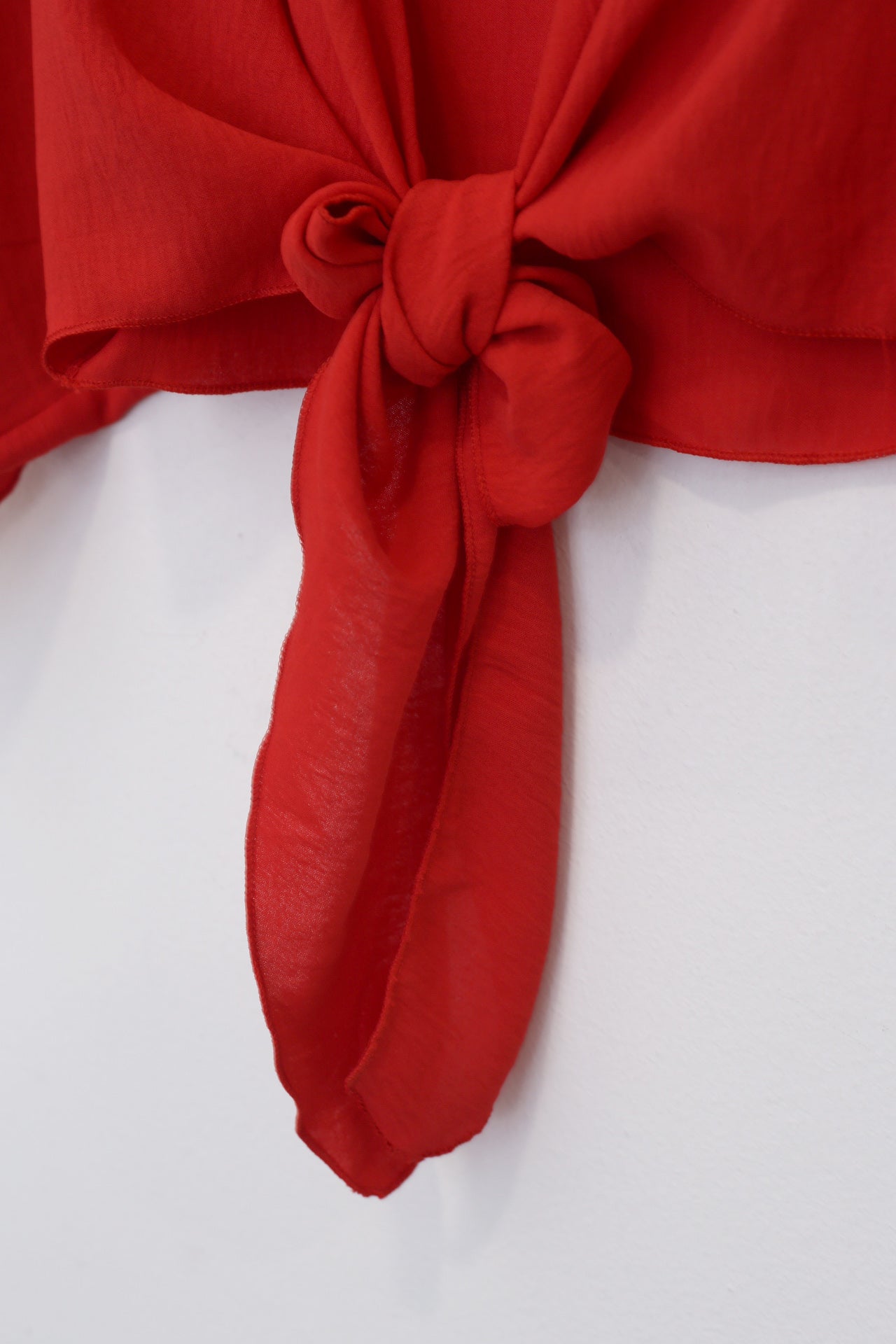 Bolero con escote recto y manga ancha. Cierre frontal anudado. Corte fluido y tejido elástico.