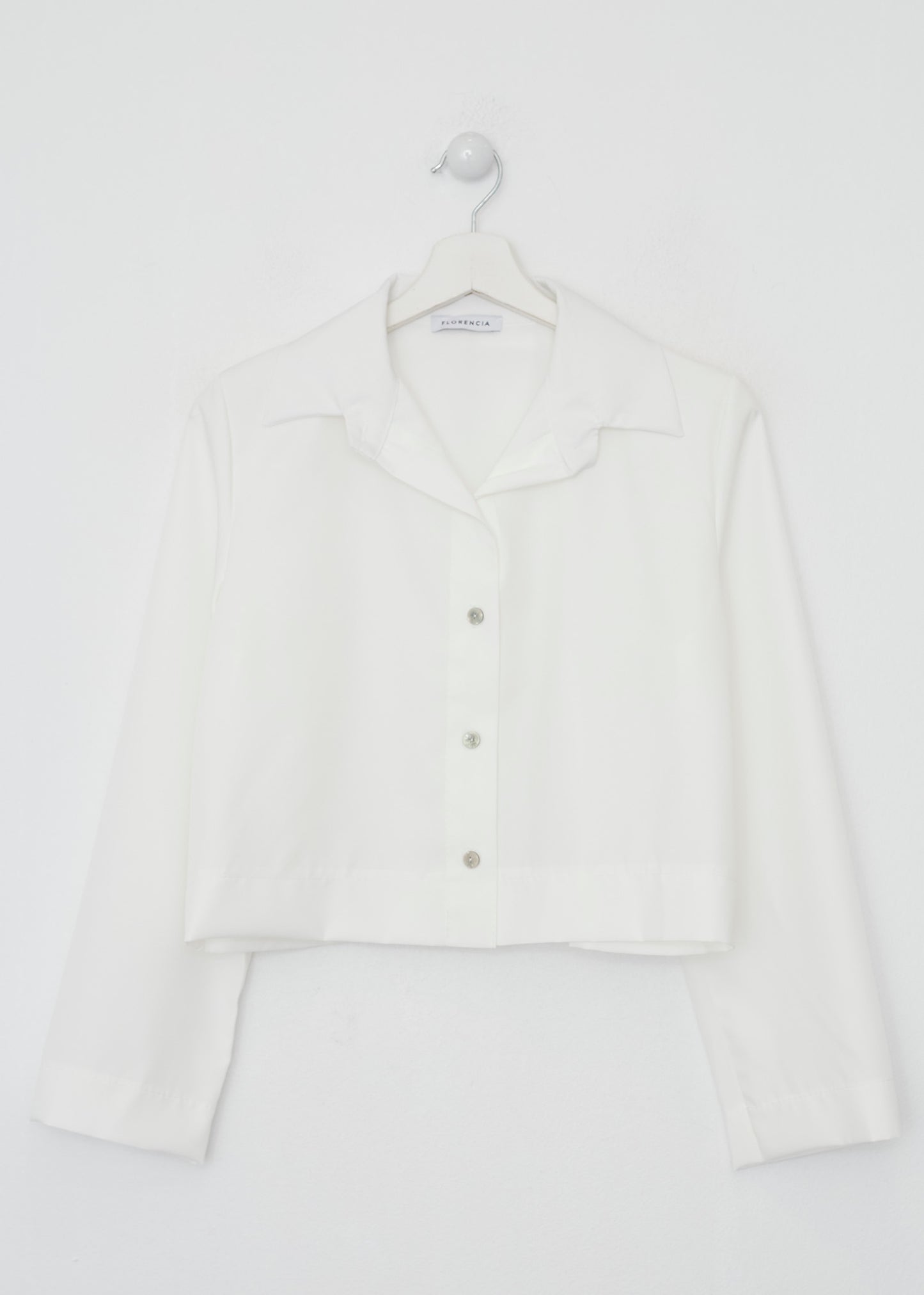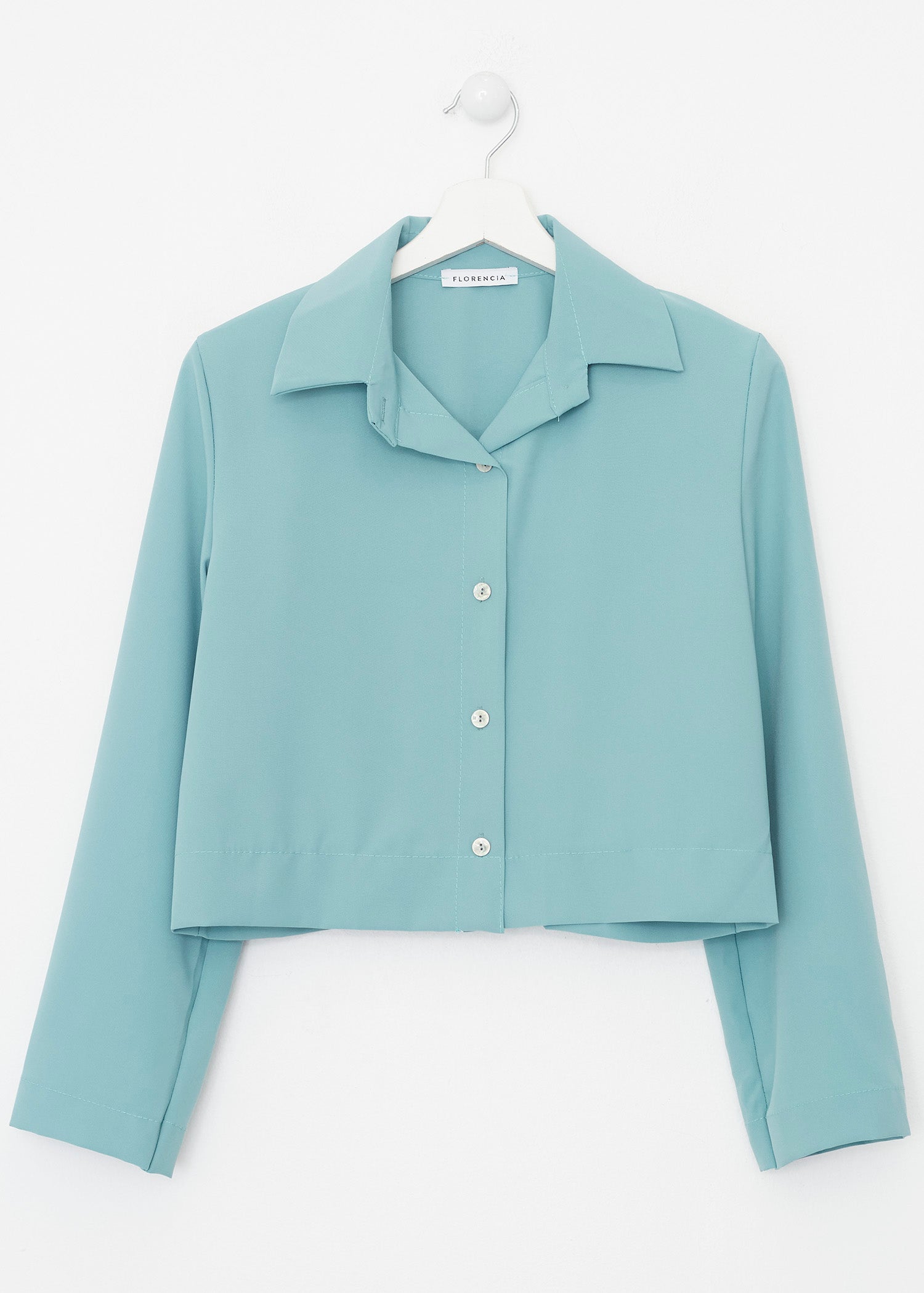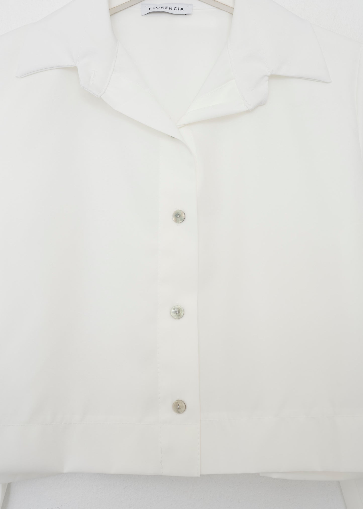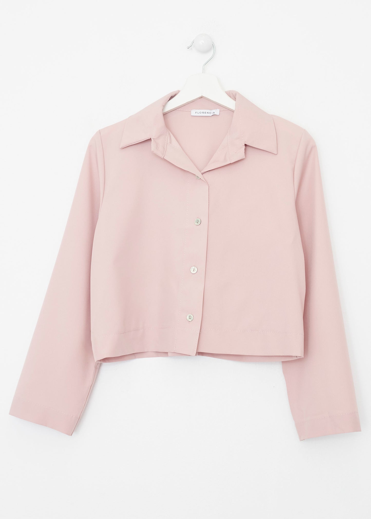 Camisa de cuello solapa y manga larga. Cierre frontal con botones.