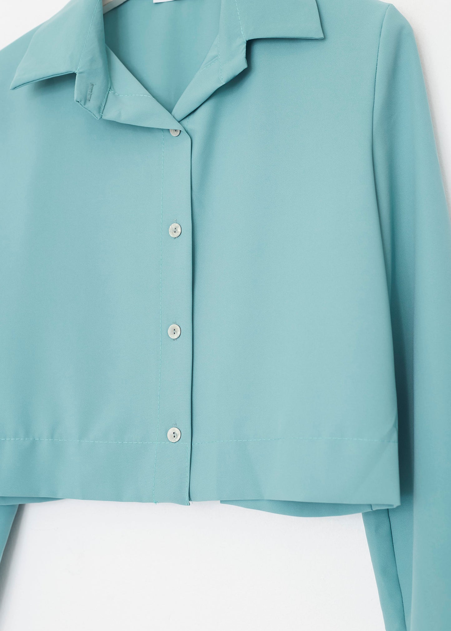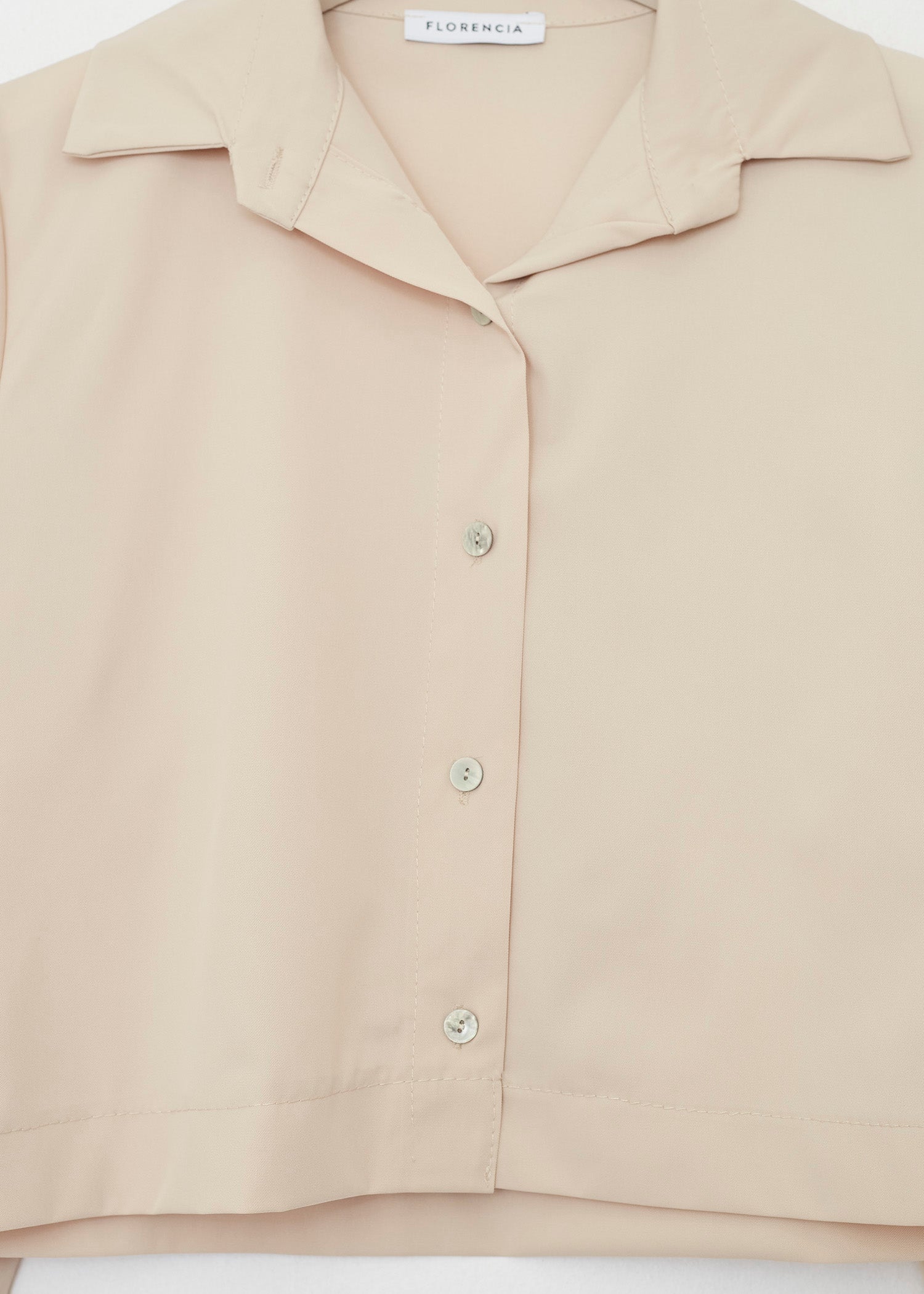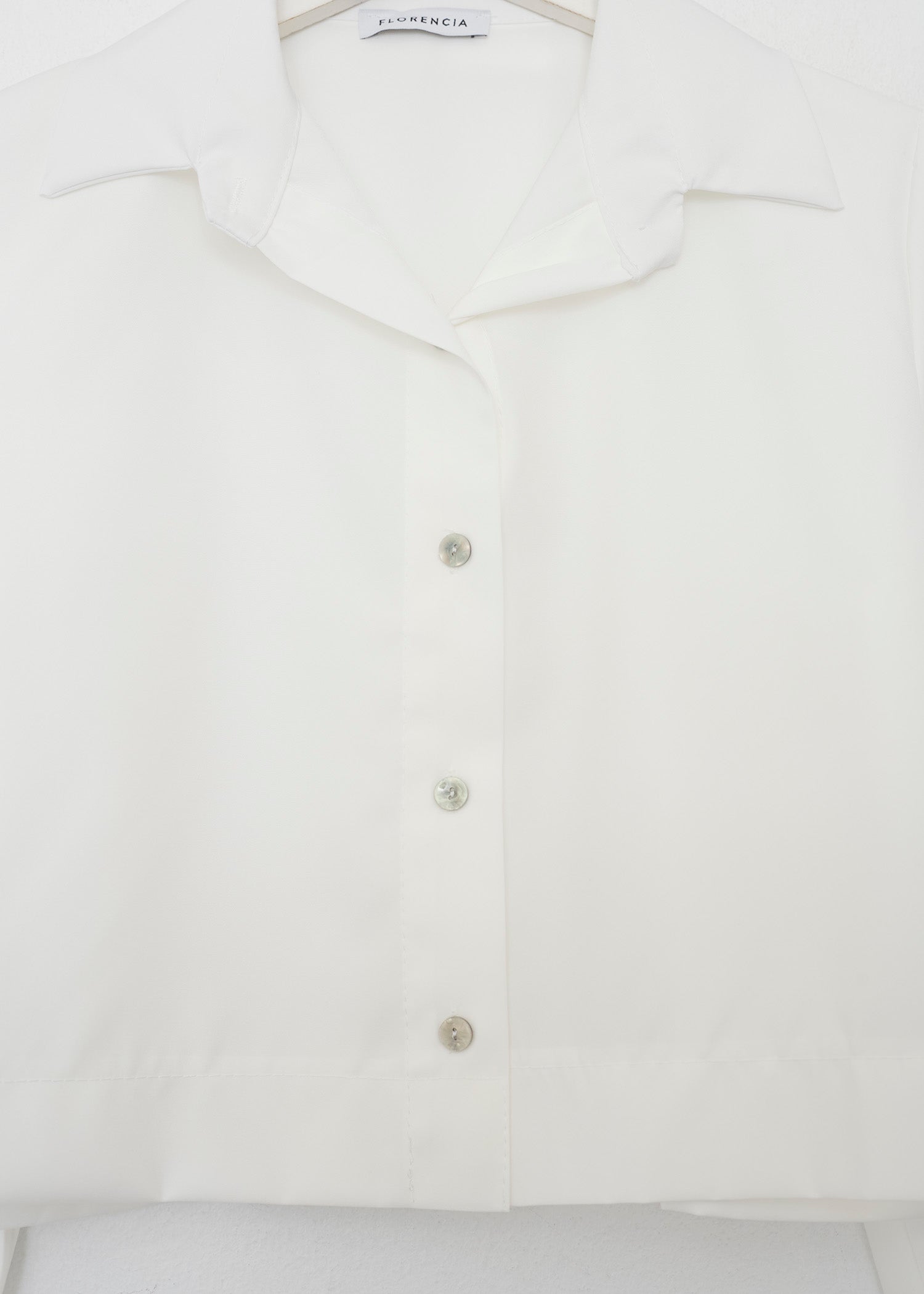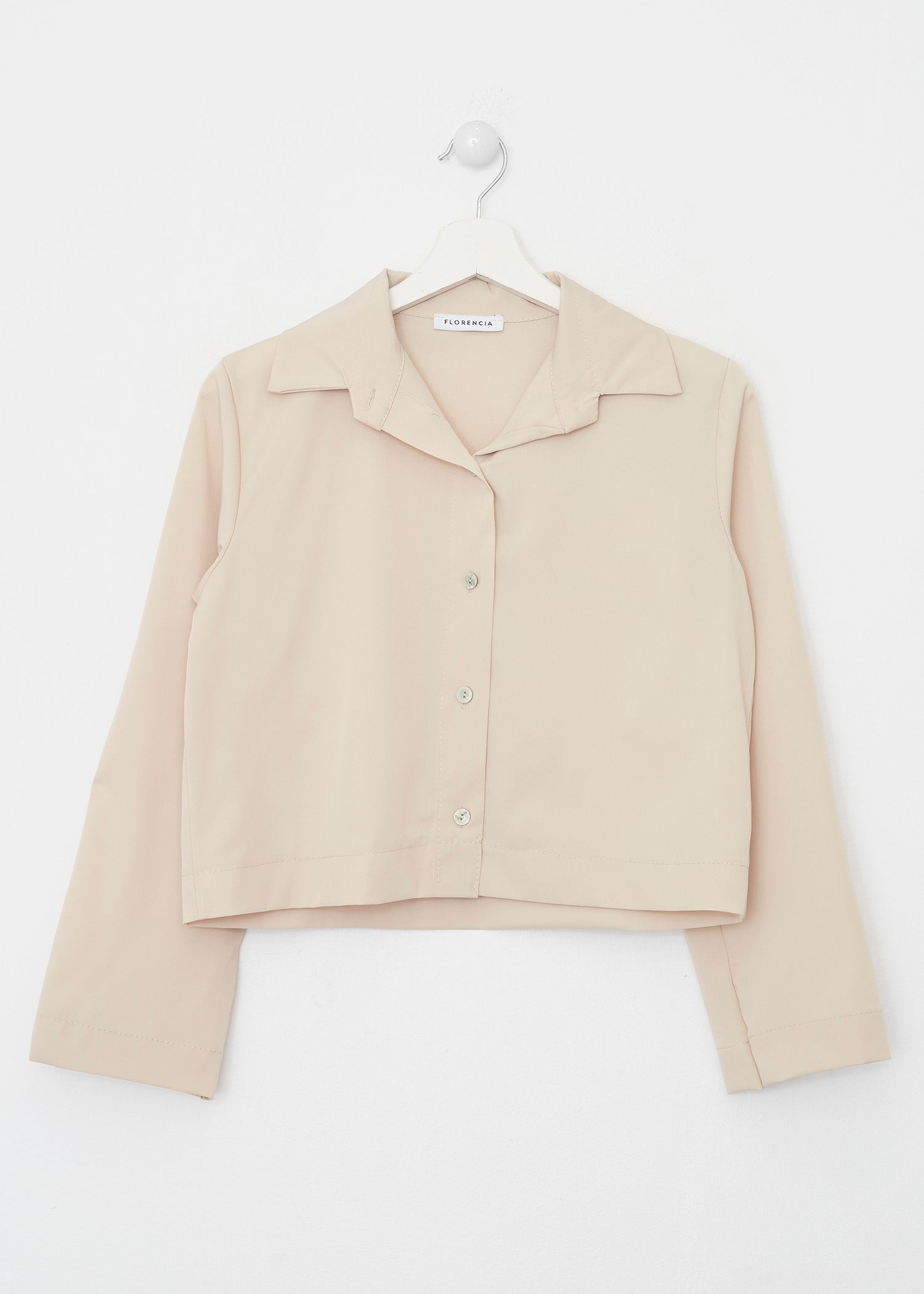 Camisa de cuello solapa y manga larga. Cierre frontal con botones.