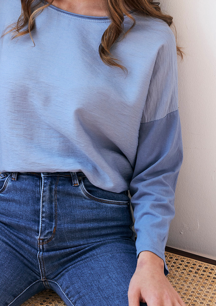 Basic two-texture t-shirt with a round neckline. The perfect and versatile garment that will accompany you all season. Elevate both your office looks and more sophisticated looks. A must-have that you cannot miss.