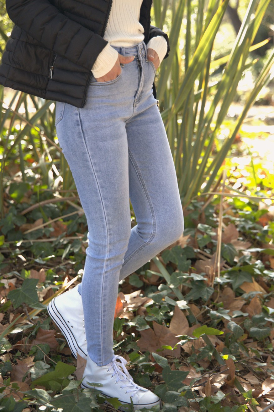 Tight high-waisted pants. Five pockets. Zipper, button closure. It is ideal to have as an undisputed wardrobe staple.