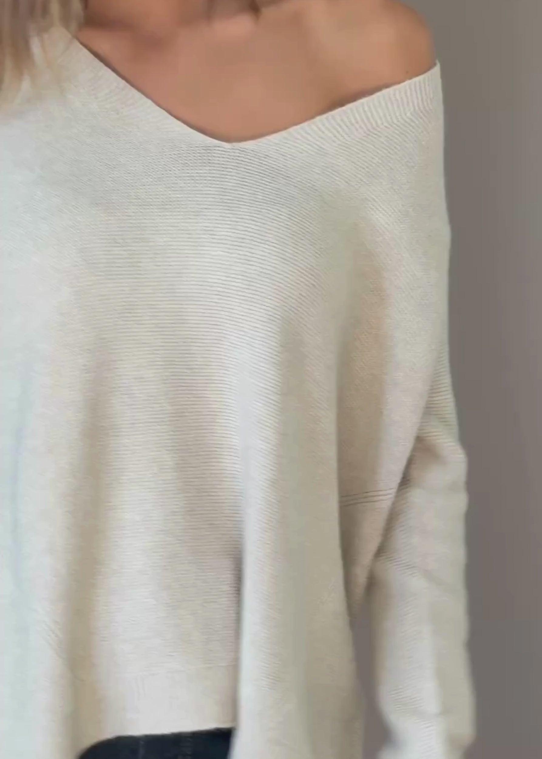 Jersey sin costuras y cuello punta. Acabados en rib. Detalle de aberturas laterales.