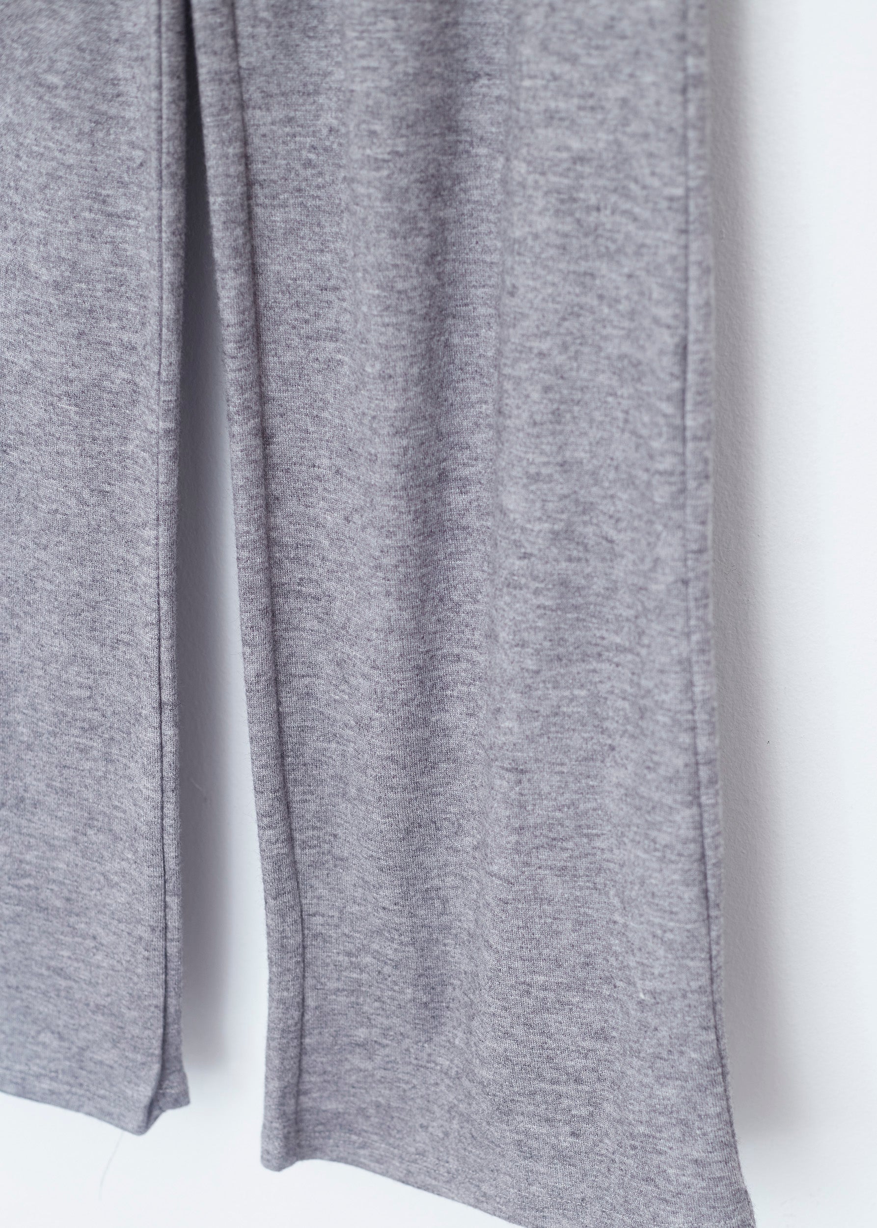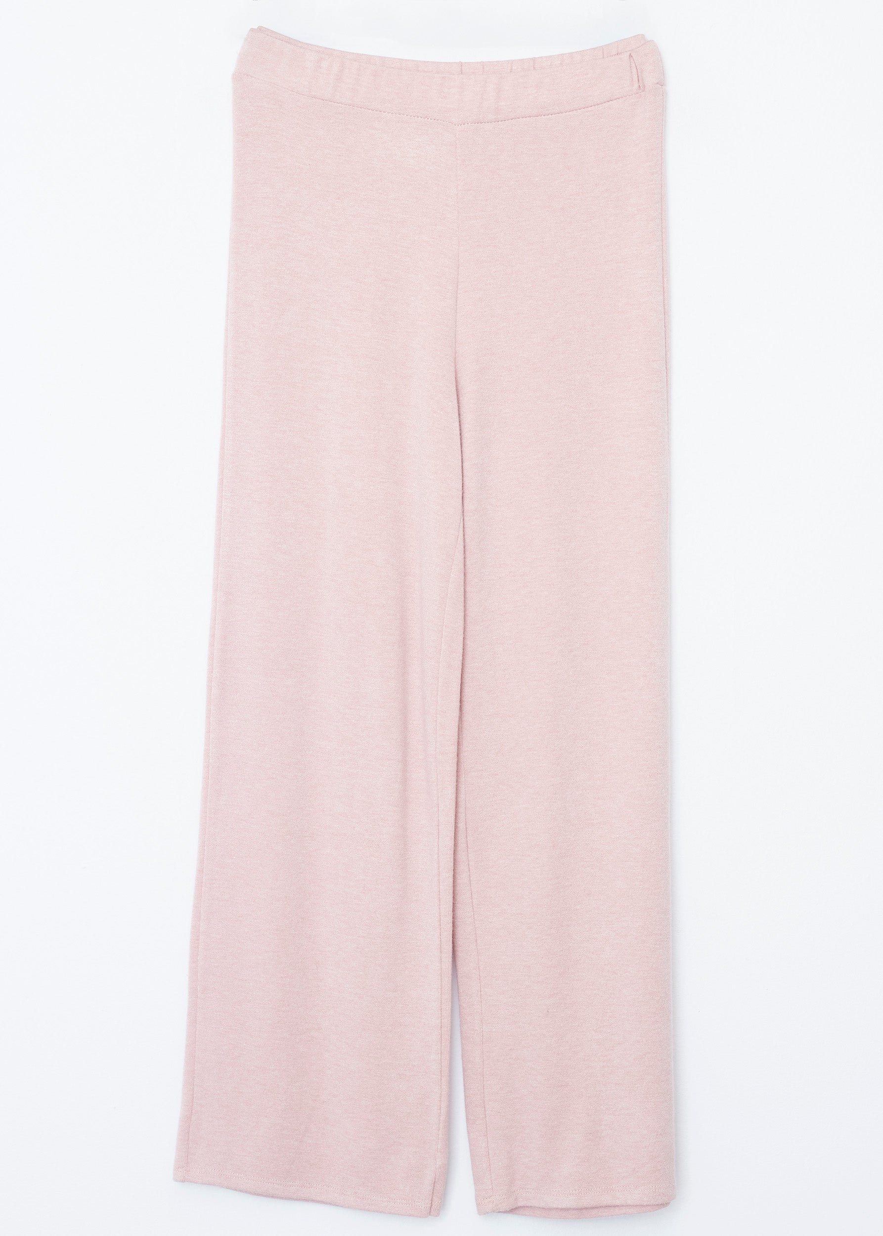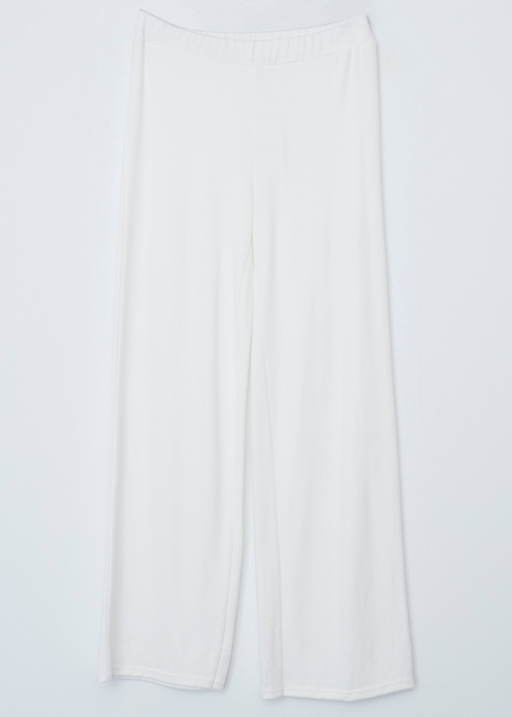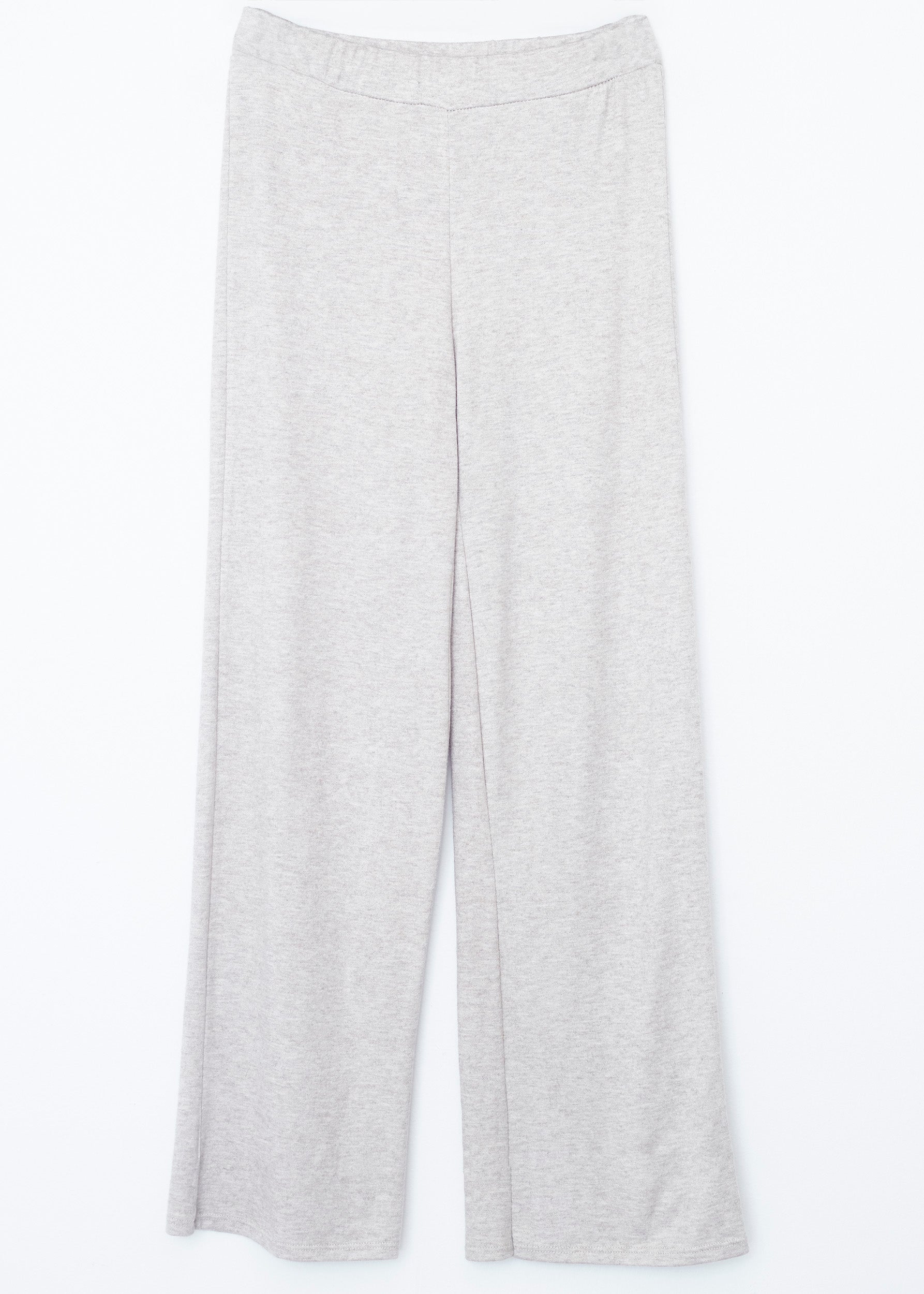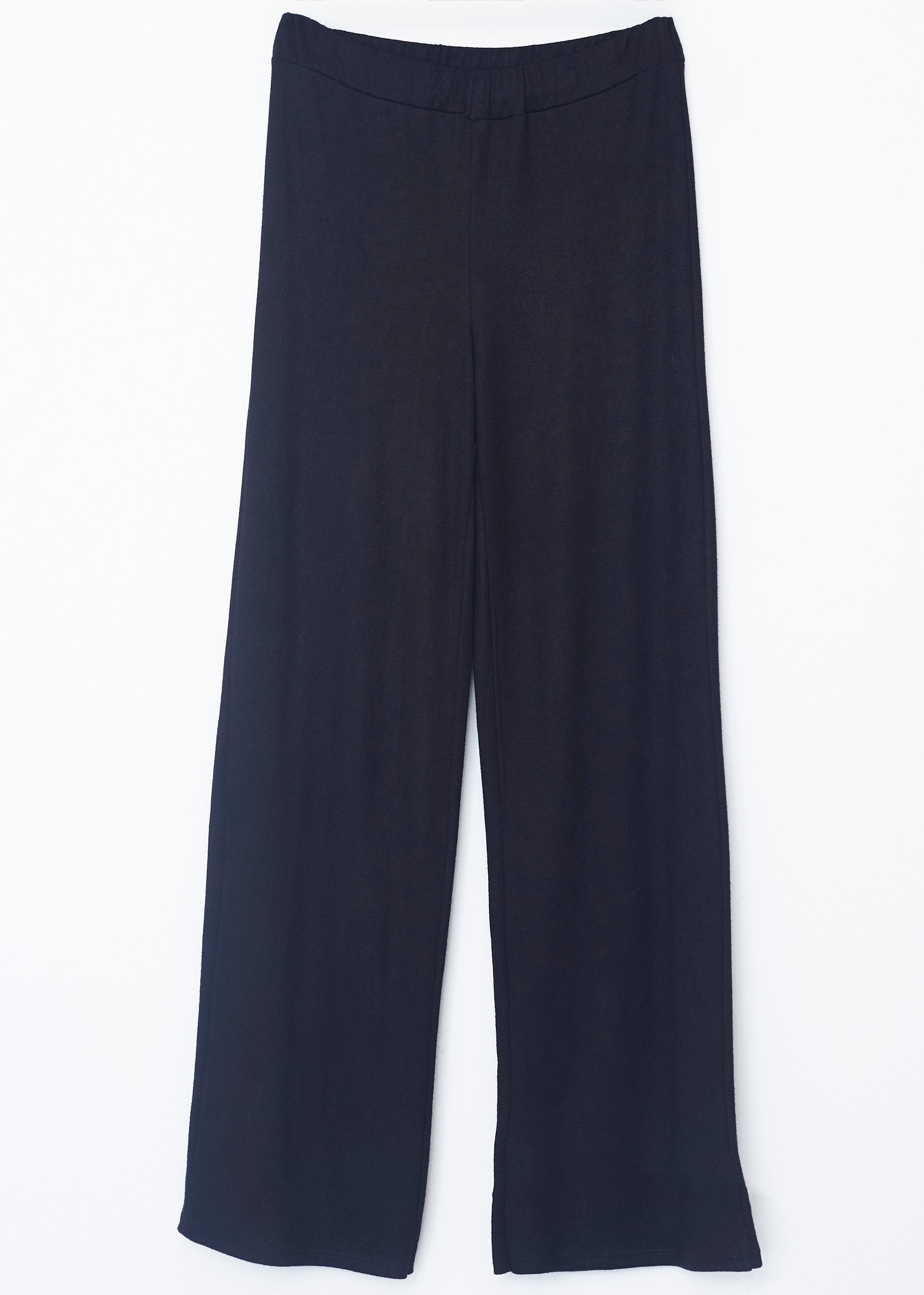 Knitted trousers, high waist and straight leg. Elastic waist.