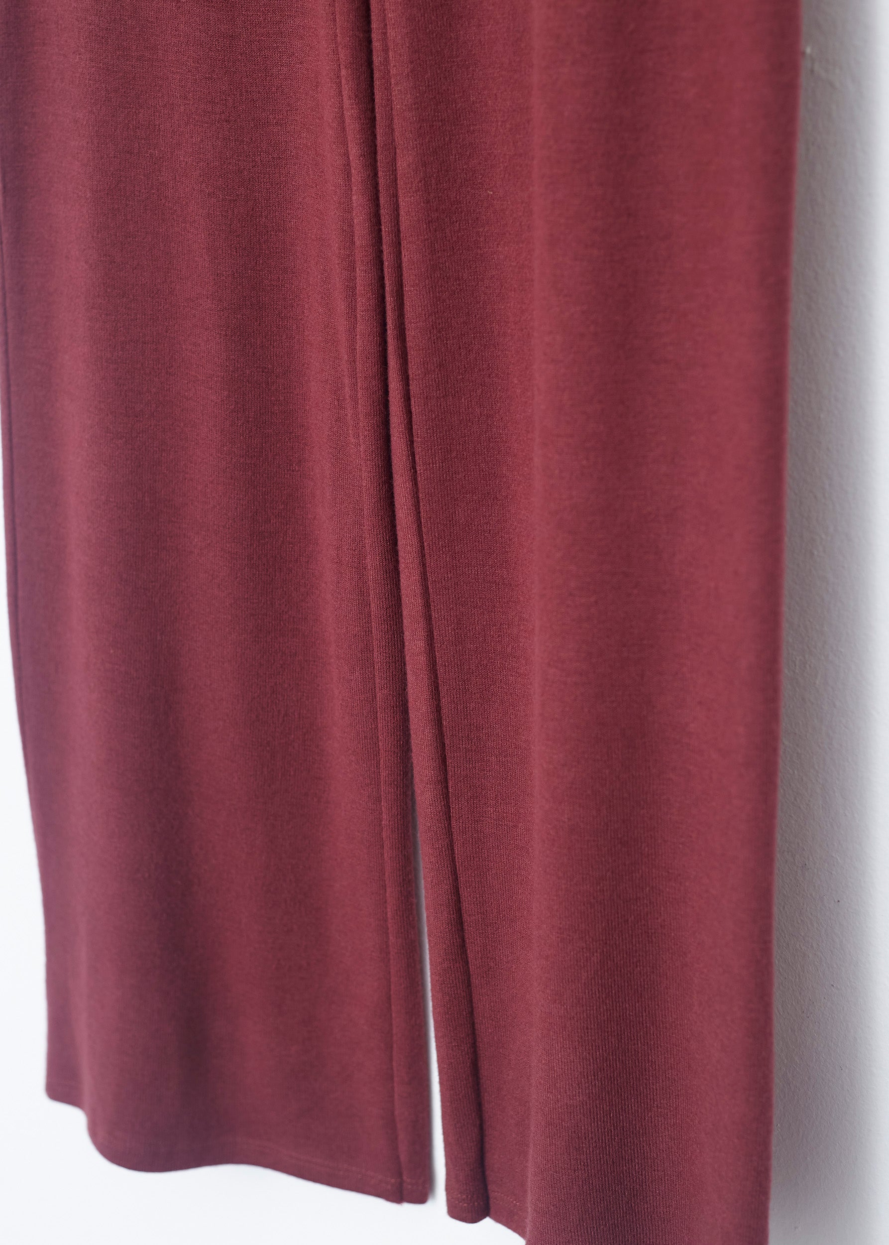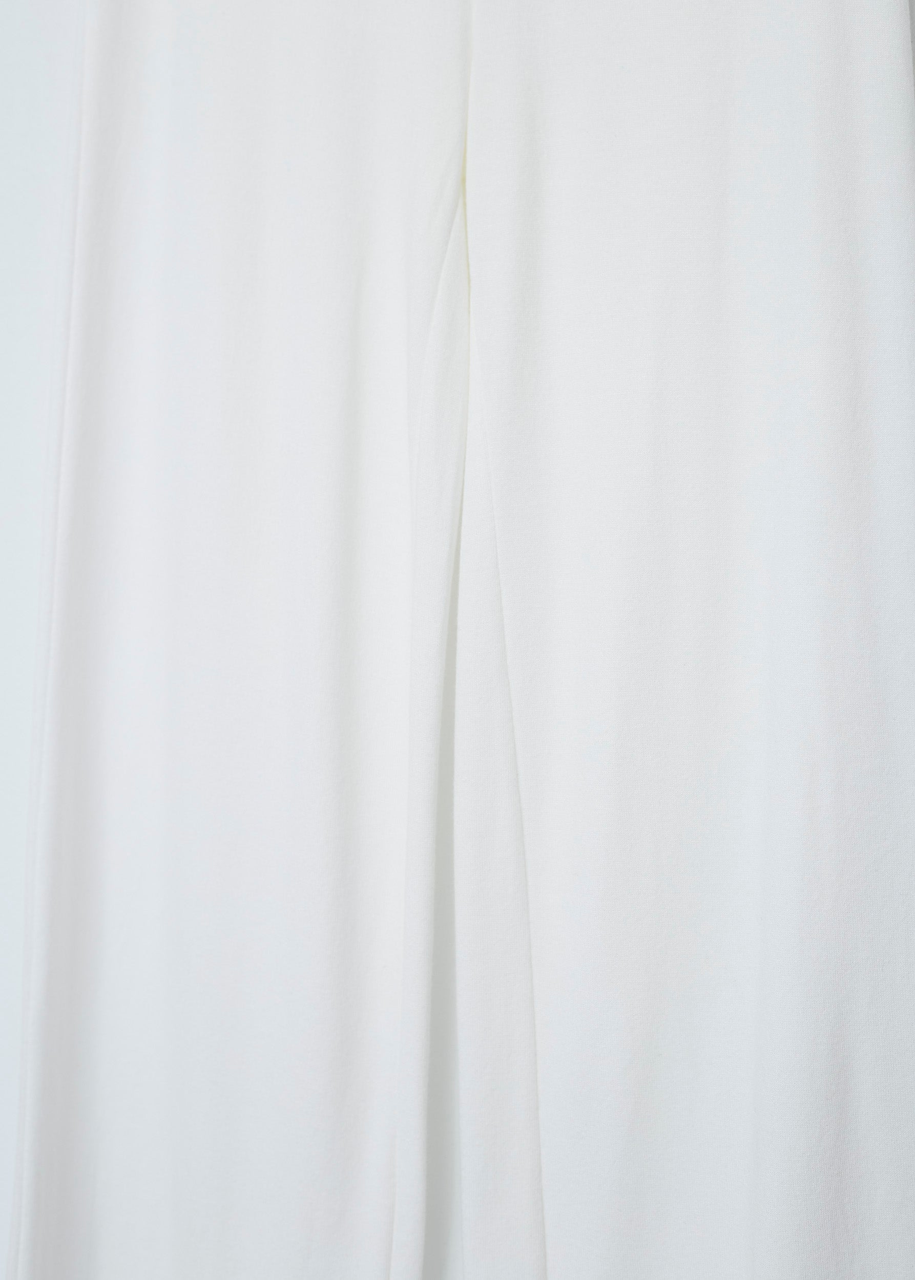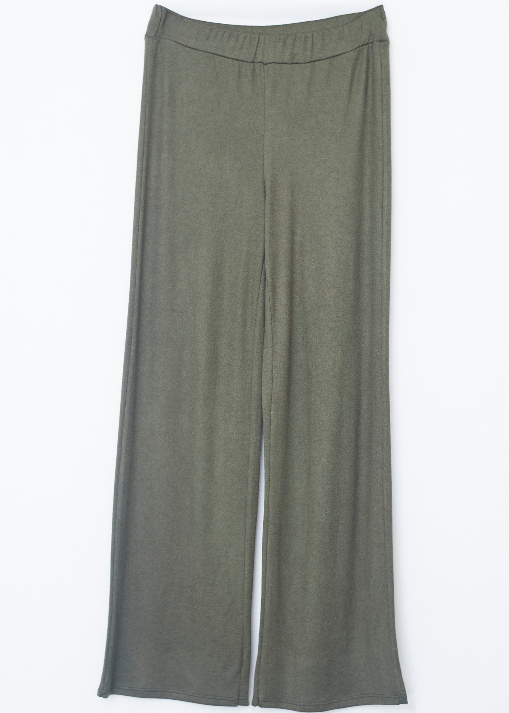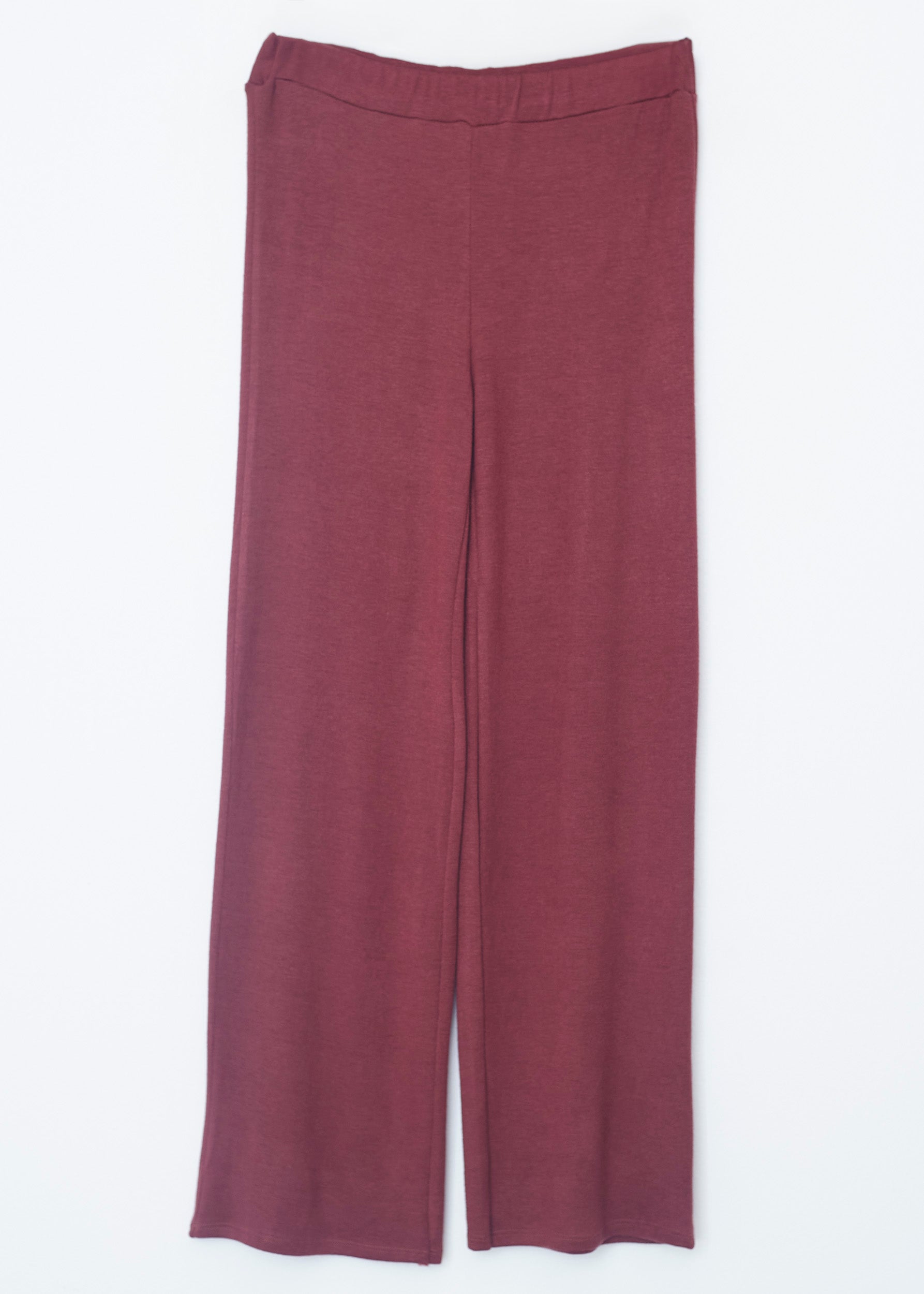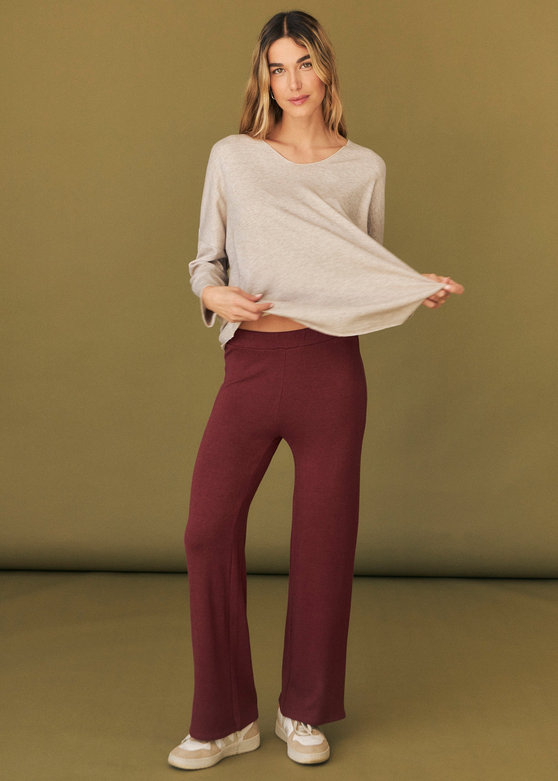 Knitted trousers, high waist and straight leg. Elastic waist.