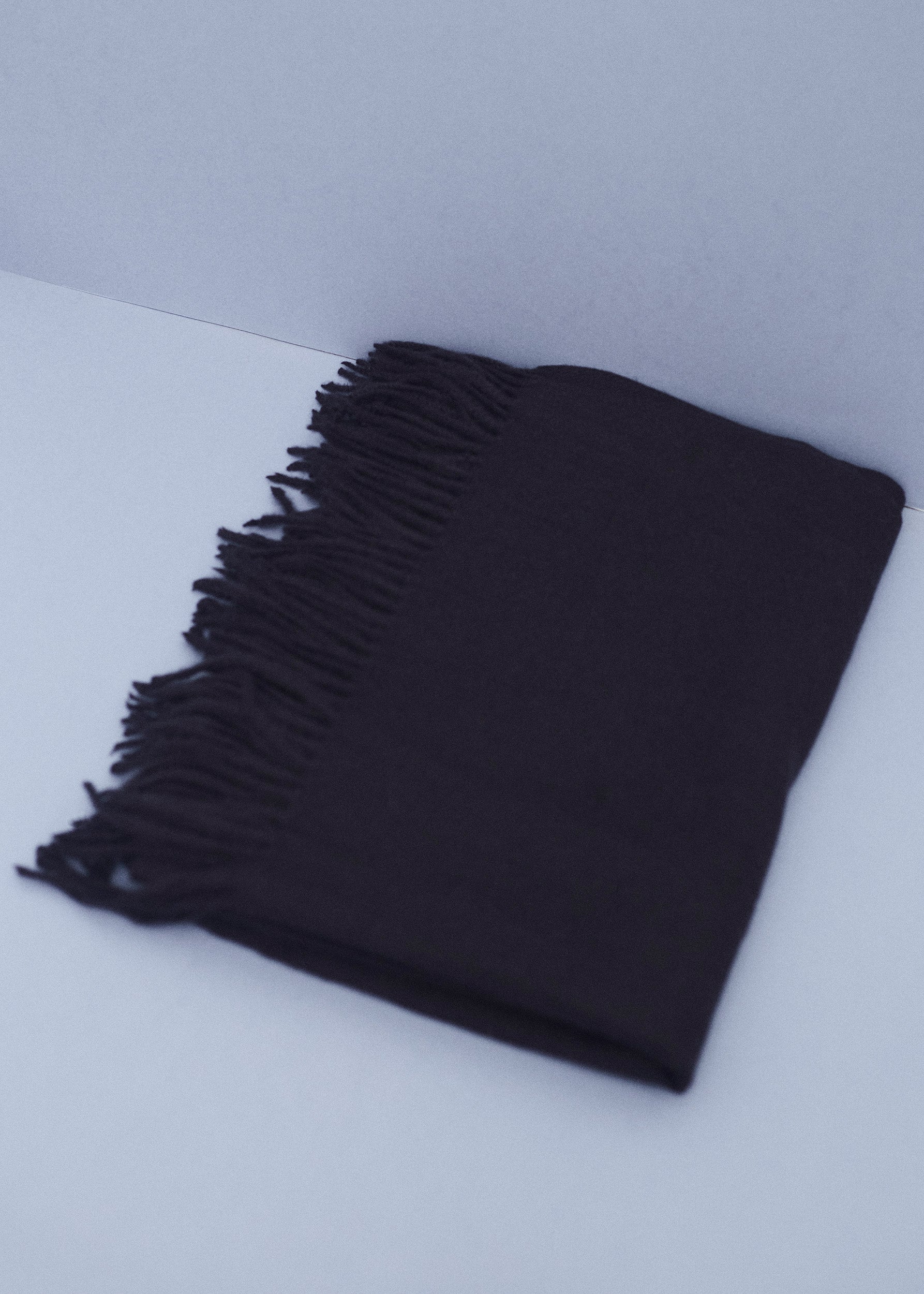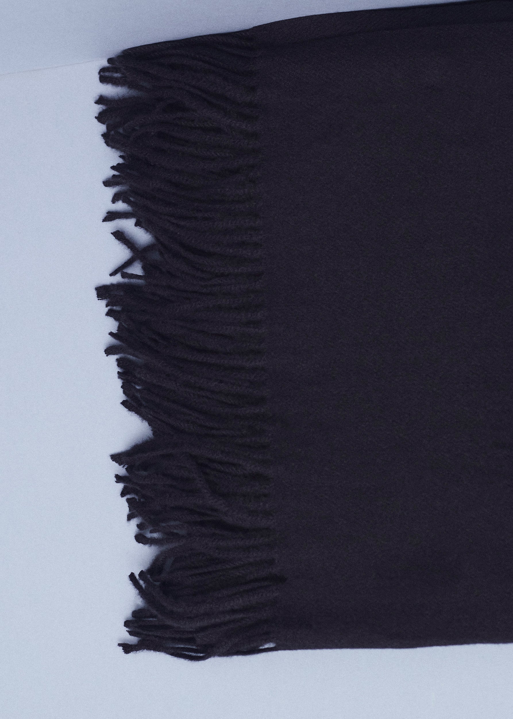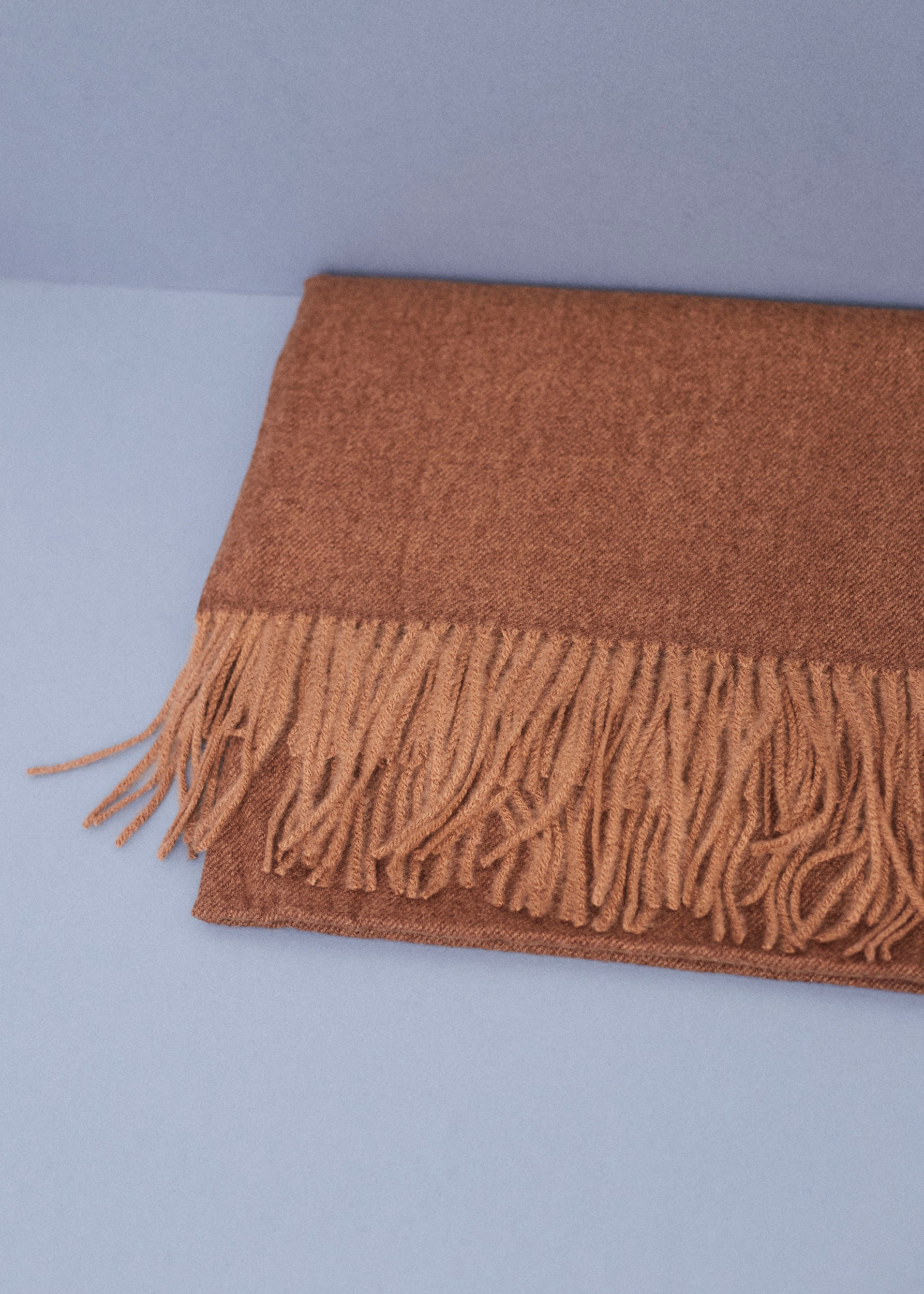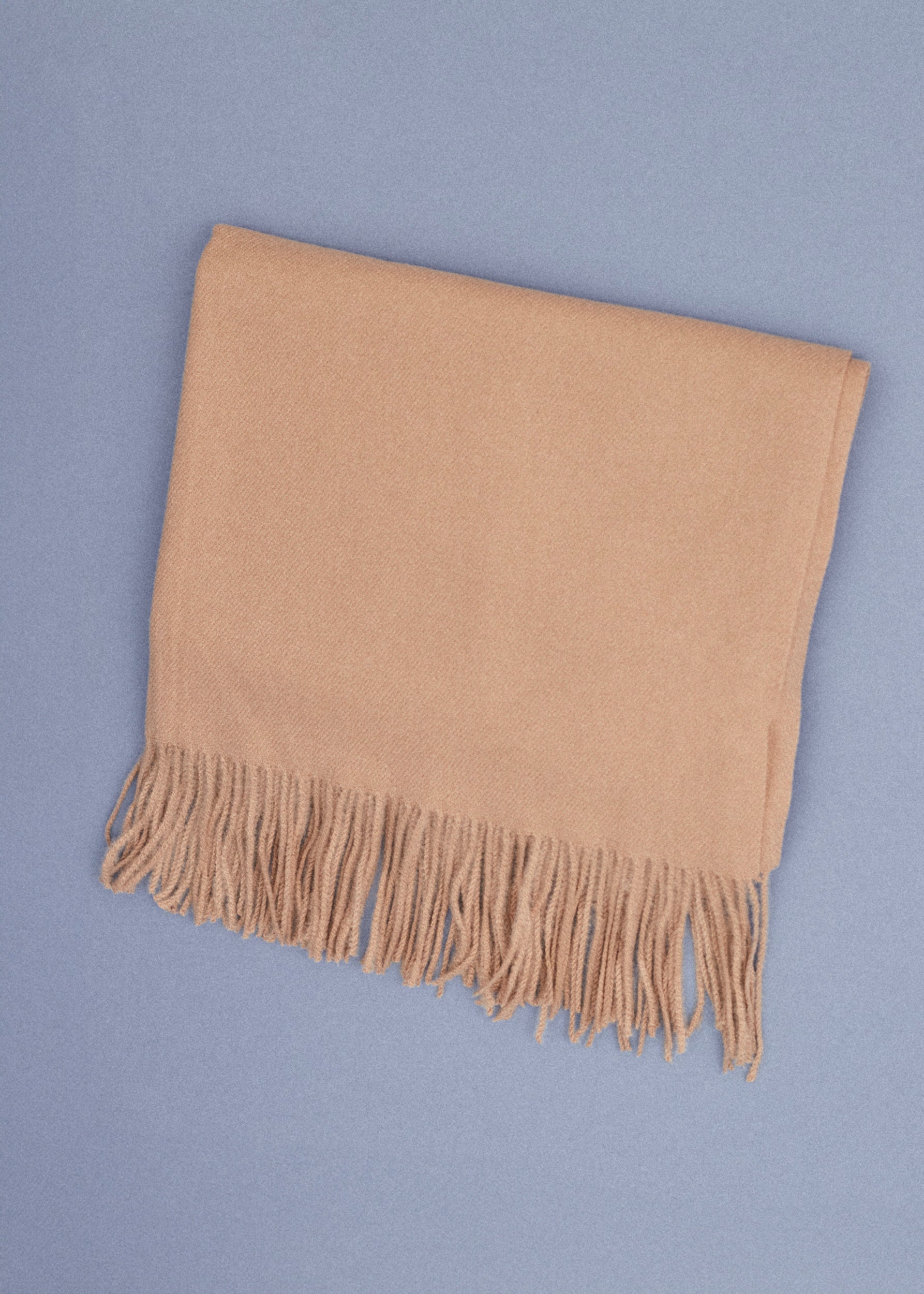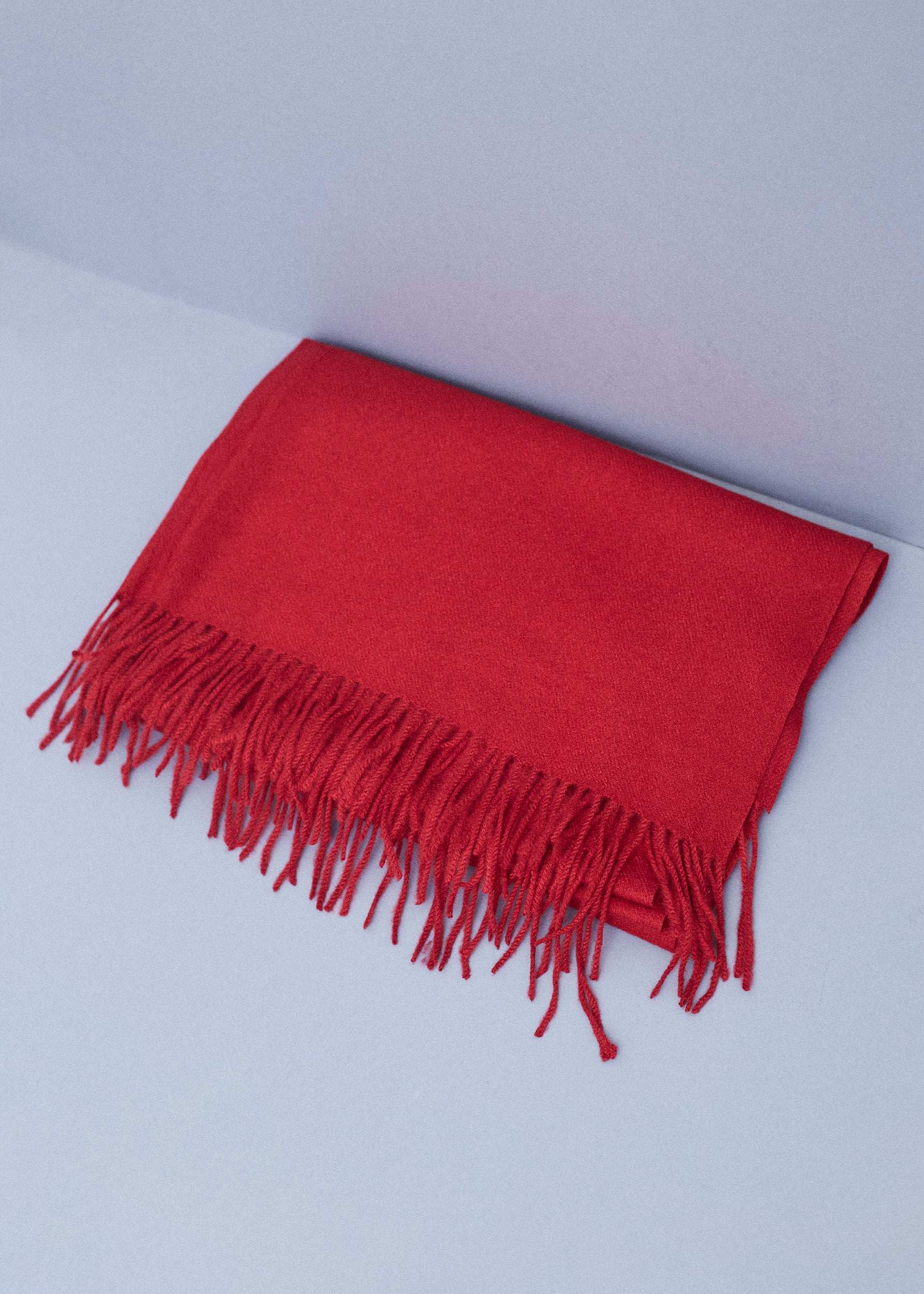 Triangular shawl with checked fabric and finished with contrasting trim detail.
