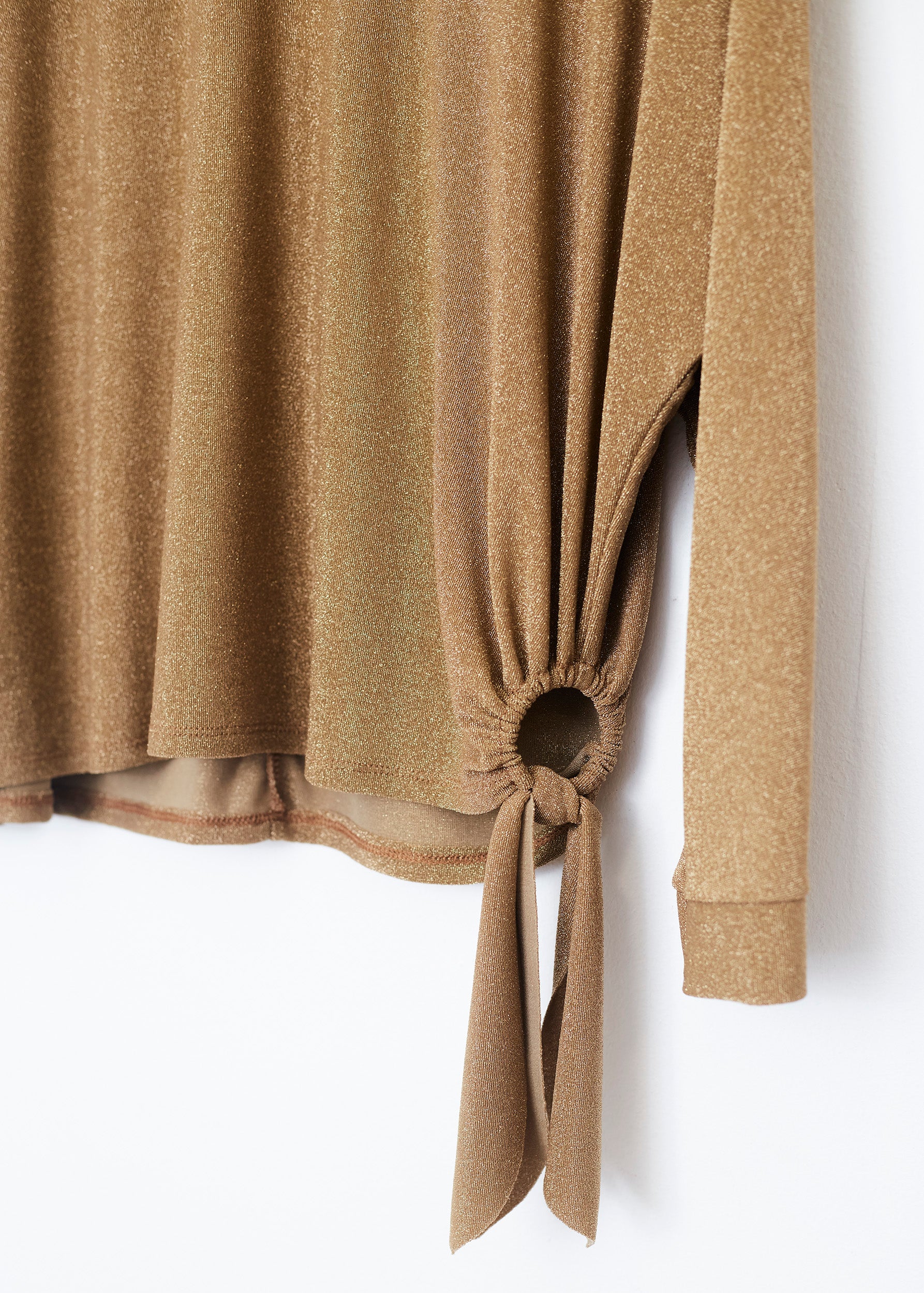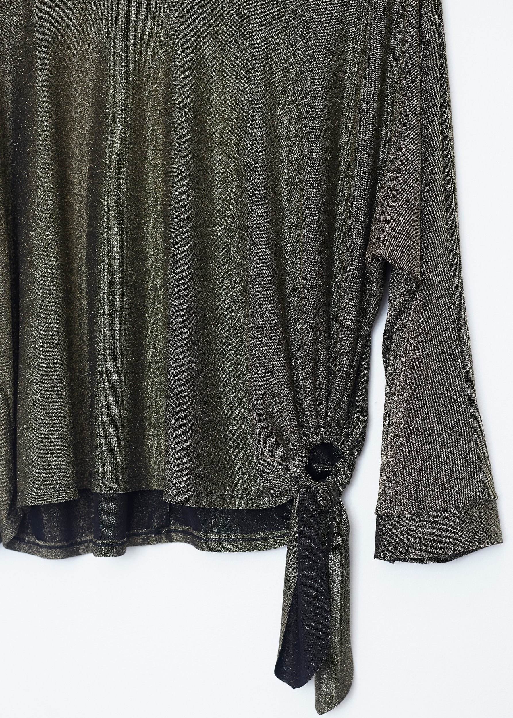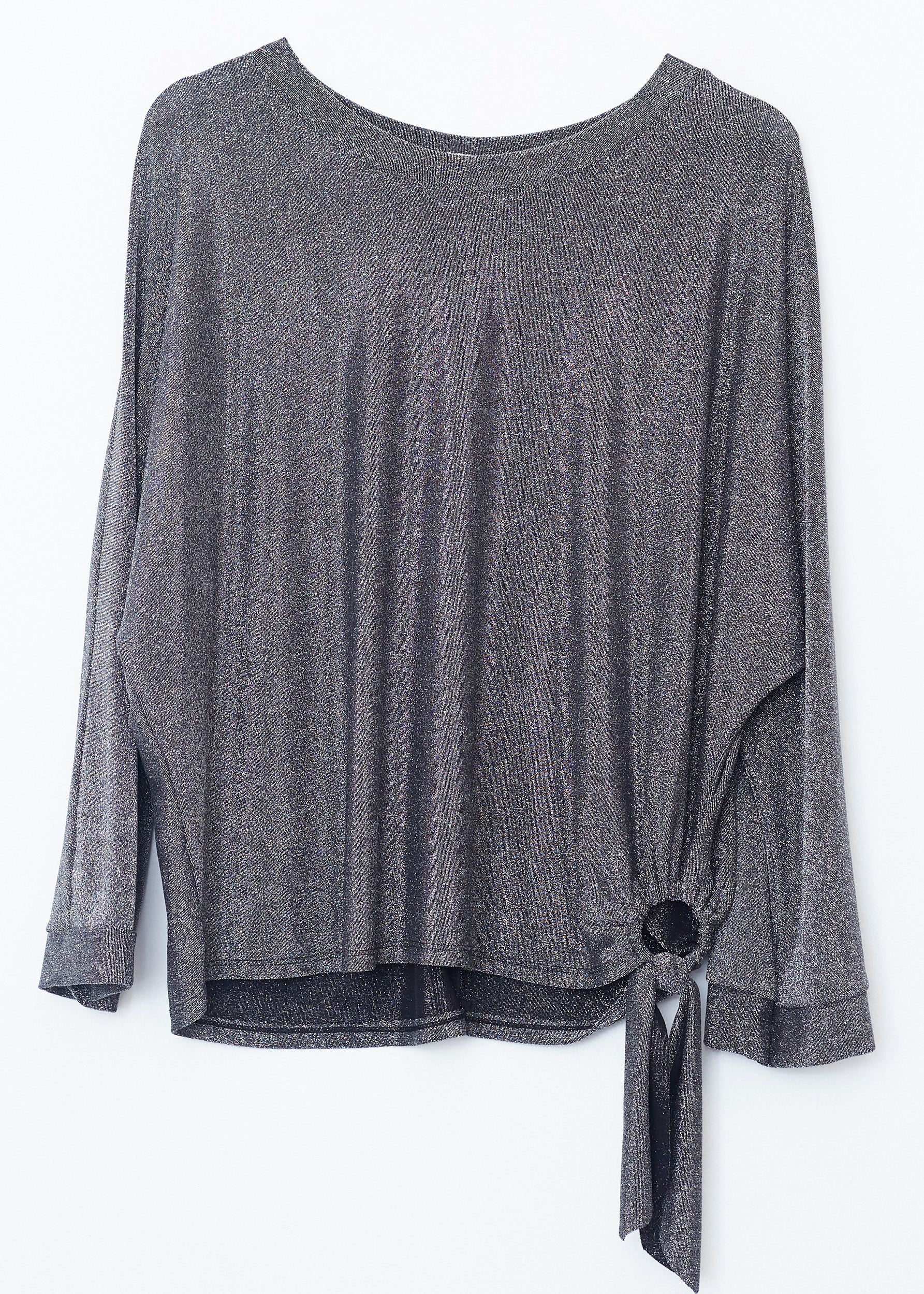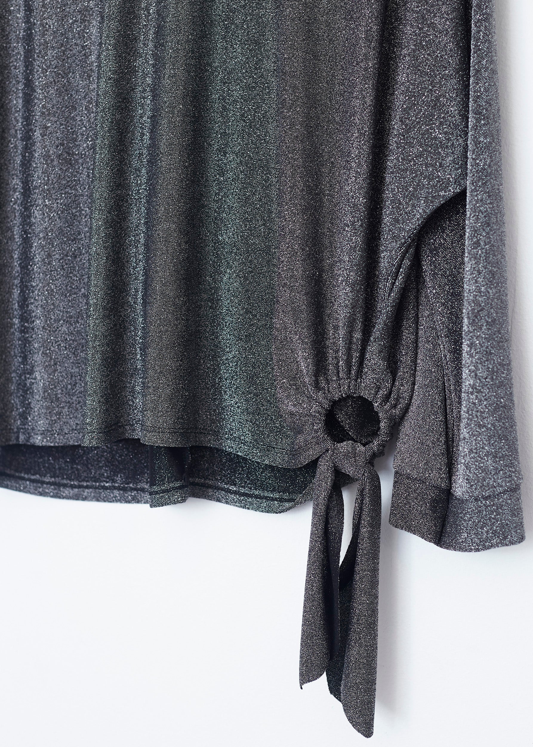 Lurex T-shirt with side ring detail. Round neck and long sleeves.