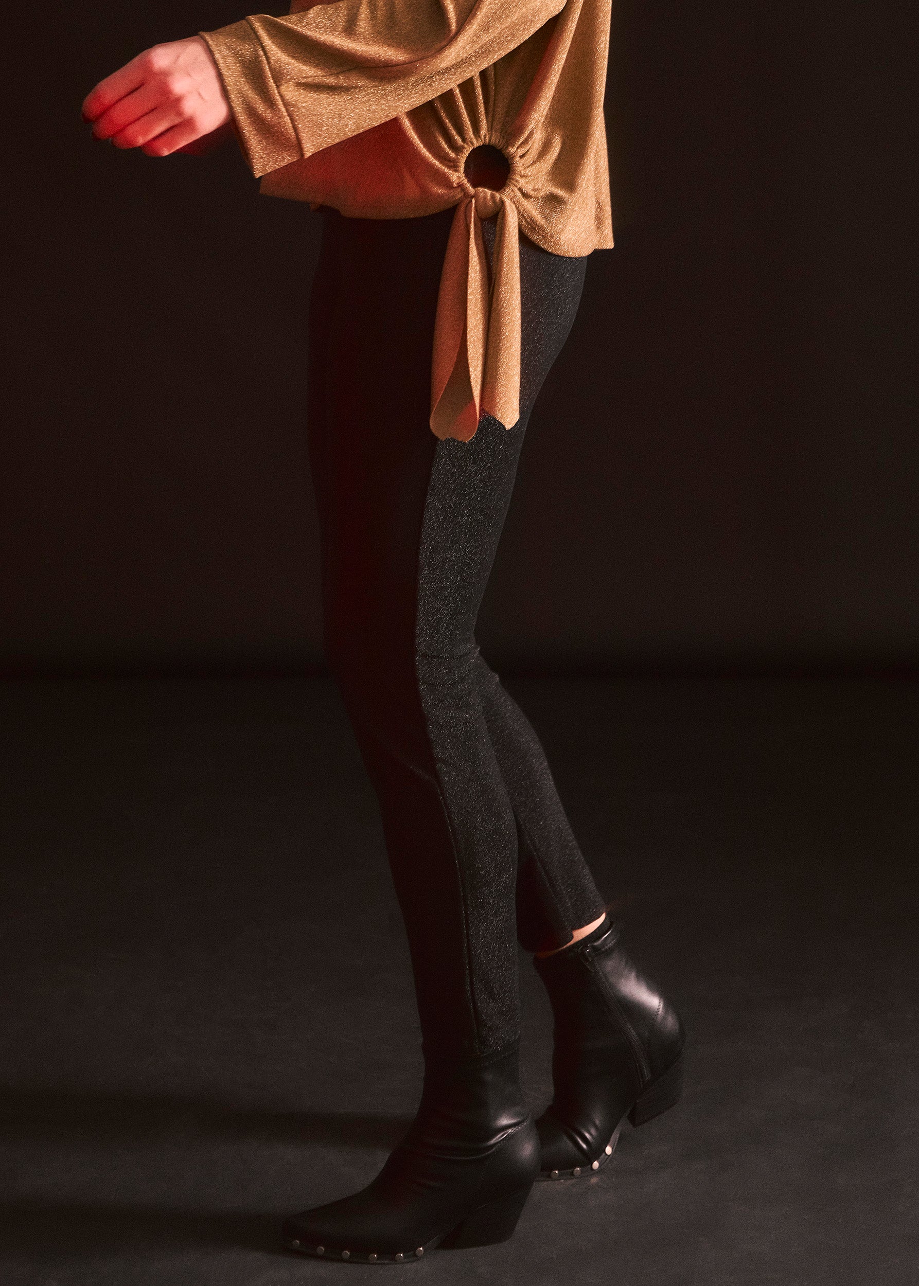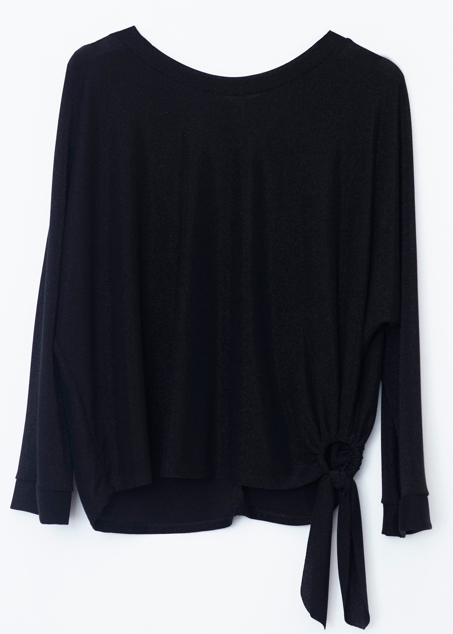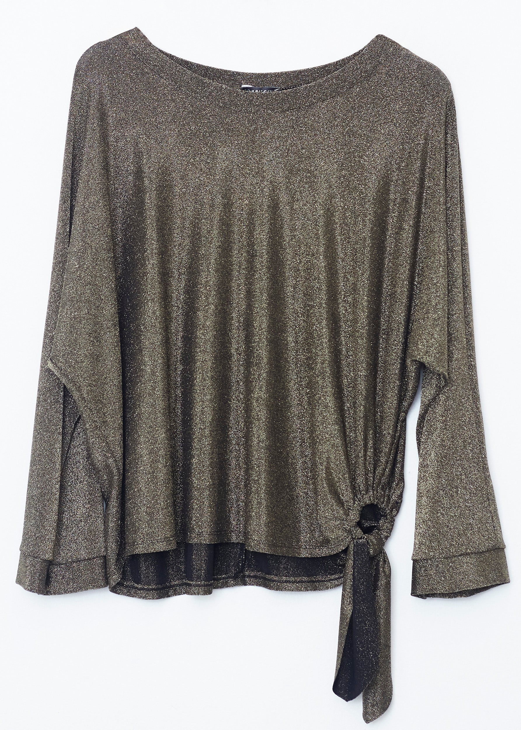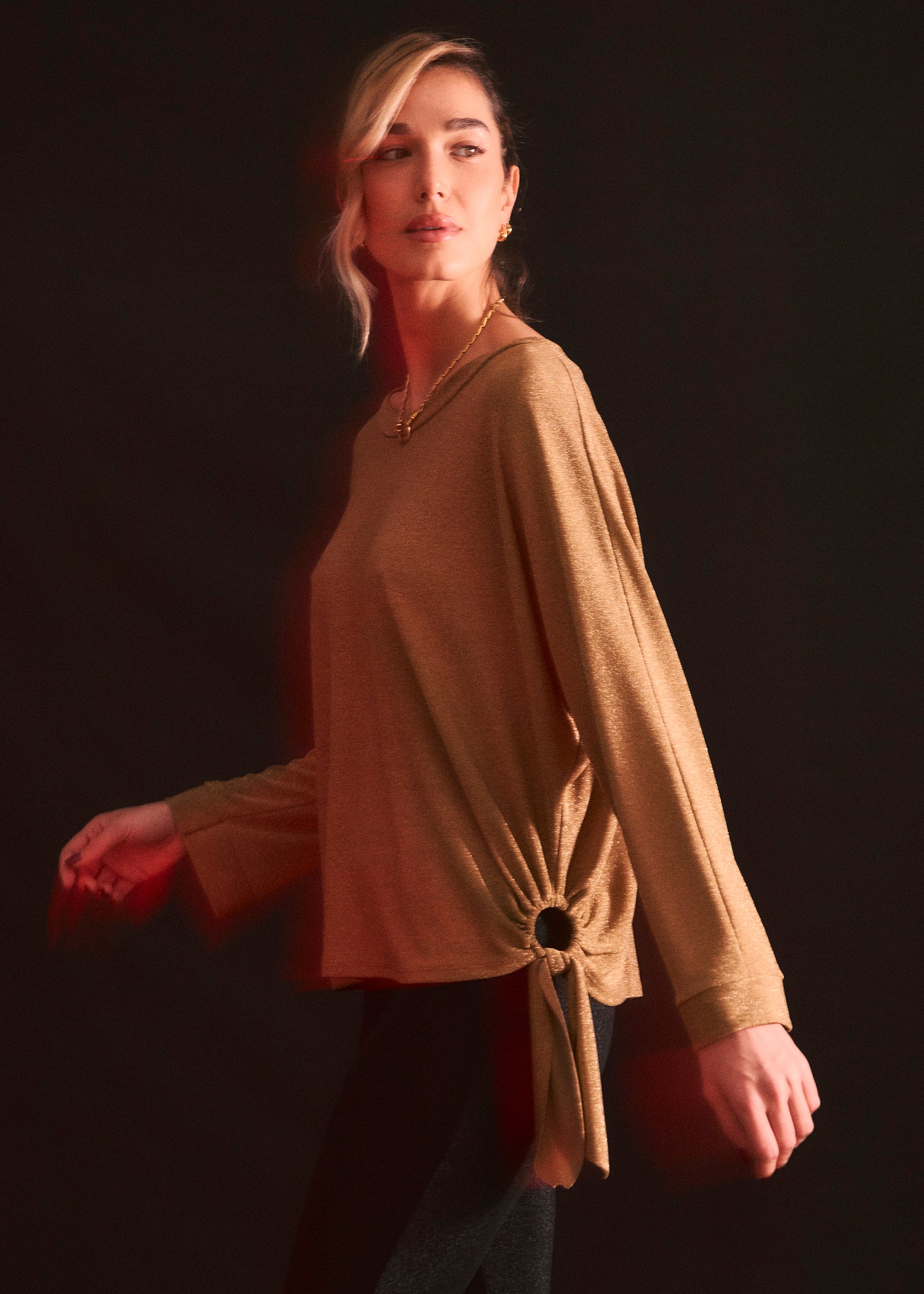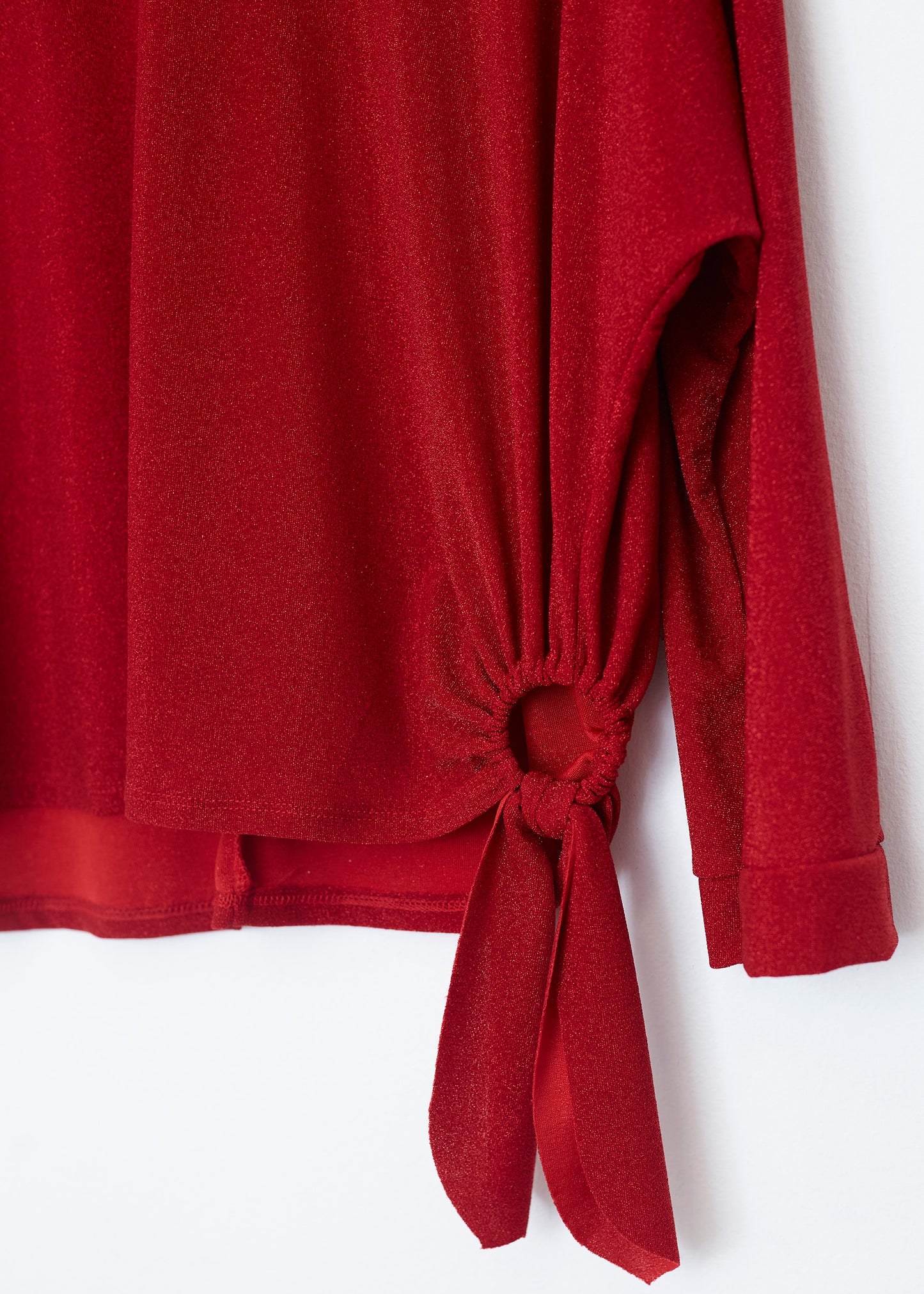 Lurex T-shirt with side ring detail. Round neck and long sleeves.